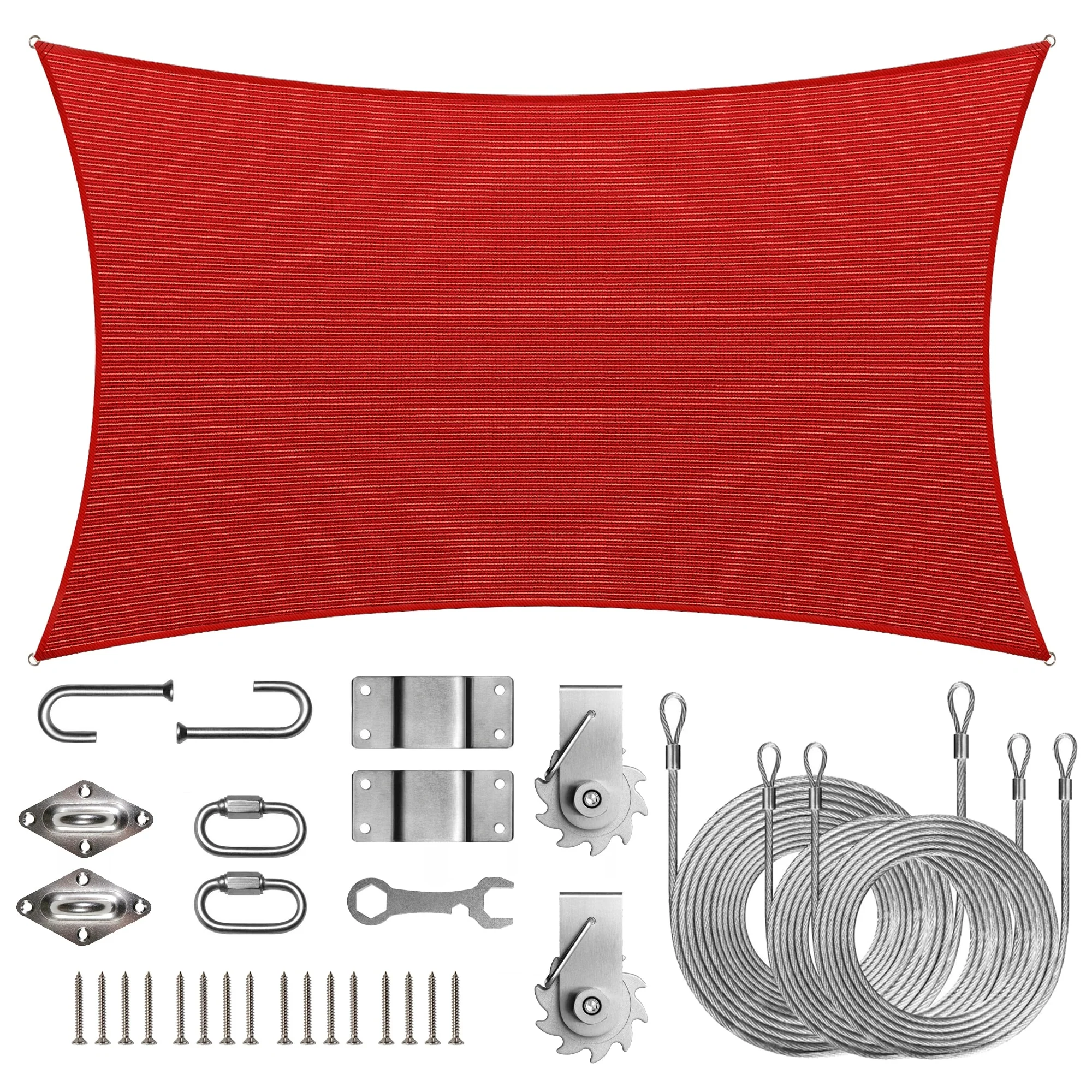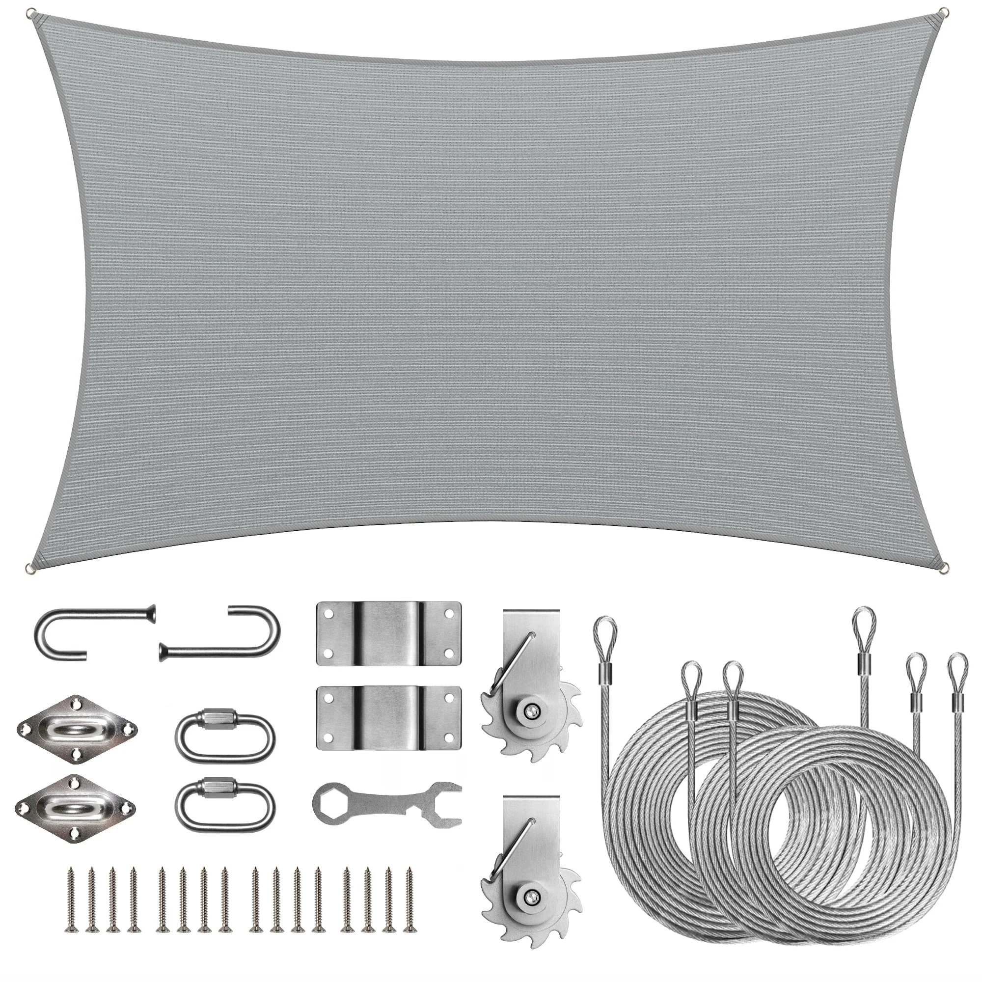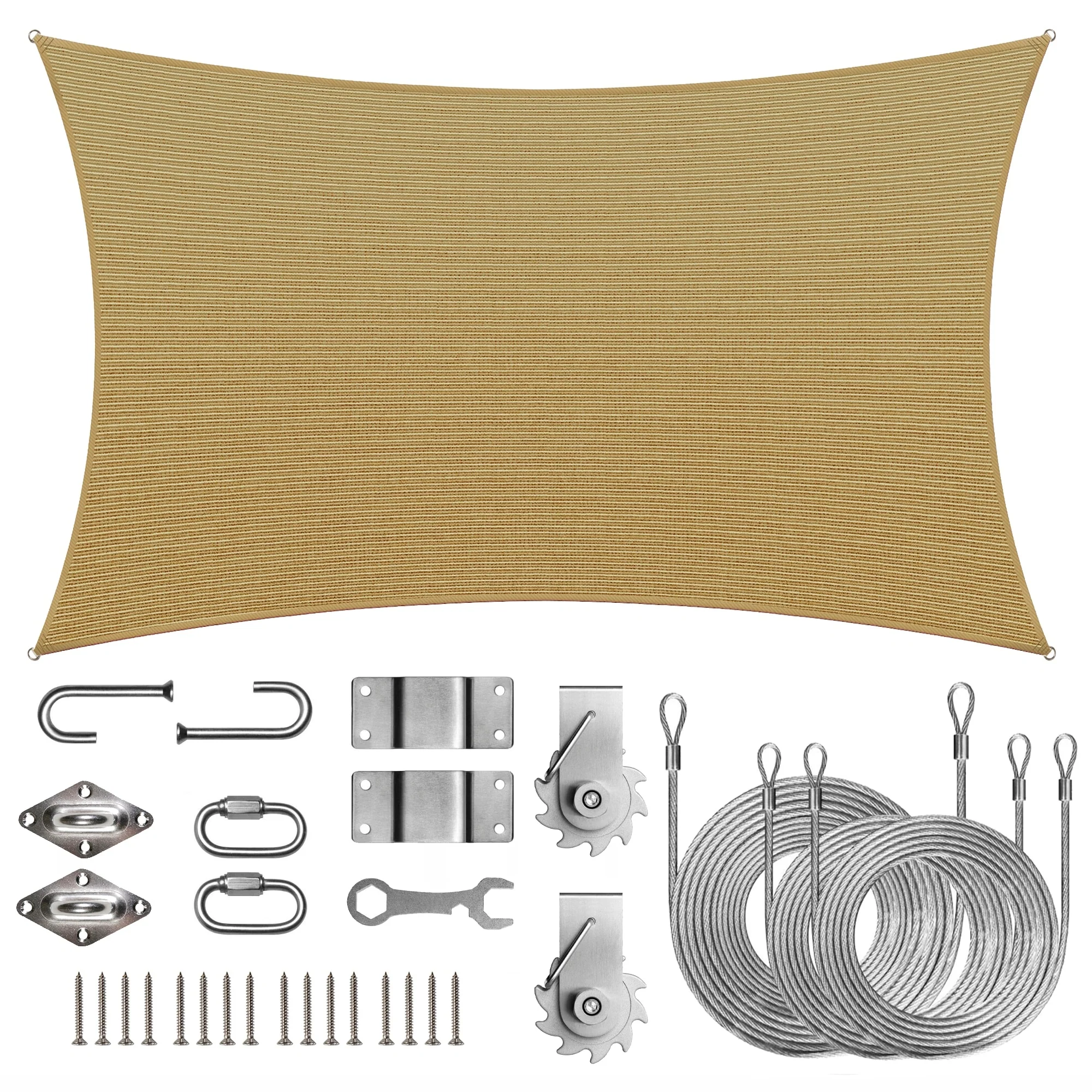 ColourTreeUSA Rectangle Sun Shade Sail 190 GSM HDPE with Winch Hardware Installation Kit