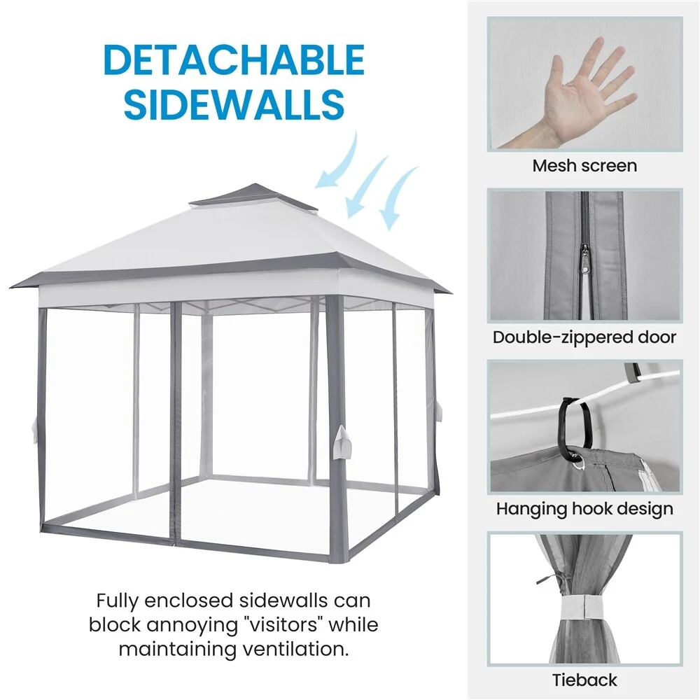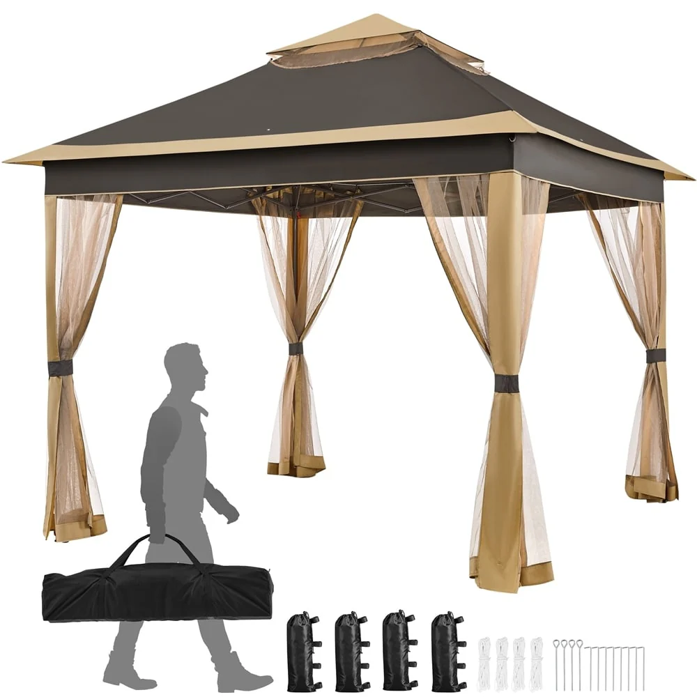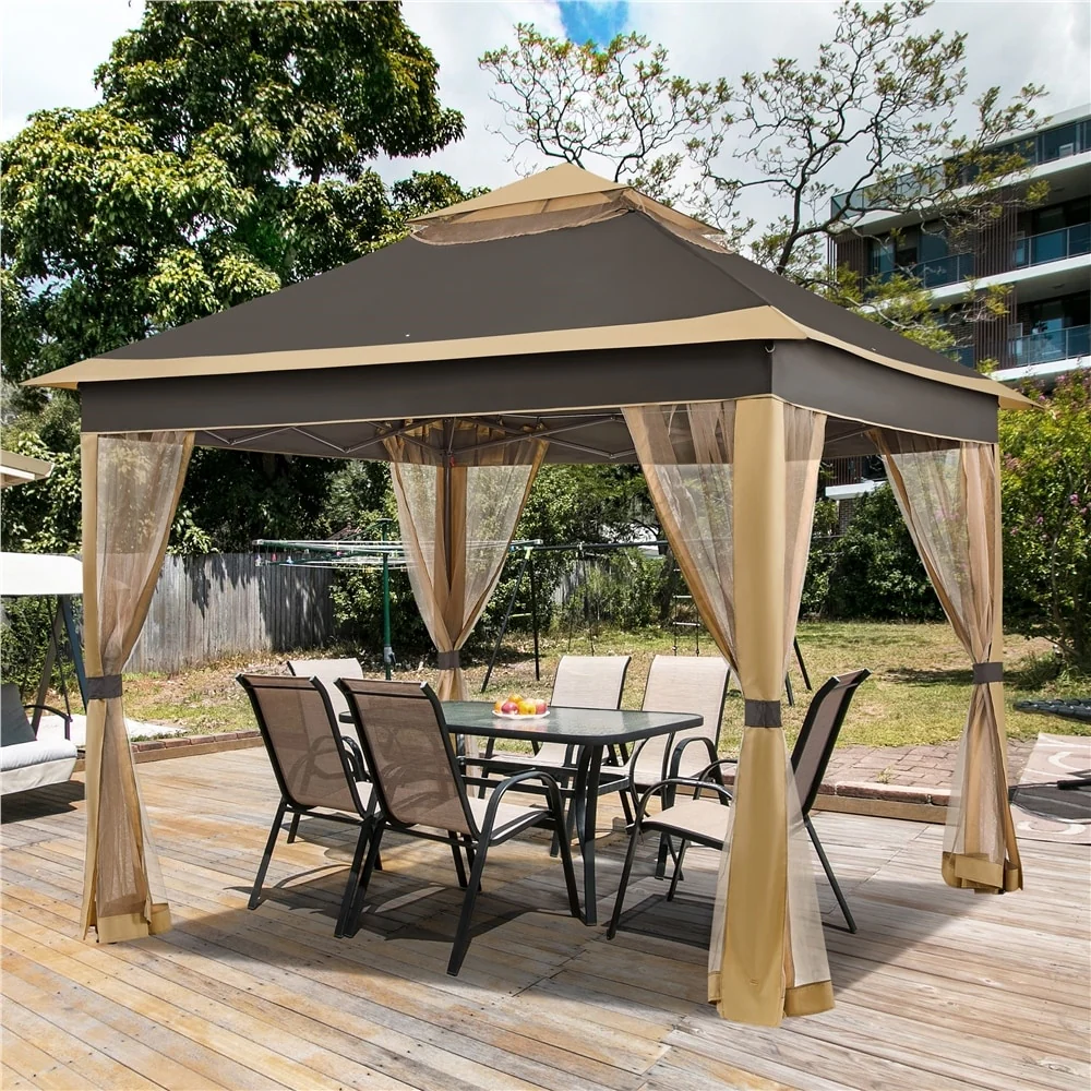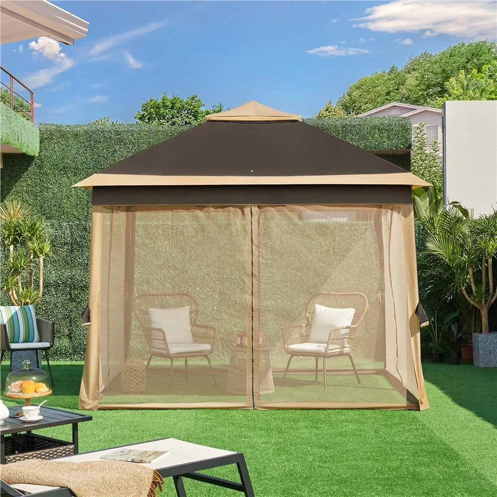 Yaheetech 11x11ft Garden Double Tiers Pop Up Canopy with 4 Mesh Sidewalls - N/A