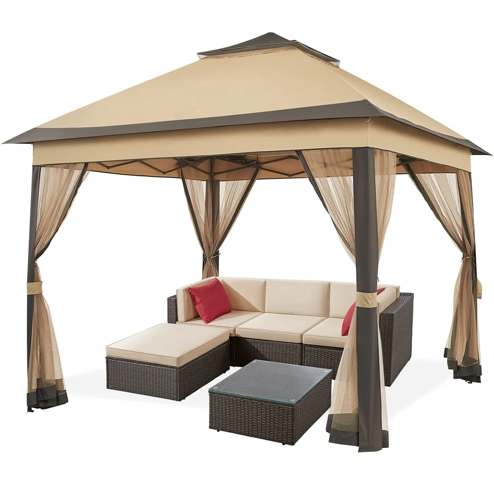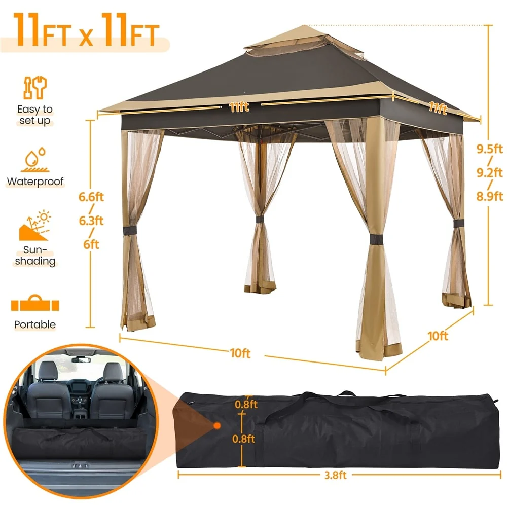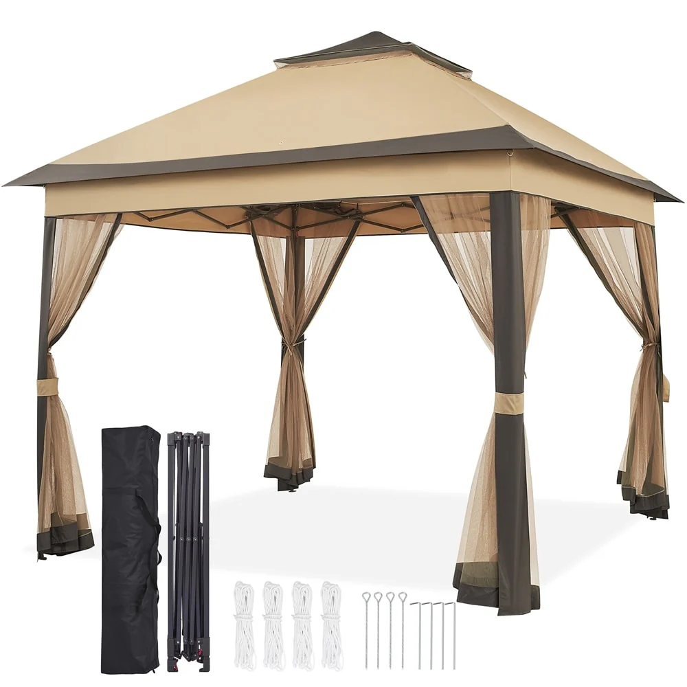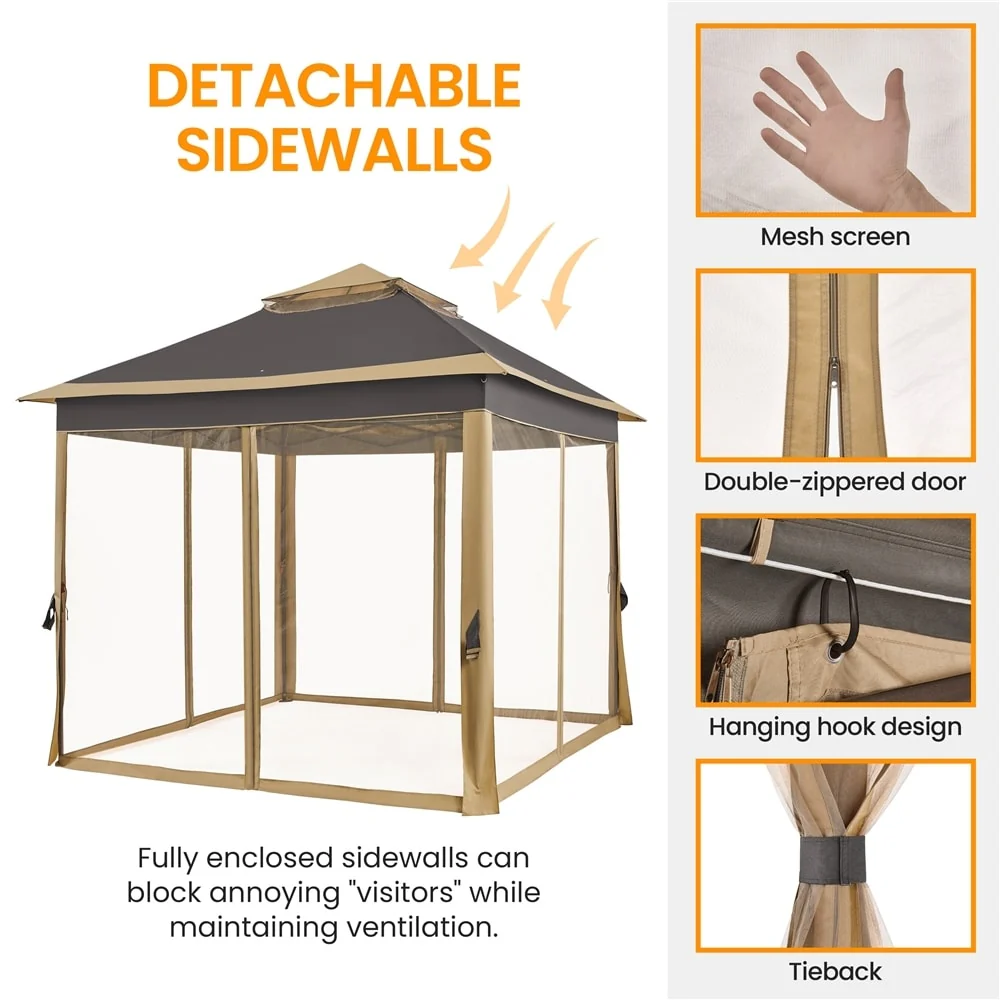 Yaheetech 11x11ft Garden Double Tiers Pop Up Canopy with 4 Mesh Sidewalls - N/A
