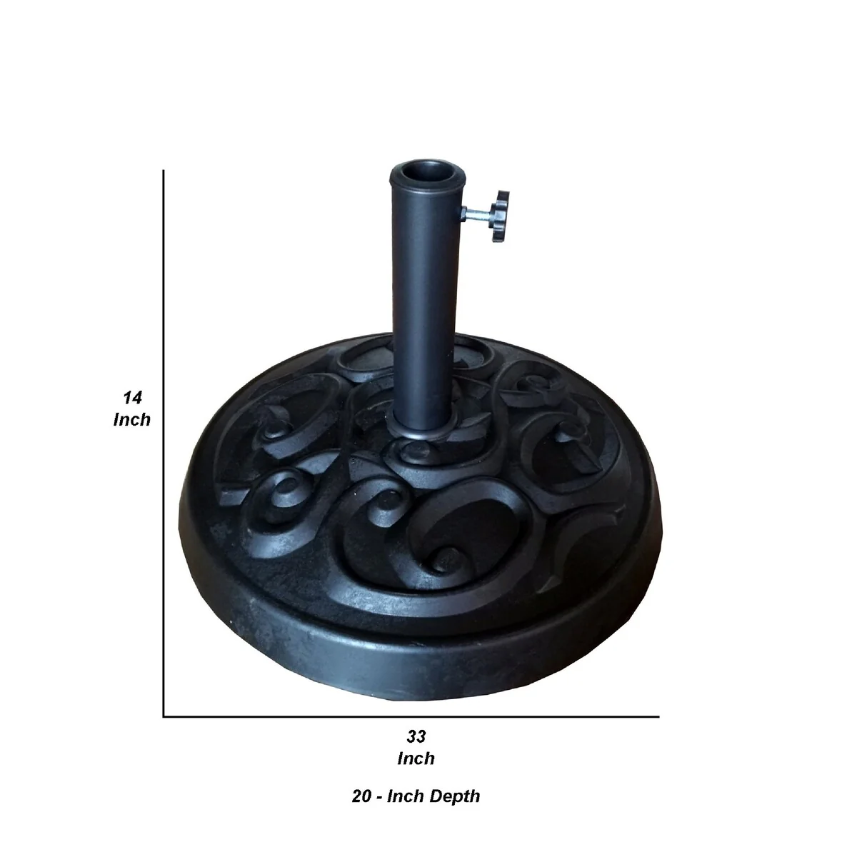 14 Inch Umbrella Base Stand, Manual Adjustment Knob, Resin Coating, Black