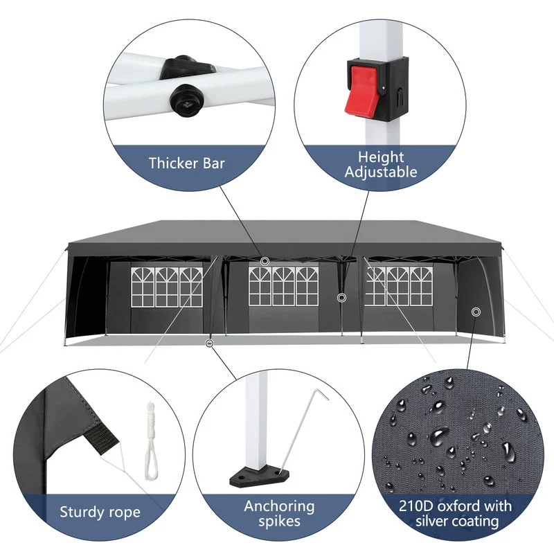 30x10FT Pop-up Oxford Cloth With 8 Sandbags and 8 Sidewalls With Tugboat Bag Canopy Gazebo - 30x10x8.8FT(WDH)