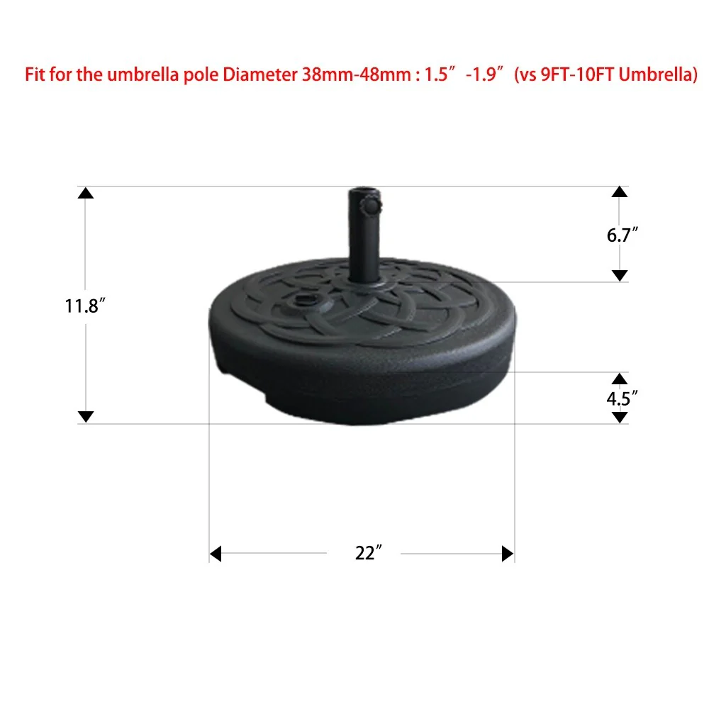 CUSchoice Black Patio Umbrella Base with 4 Piece Set - 39.25" Dia. x 3.25" H