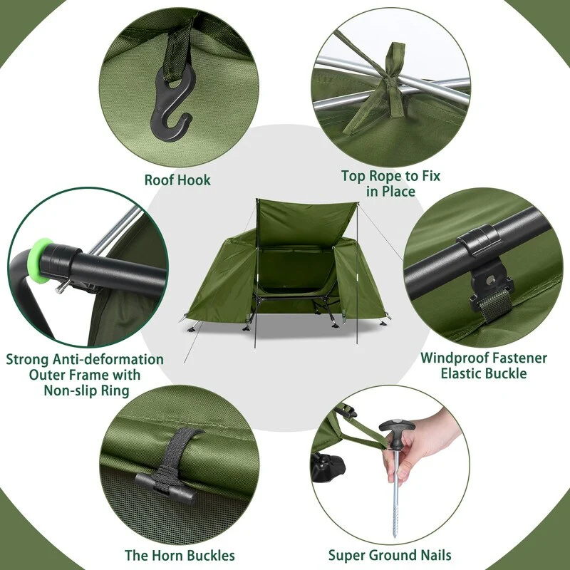 7ft Strengthen Camping Tent Cot with External Shade Adapted to Terrain Capacity 400 Lbs