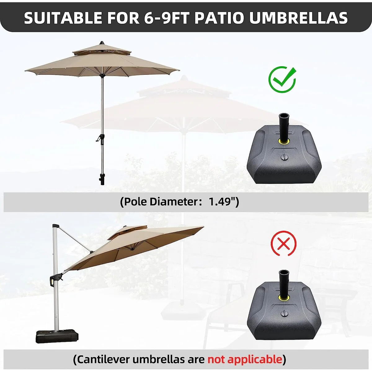 AOOLIMICS Patio Umbrella Base 200LBs HDPE for Cantilever Umbrella