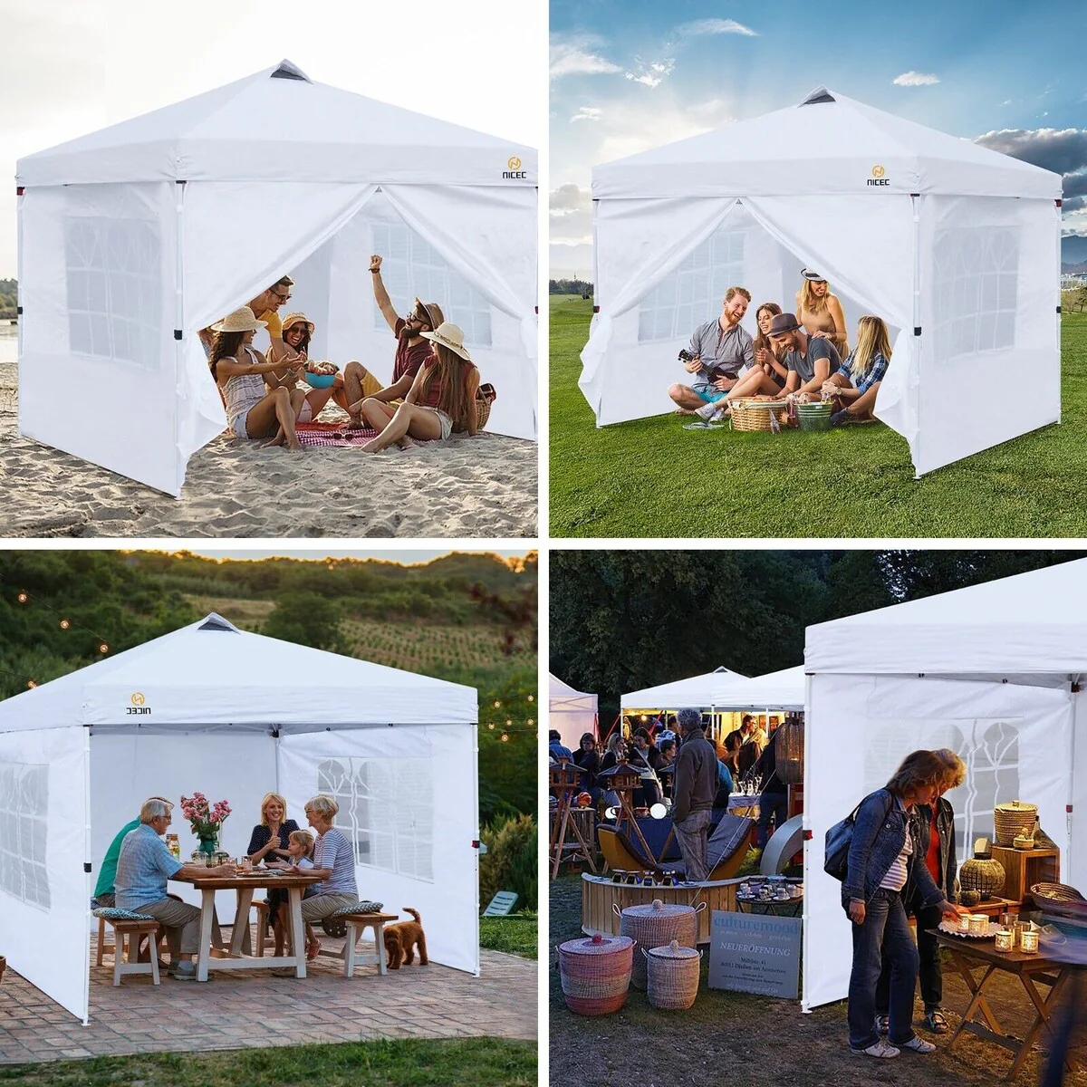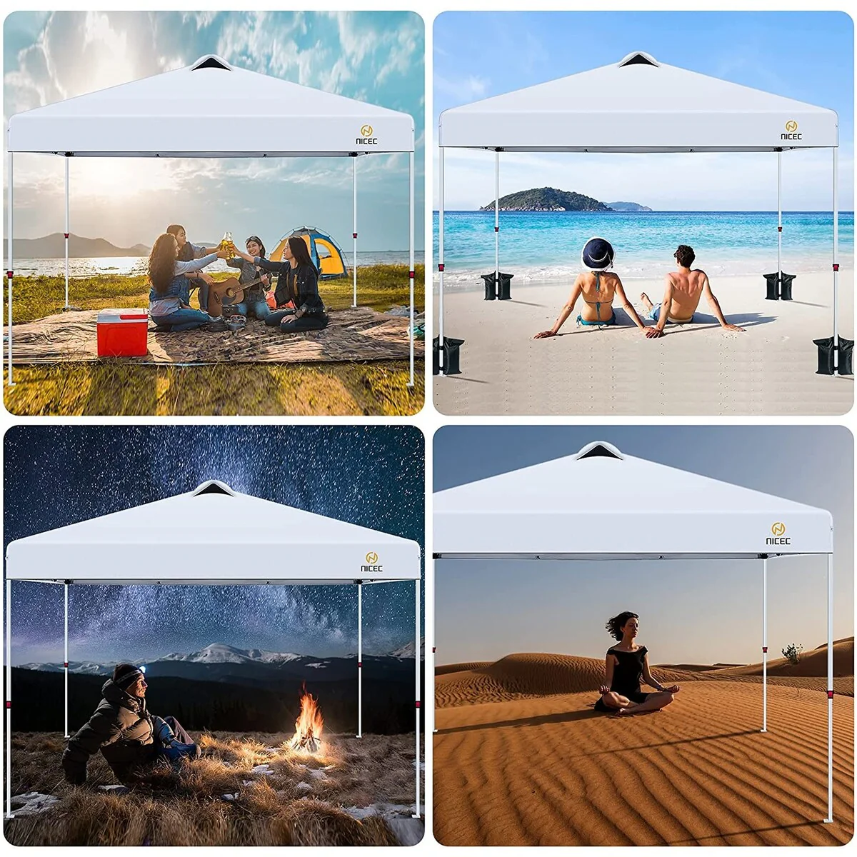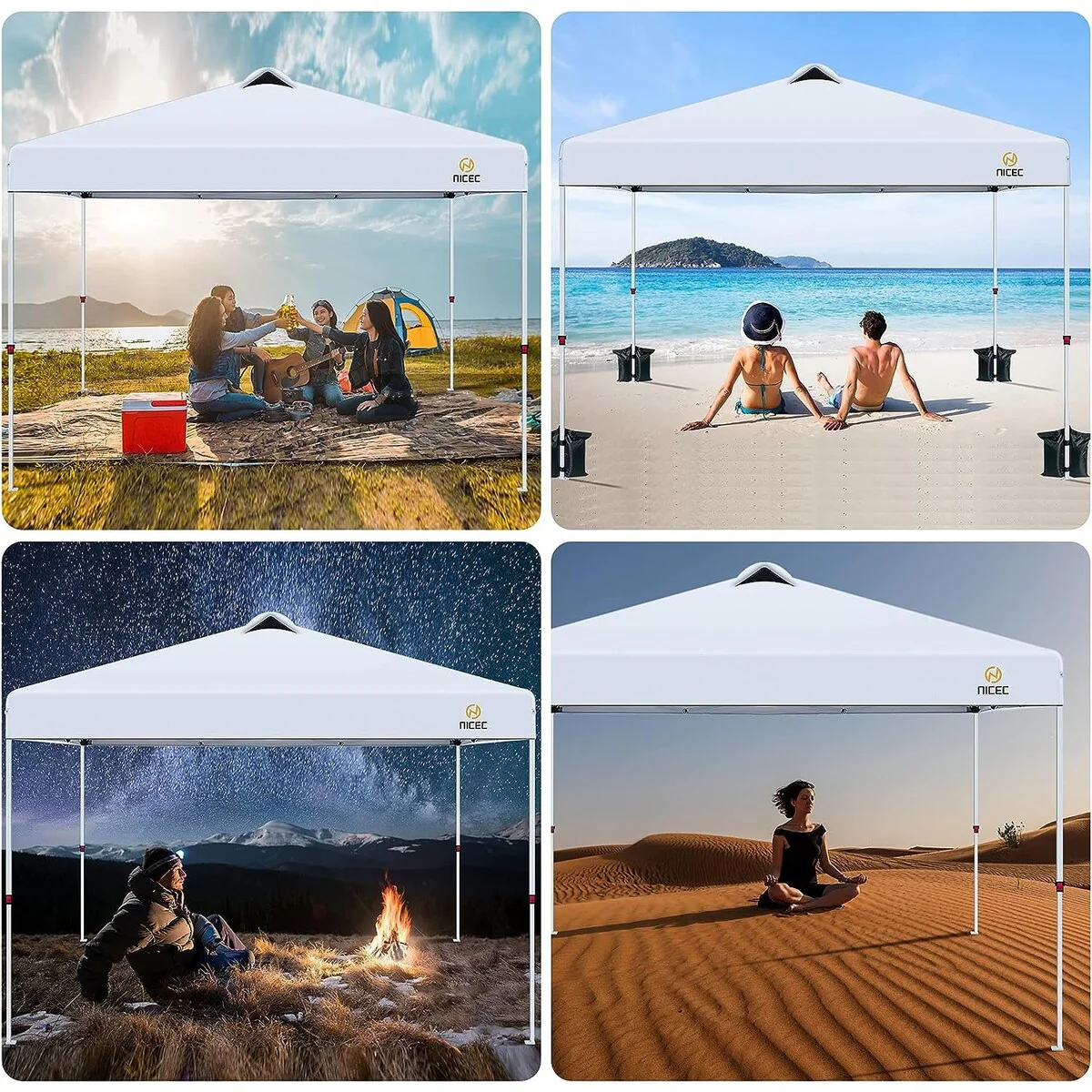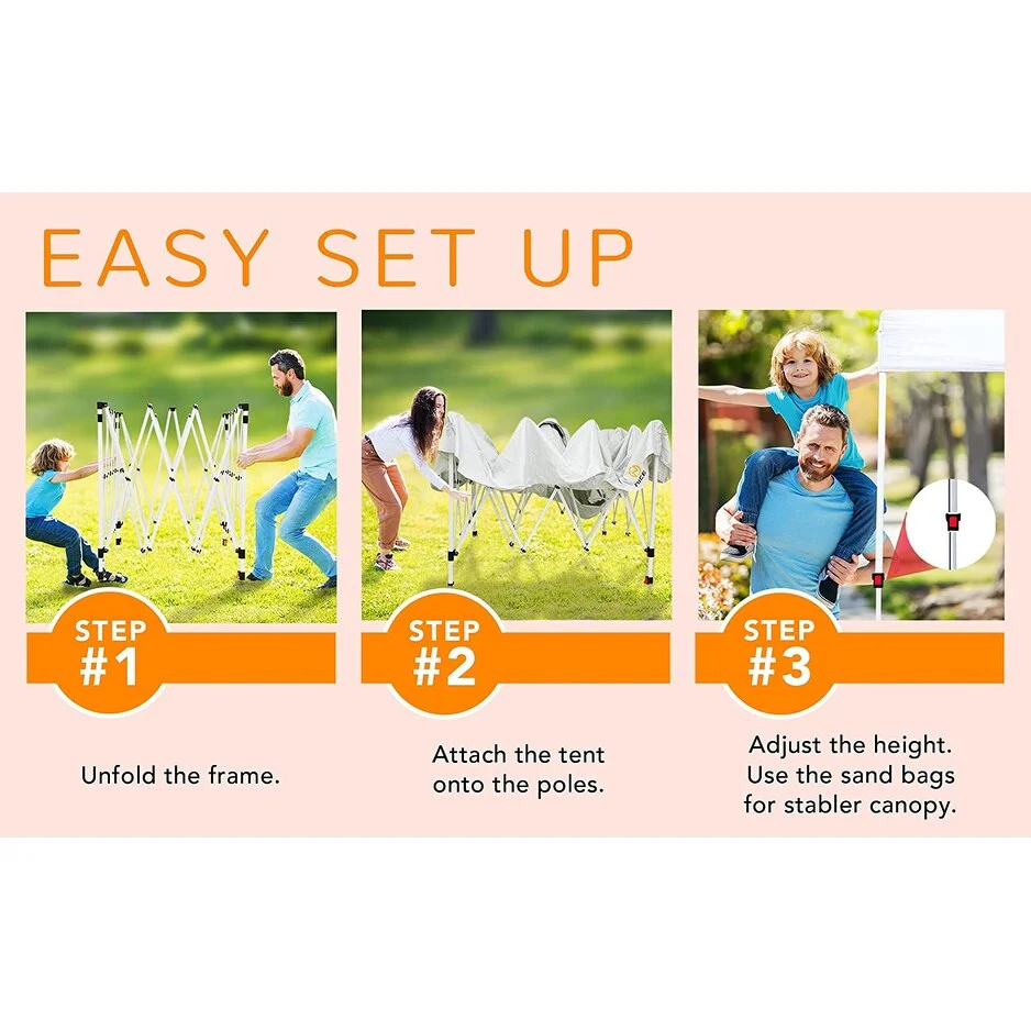 Pop Up Canopy Tent, Gazebos, Sun Shelter, Event Tent, Beach Shade, Sunshade Portable 10x10ft UPF 50+ with Roller Carry Bag