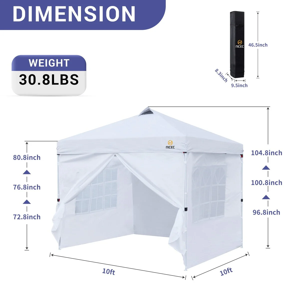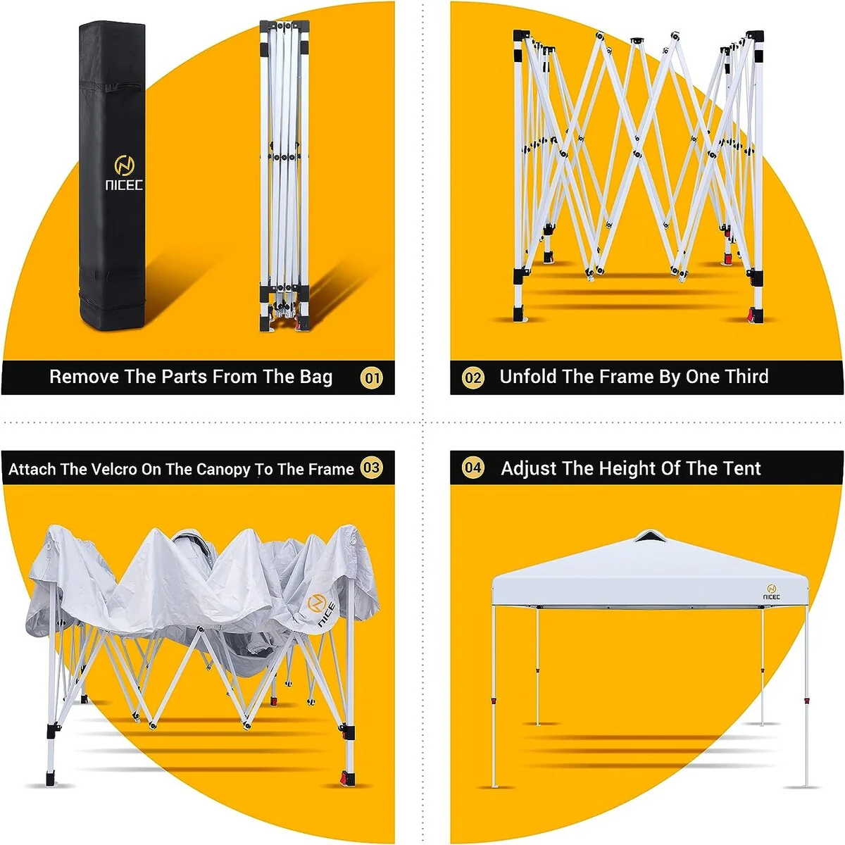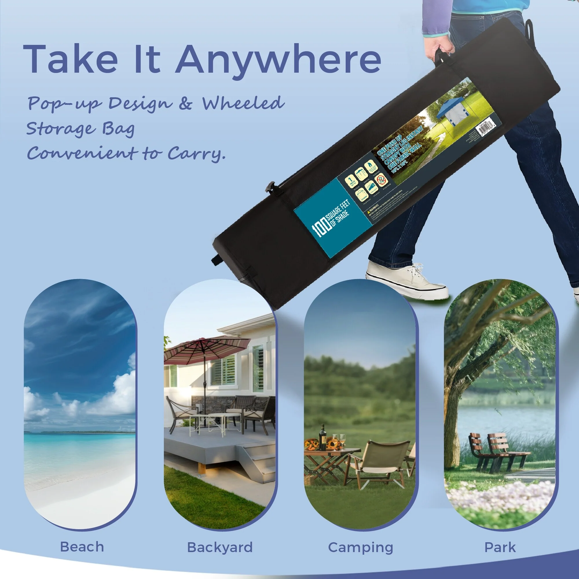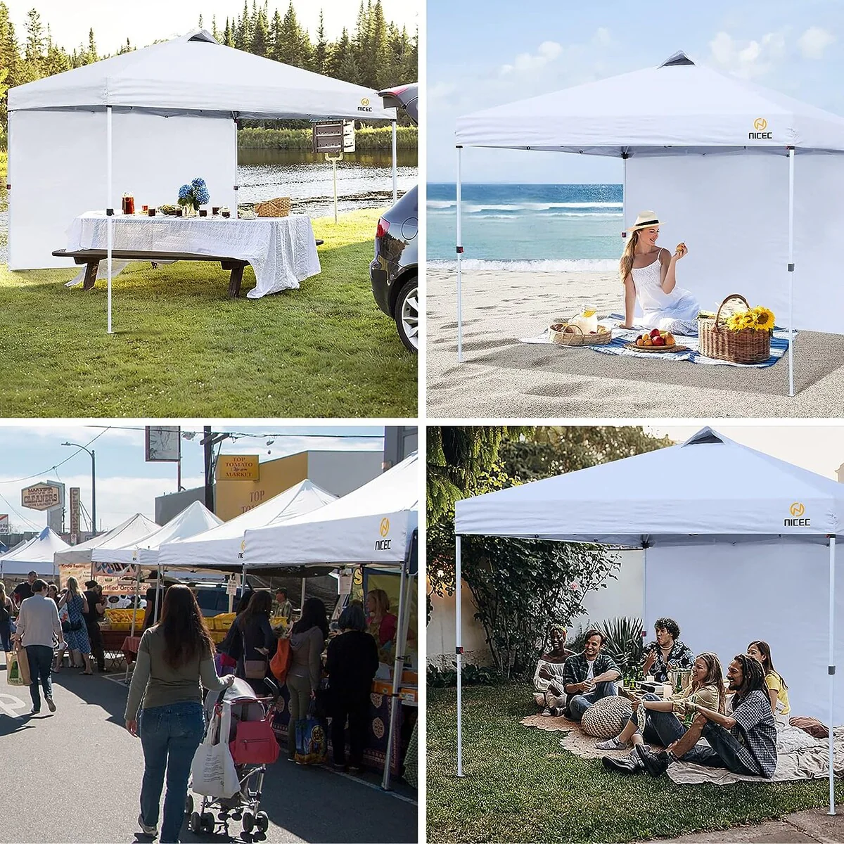 Pop Up Canopy Tent, Gazebos, Sun Shelter, Event Tent, Beach Shade, Sunshade Portable 10x10ft UPF 50+ with Roller Carry Bag