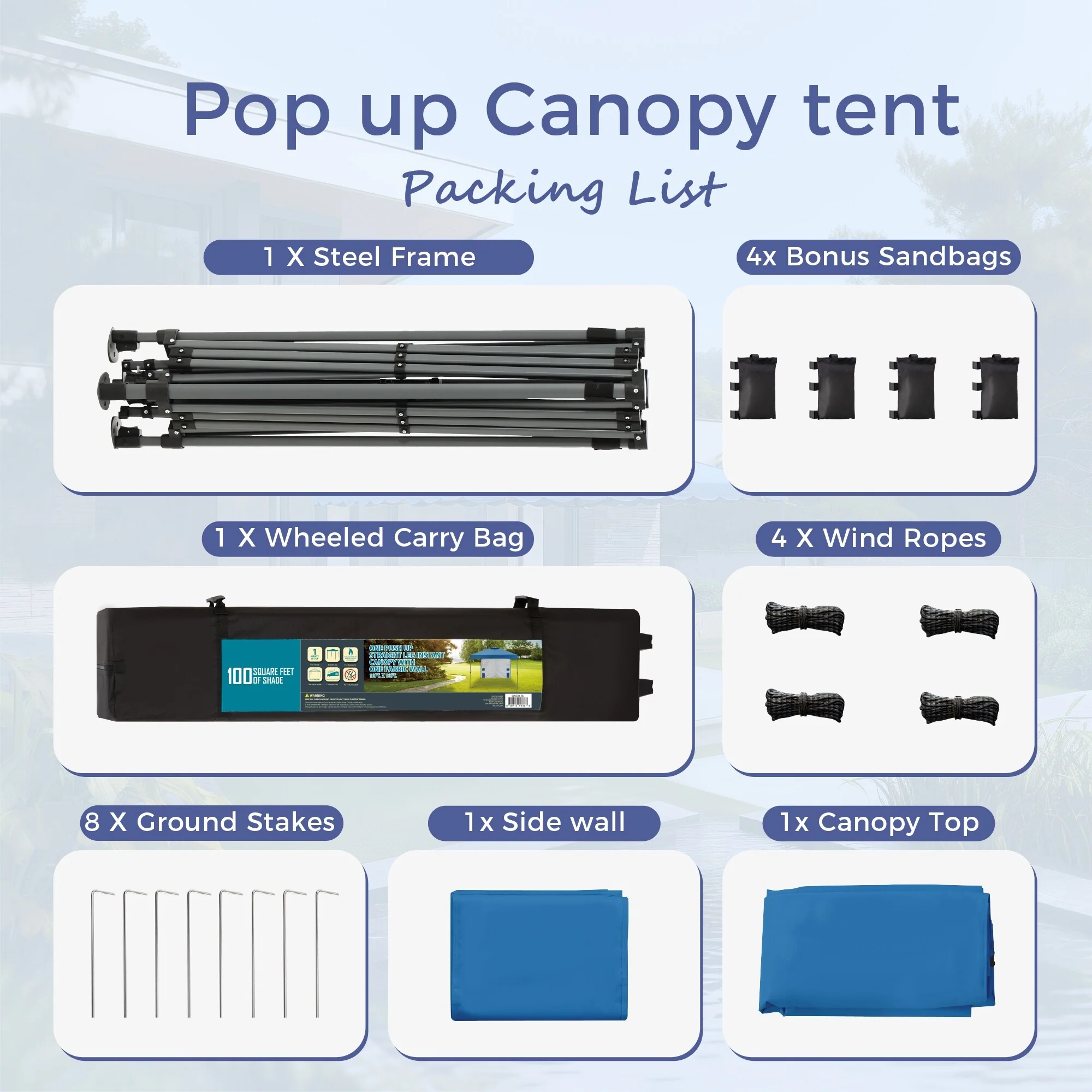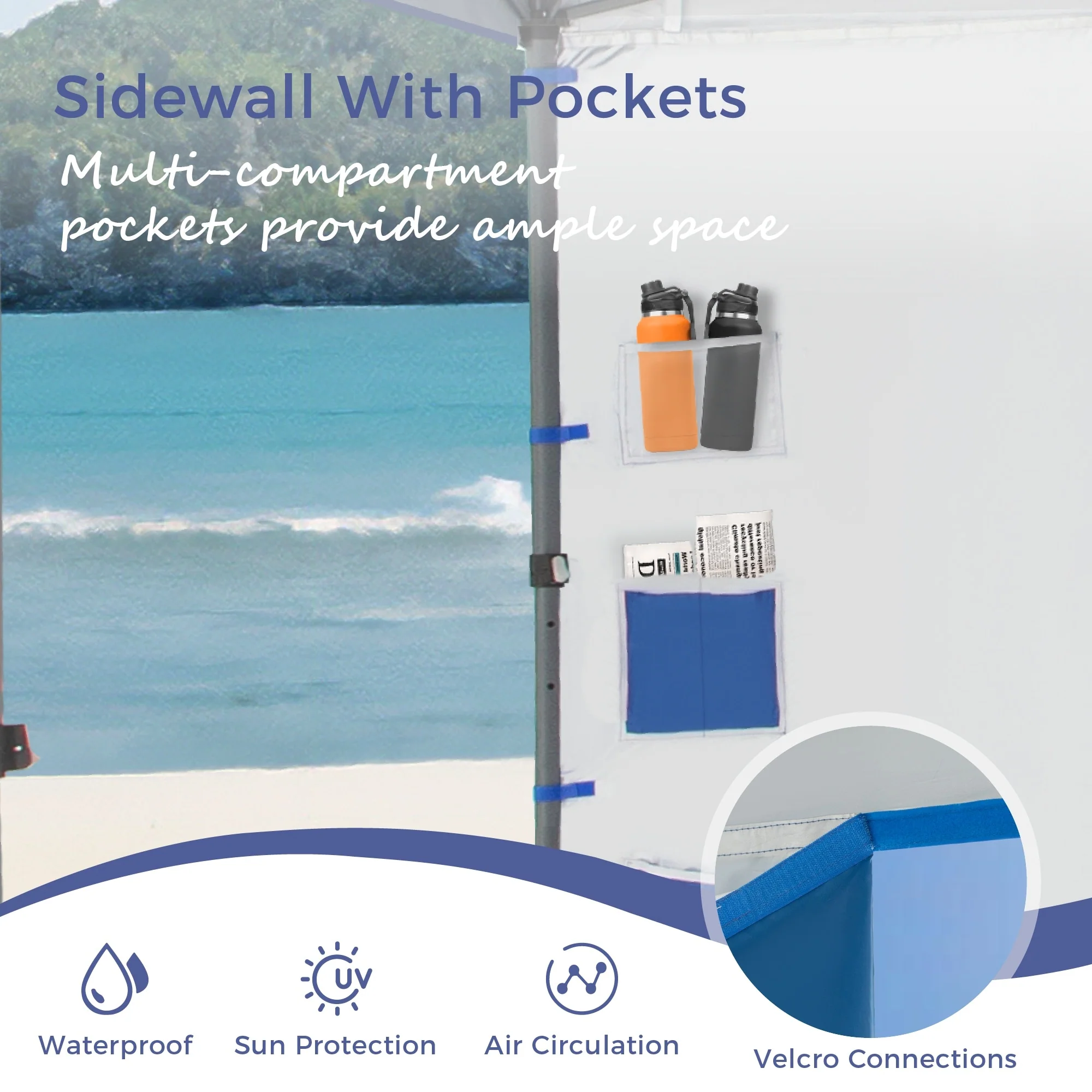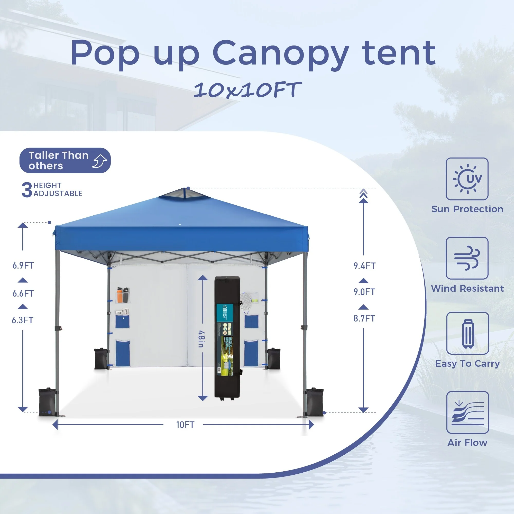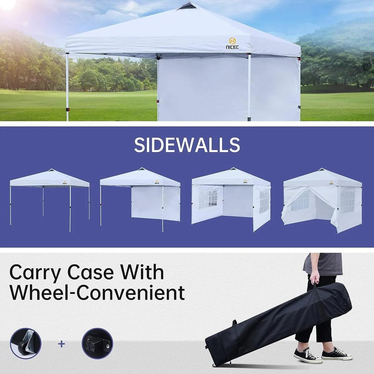 10x10Ft Outdoor Pop Up Canopy Tent with Sun Wall Pockets, Camping Tent with Wheeled Bag Include