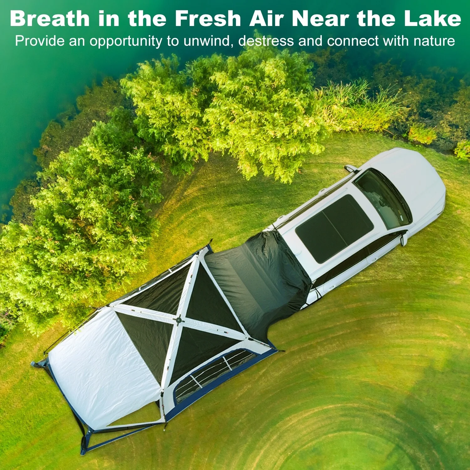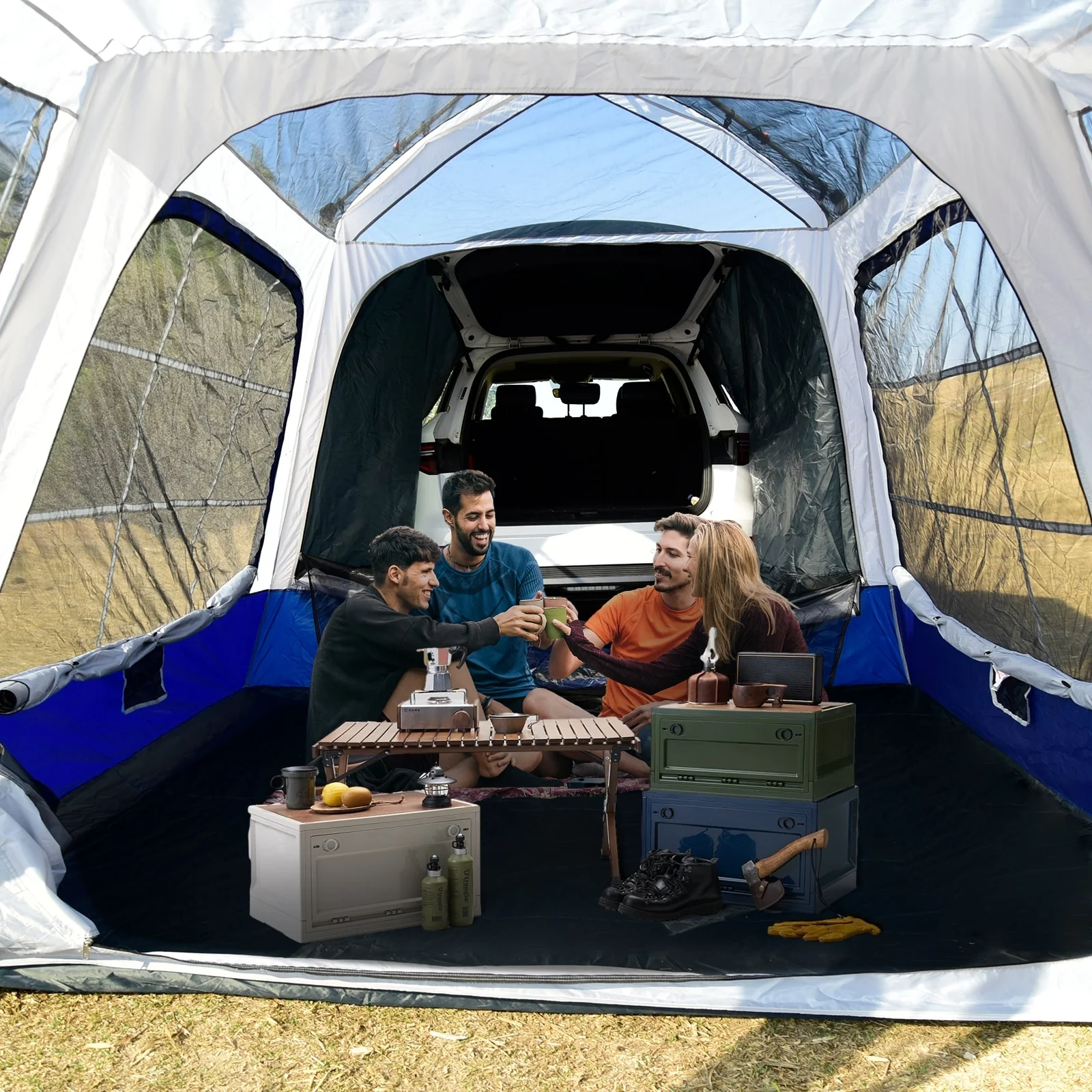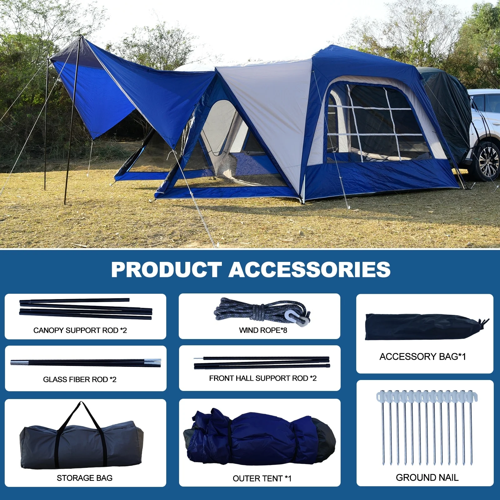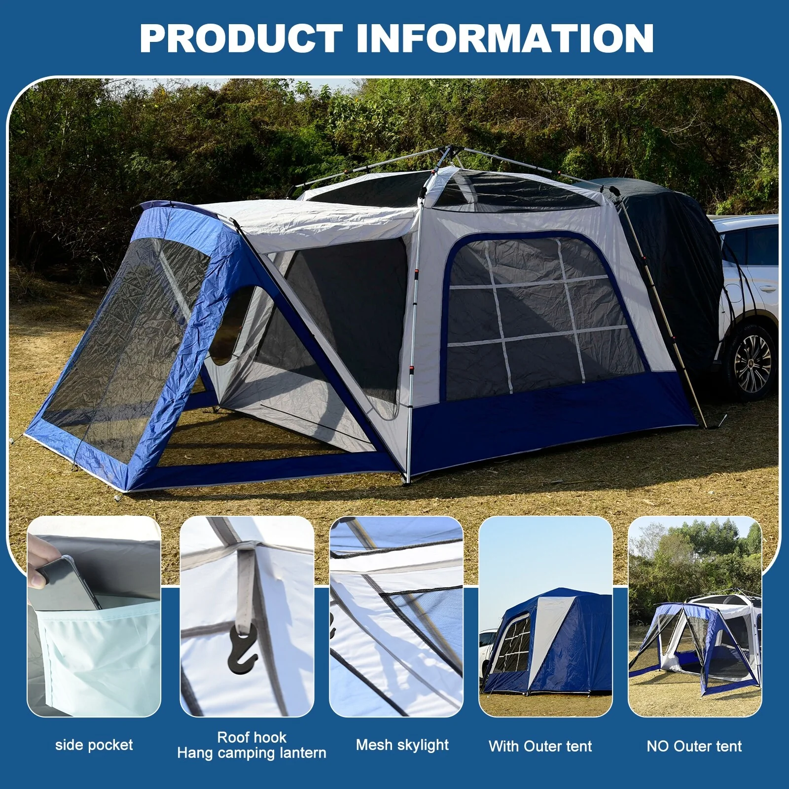 Large Car Camping Tent with Screen House and Porch, SUV Tailgate Tent