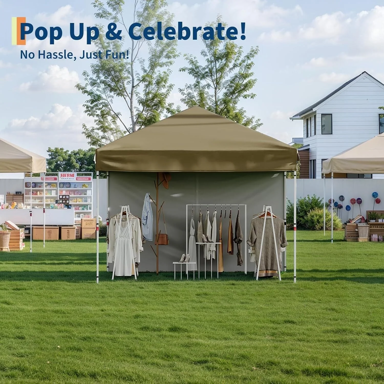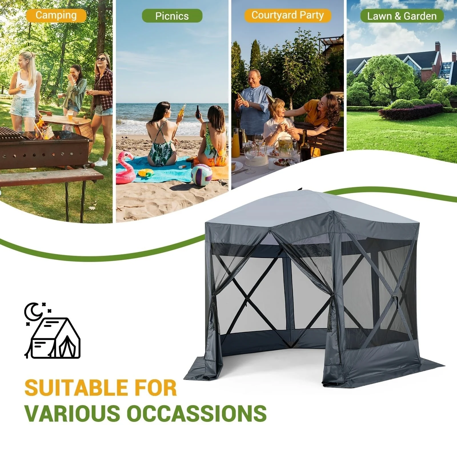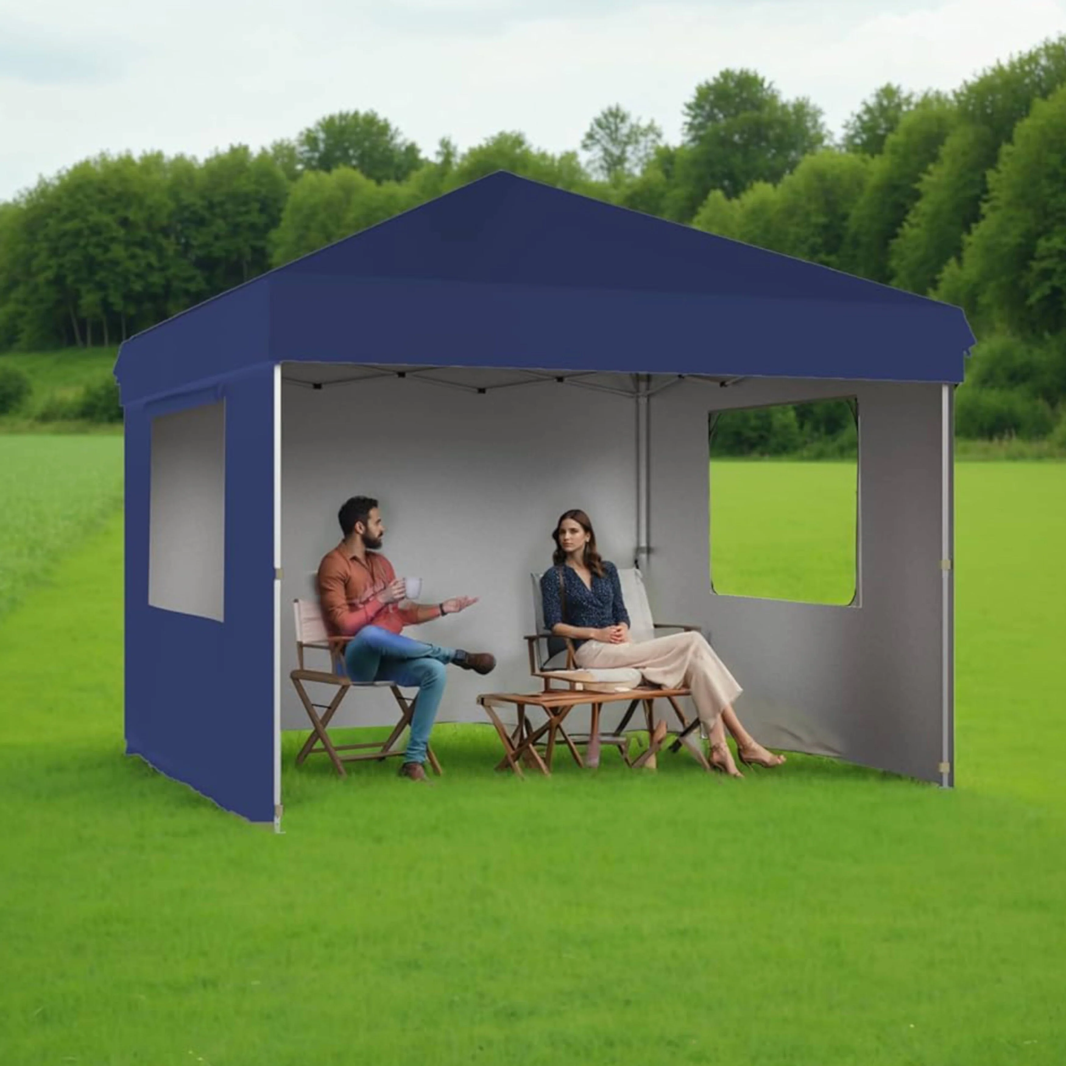 Outdoor 4-Sidewall 10x10 Pop Up Canopy Tent for Picnics, Camping