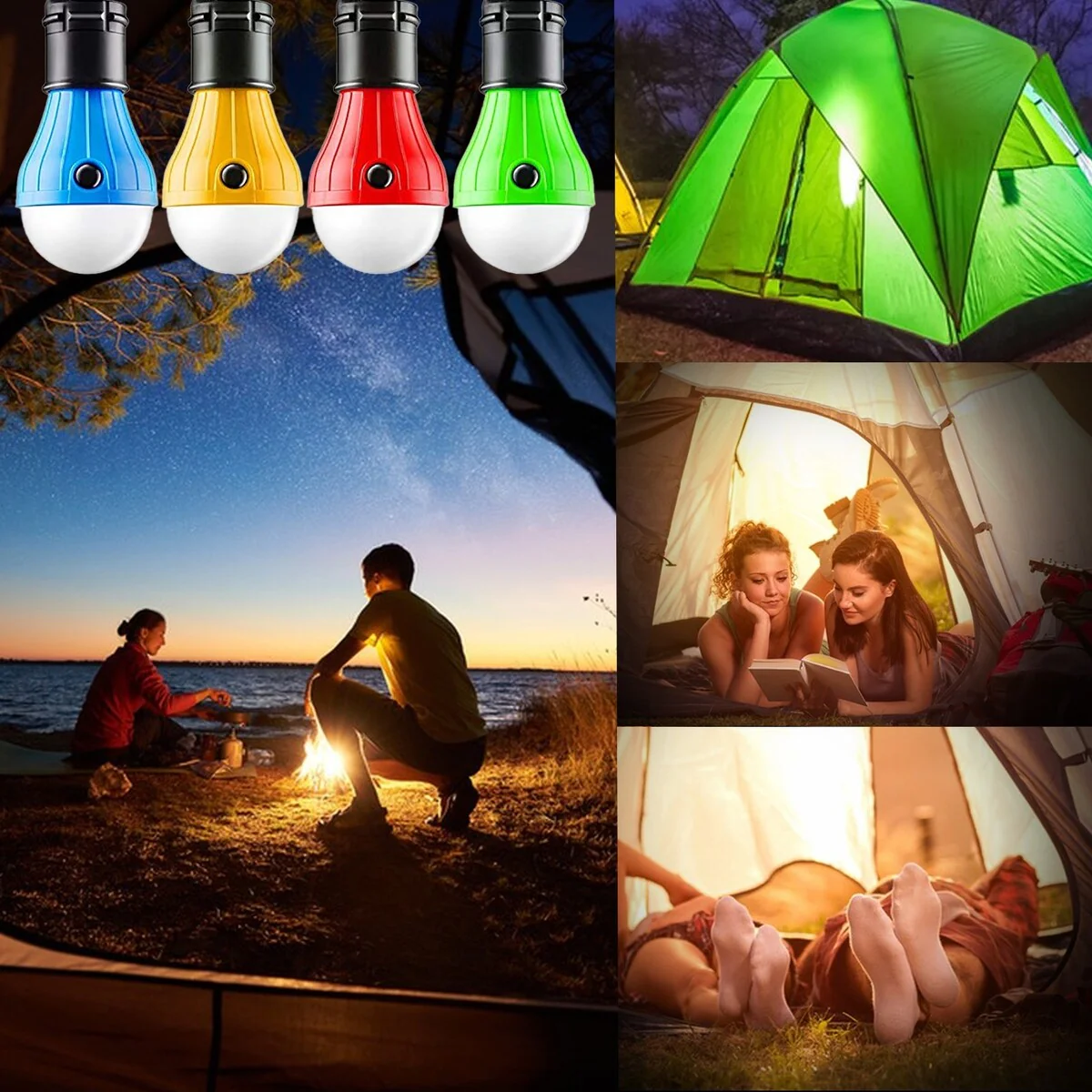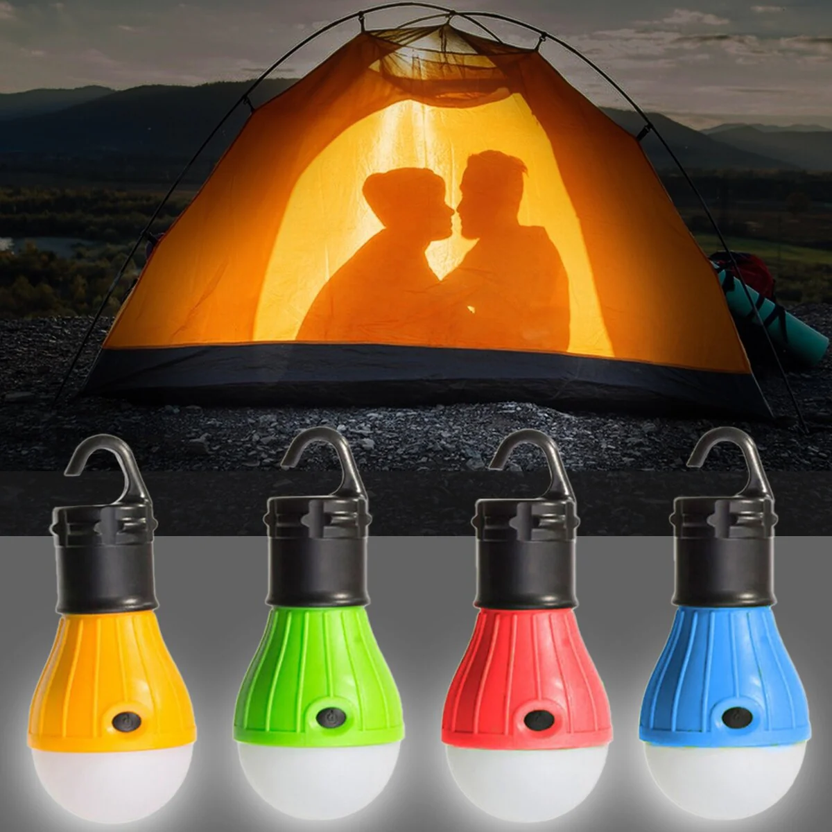 4Pc Outdoor Portable Hanging LED Camping Tent Light Bulb Fishing Lantern Lamp with Hook