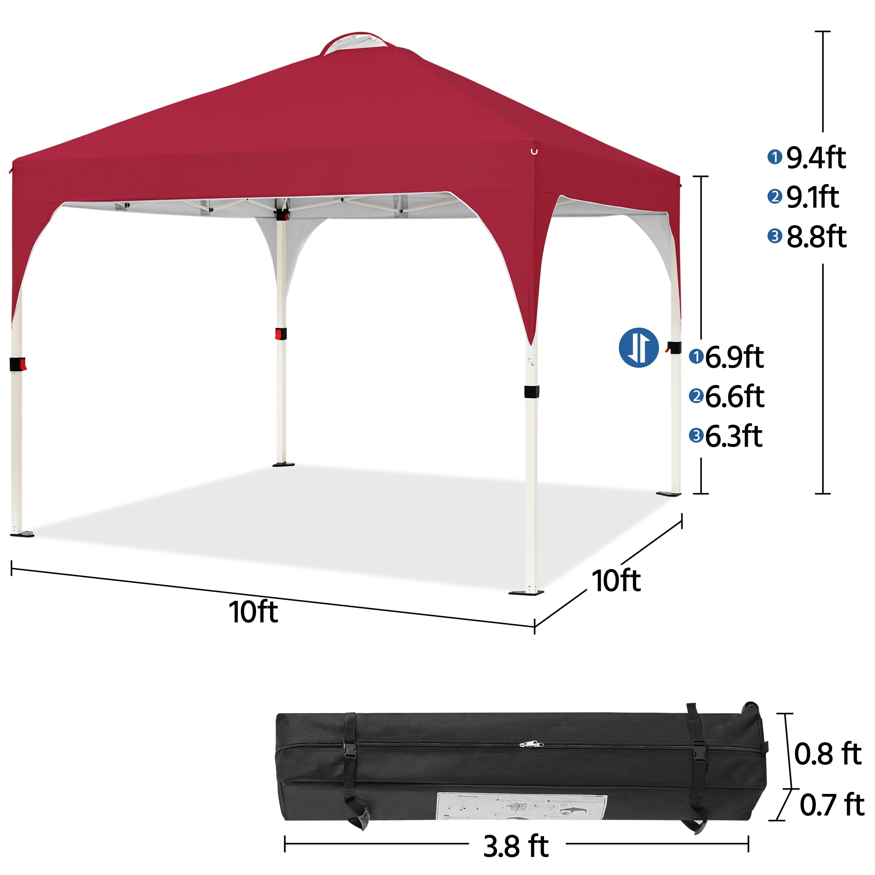10' x 10' Pop Up Canopy, Commercial Outdoor Easy Up Party Tent with Carry Bag