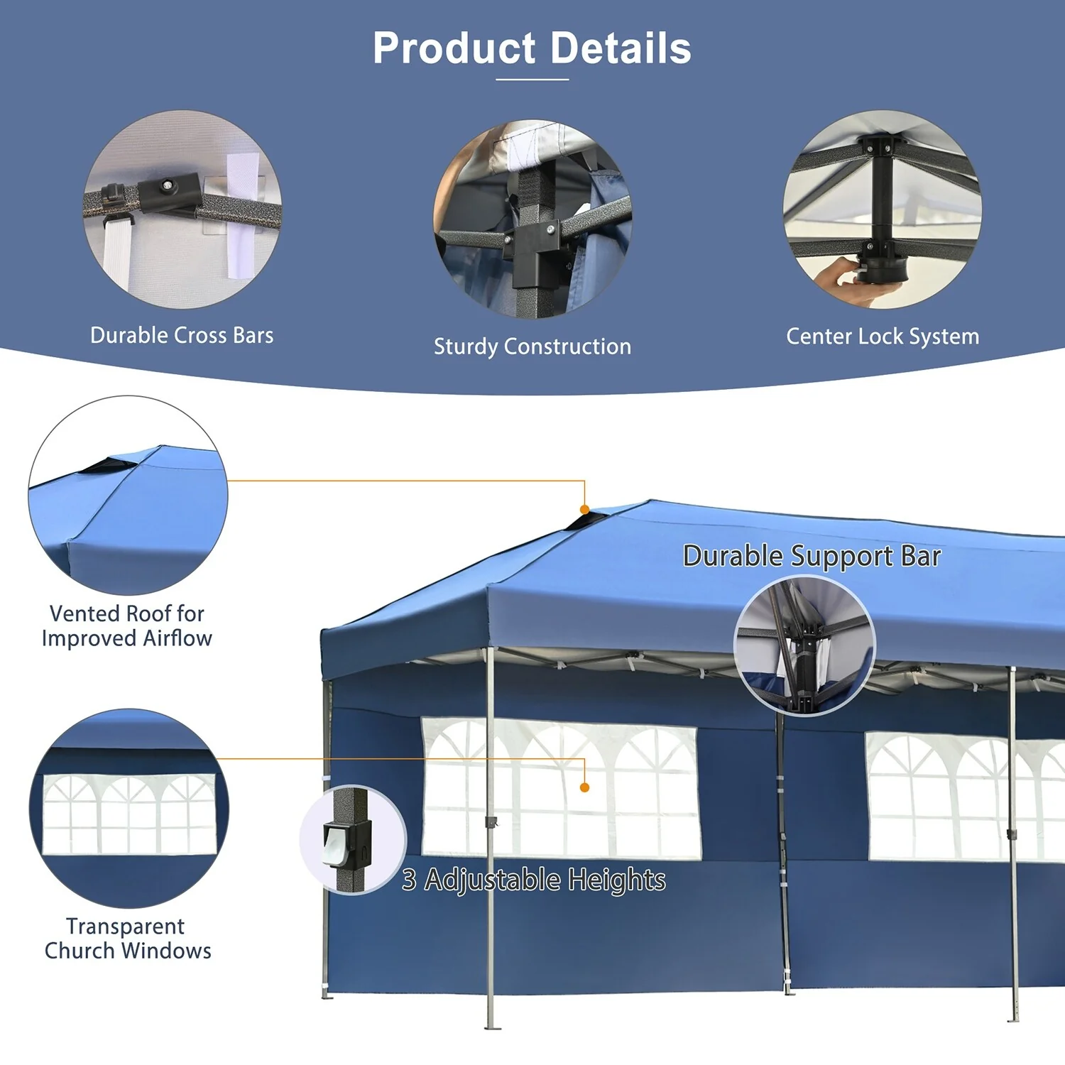 Large 10' x 20' Gazebo Canopy Party Tent with 4 Removable Window Side Walls,Wedding, Picnic Outdoor Events - Blue