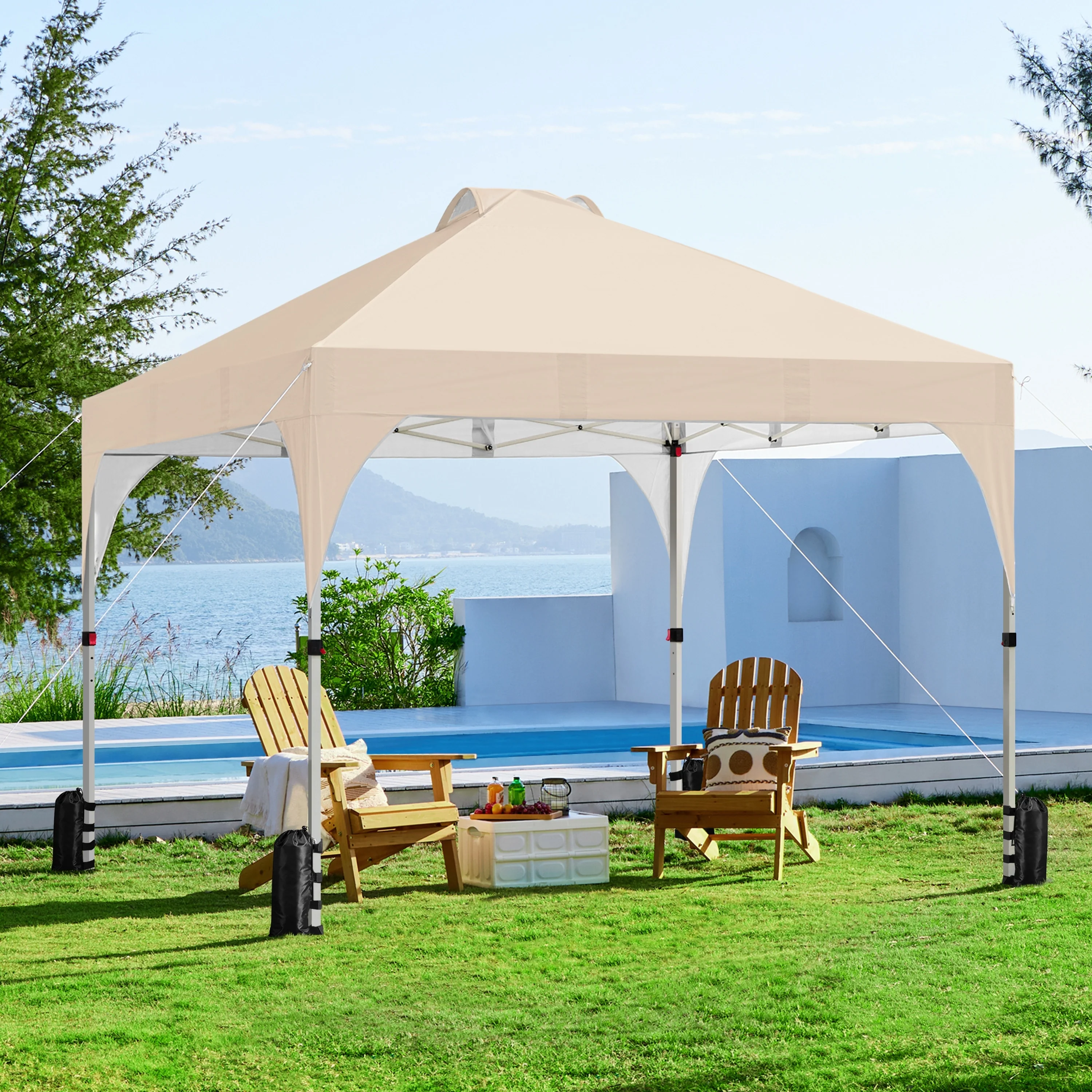 Yaheetech 10x10ft Outdoor Pop-Up Canopy Tent with Stakes Sandbags