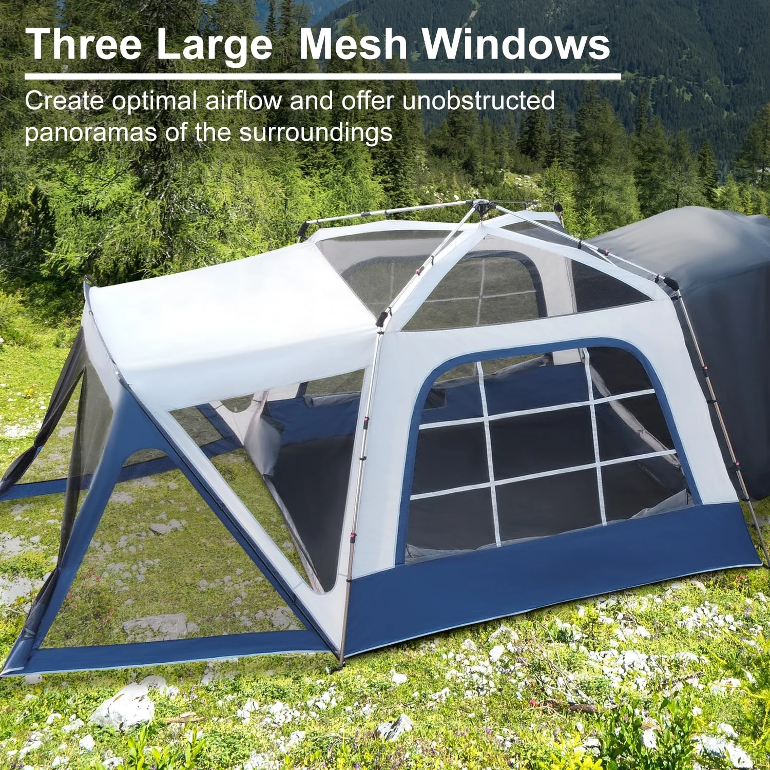 Camping Tent Fabric 9 Persons Dark Blue and Blue