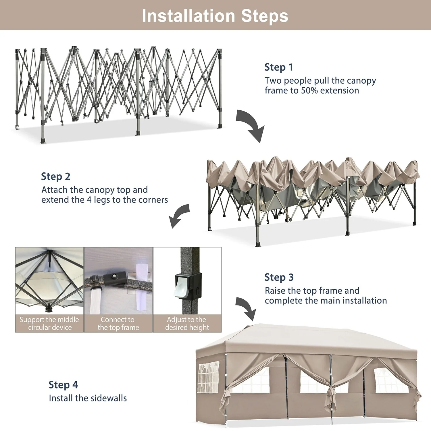 10x20 Heavy Duty Pop Up Canopy with Removable Sidewalls,Wedding Party