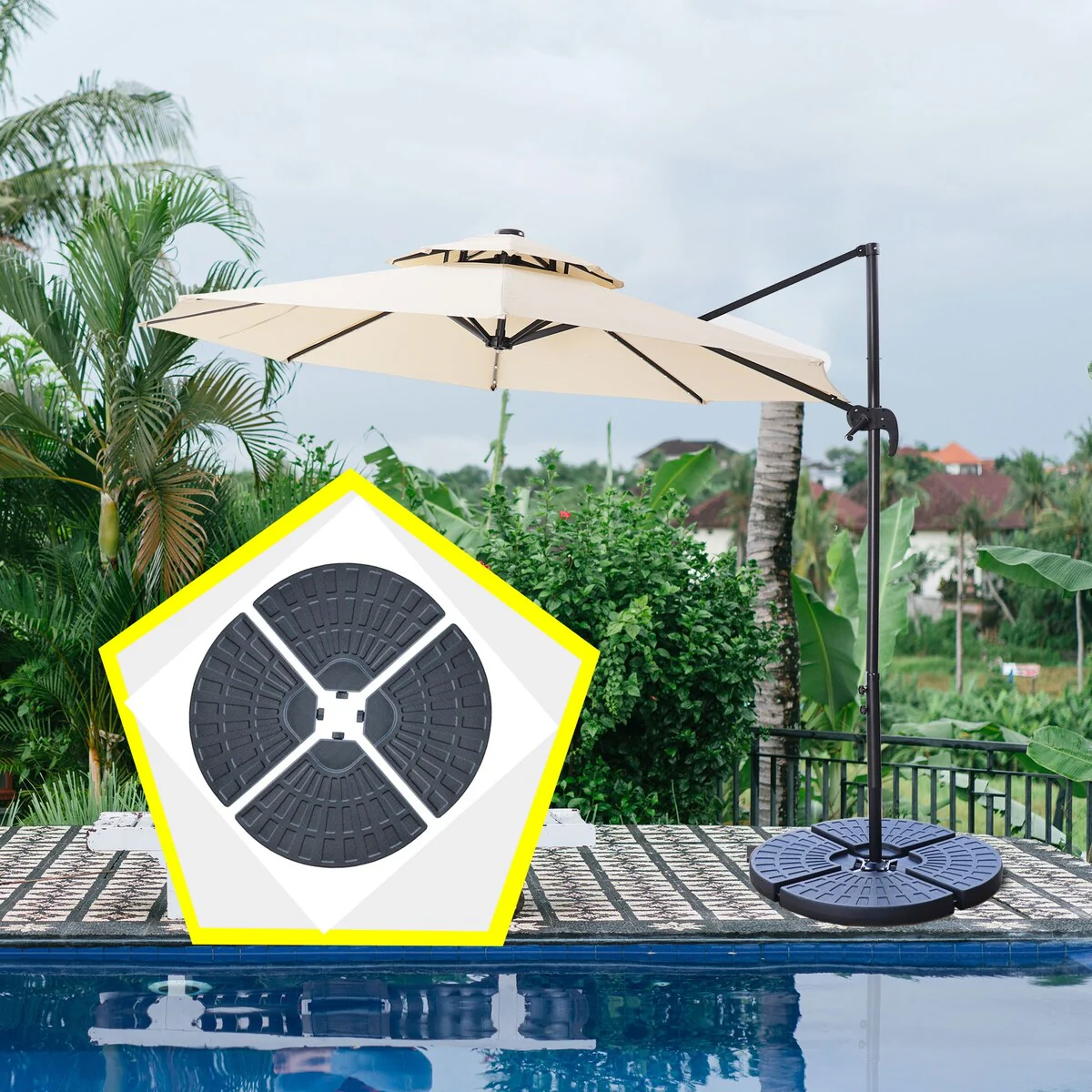4 Piece Umbrella Base, Square Shaped, Suitable for Various Types of Cross Umbrella Bases