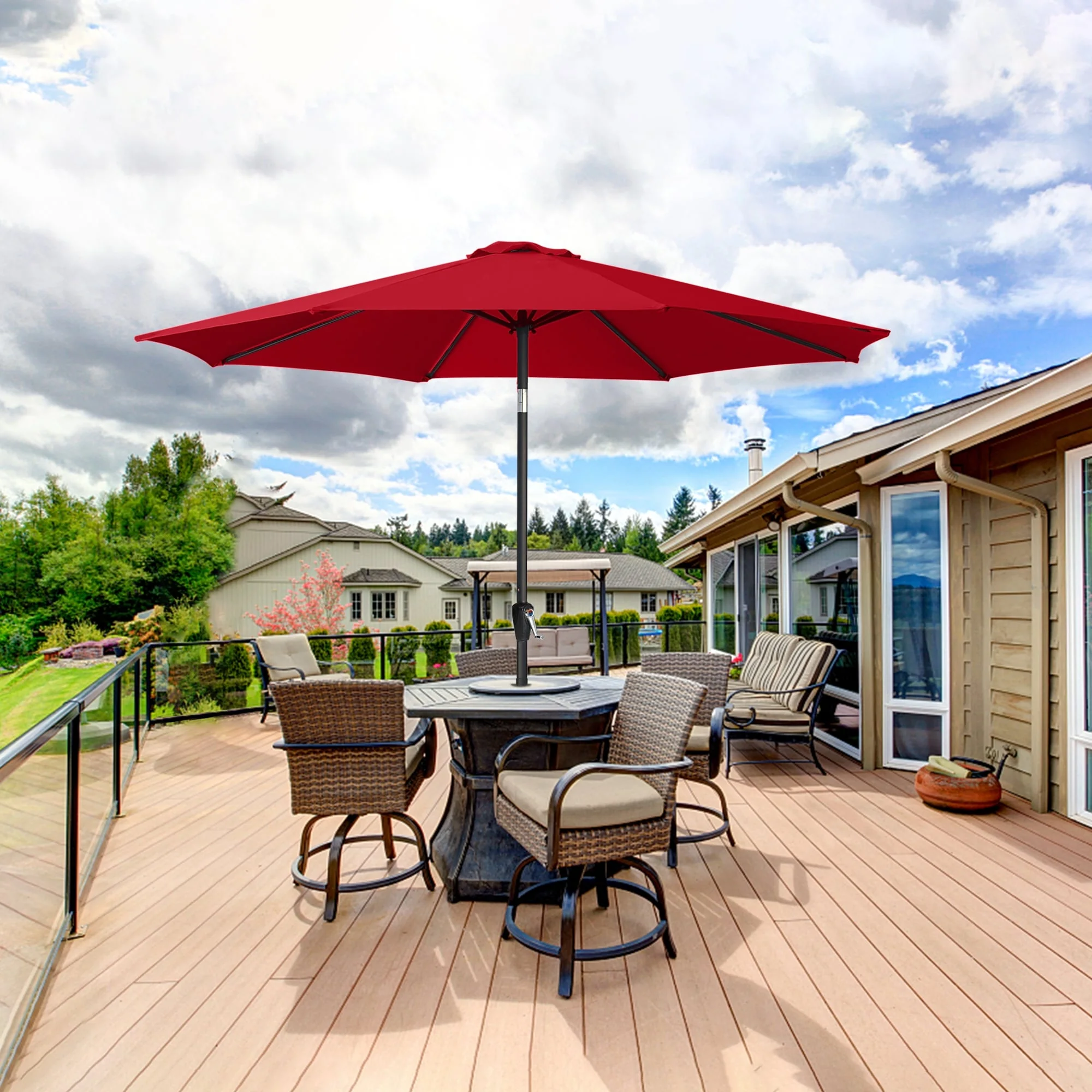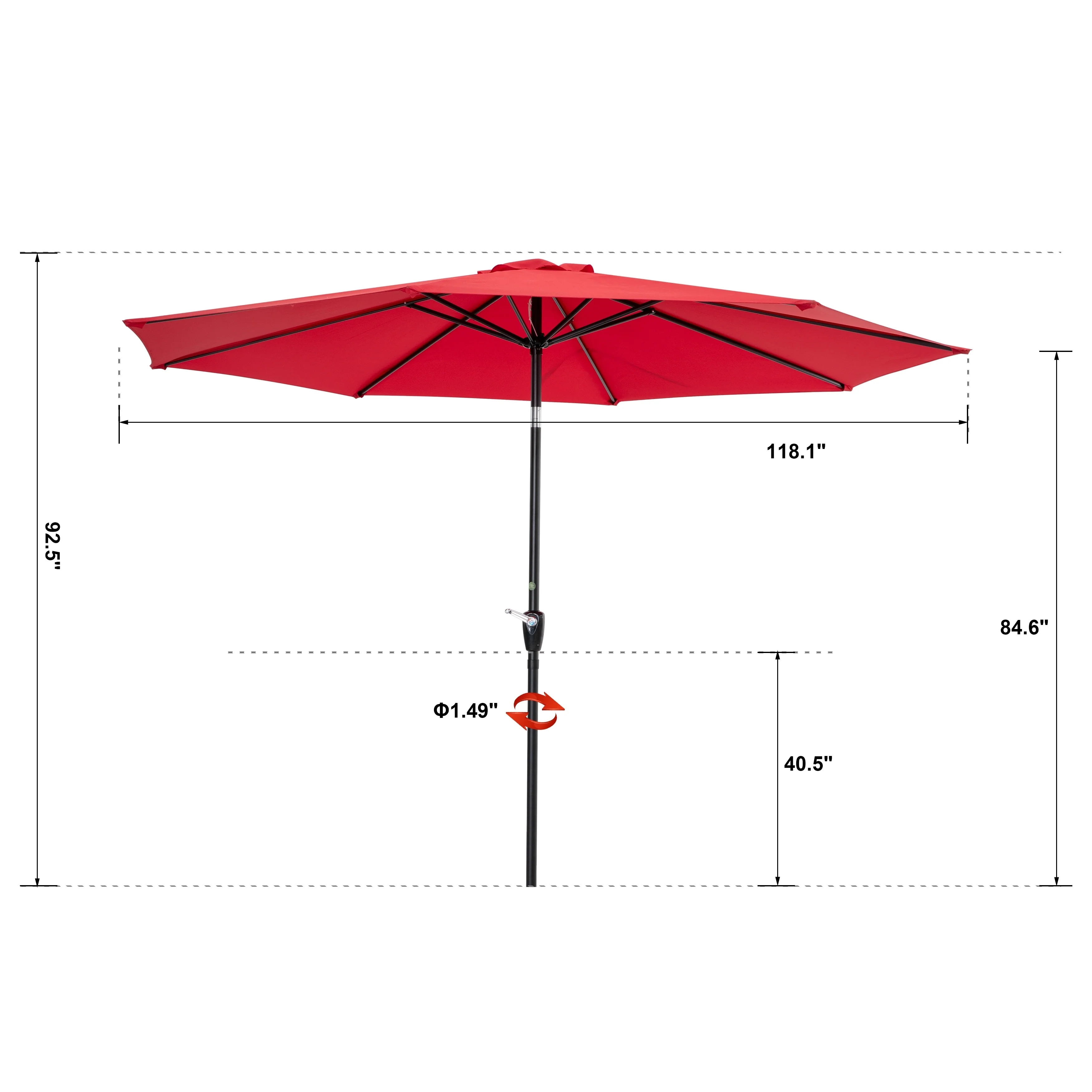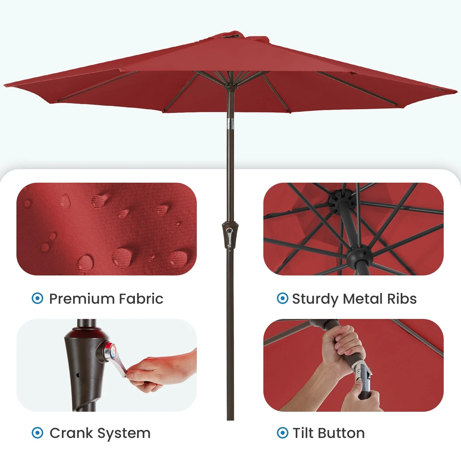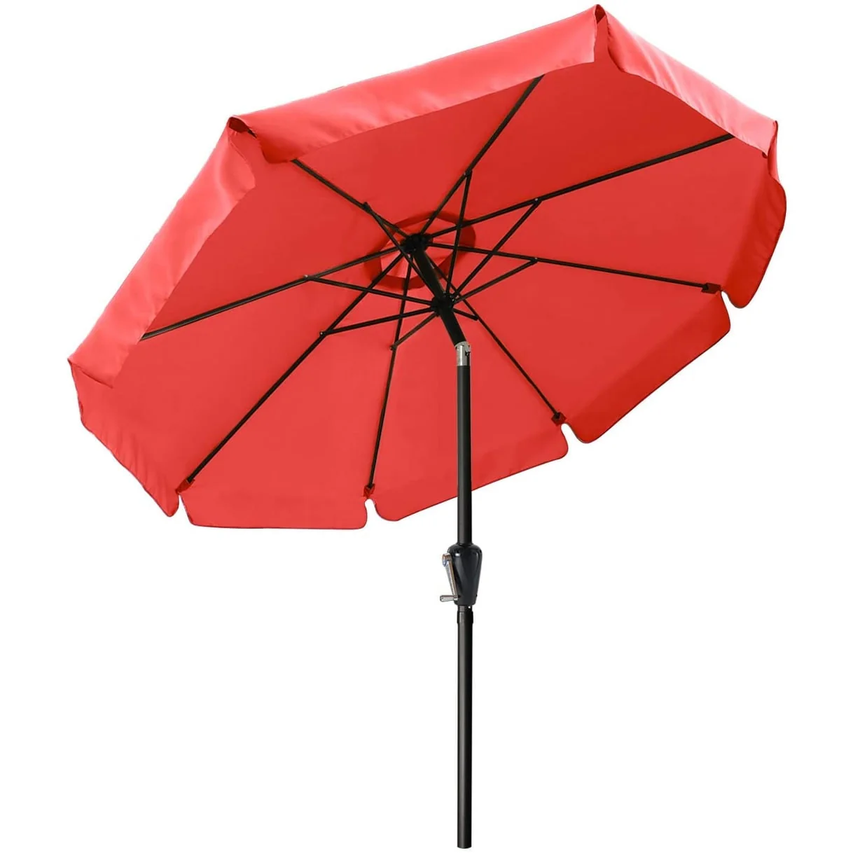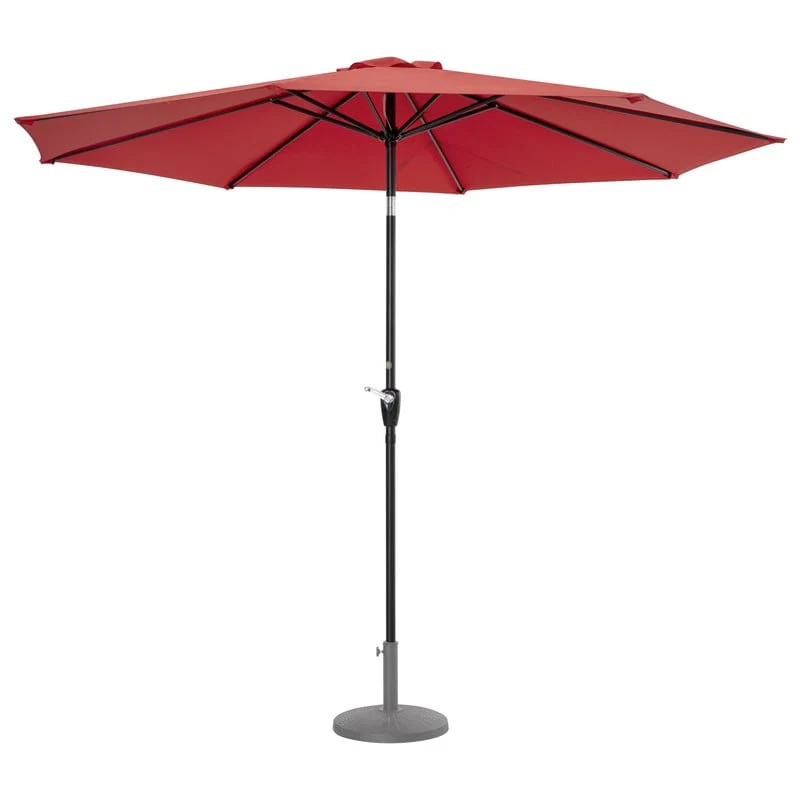 Outdoor 10' Round Red Patio Vented Umbrella, Crank, Push Button Tilt