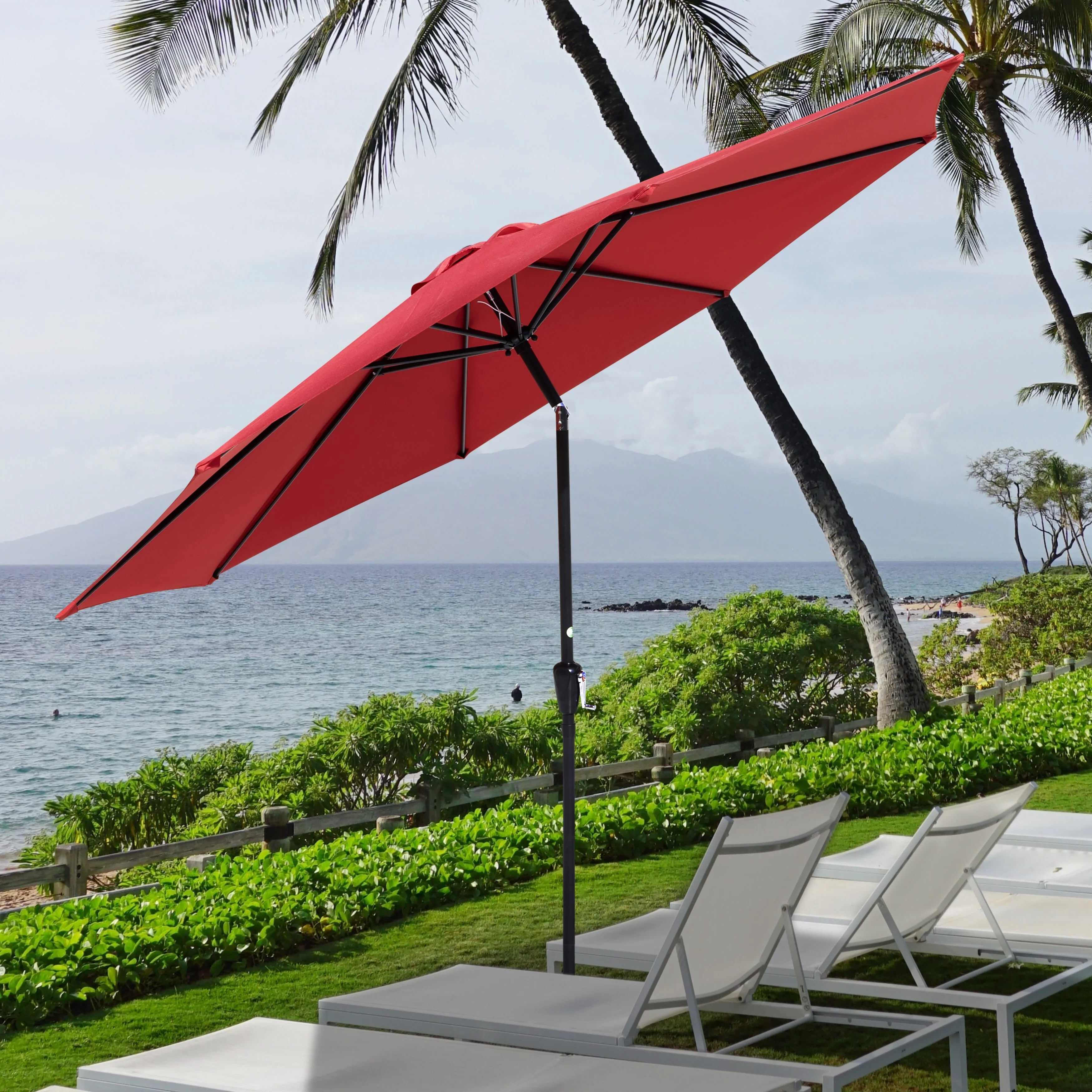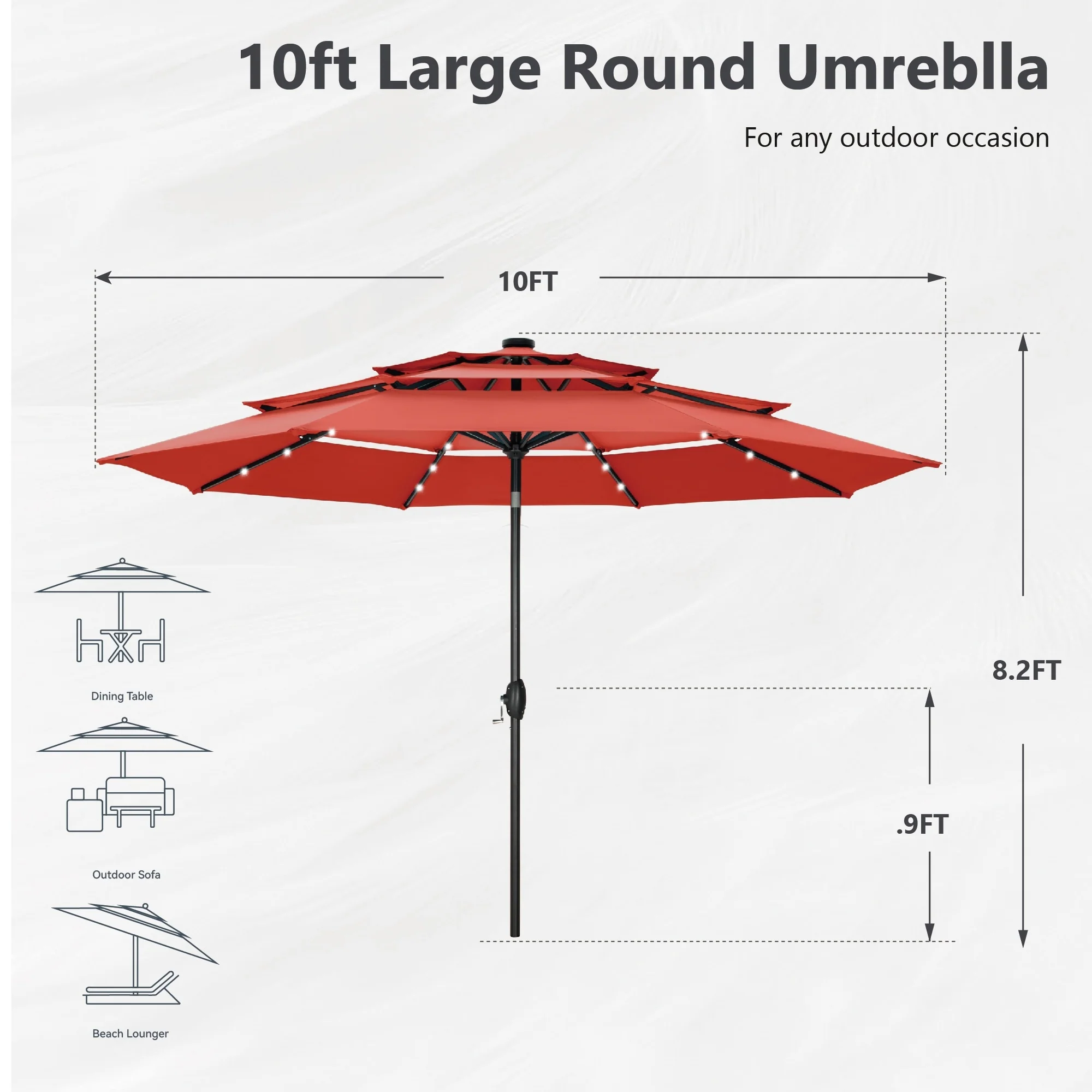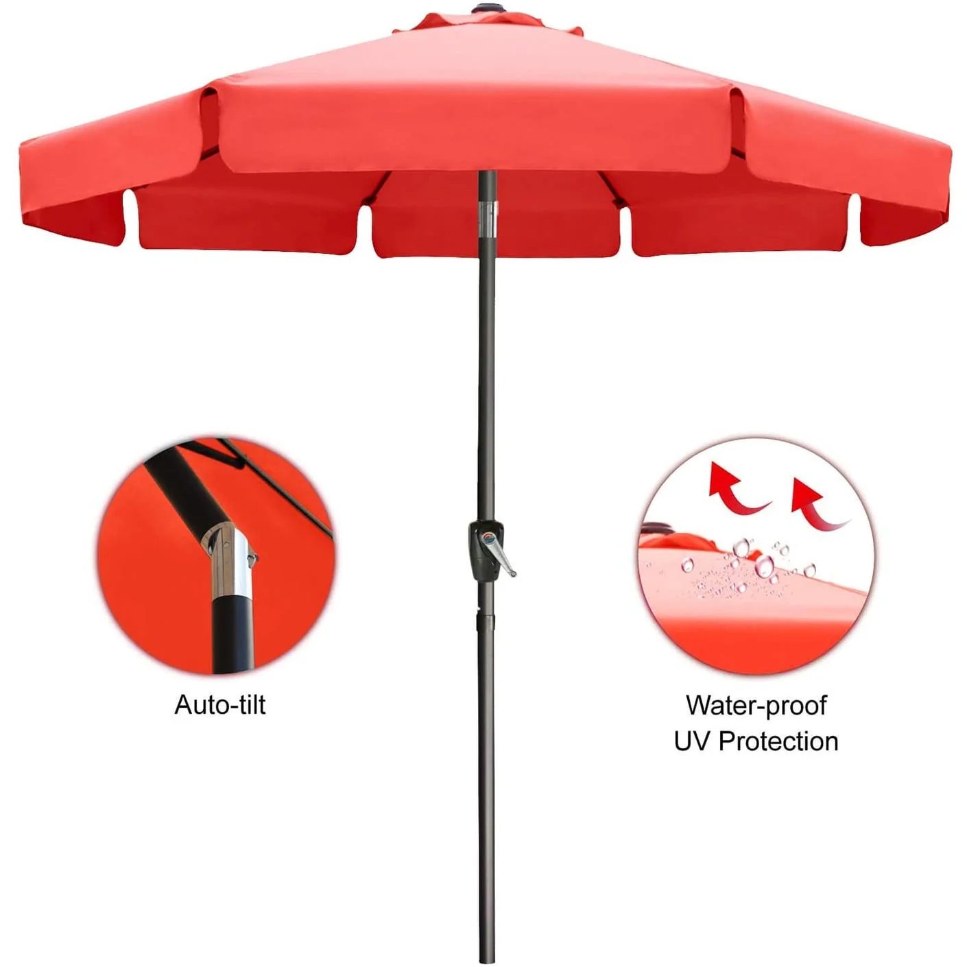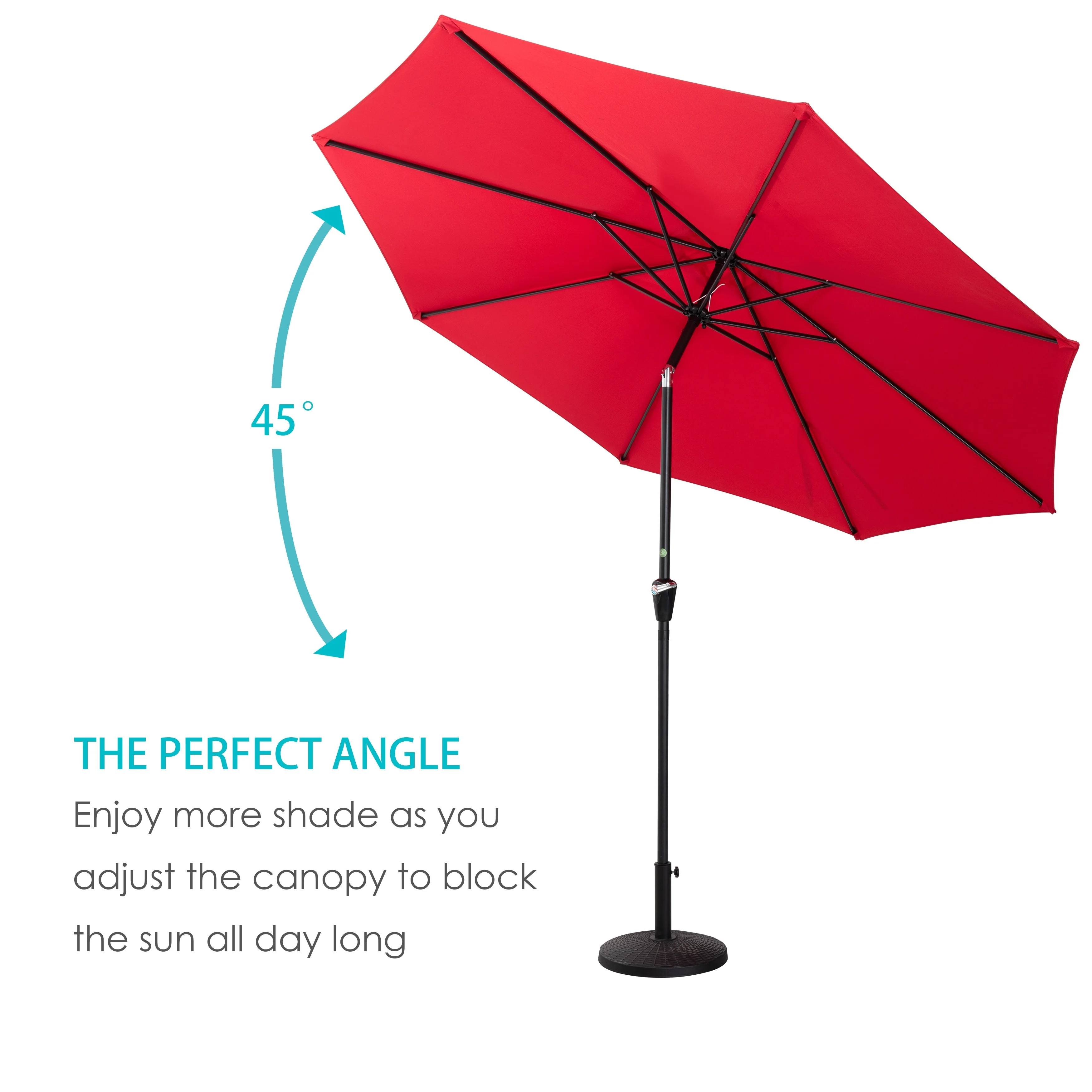 Outdoor 10' Round Red Patio Vented Umbrella, Crank, Push Button Tilt