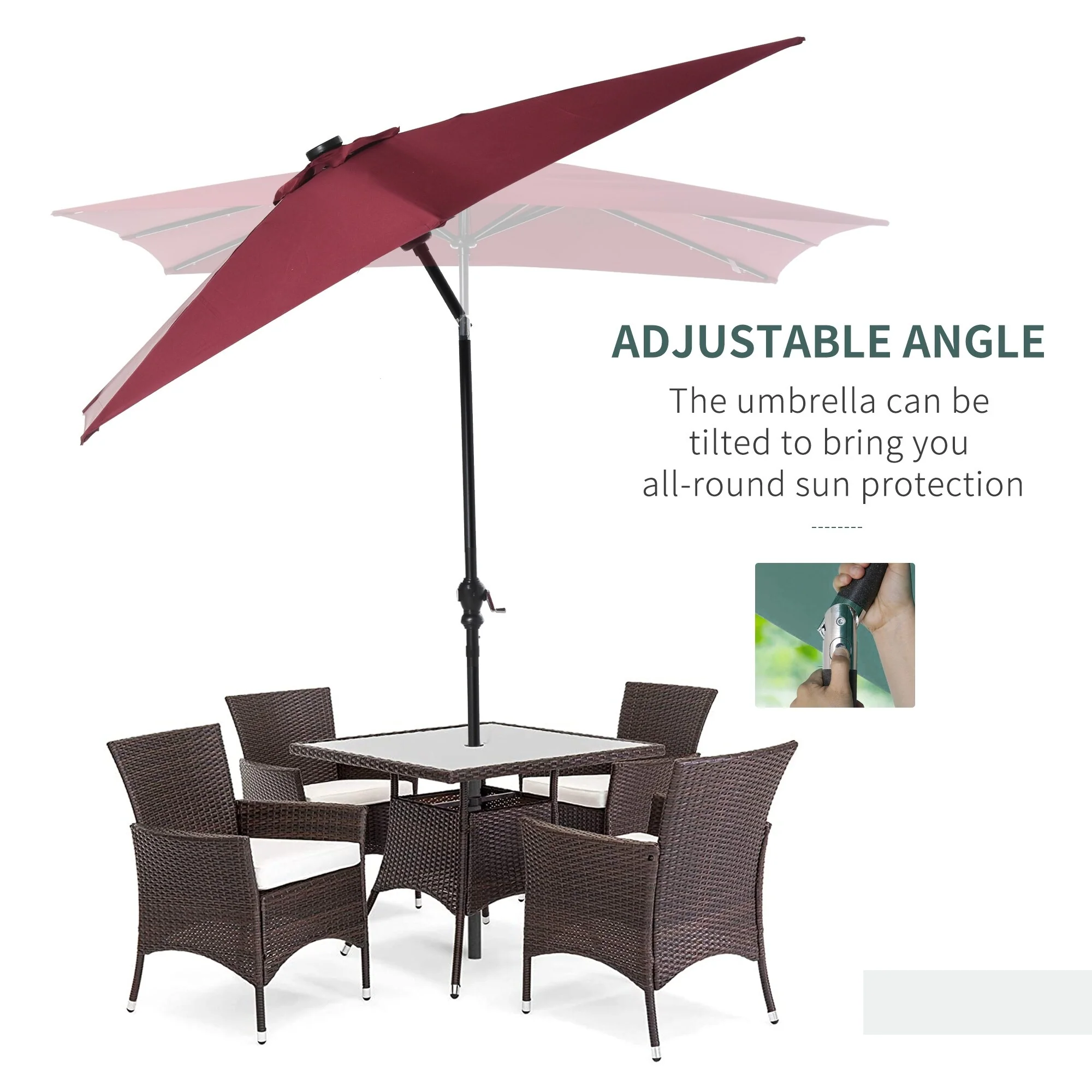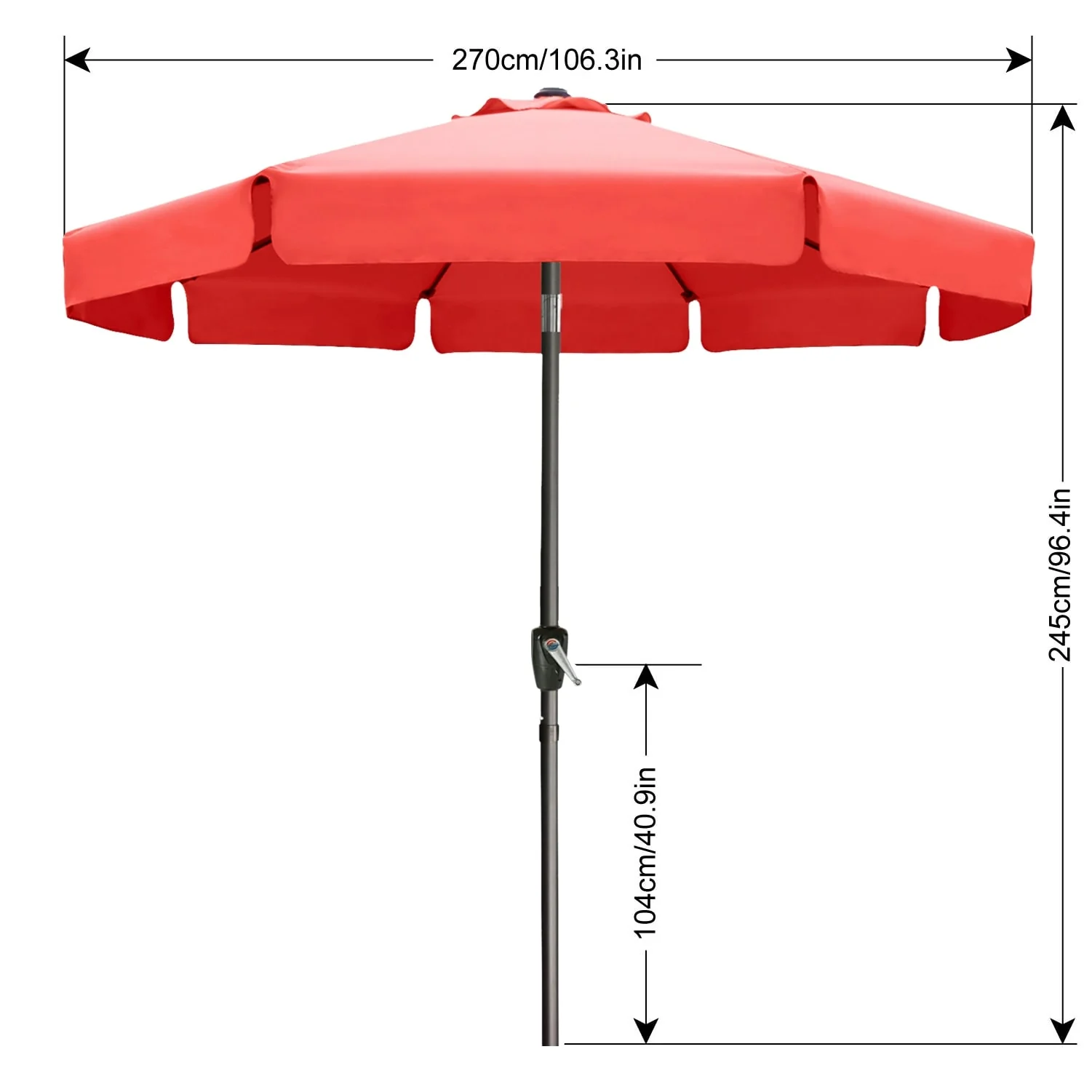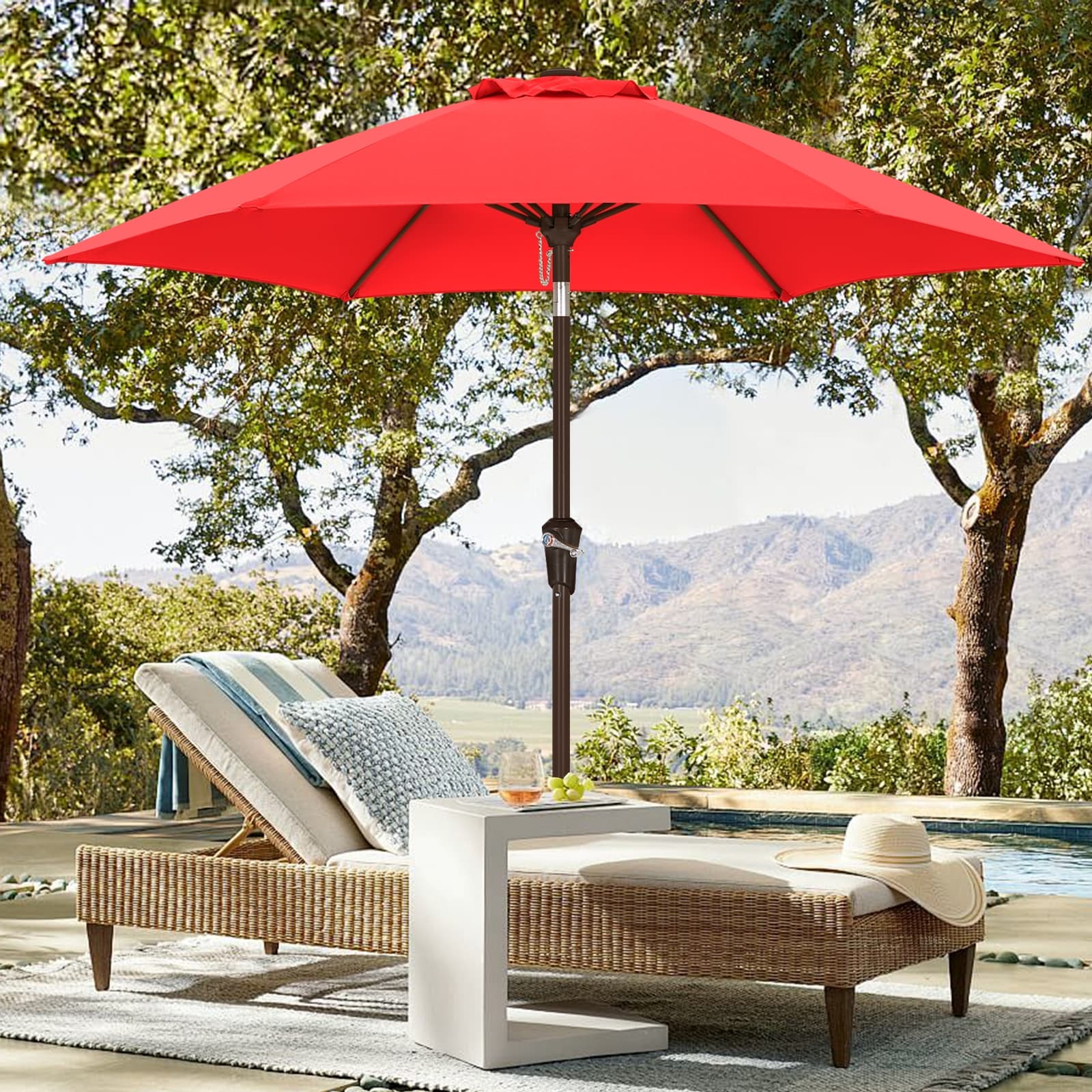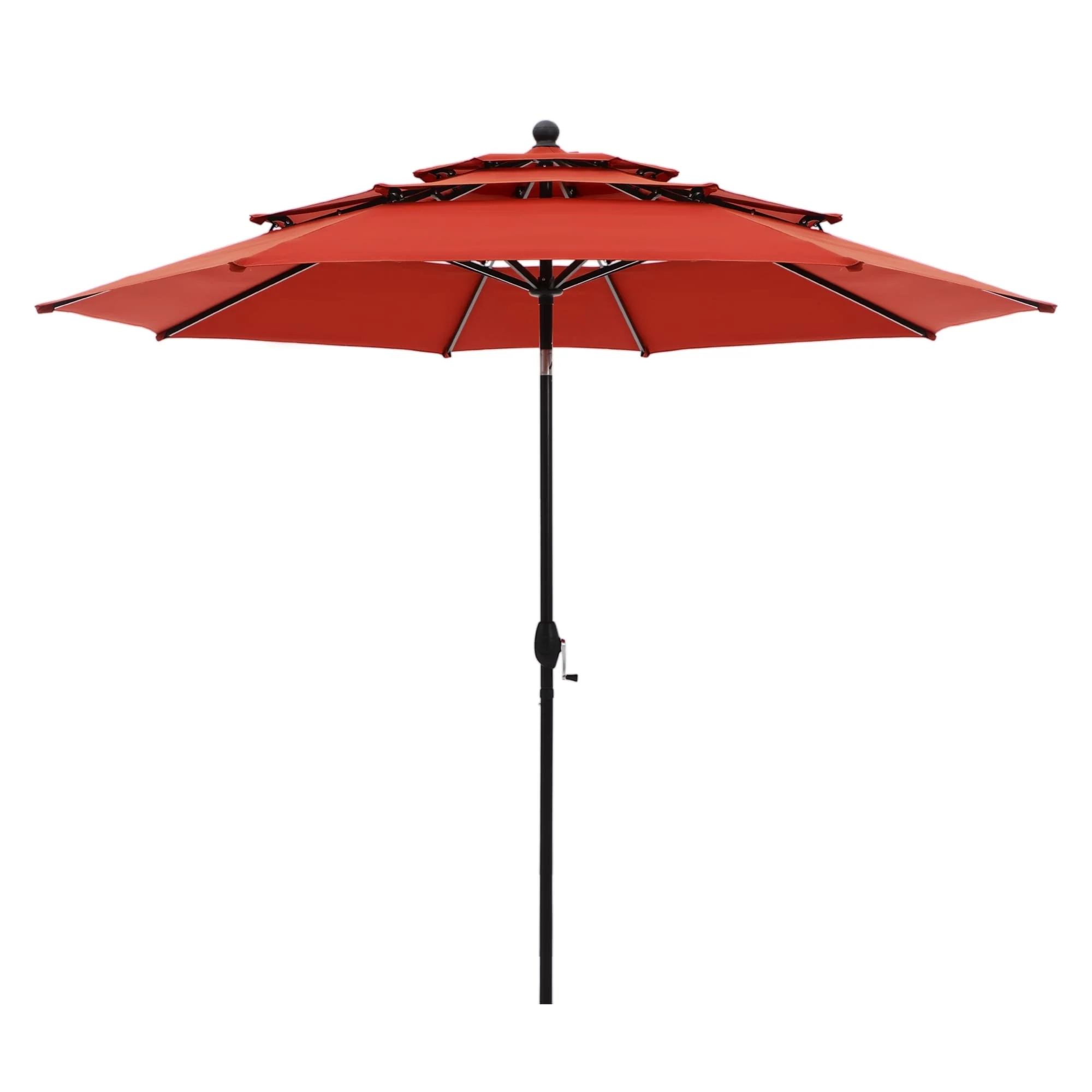 Outdoor 10' Round Red Patio Vented Umbrella, Crank, Push Button Tilt