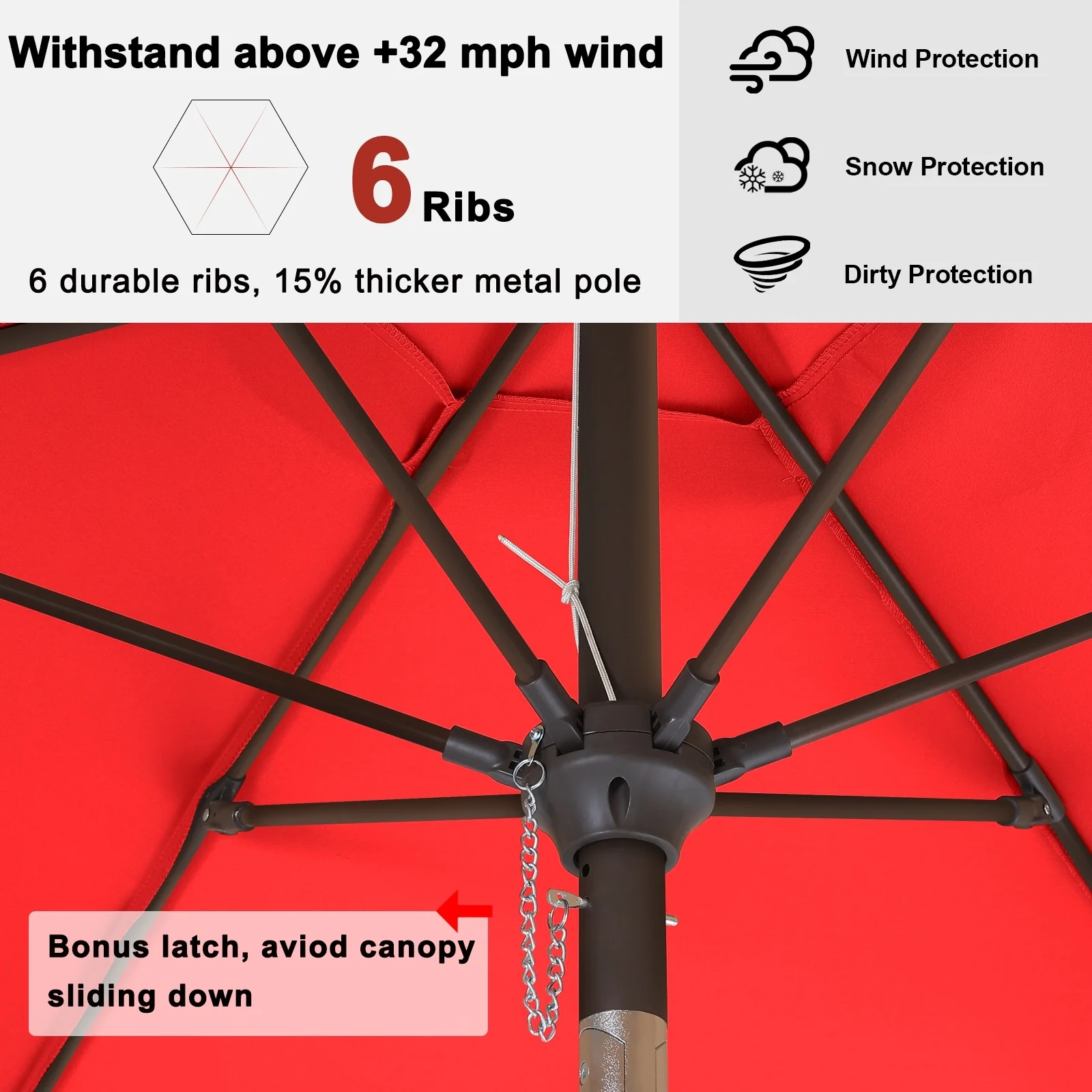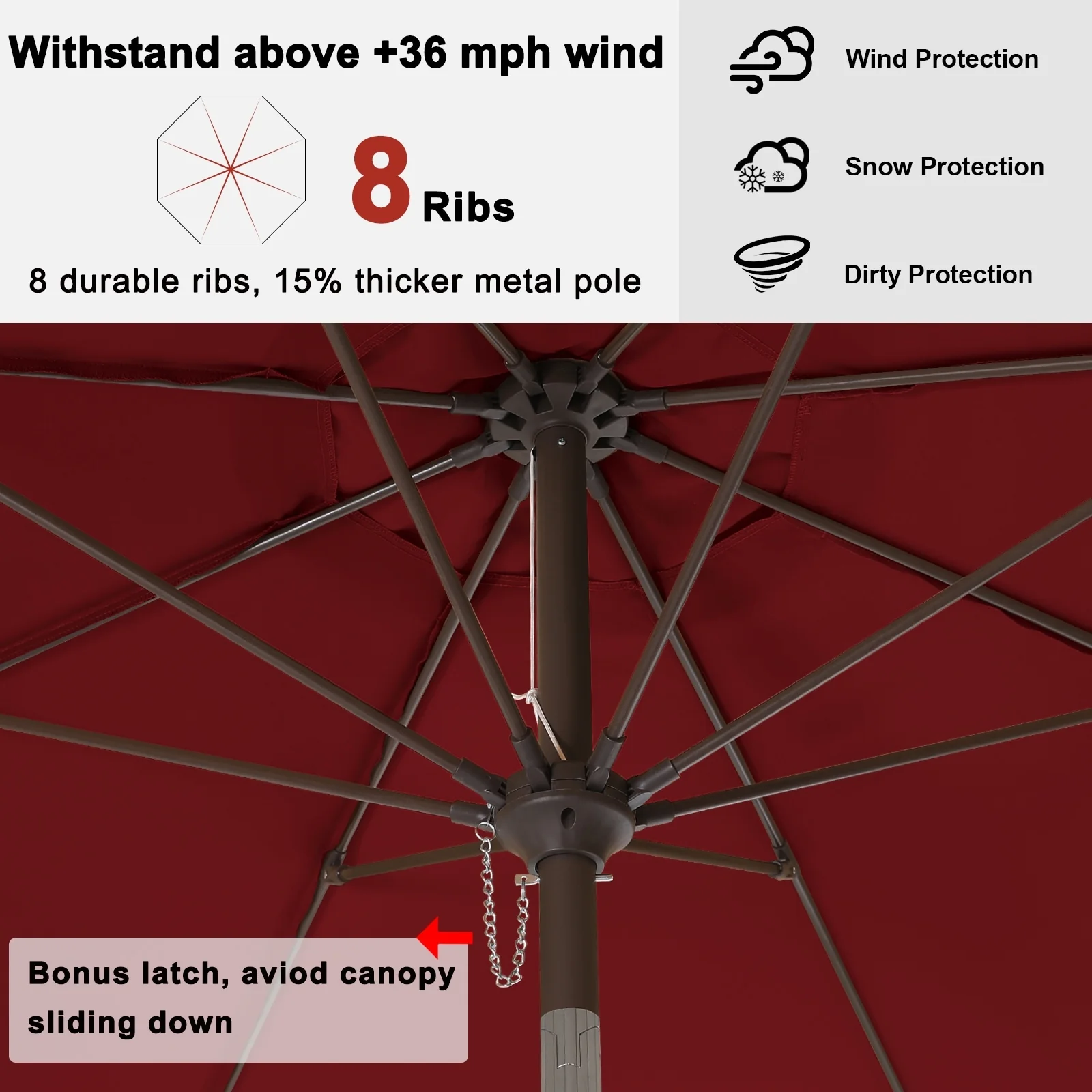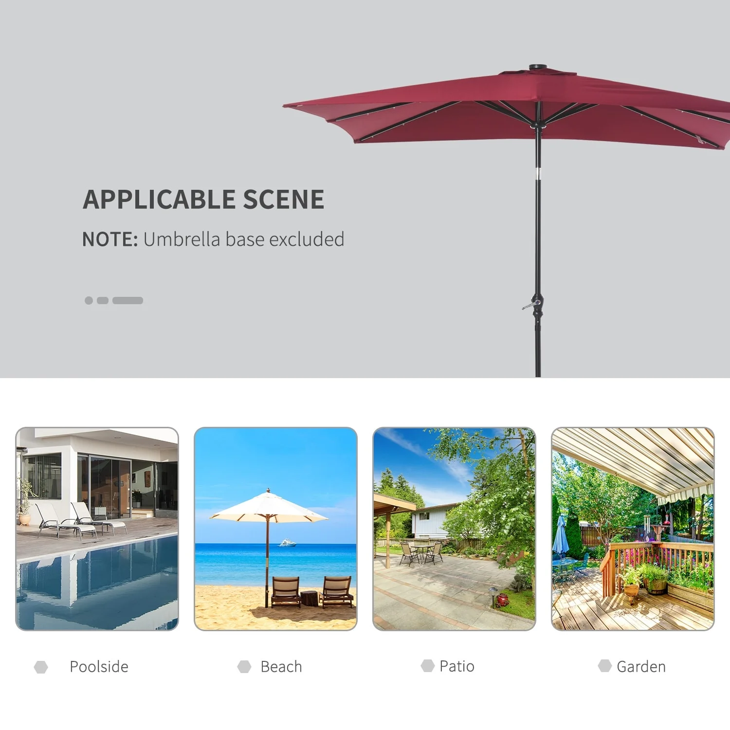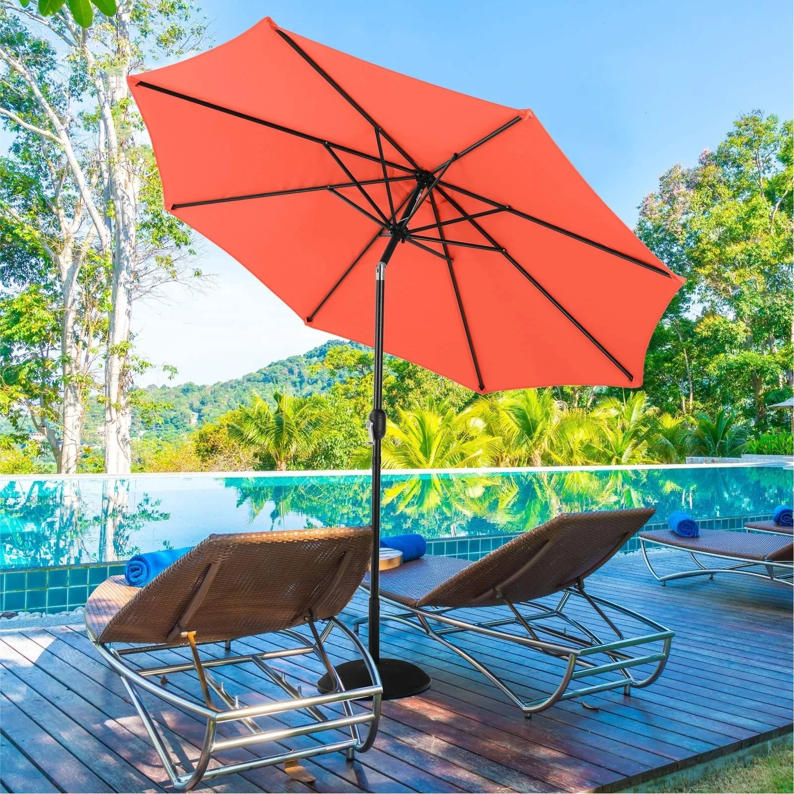 Outdoor 10' Round Red Patio Vented Umbrella, Crank, Push Button Tilt