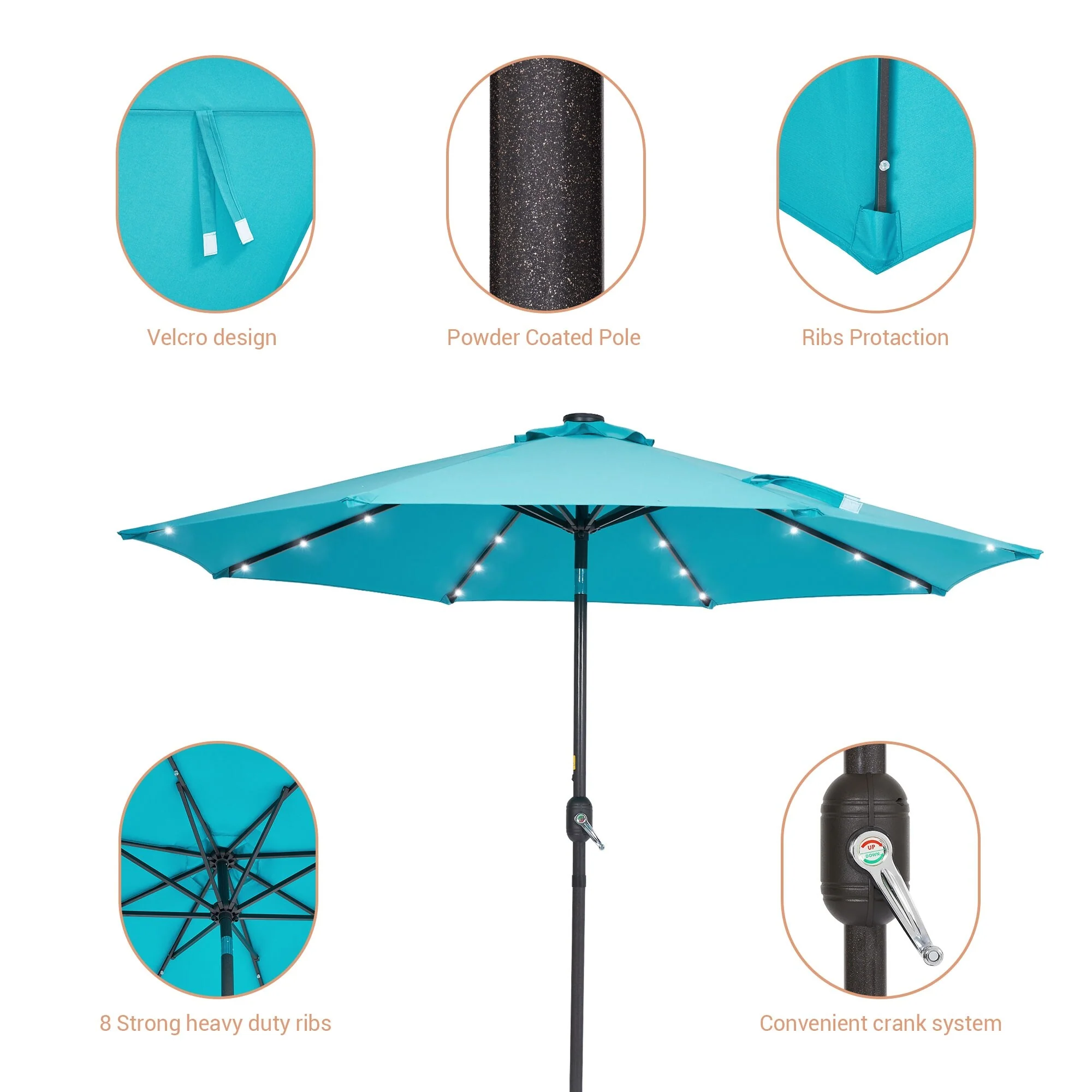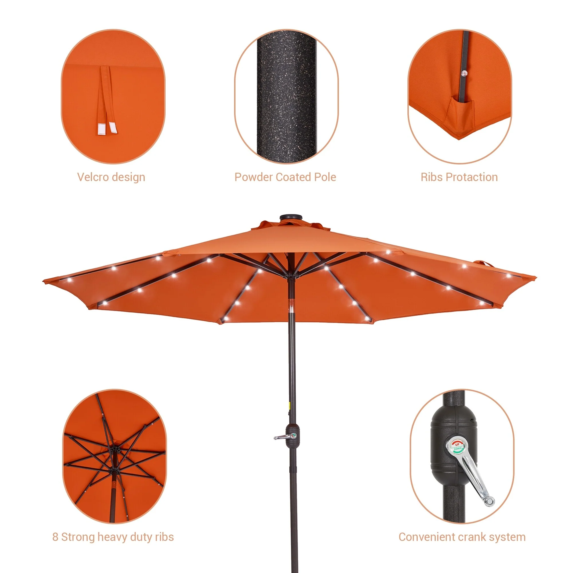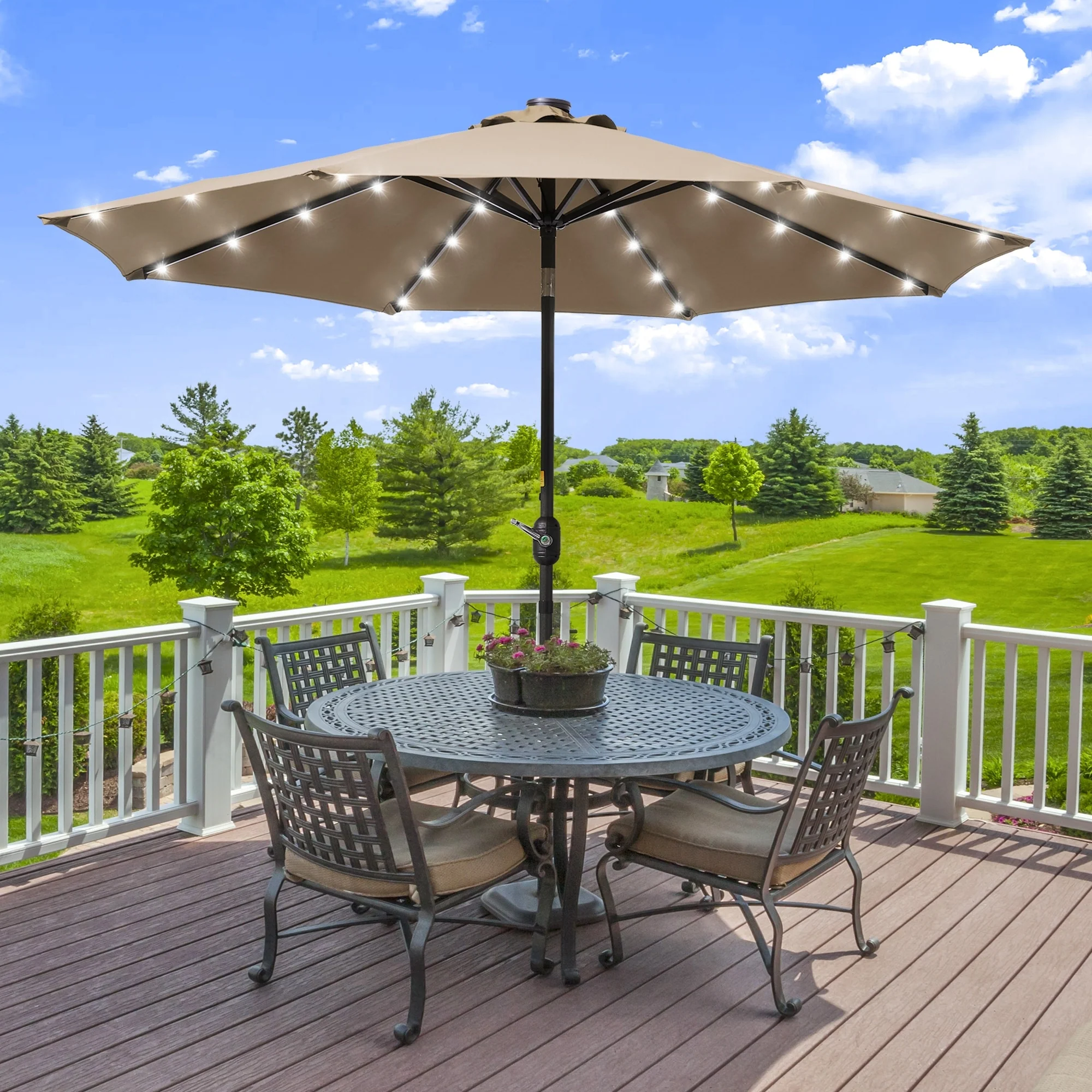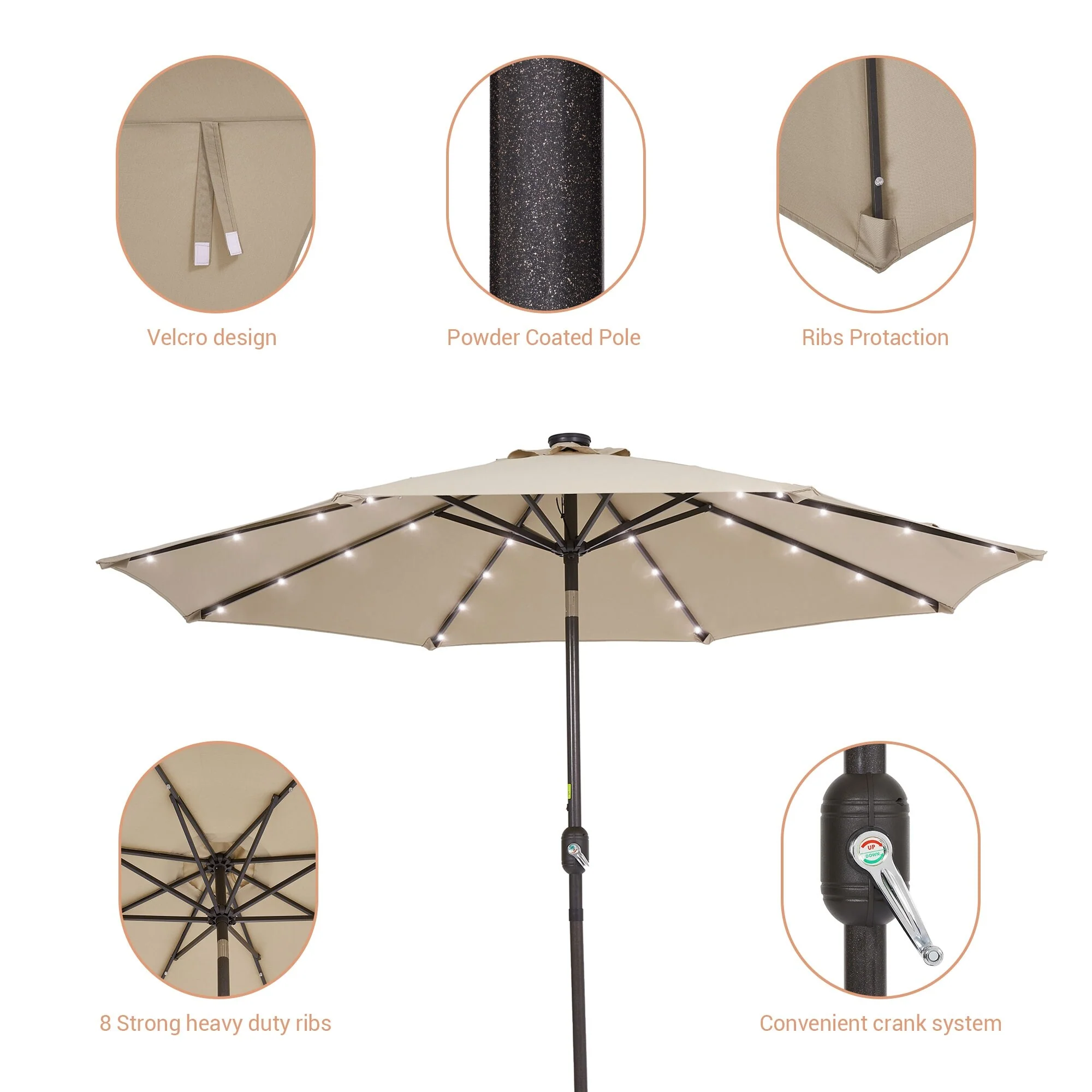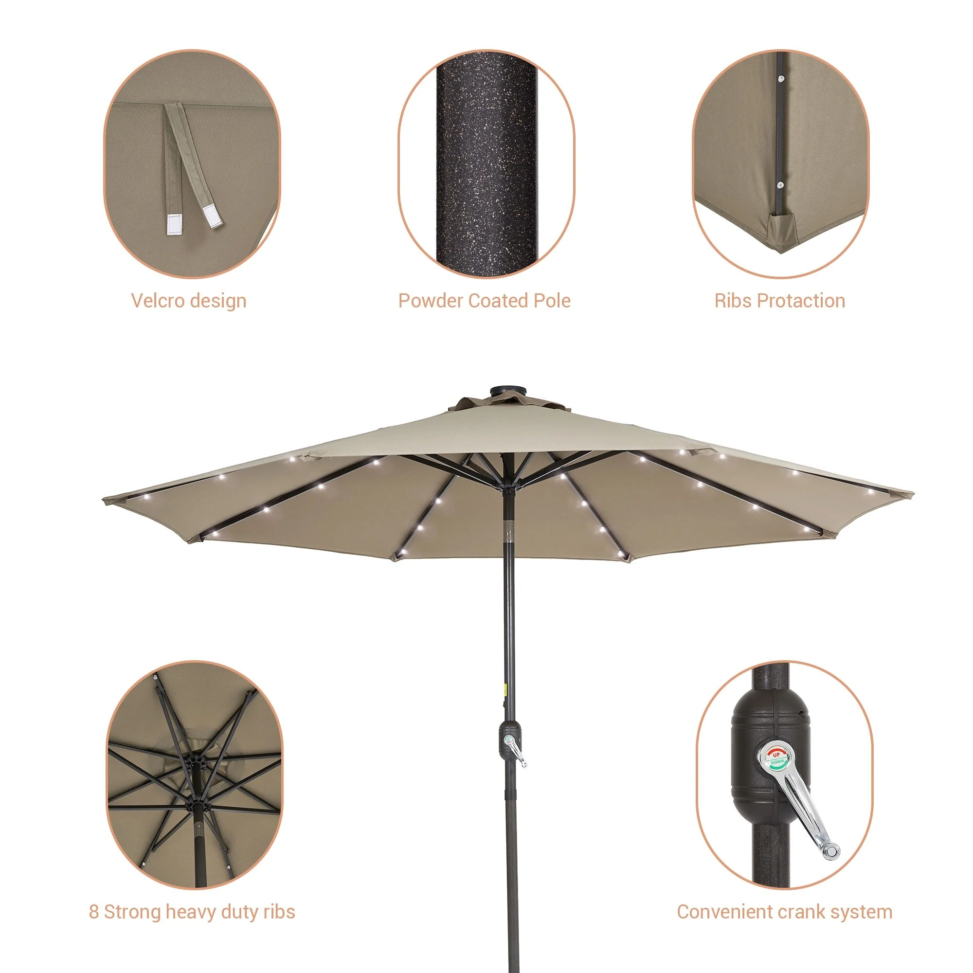 LIVOOSUN LED 9ft Patio Umbrella Market Umbrella Steel Tilt w/Crank
