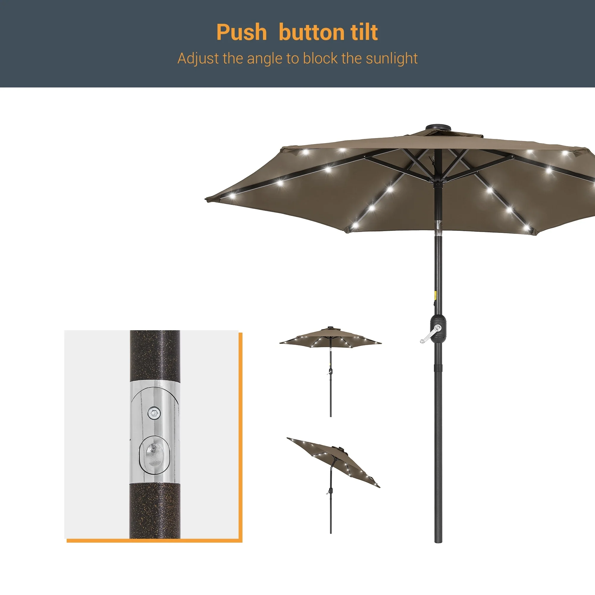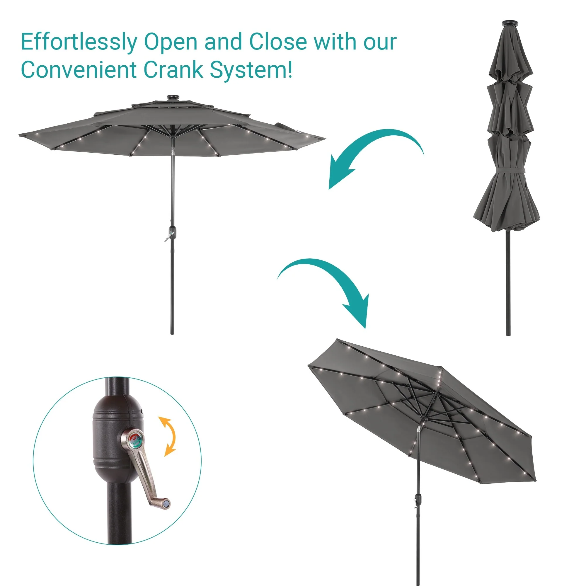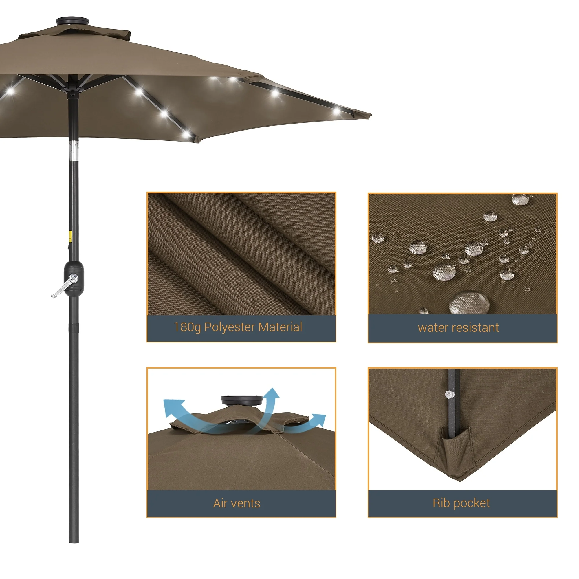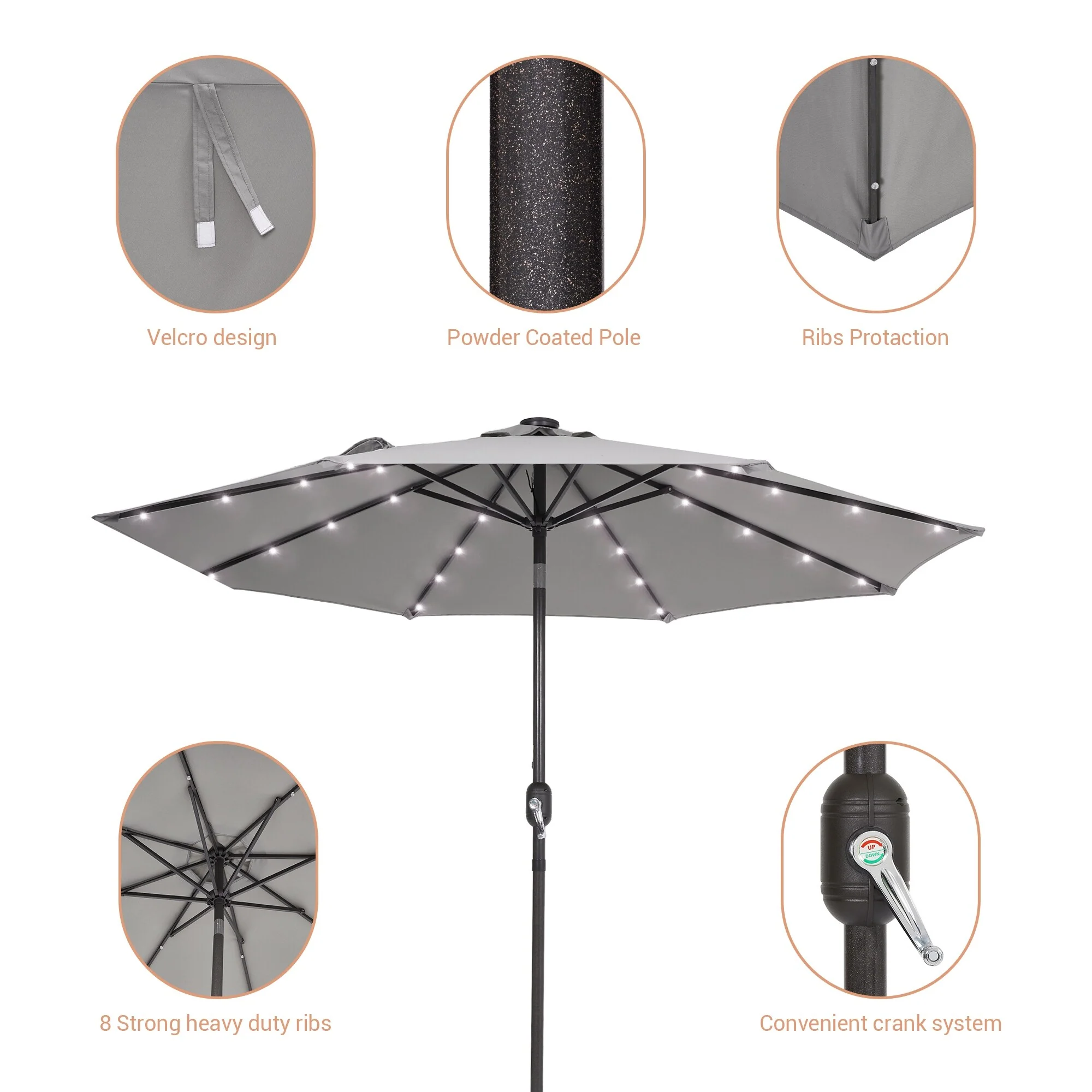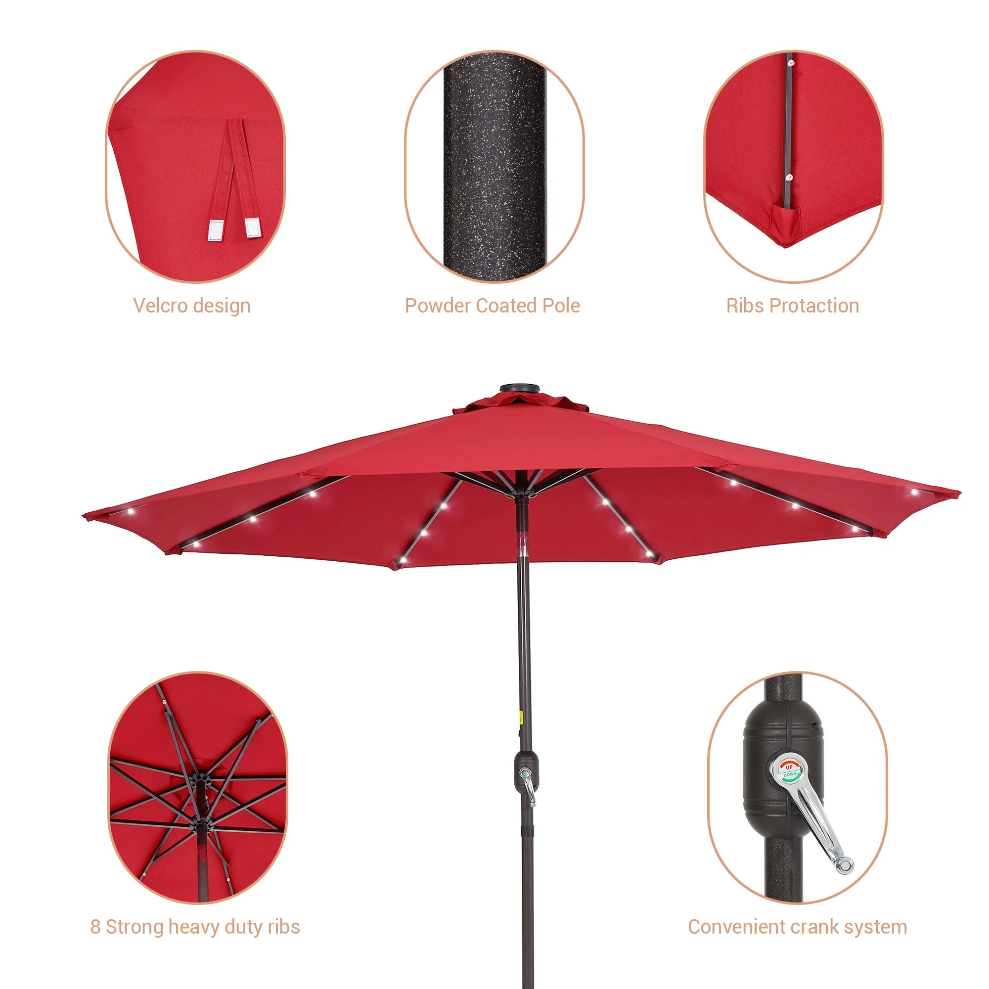 LIVOOSUN LED 9ft Patio Umbrella Market Umbrella Steel Tilt w/Crank