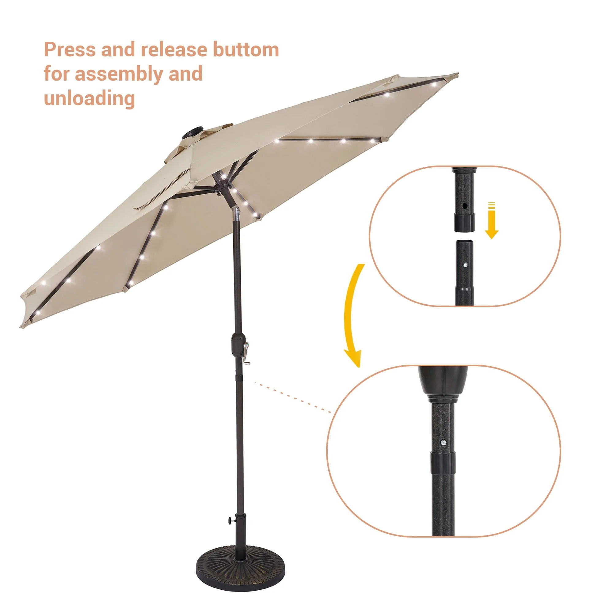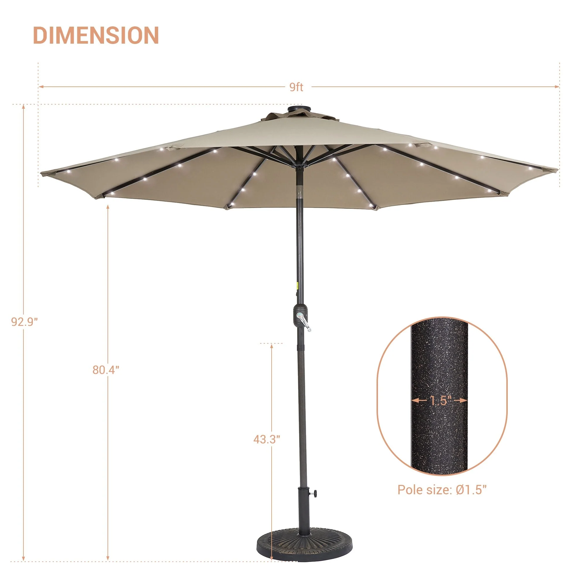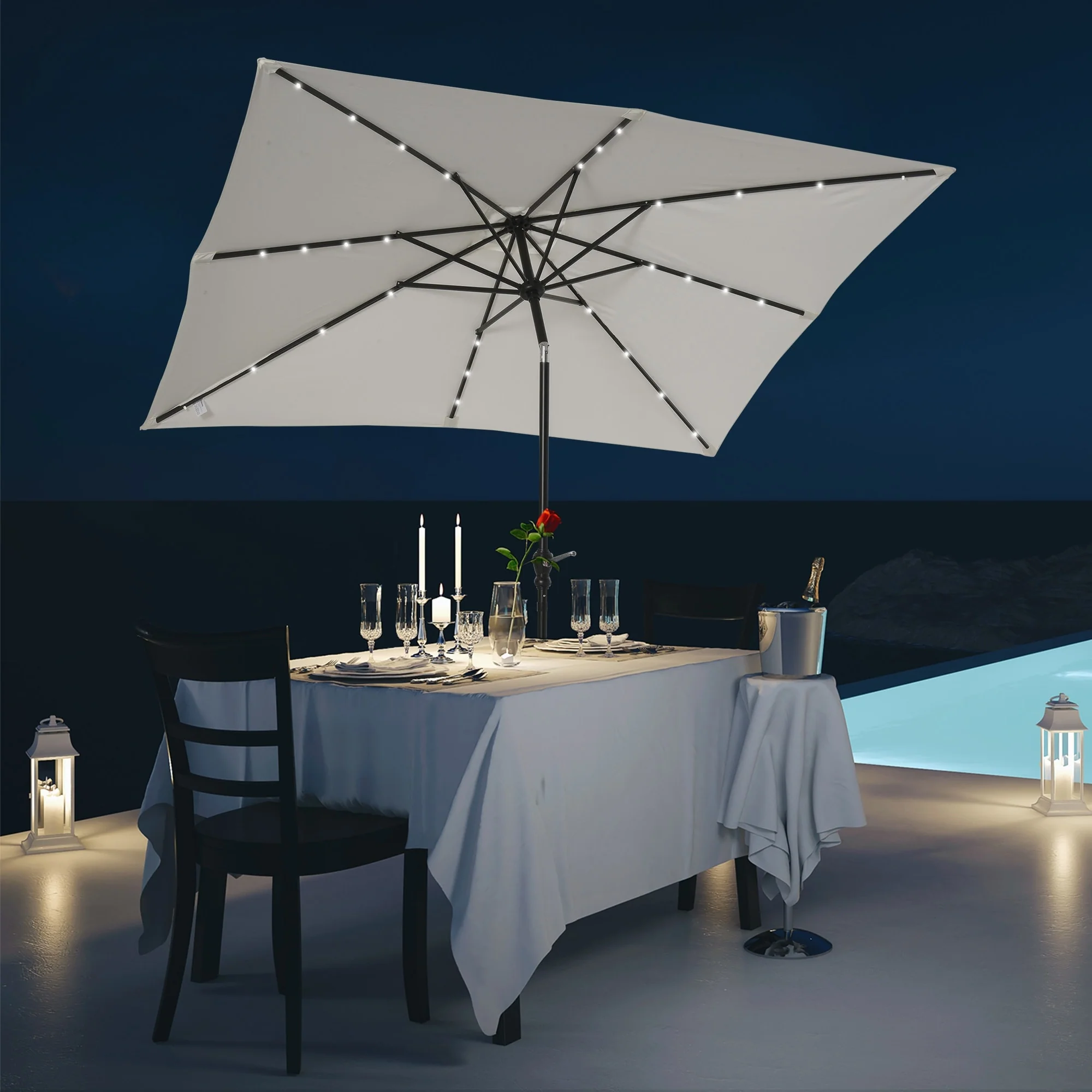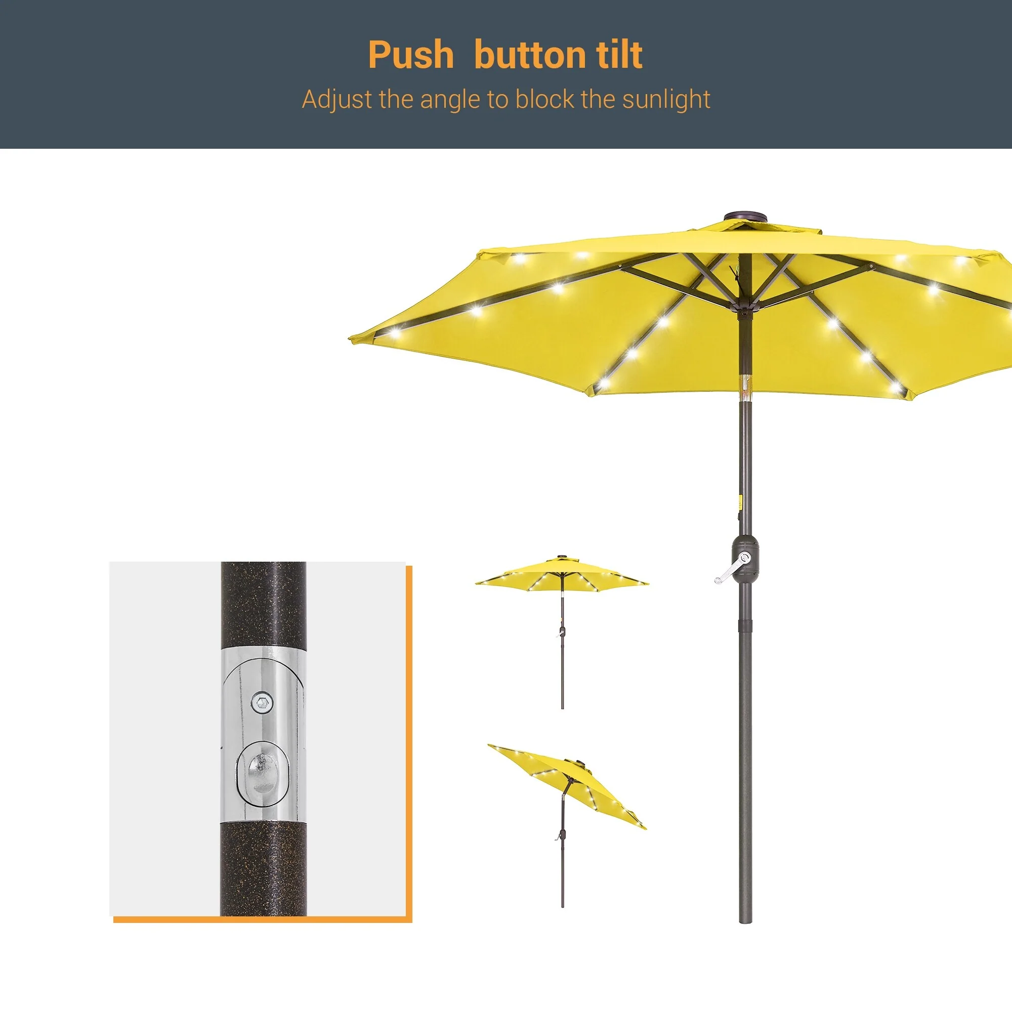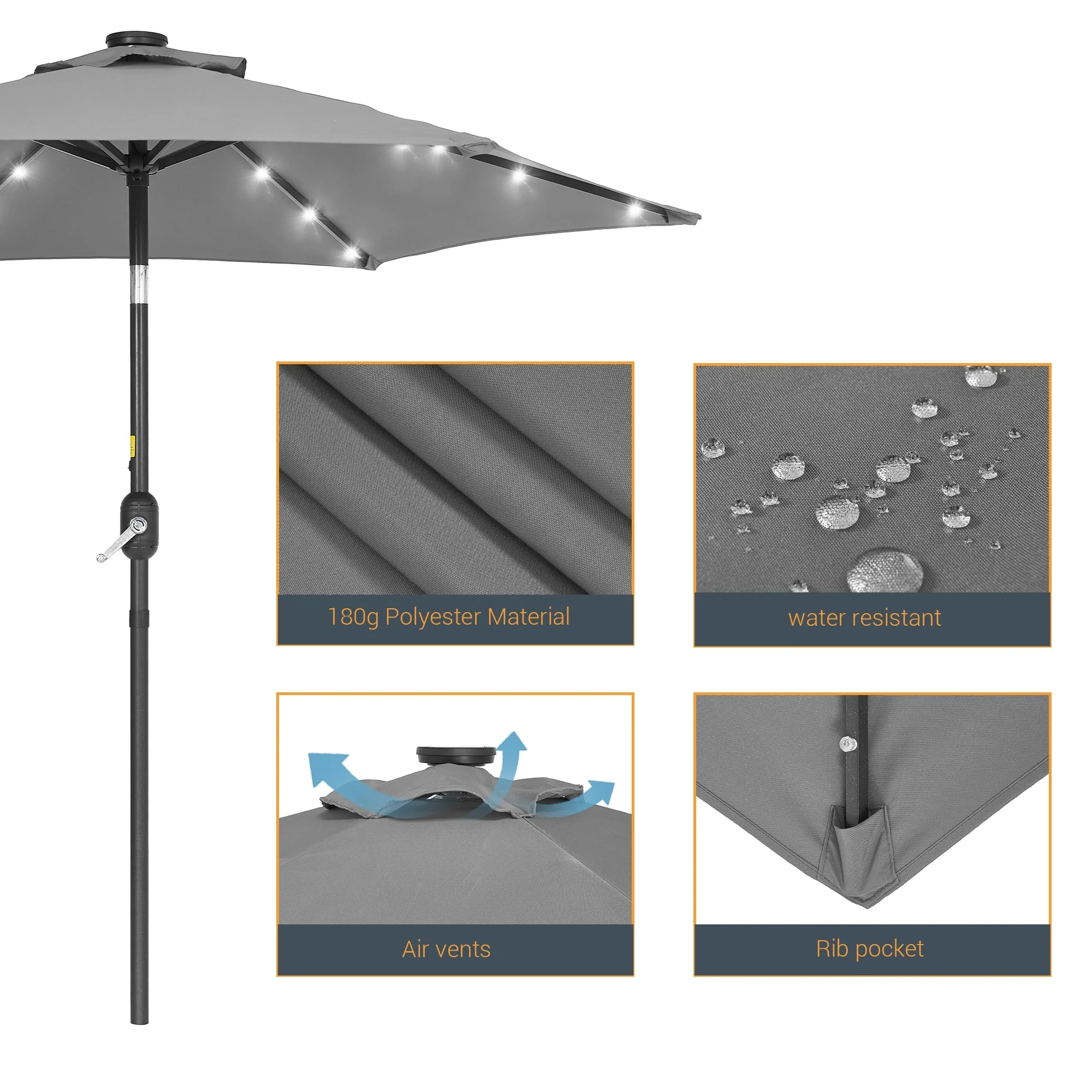LIVOOSUN LED 9ft Patio Umbrella Market Umbrella Steel Tilt w/Crank