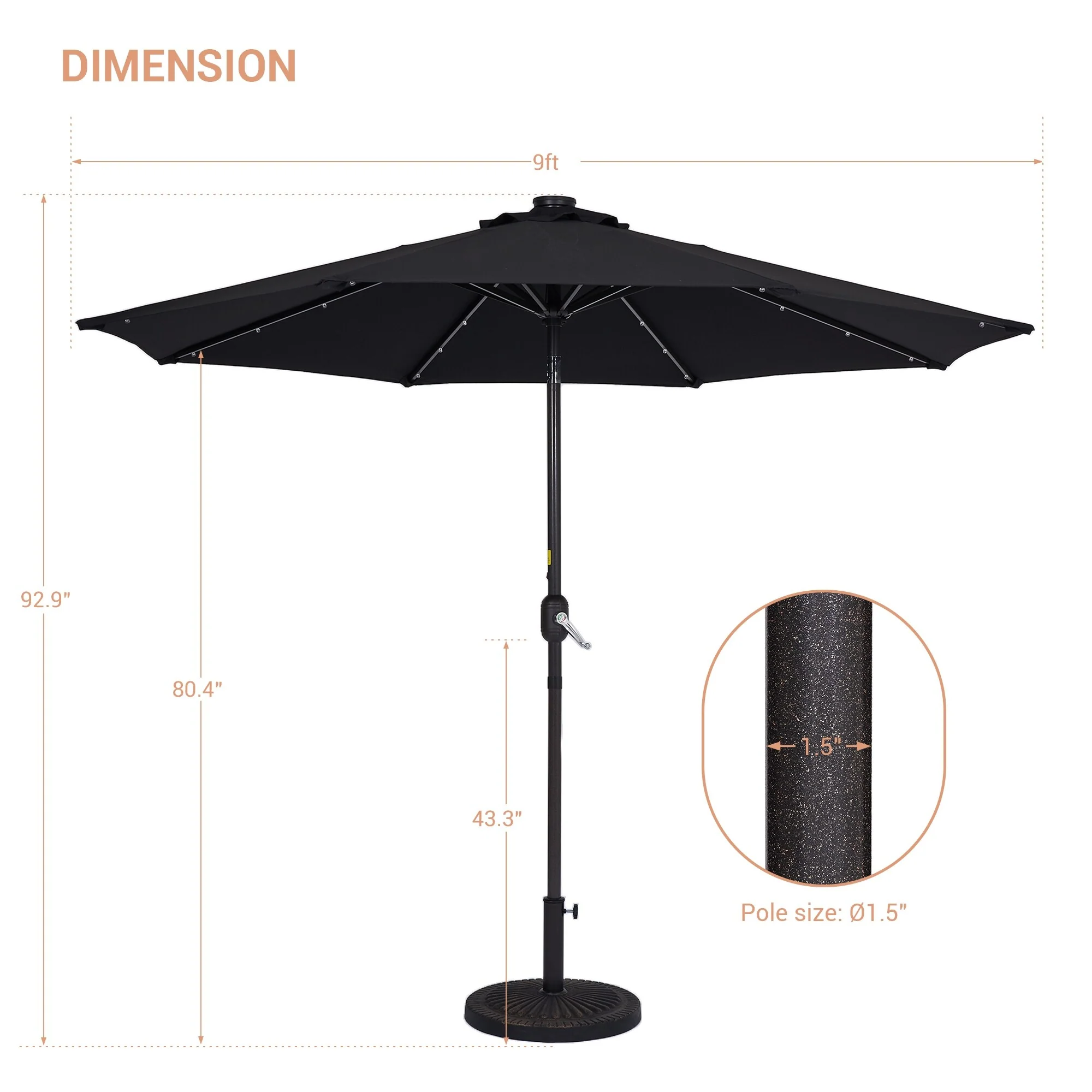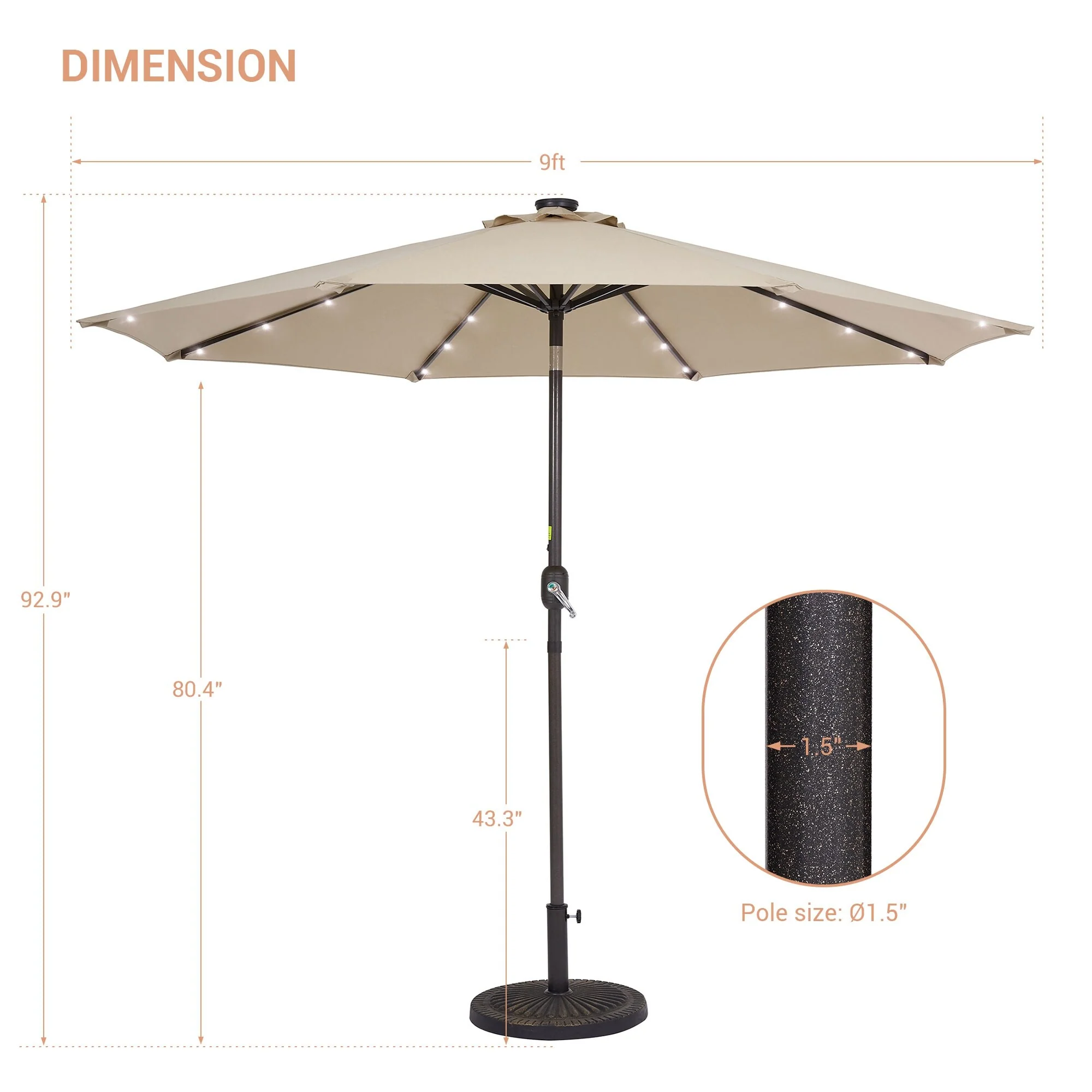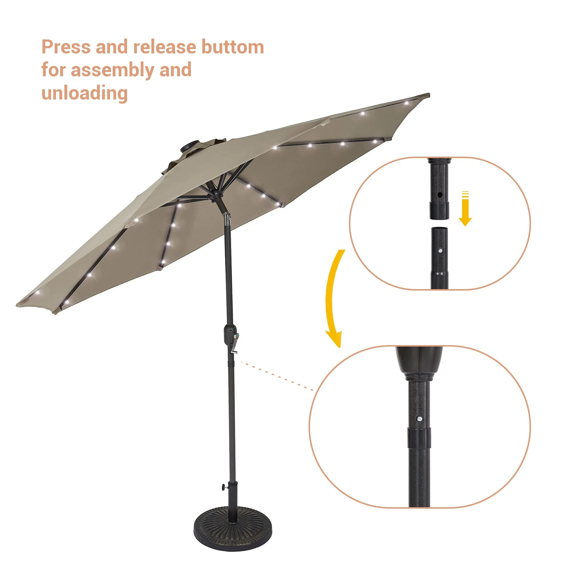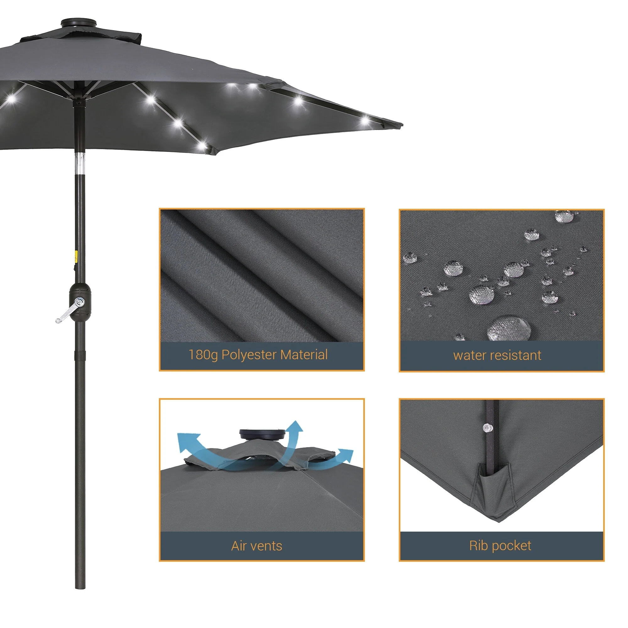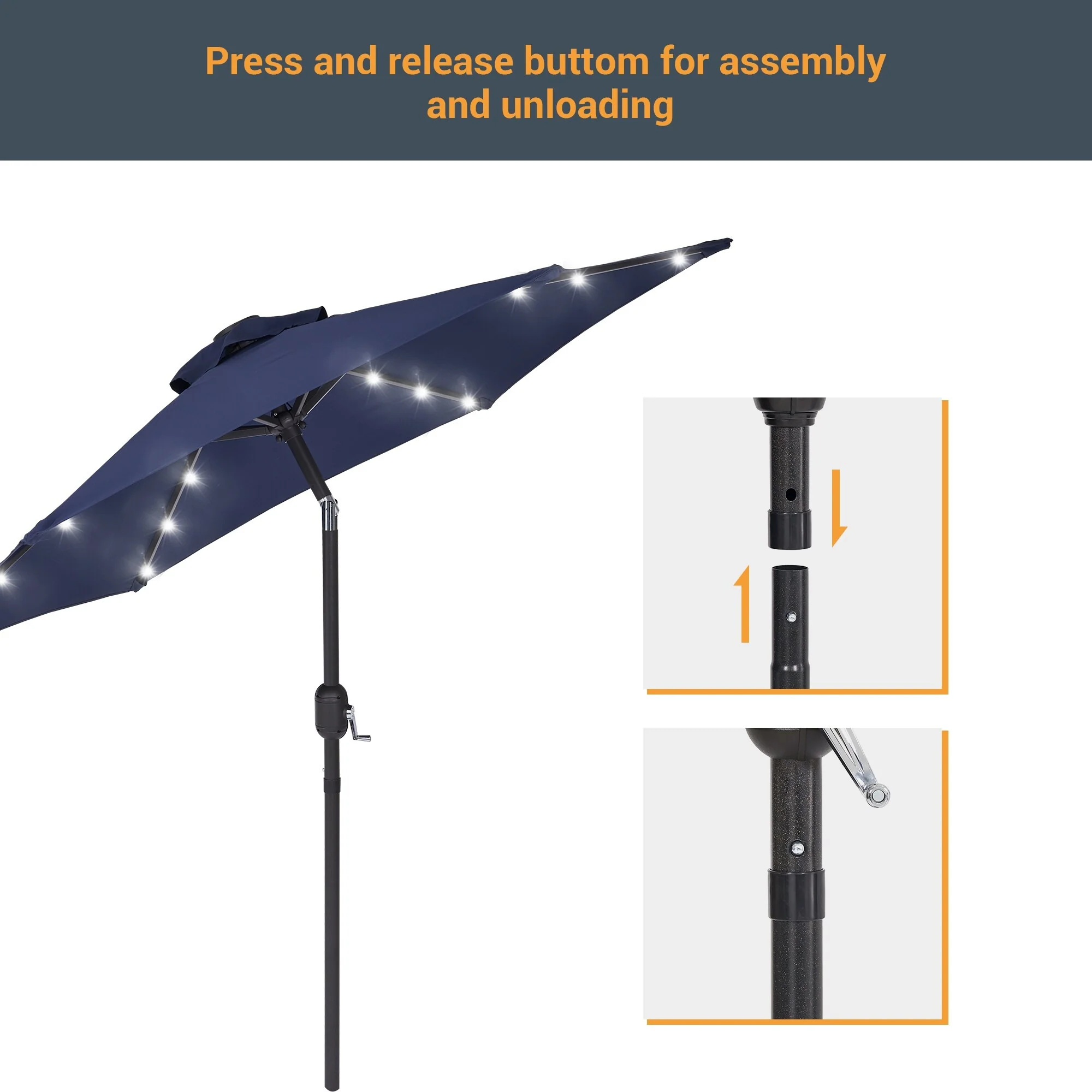LIVOOSUN LED 9ft Patio Umbrella Market Umbrella Steel Tilt w/Crank