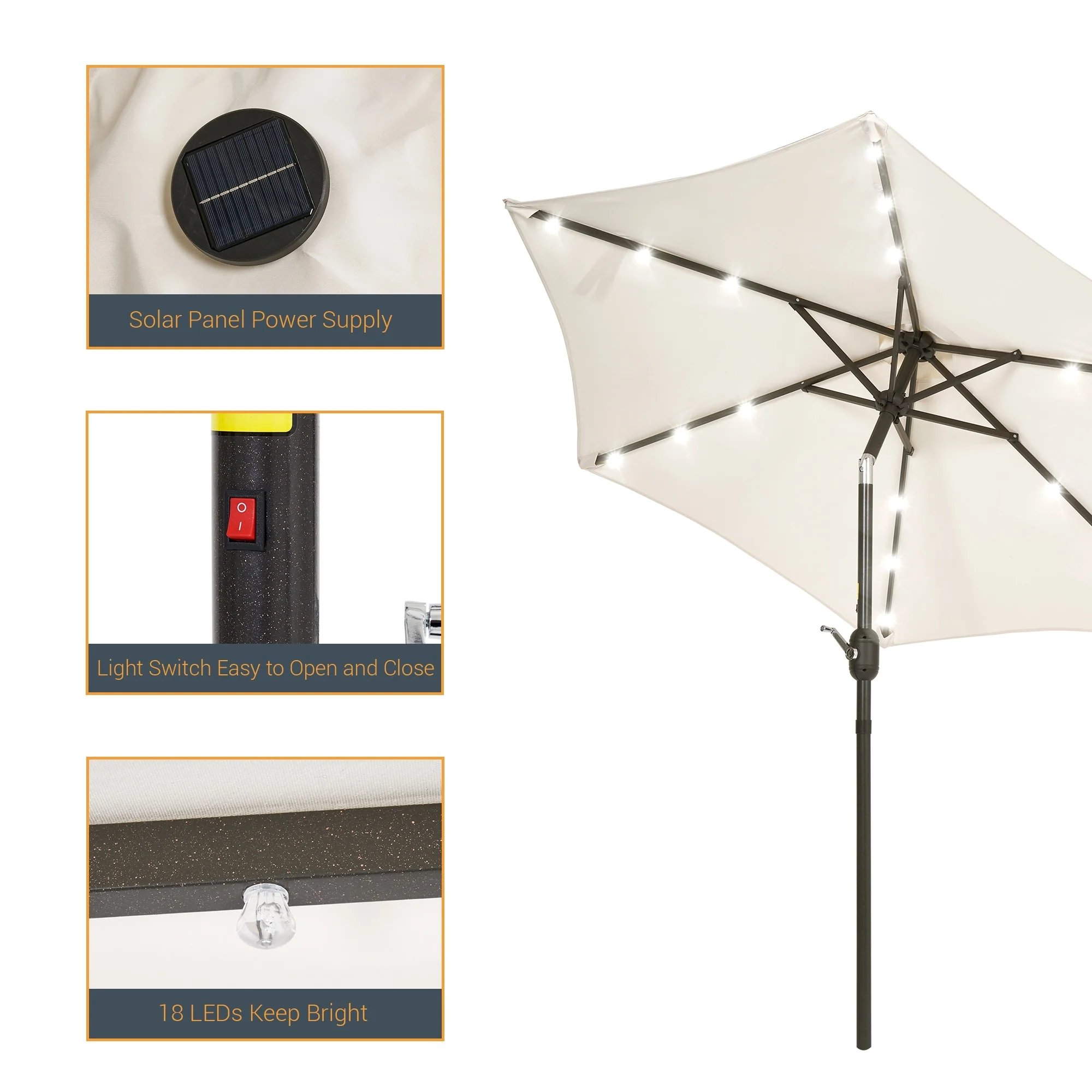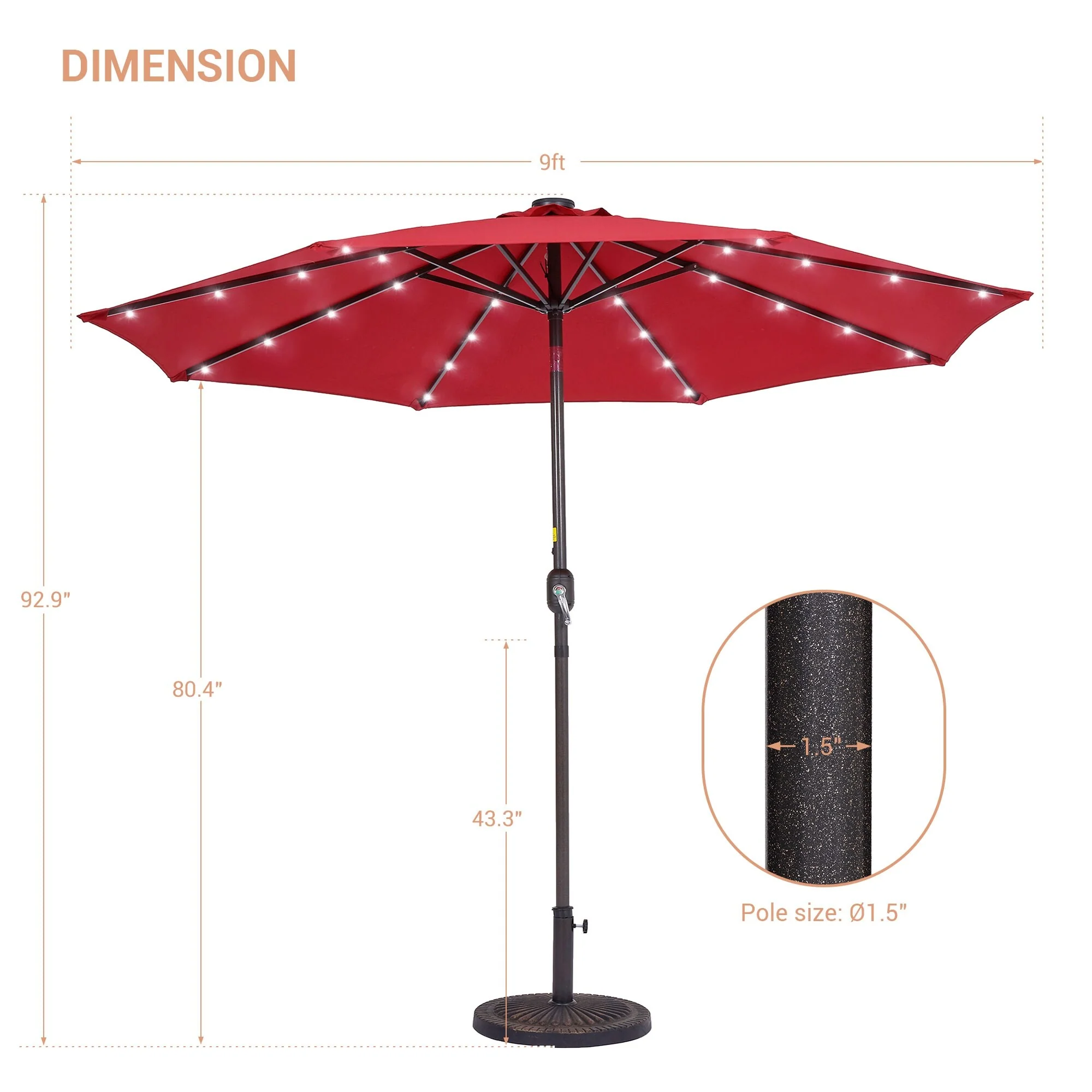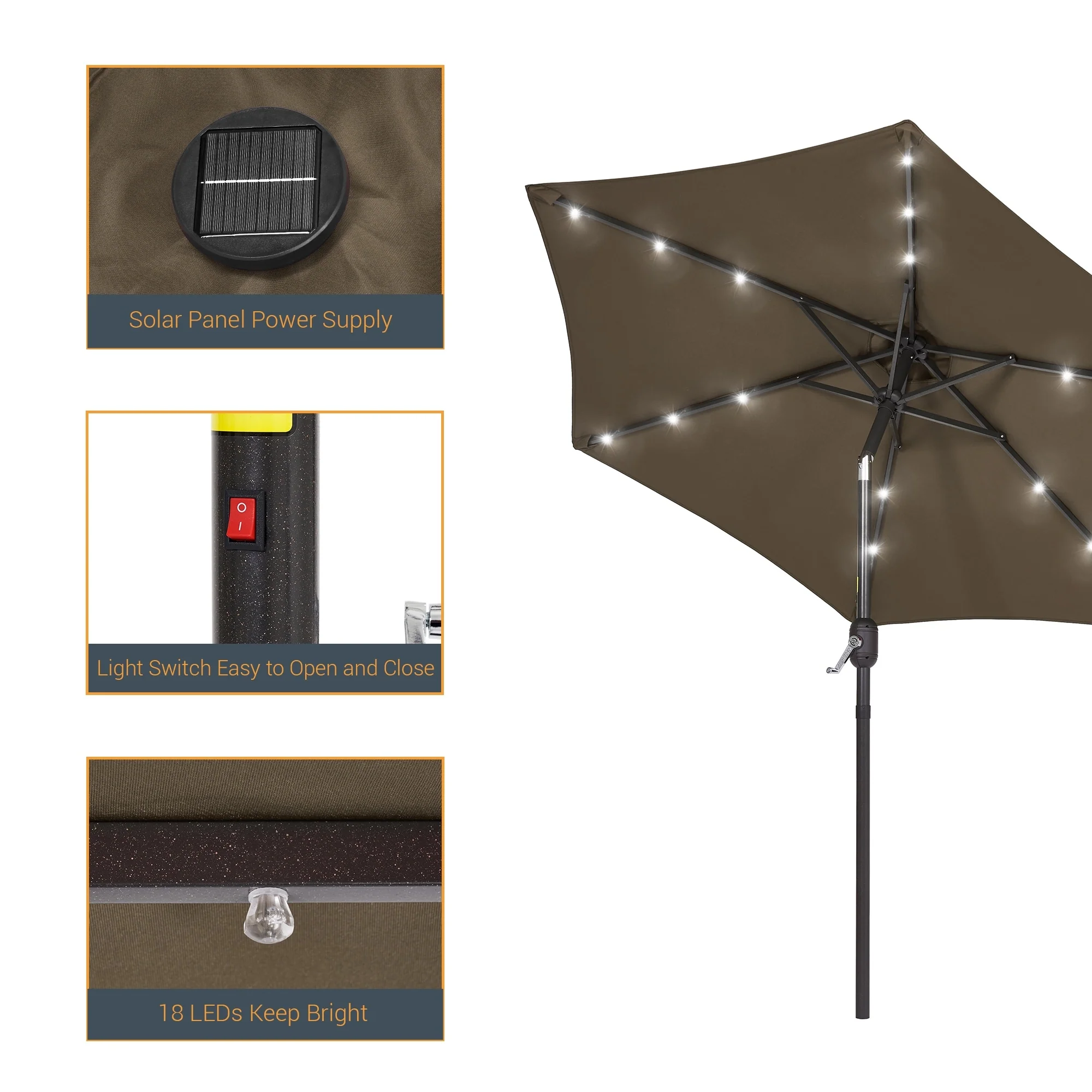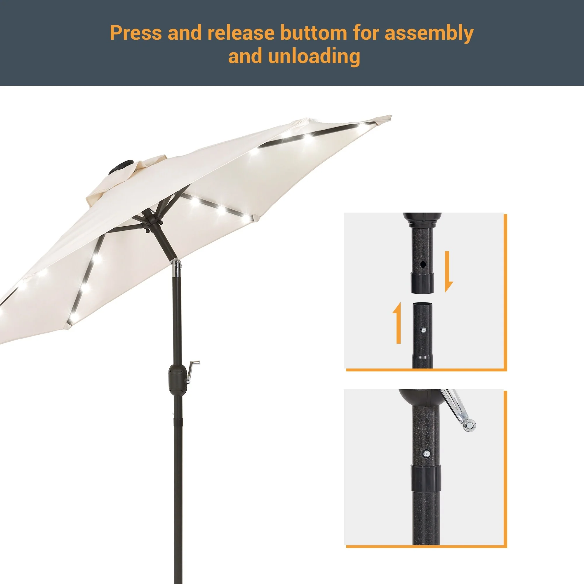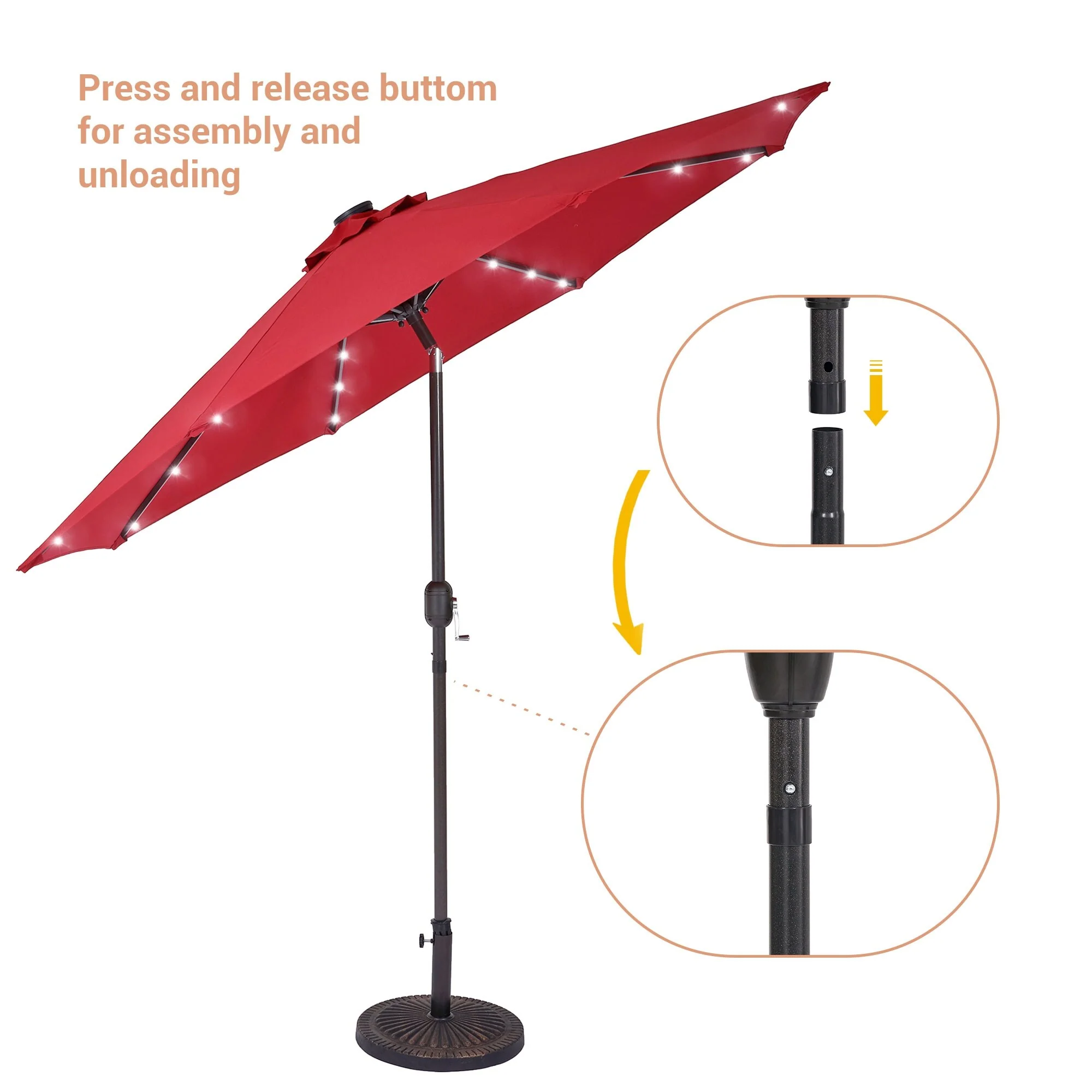LIVOOSUN LED 9ft Patio Umbrella Market Umbrella Steel Tilt w/Crank