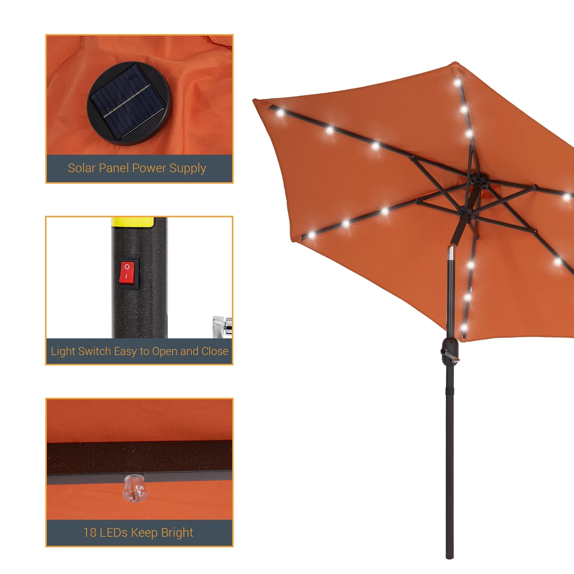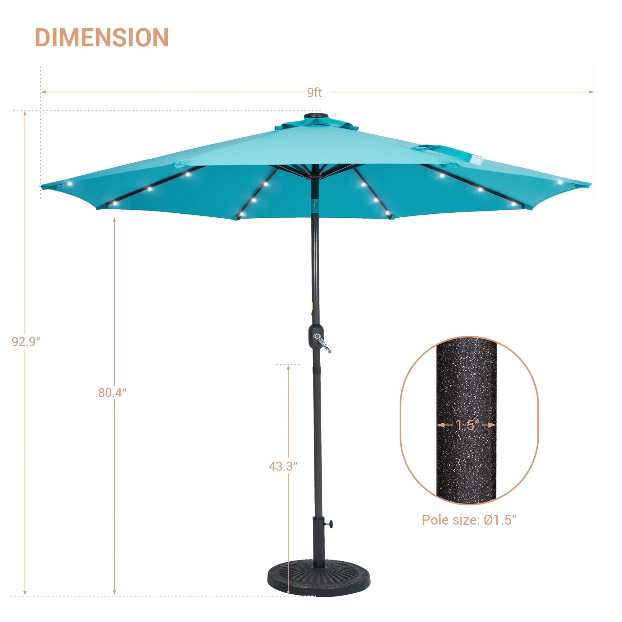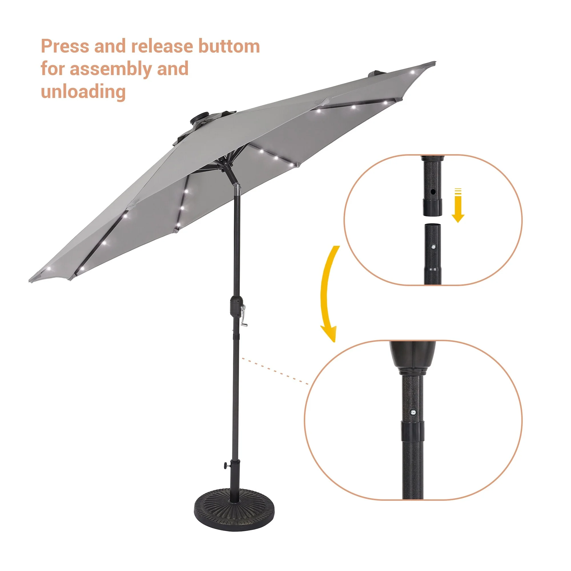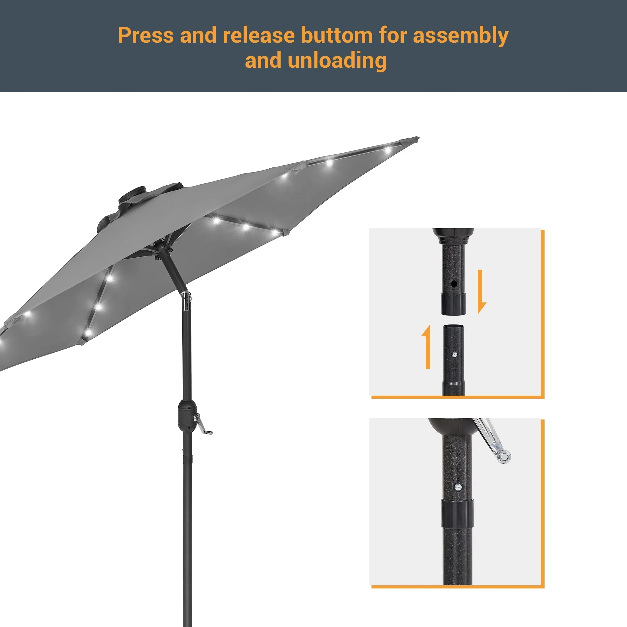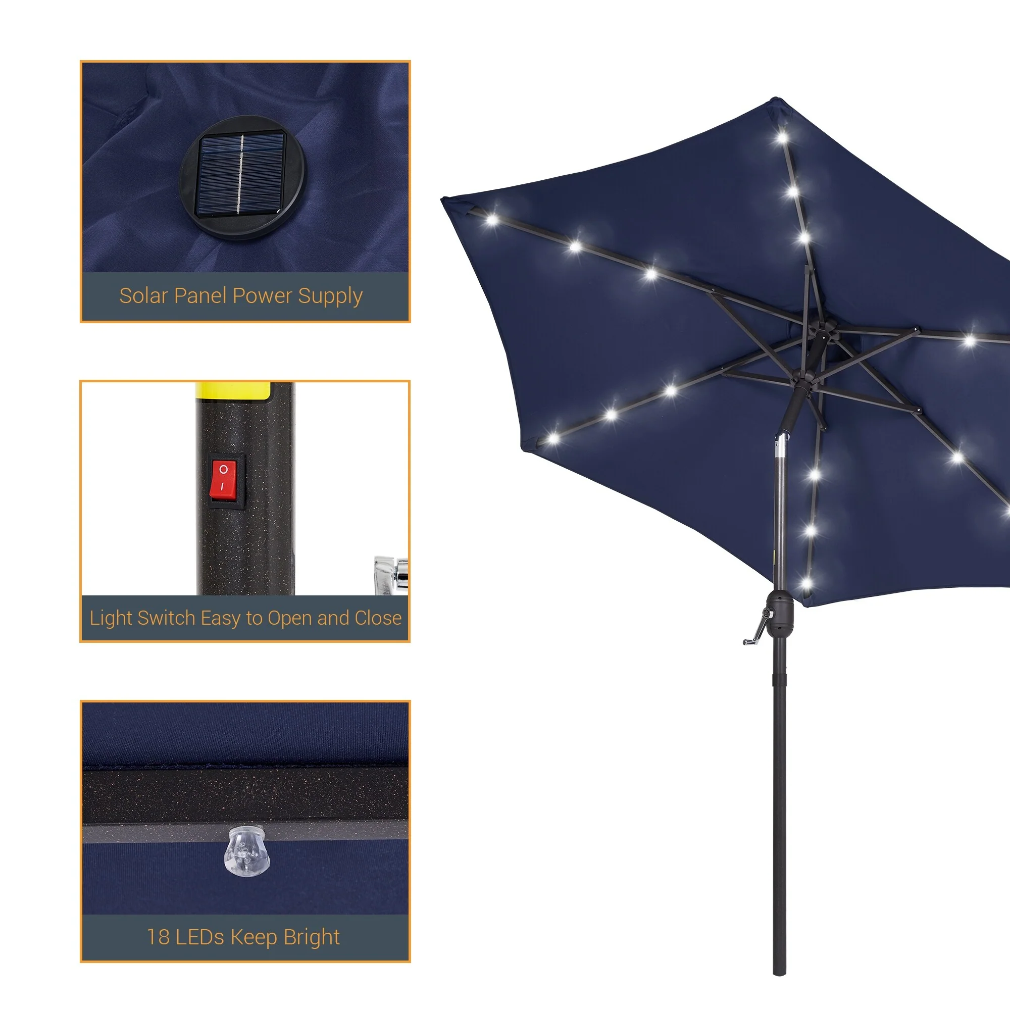 LIVOOSUN LED 9ft Patio Umbrella Market Umbrella Steel Tilt w/Crank
