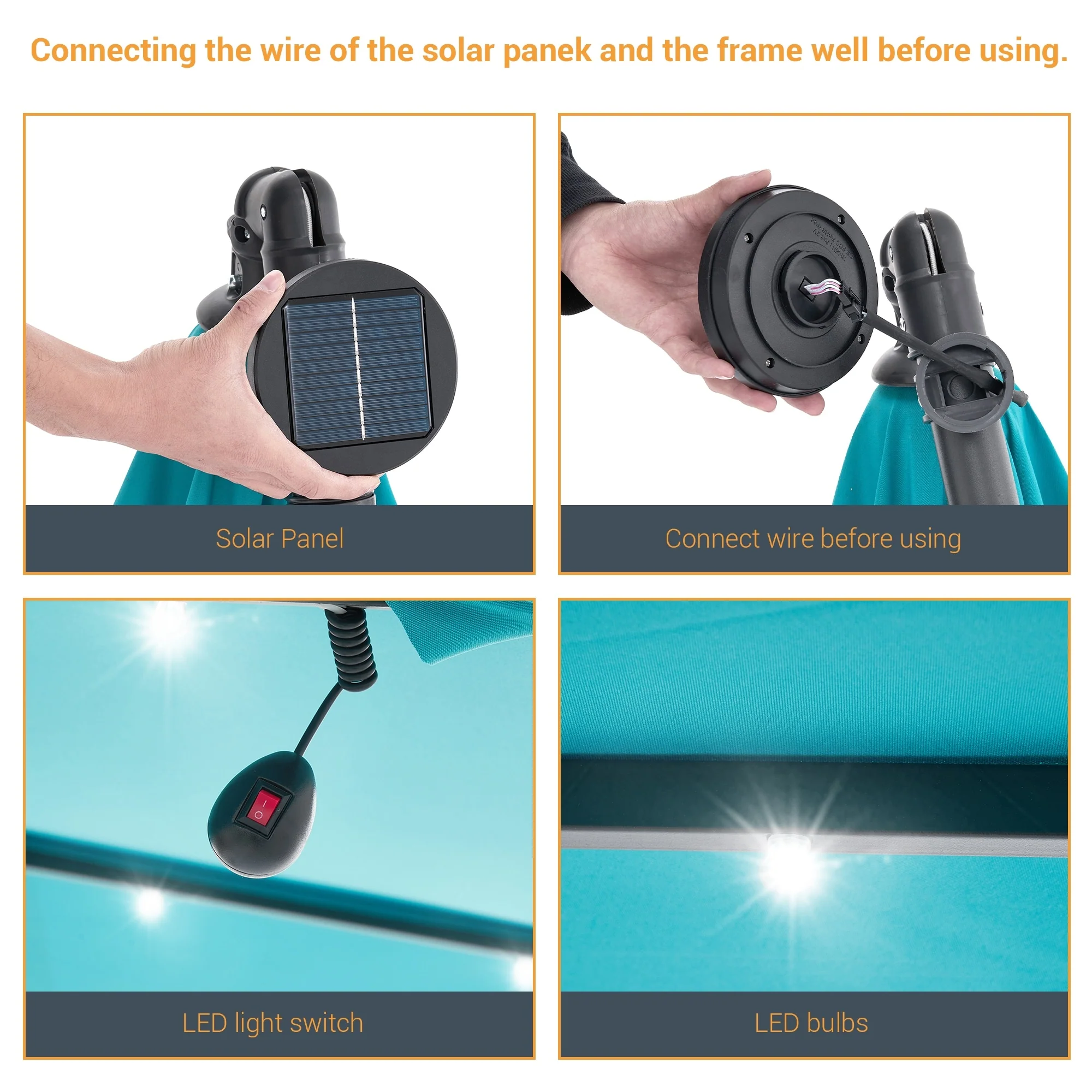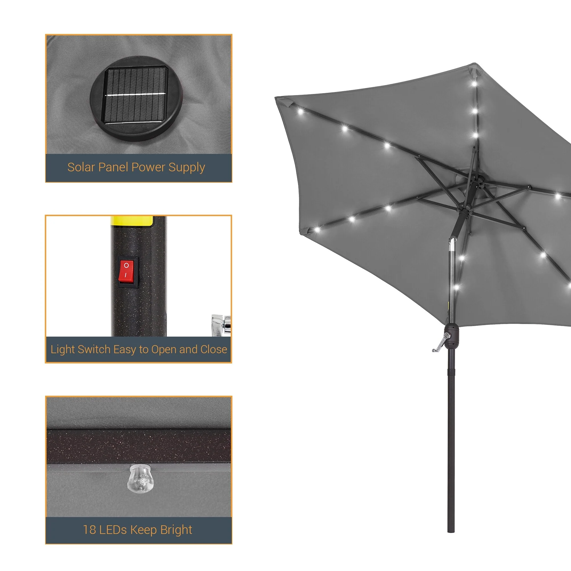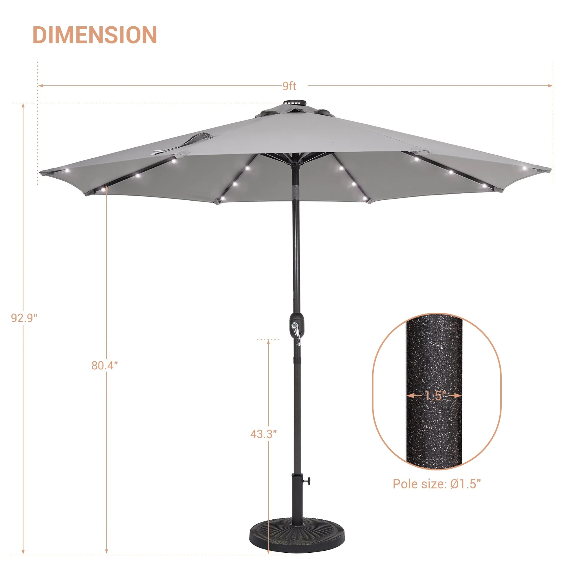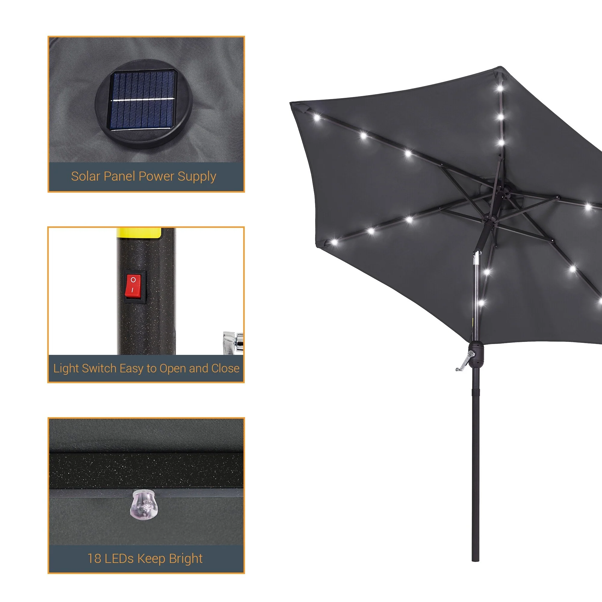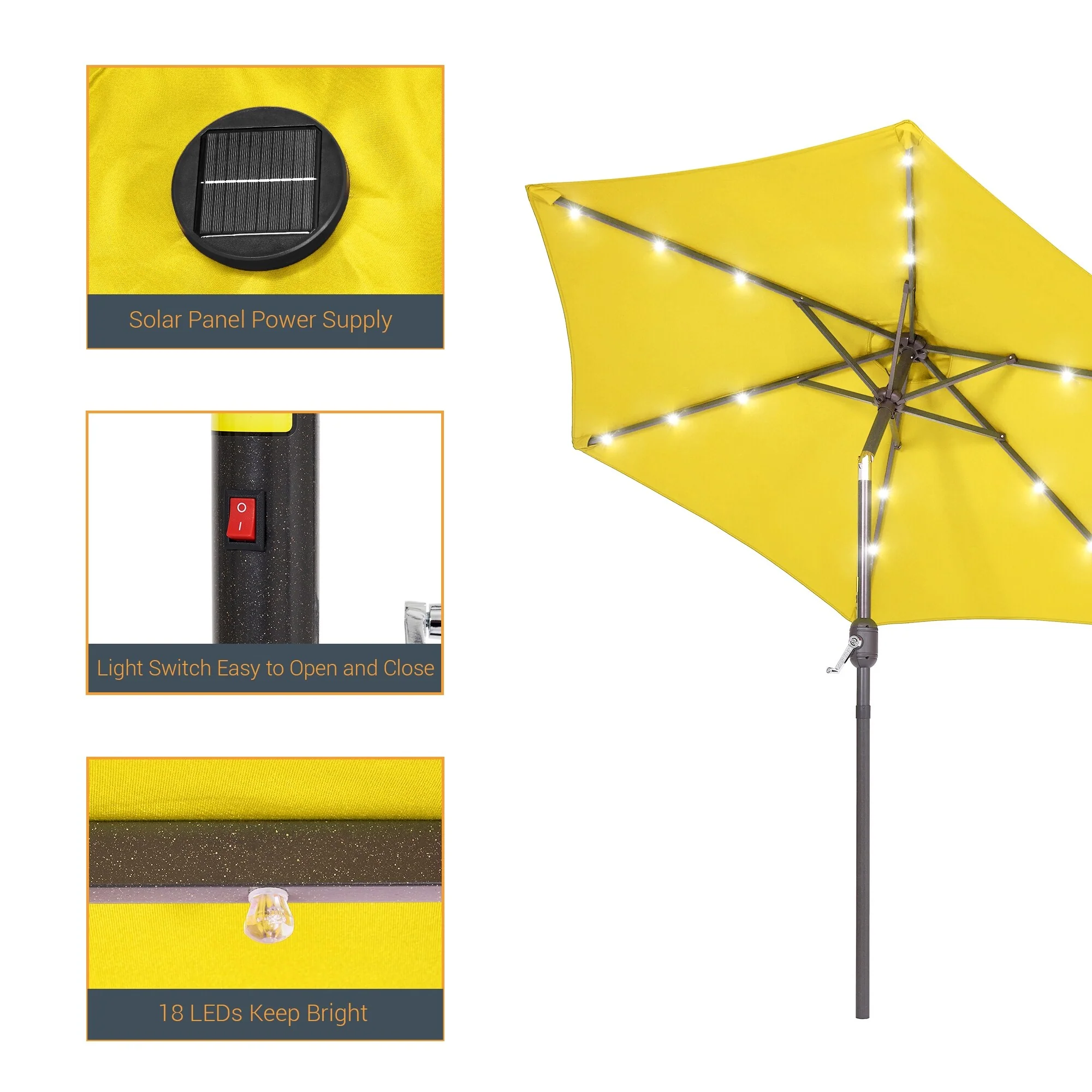 LIVOOSUN LED 9ft Patio Umbrella Market Umbrella Steel Tilt w/Crank