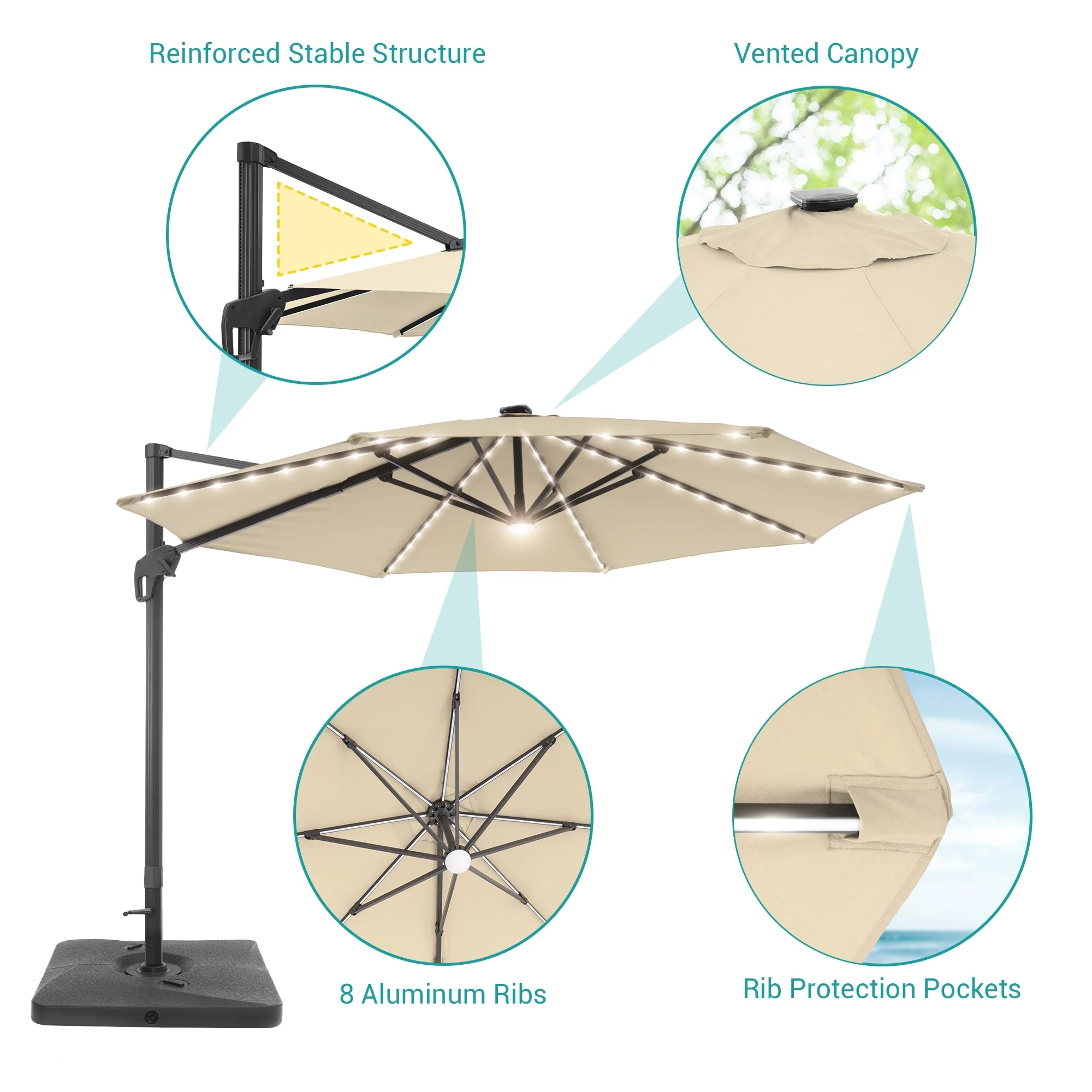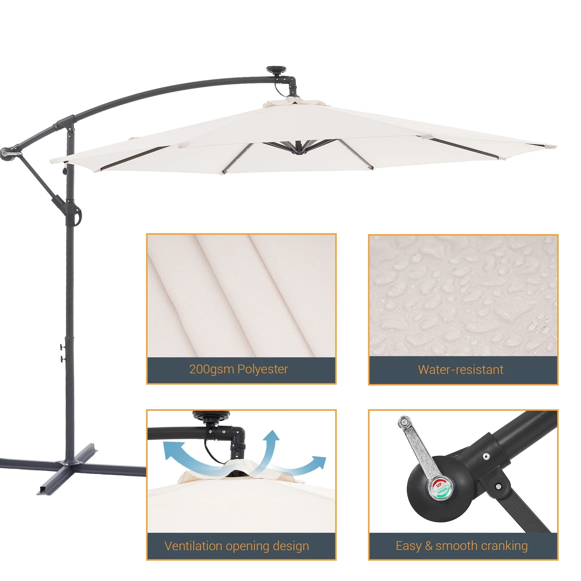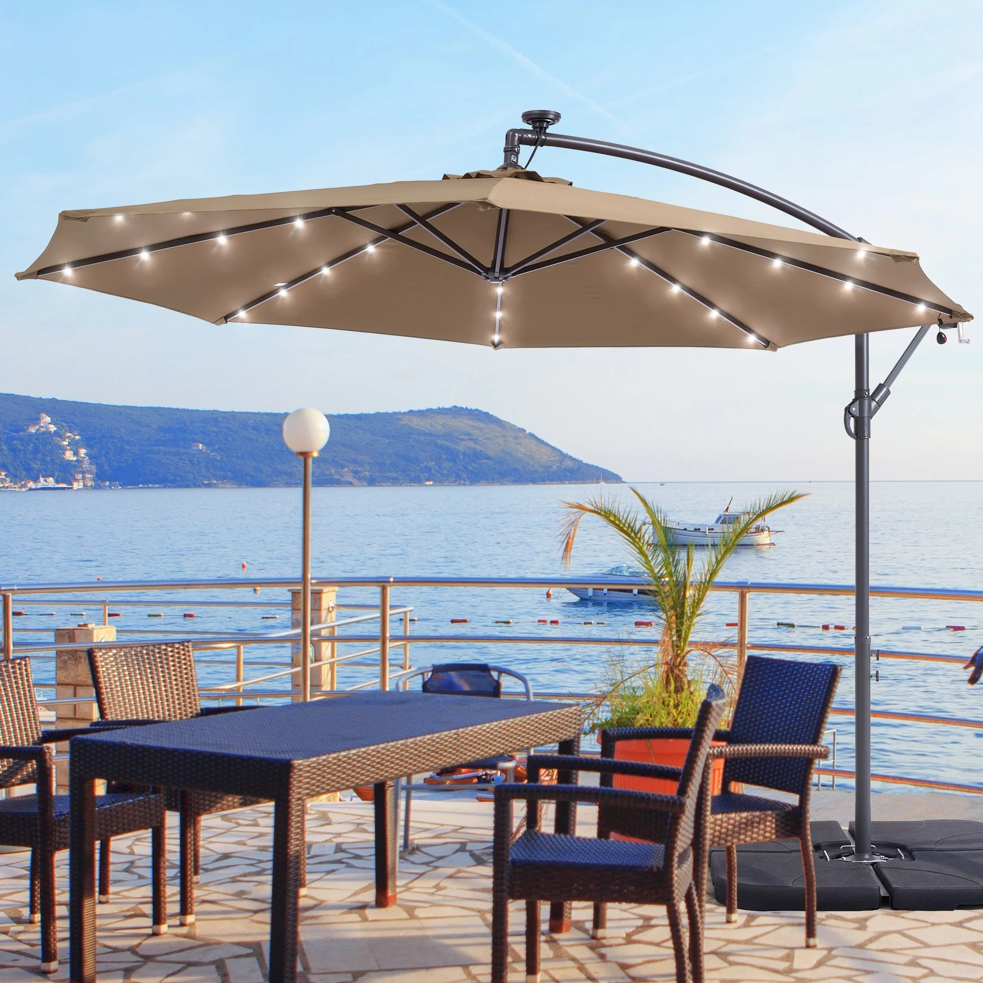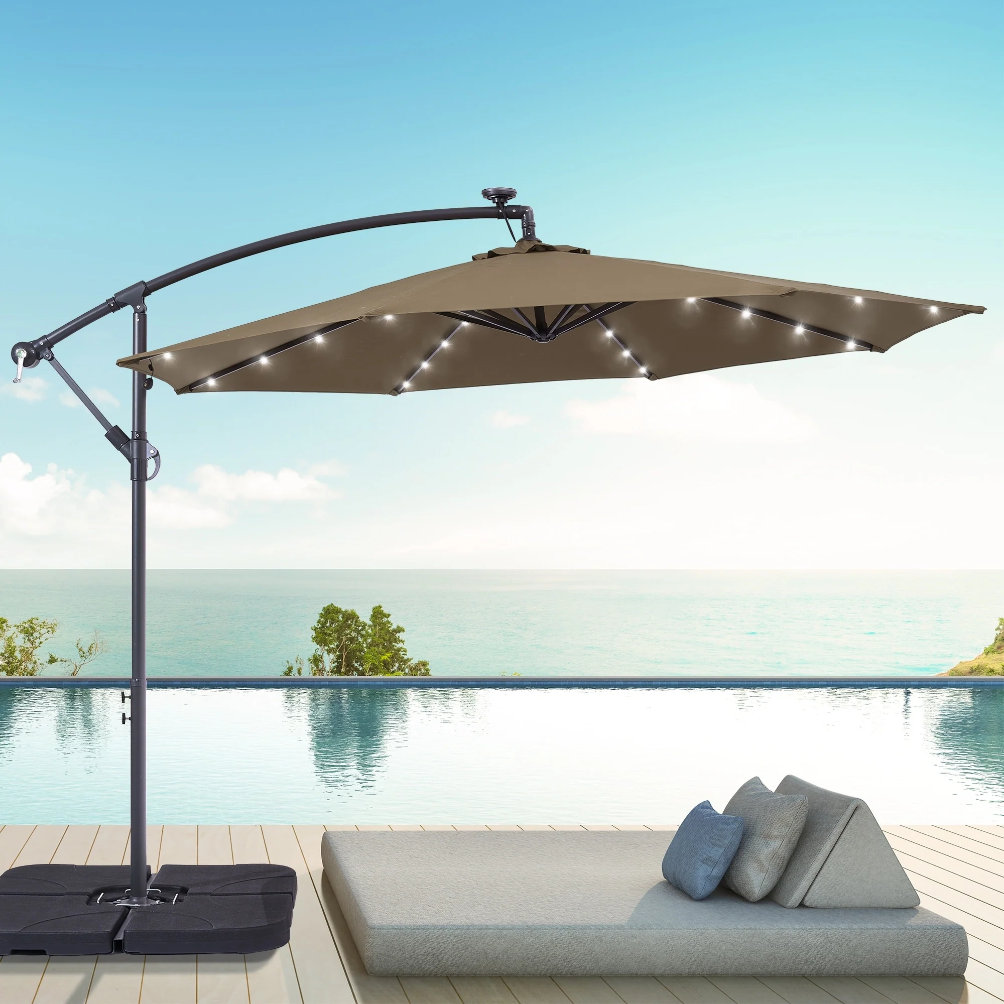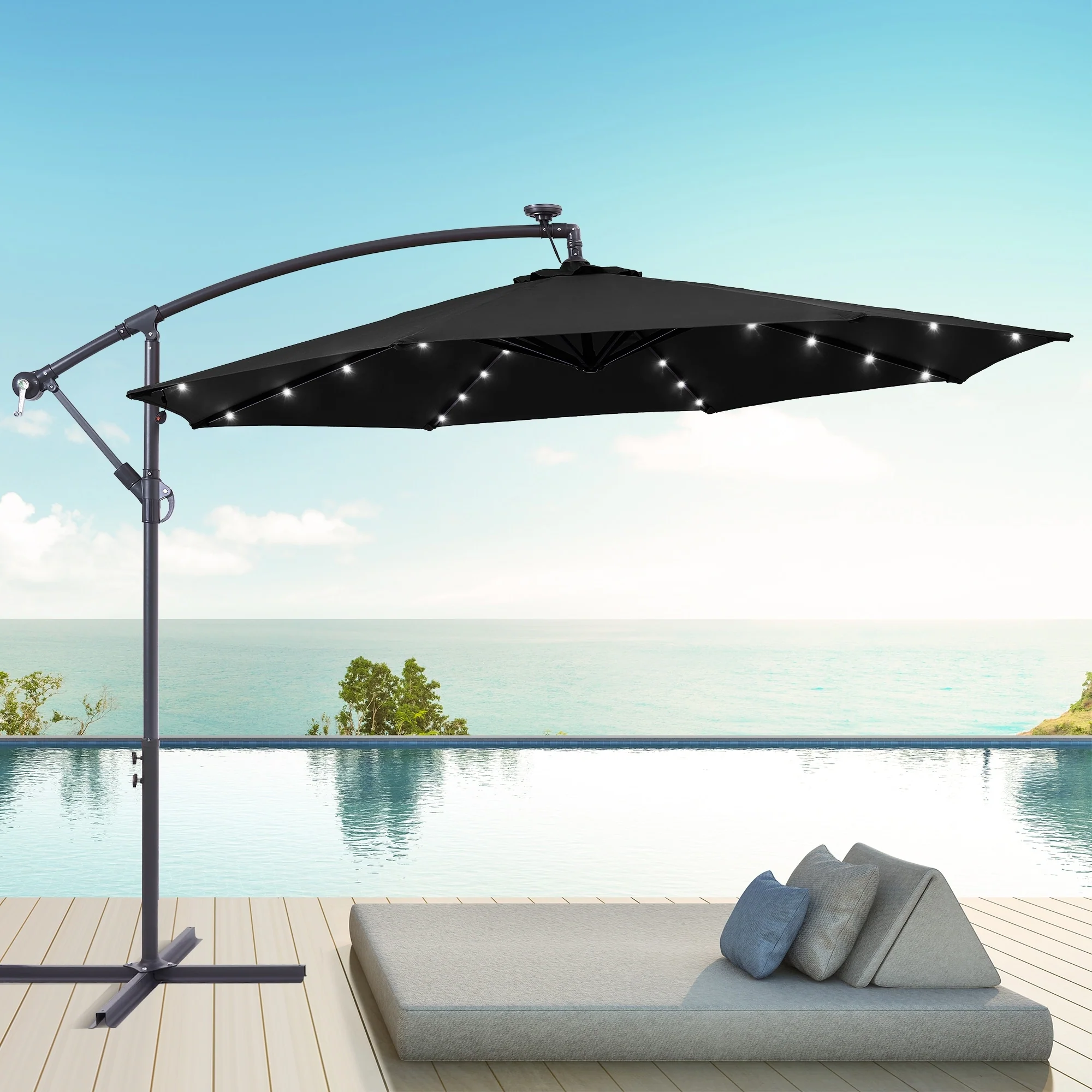 BONOSUKI 10ft Patio offset Umbrella Hanging Umbrella With LED Lights
