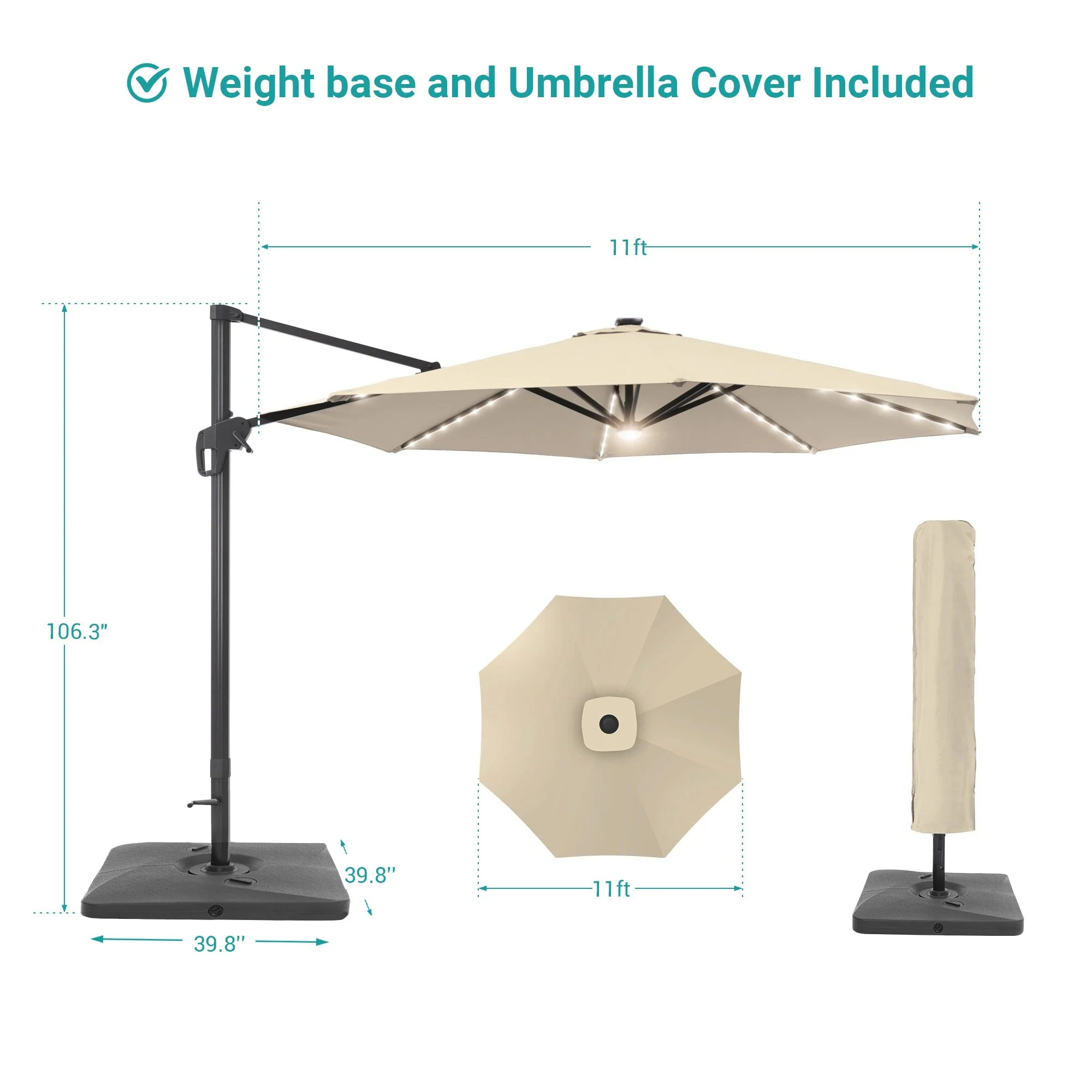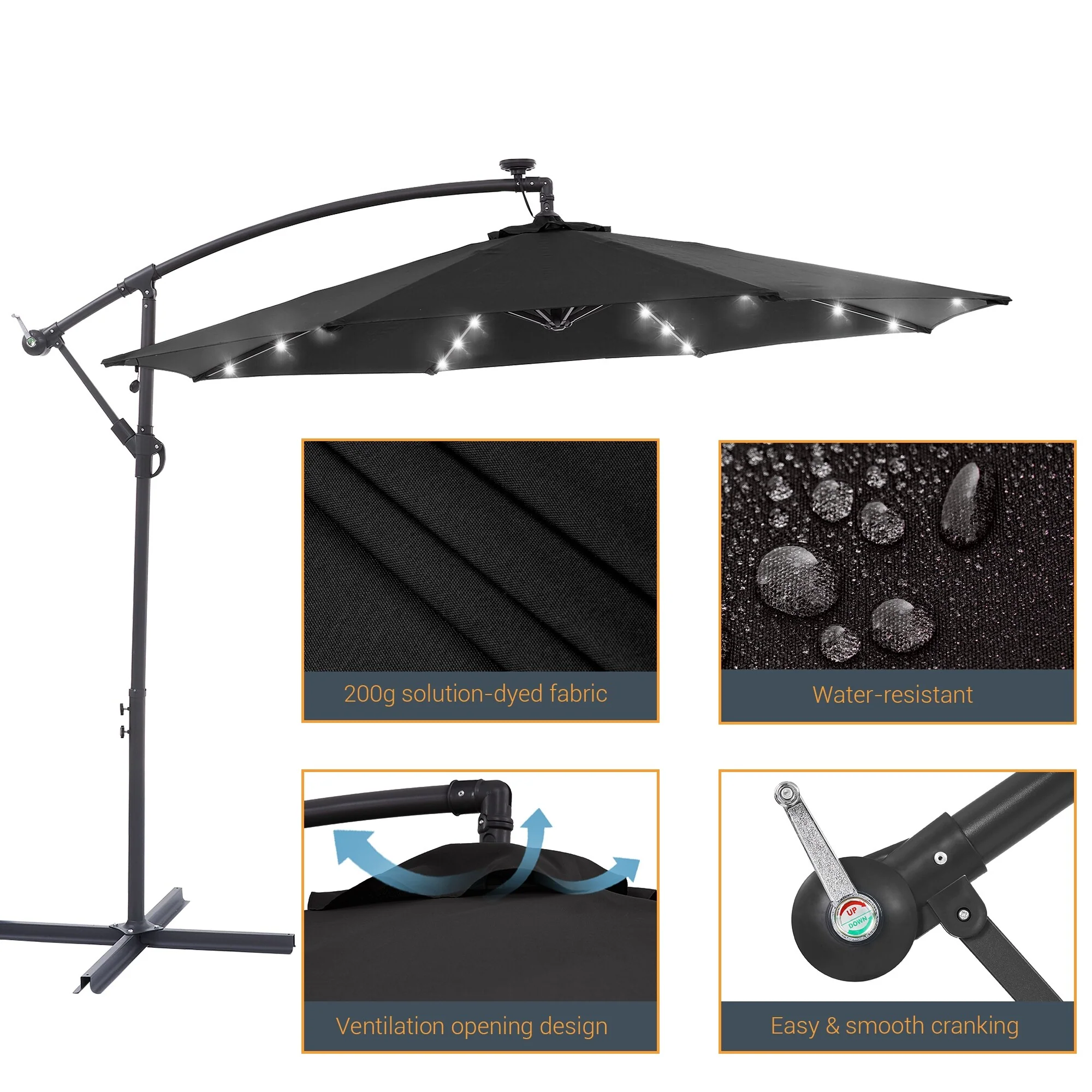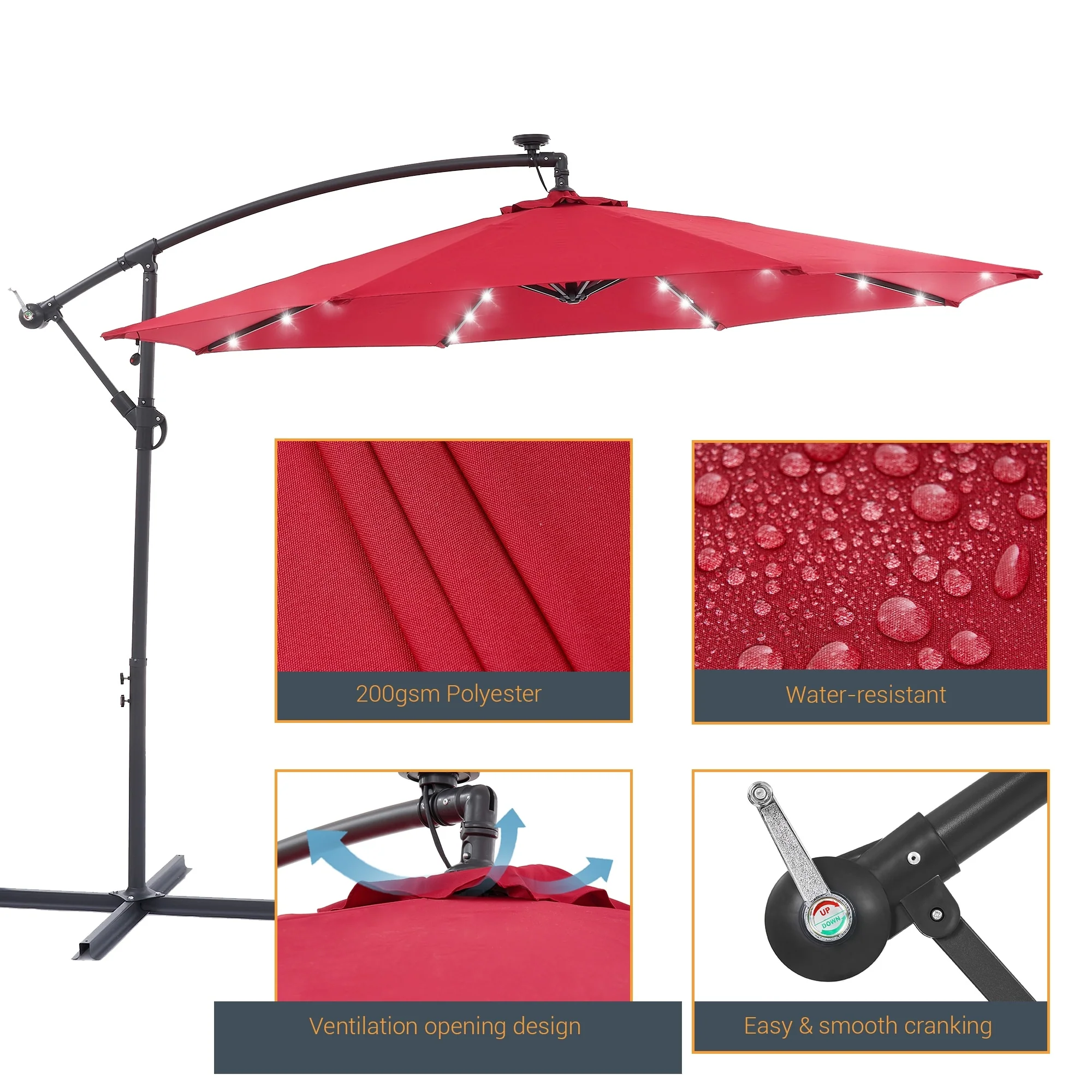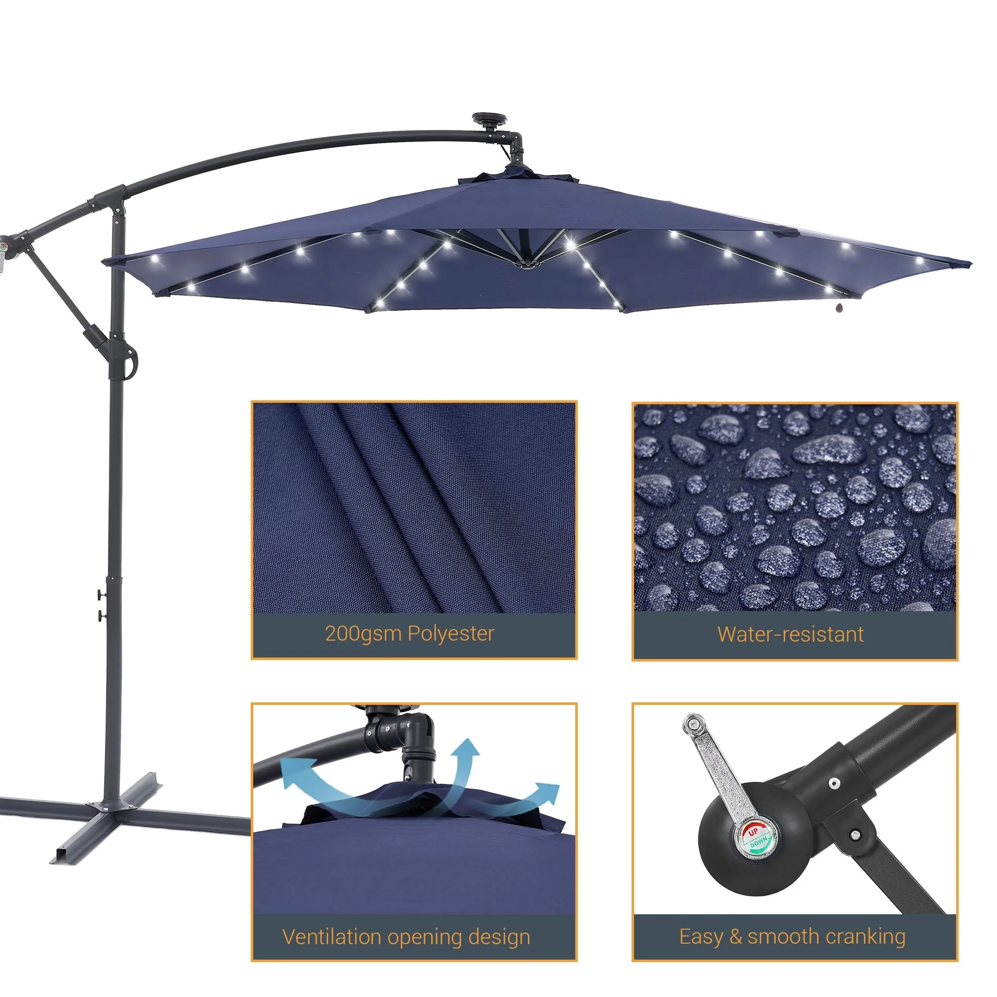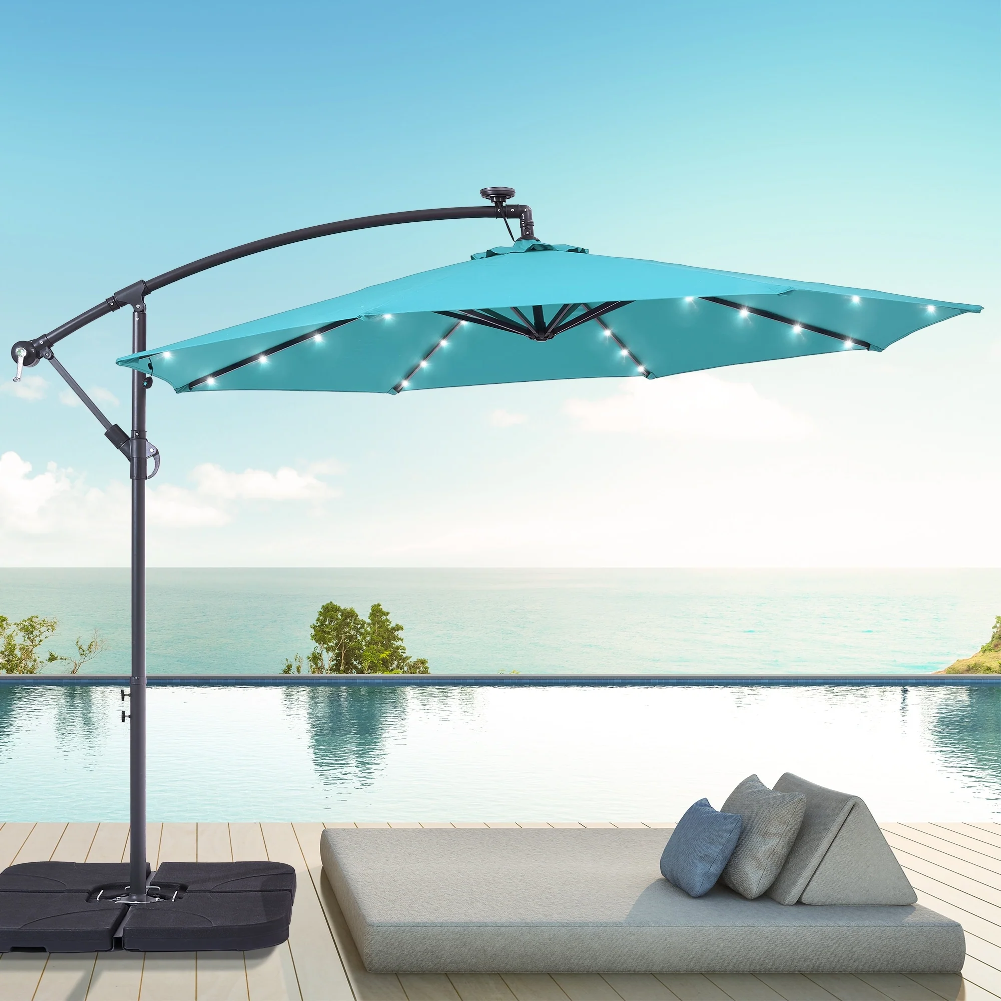 BONOSUKI 10ft Patio offset Umbrella Hanging Umbrella With LED Lights