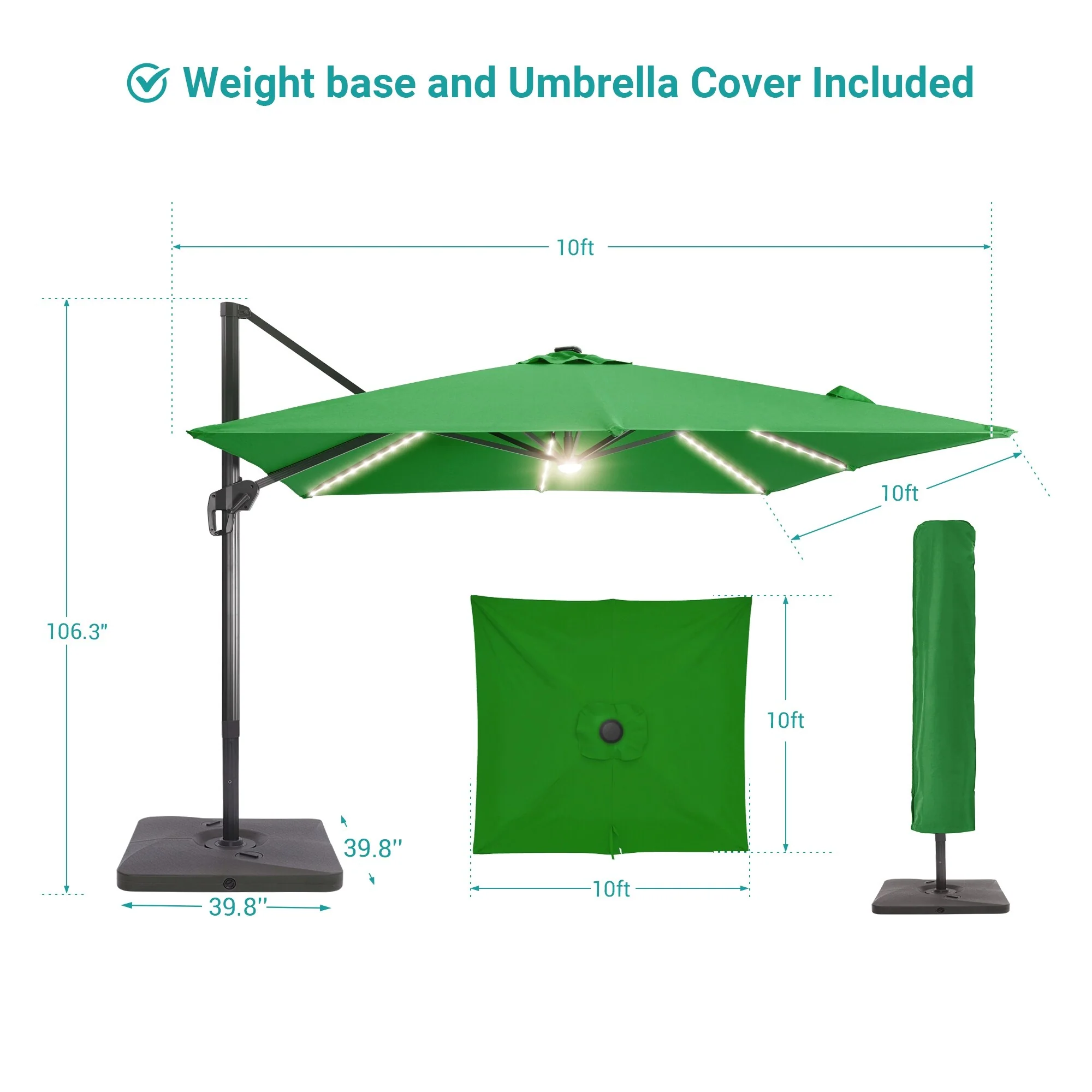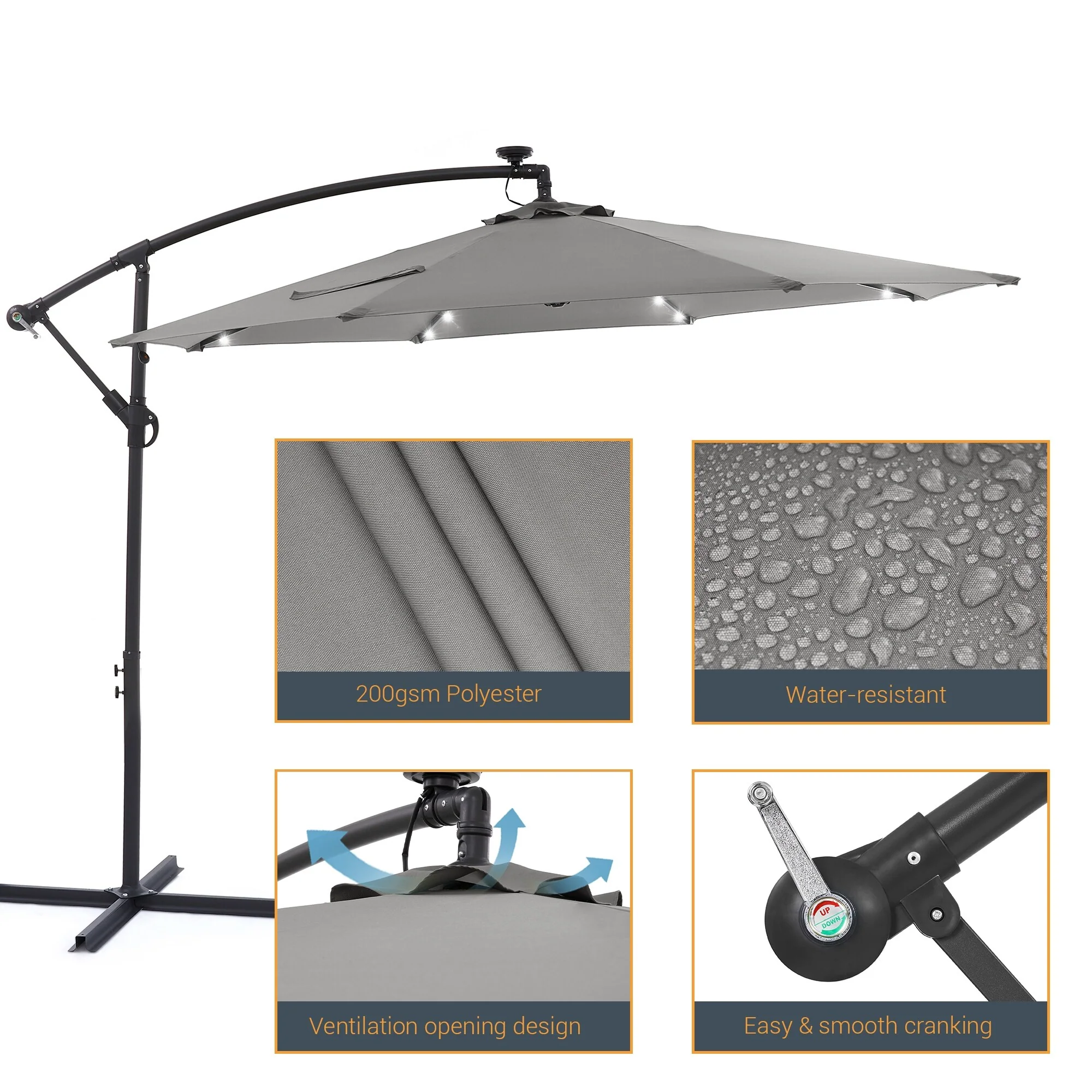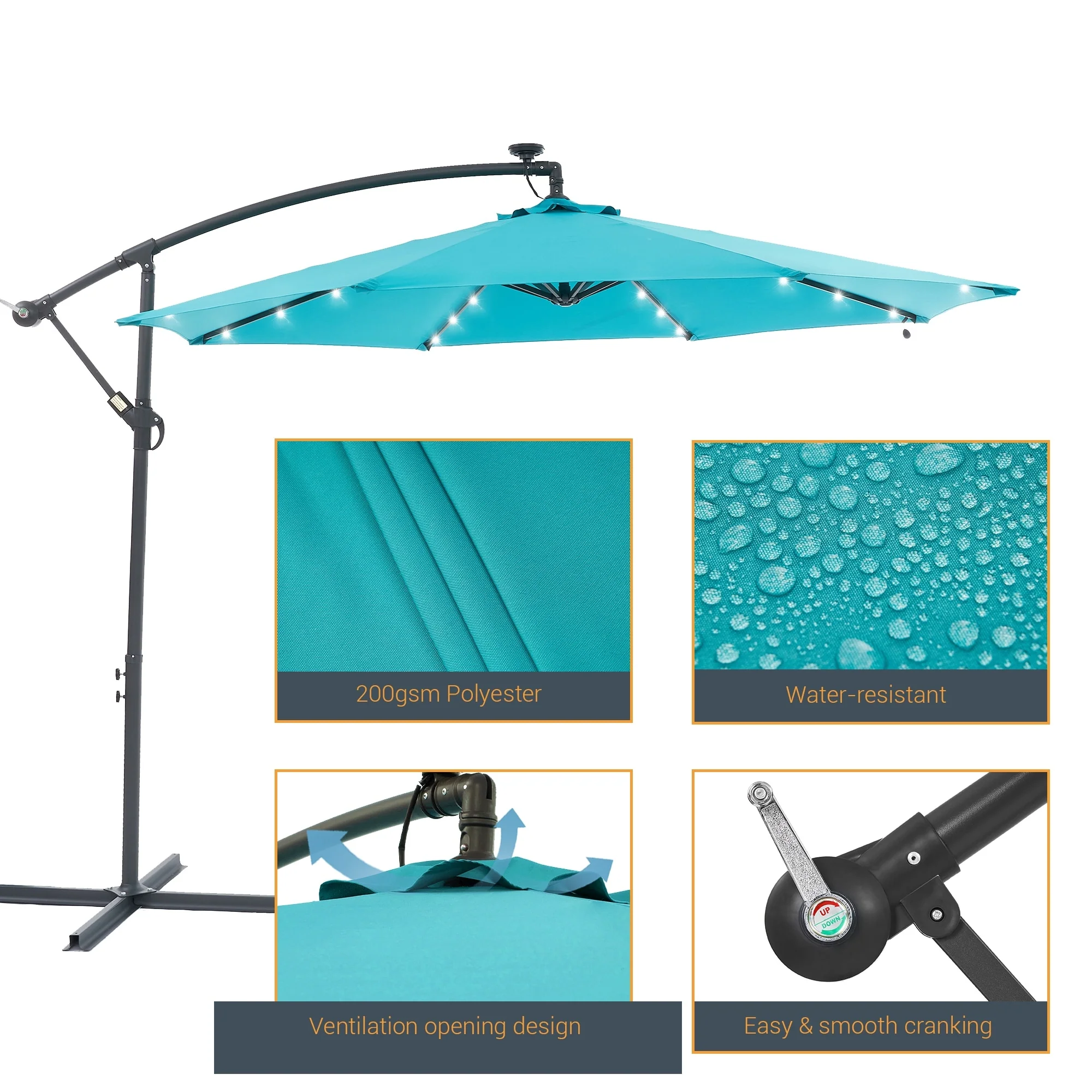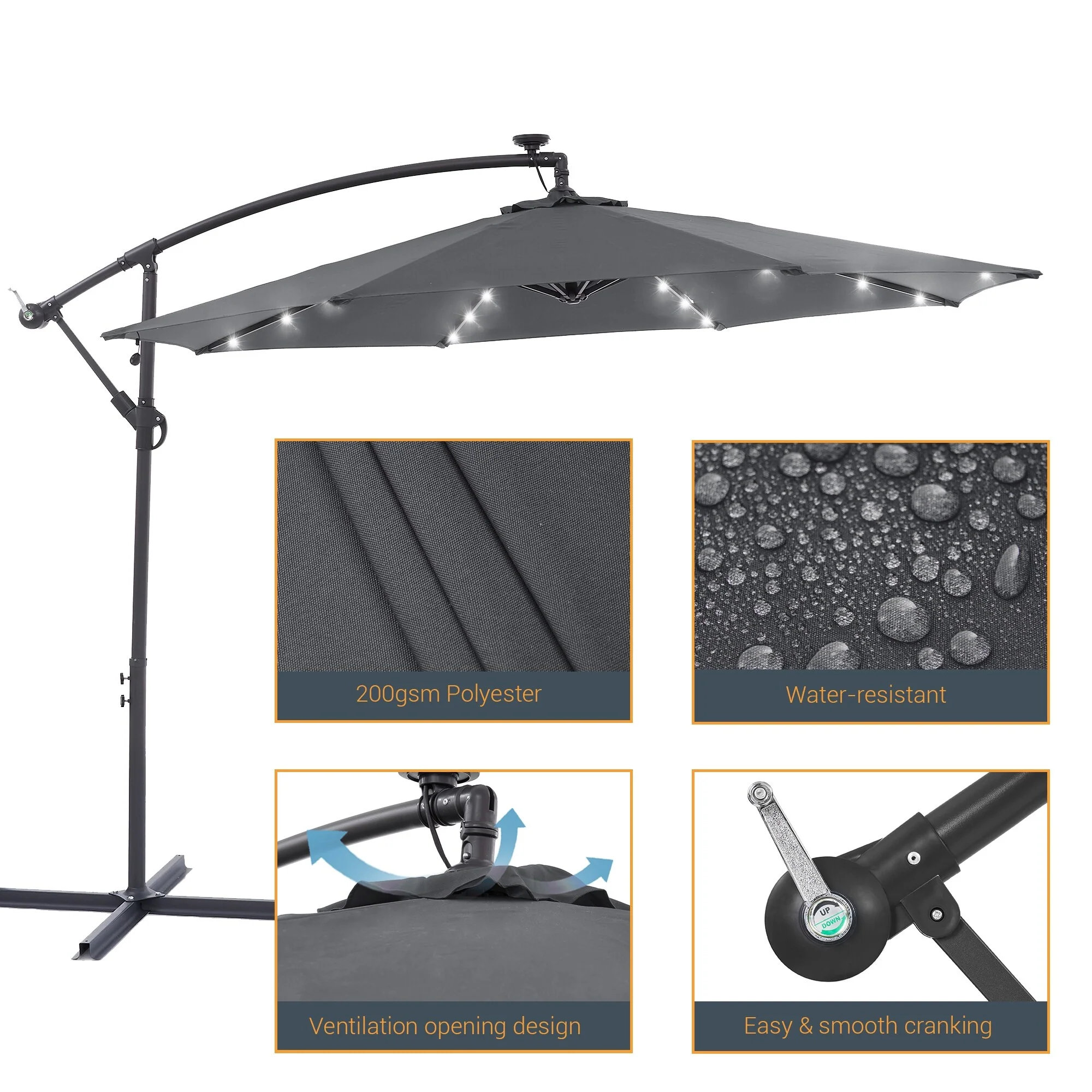 BONOSUKI 10ft Patio offset Umbrella Hanging Umbrella With LED Lights