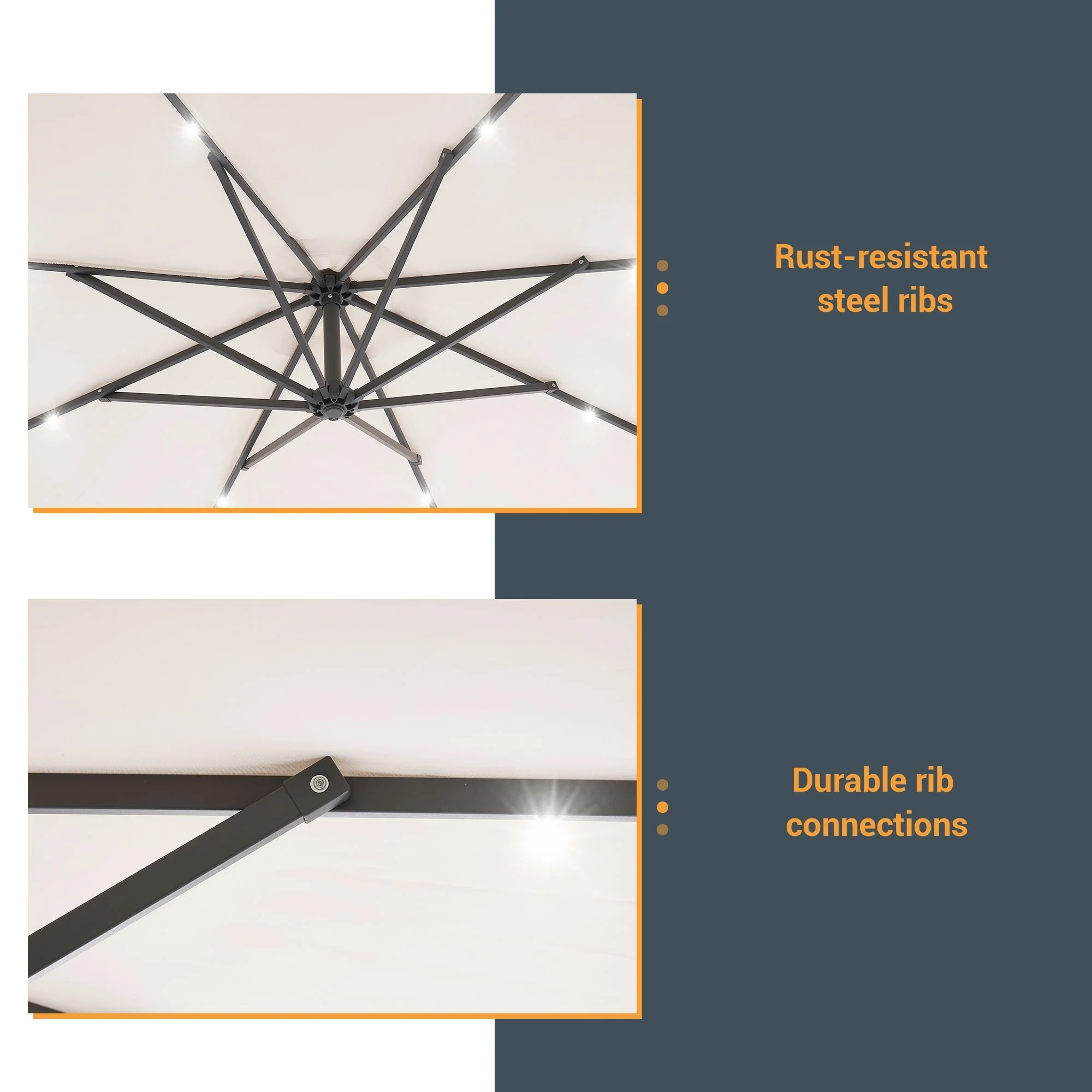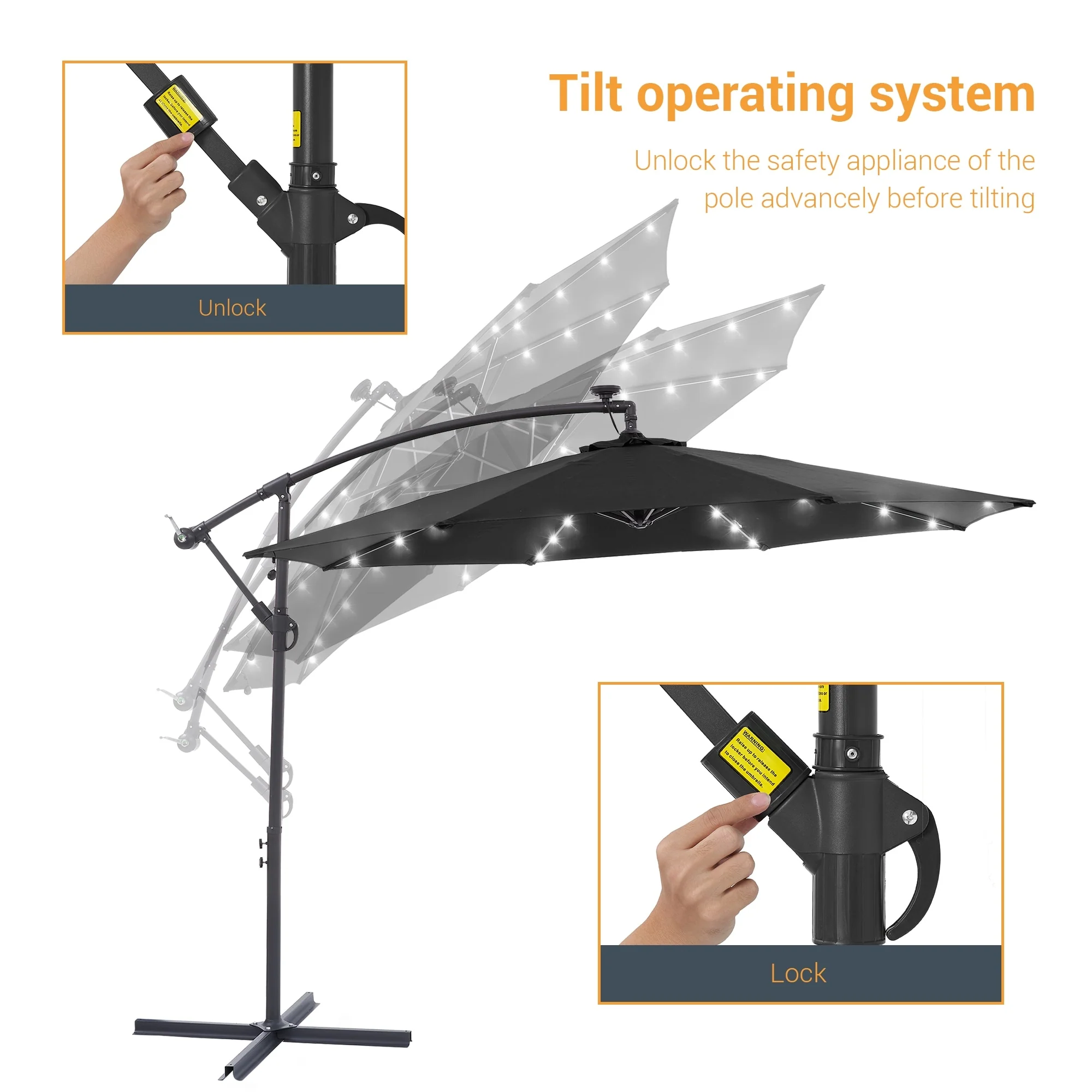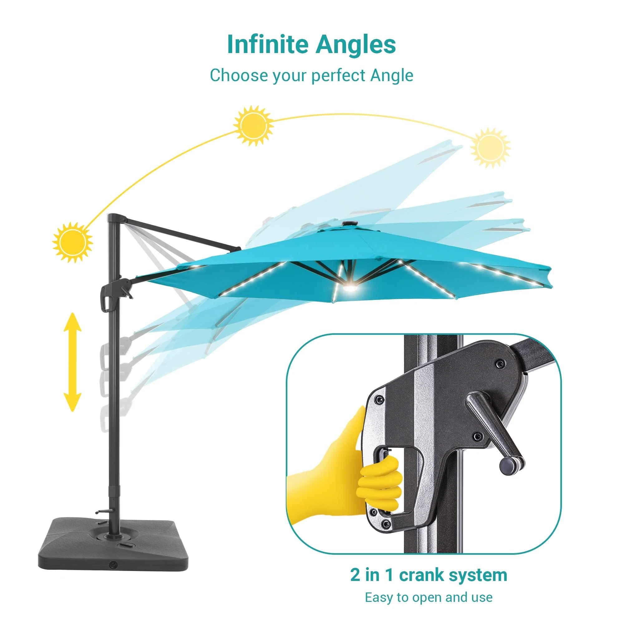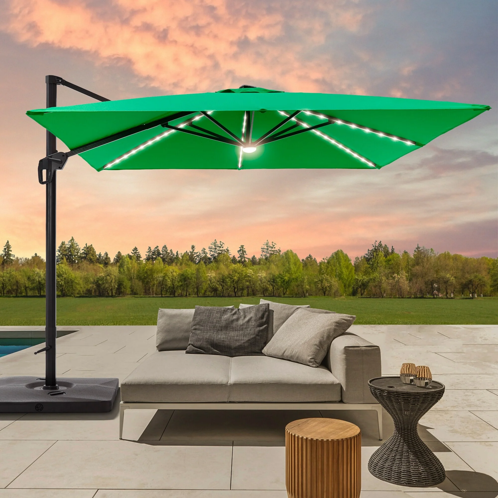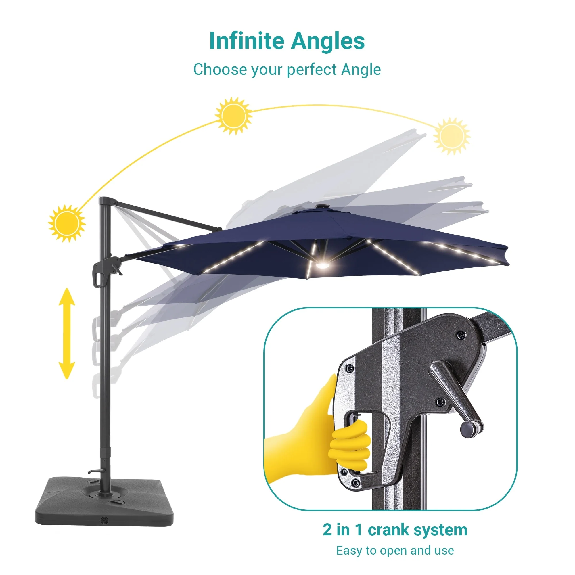 BONOSUKI 10ft Patio offset Umbrella Hanging Umbrella With LED Lights
