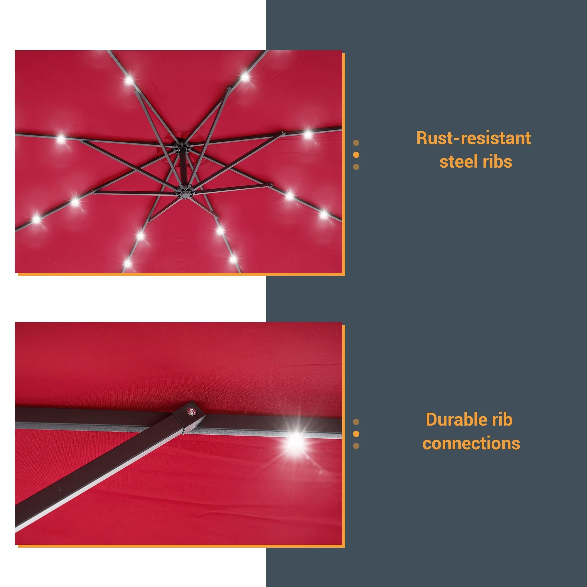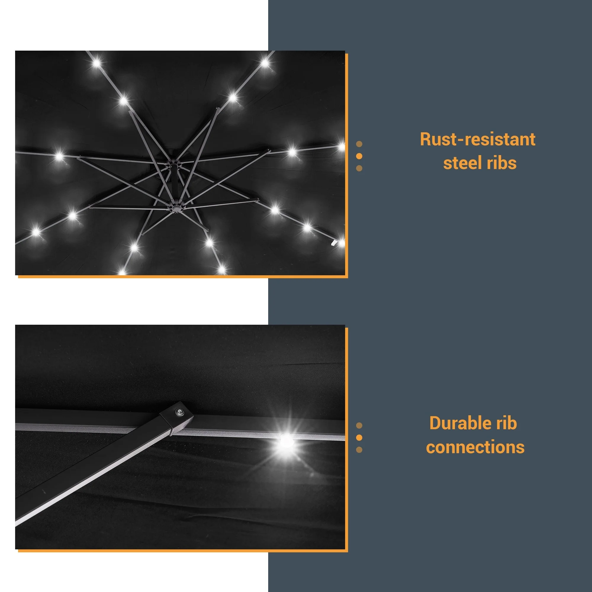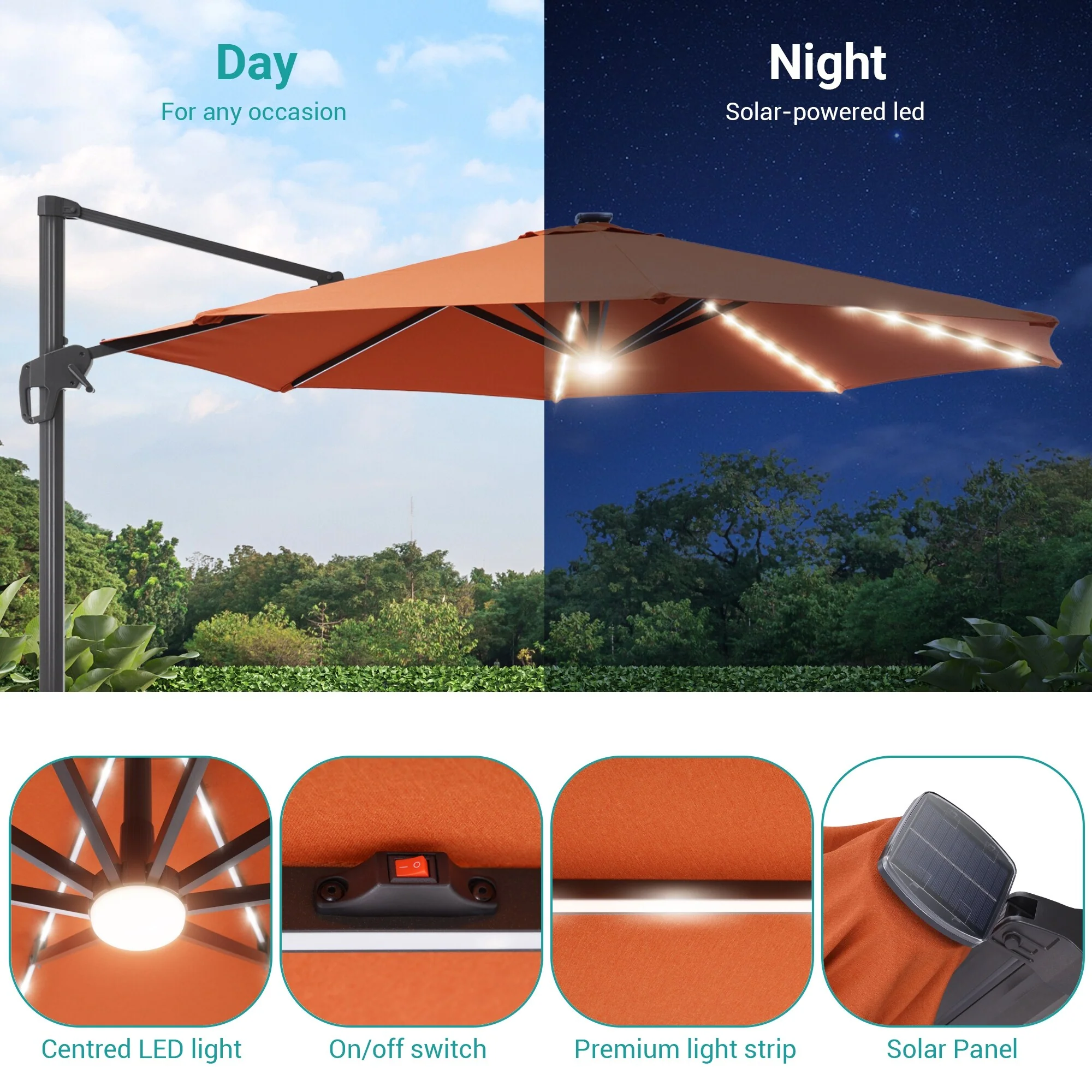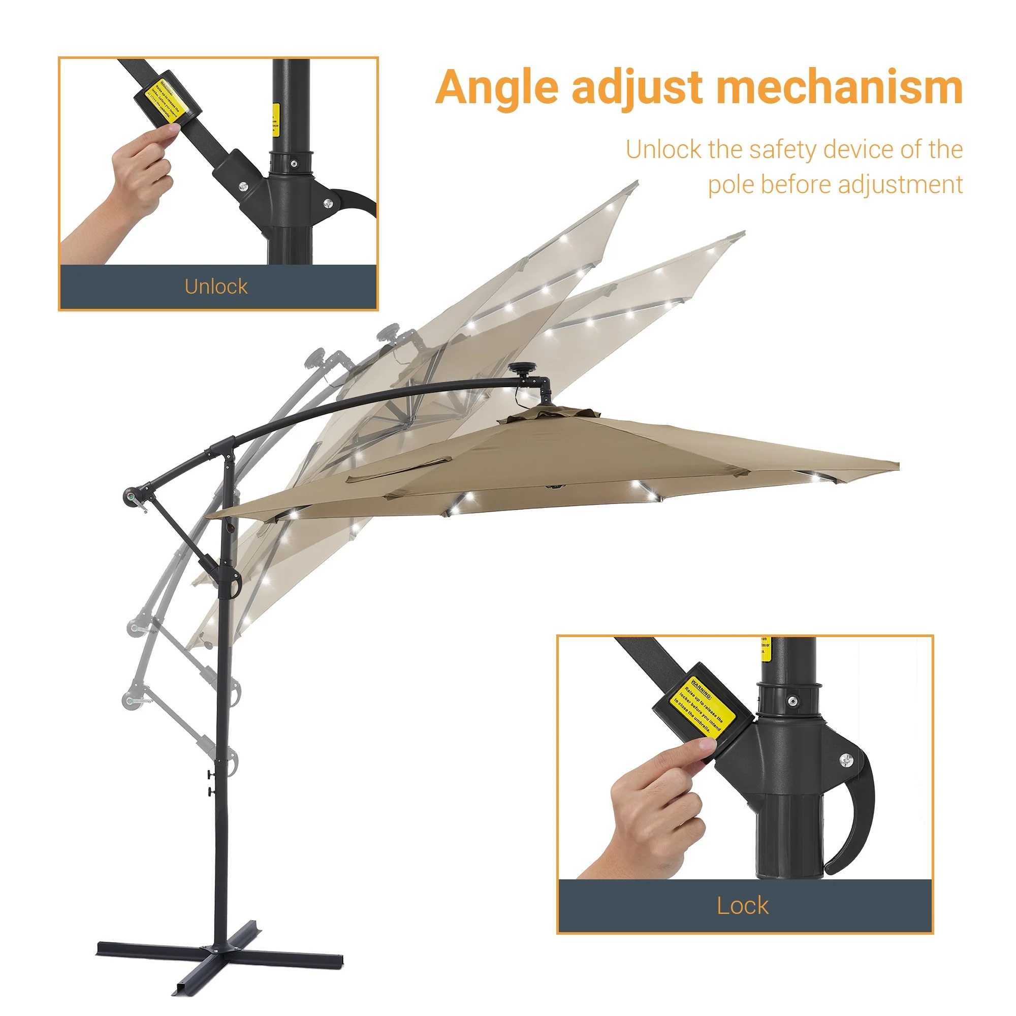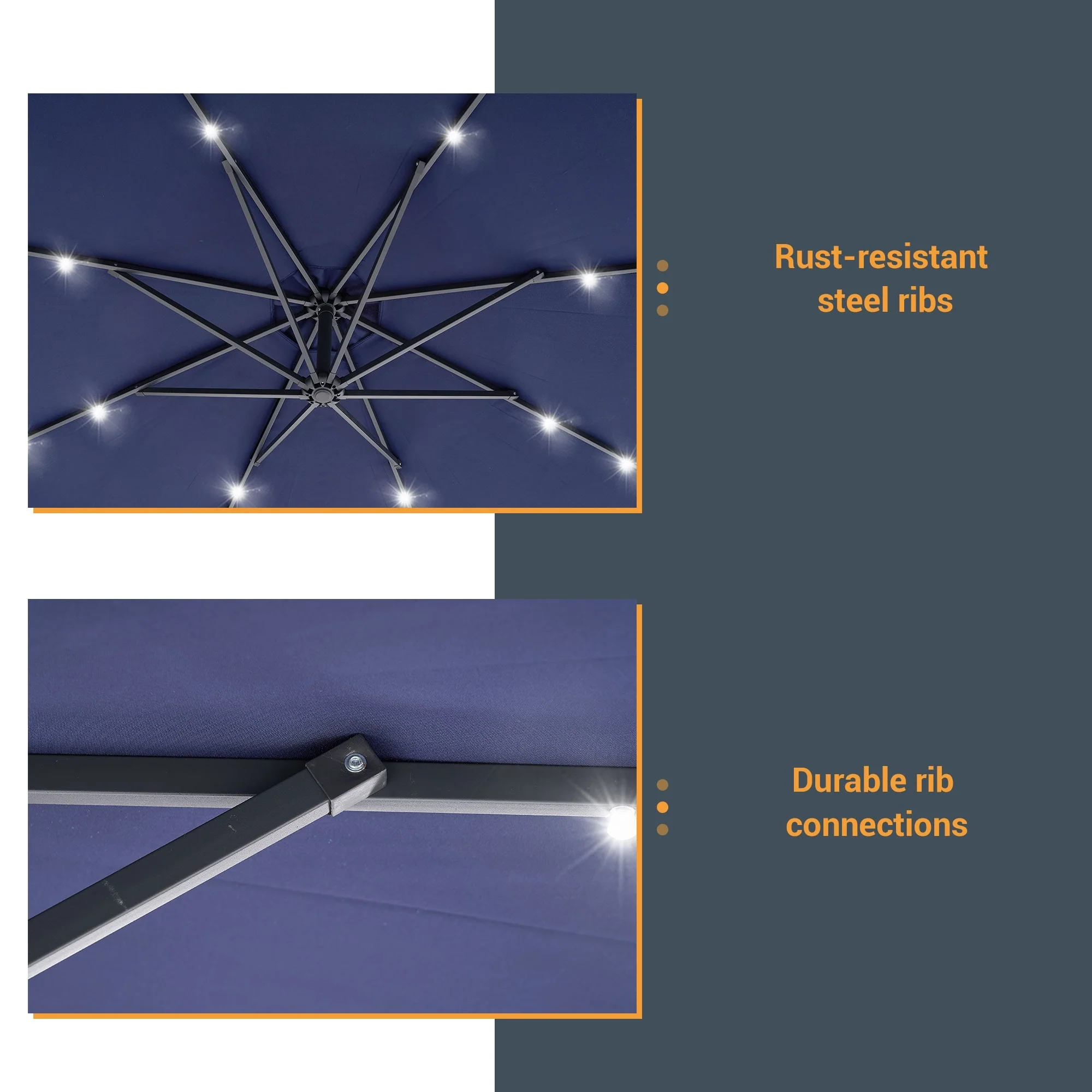 BONOSUKI 10ft Patio offset Umbrella Hanging Umbrella With LED Lights