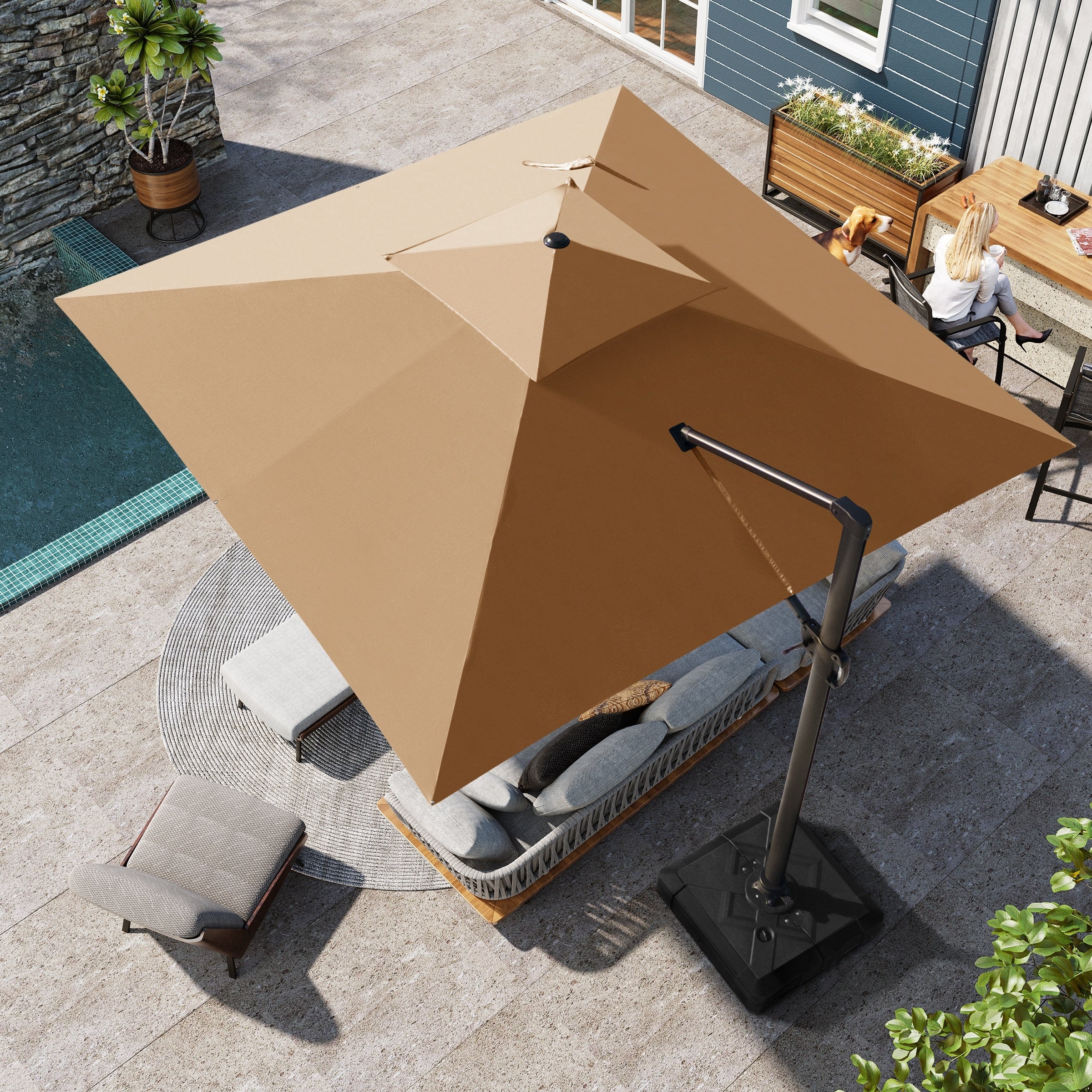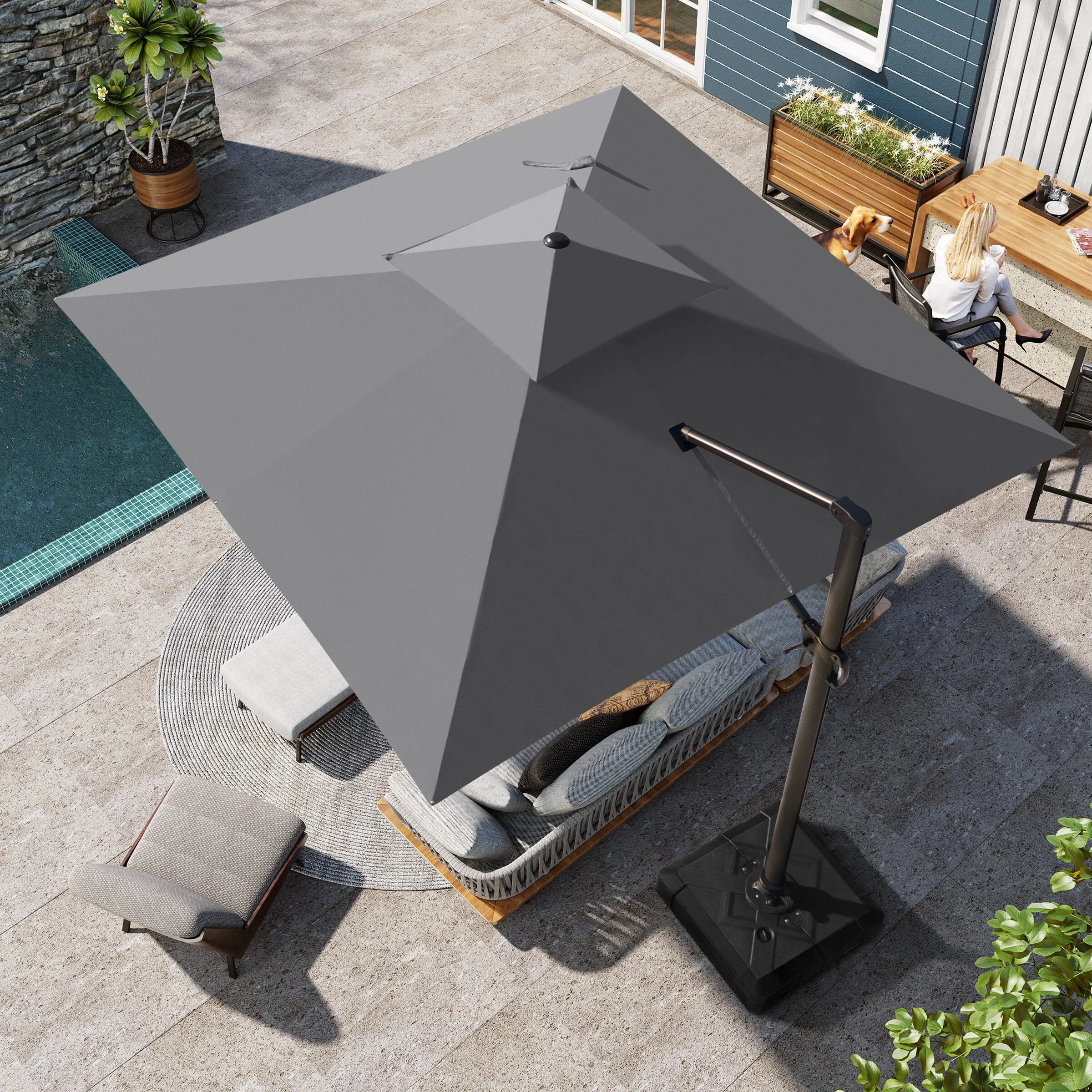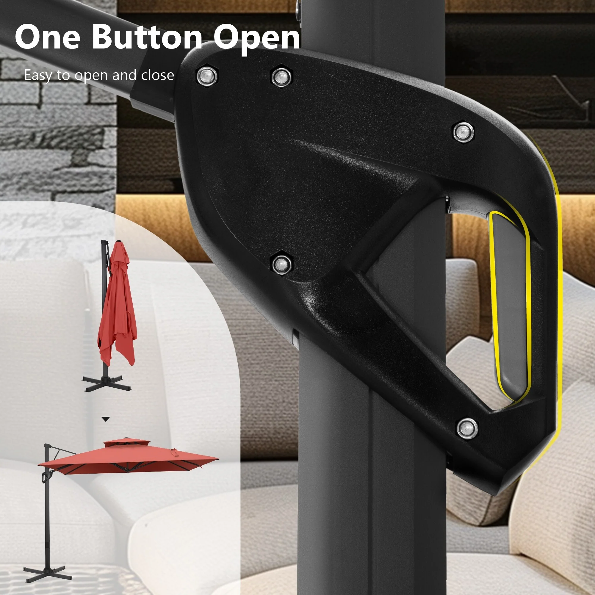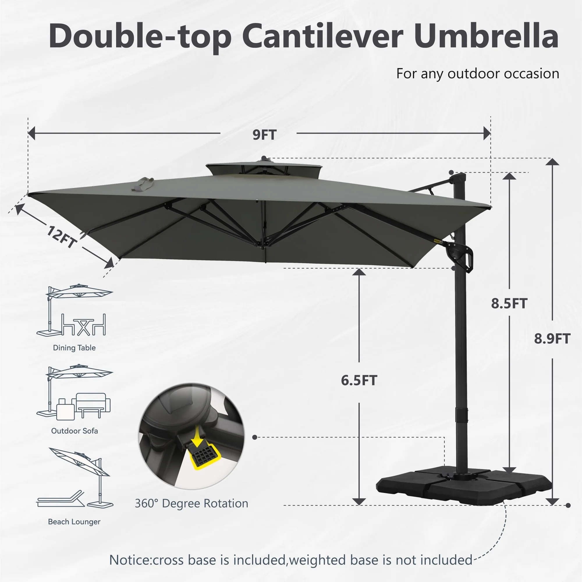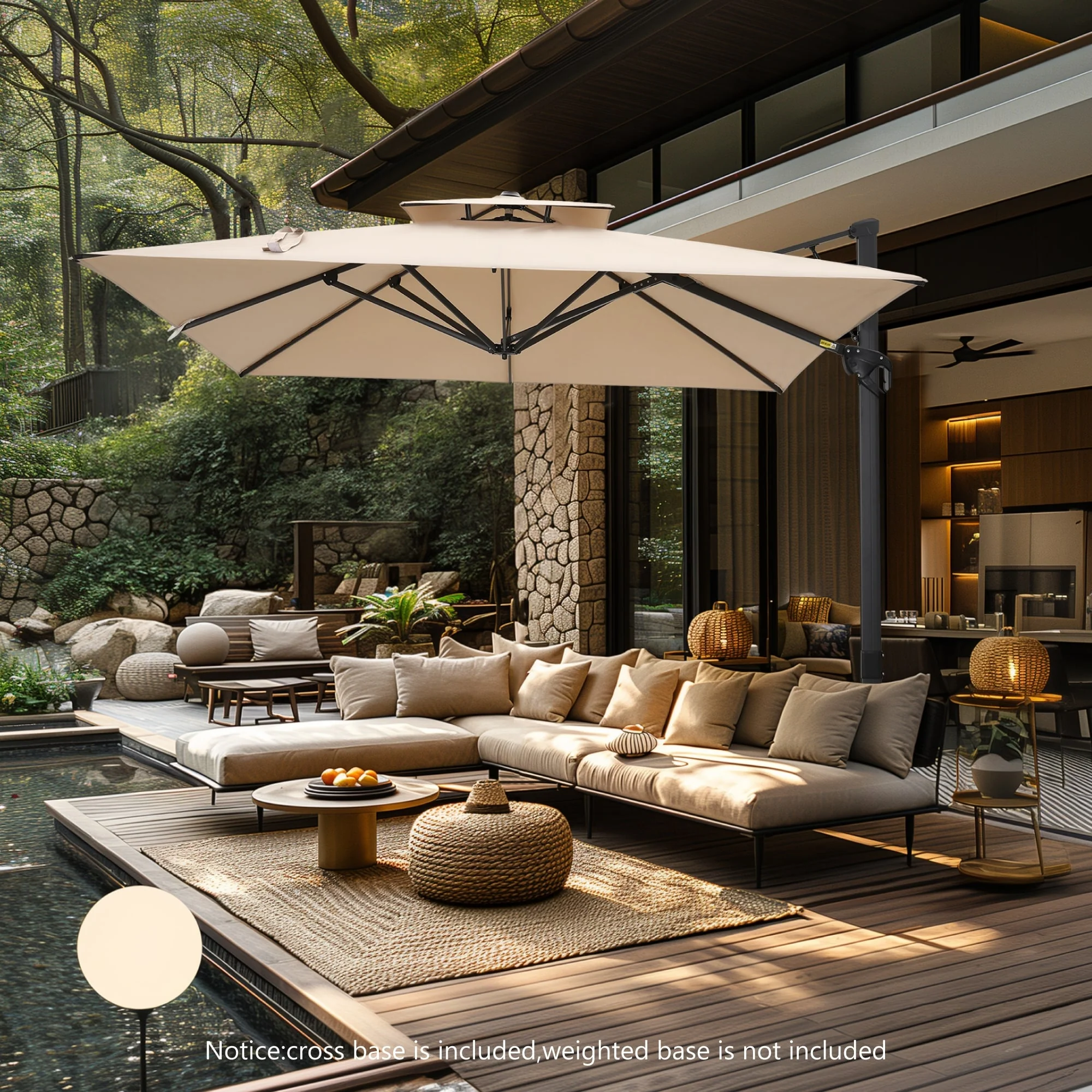 MAISON ARTS 12 FT Automatic Hydraulic Cantilever Umbrella Aluminum Pole 360 Degree Rotation
