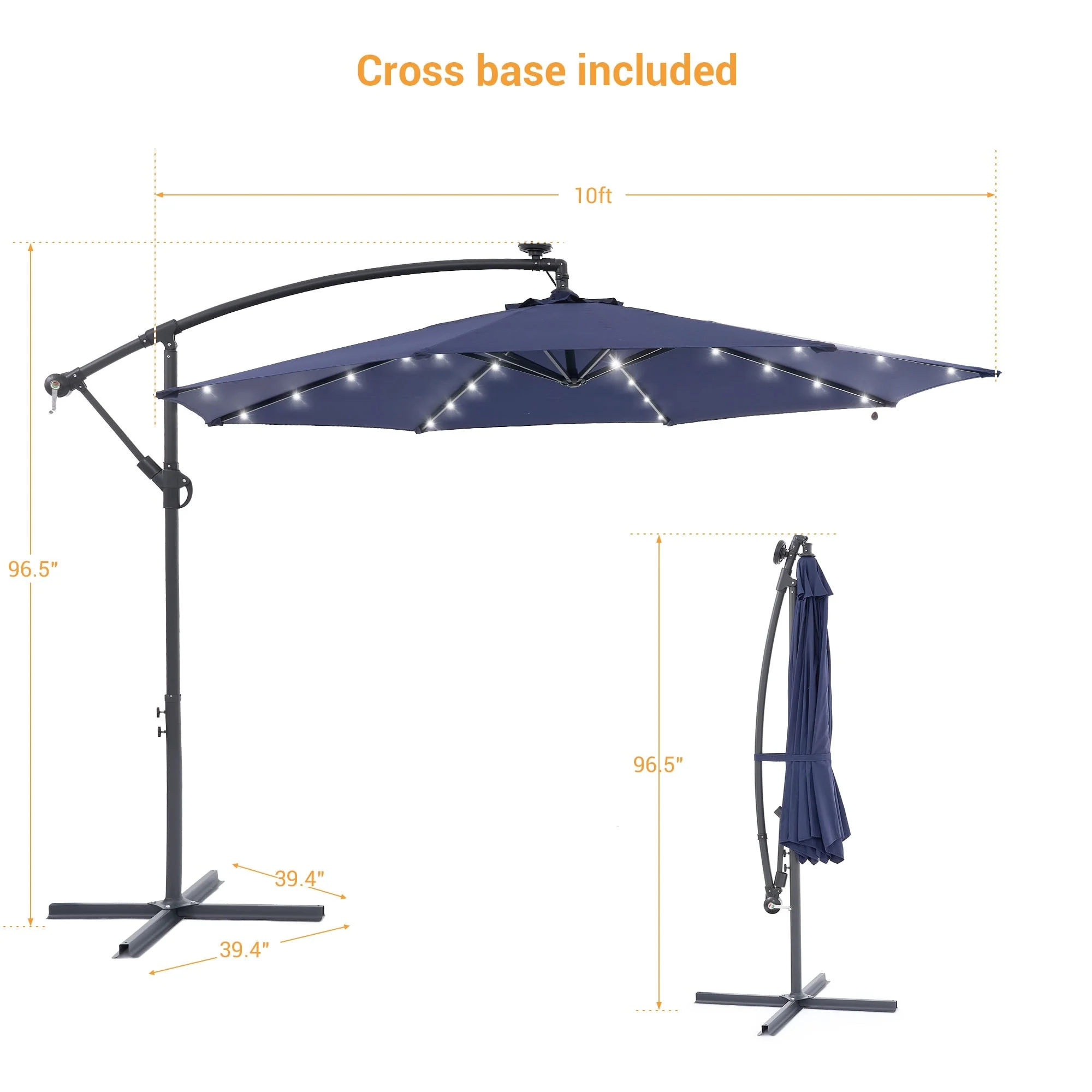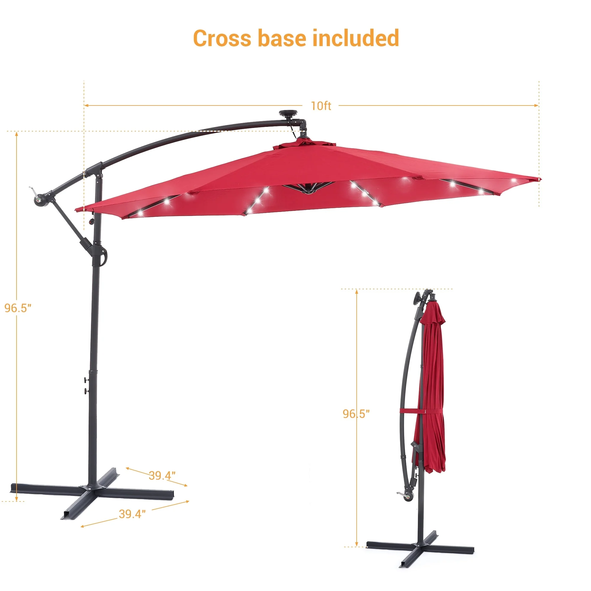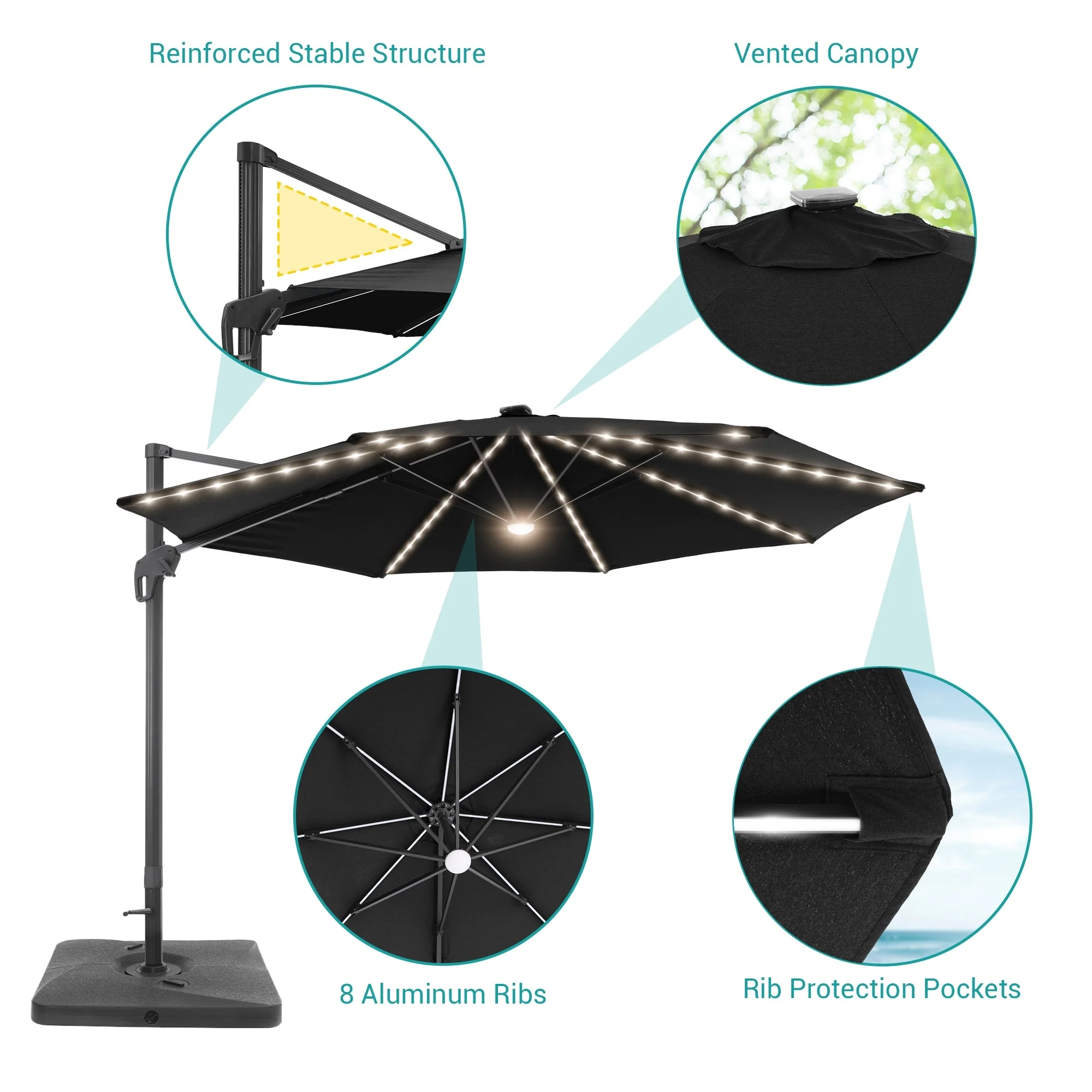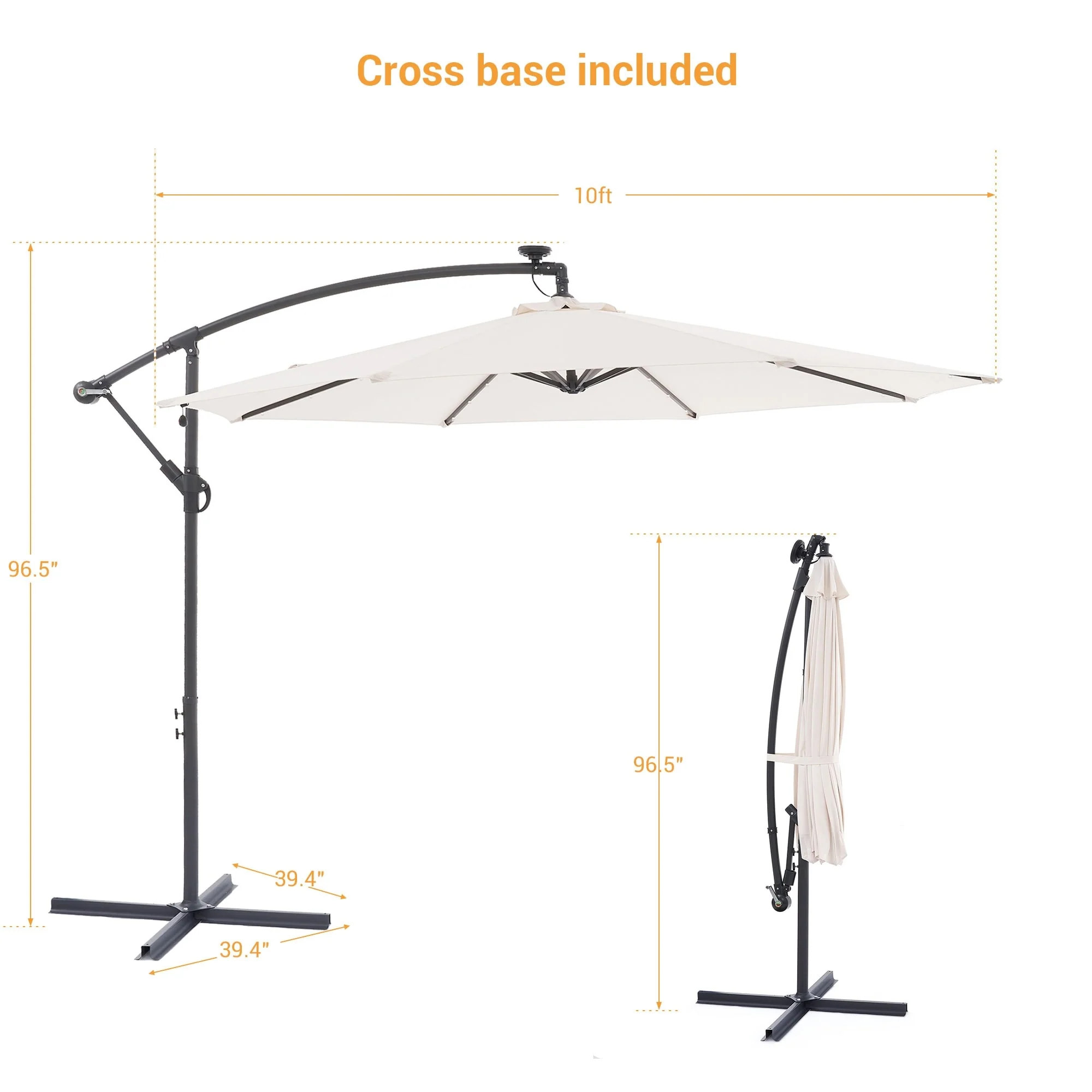 10Ft LED Patio Offset Umbrella Hanging Circle Umbrellas,w/Cross Base