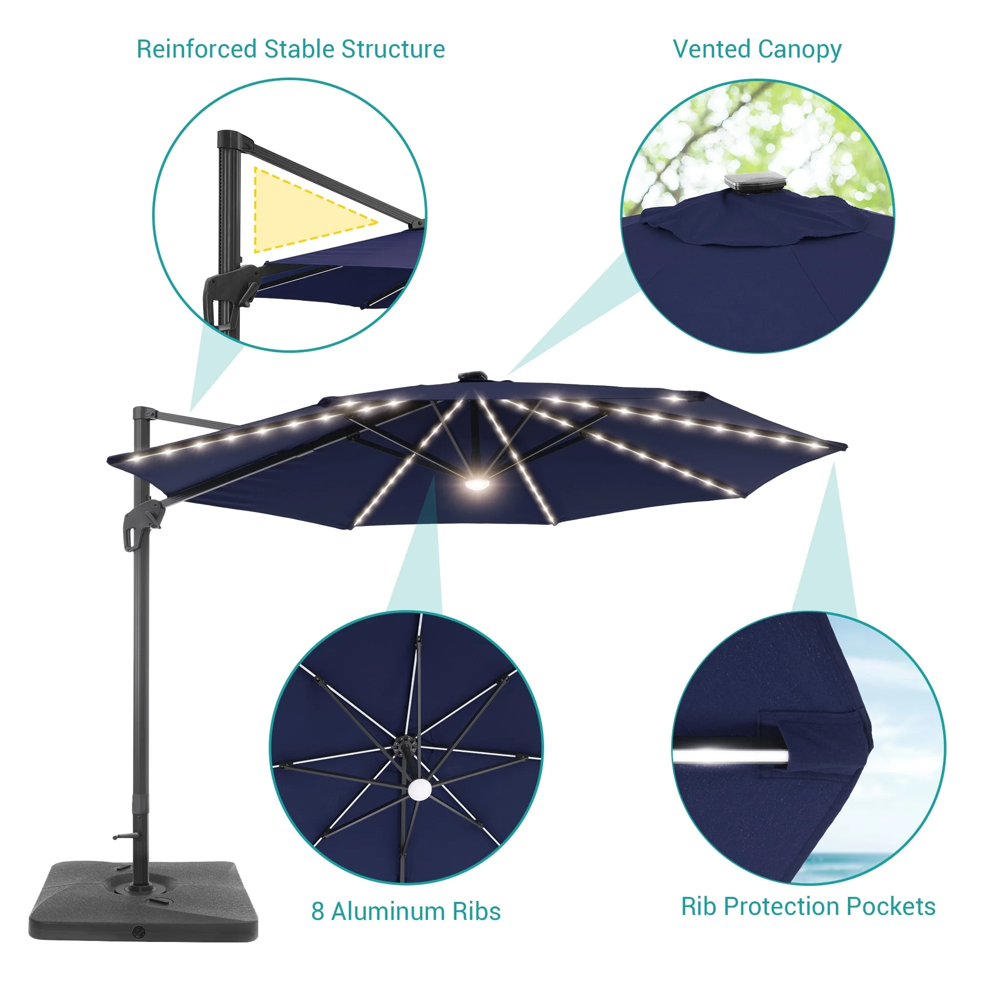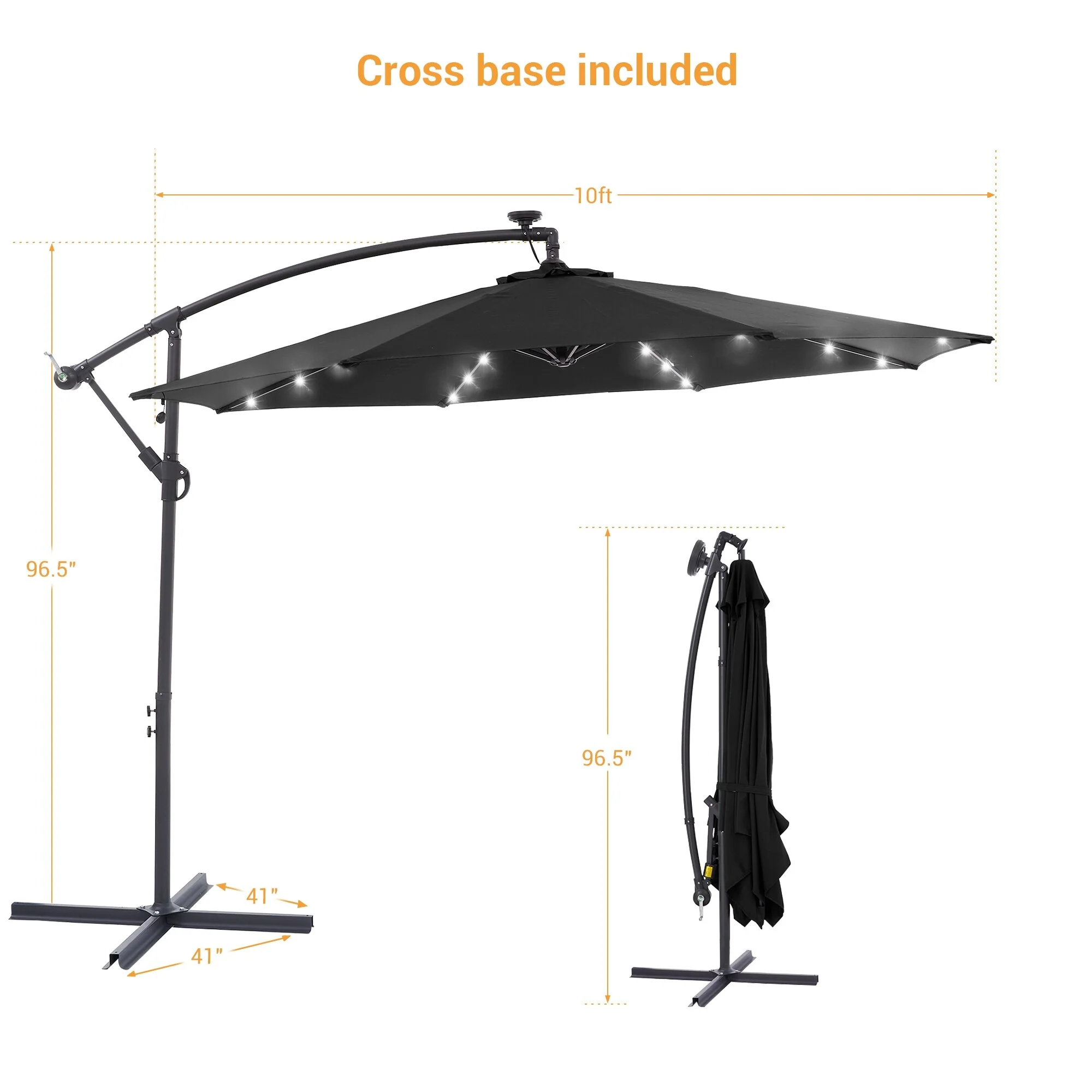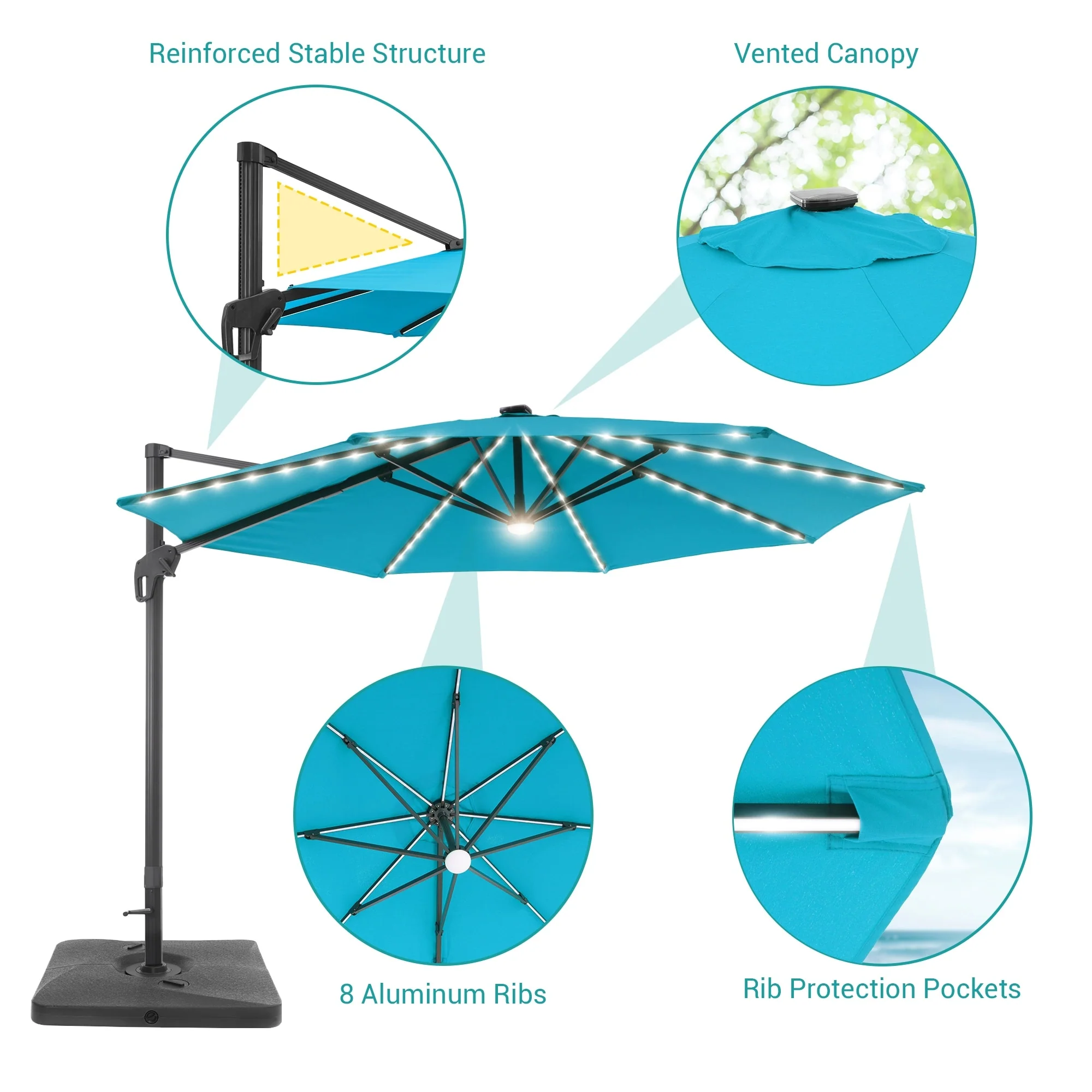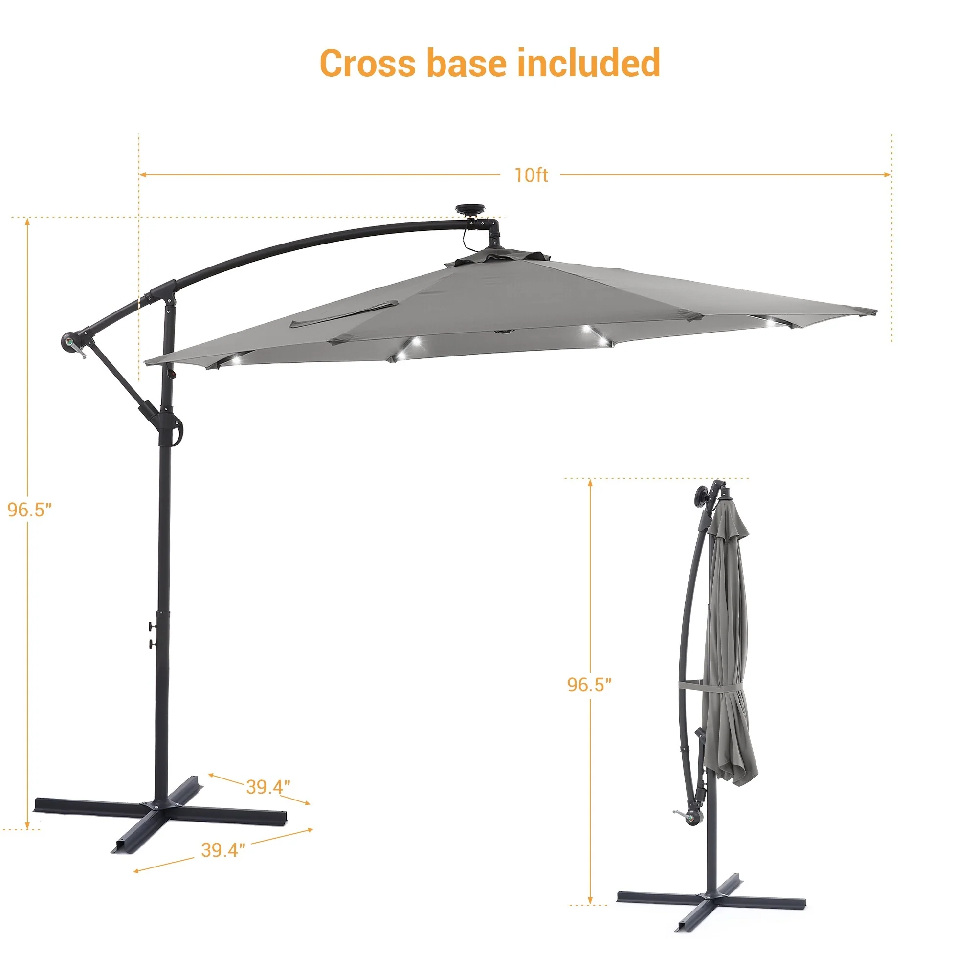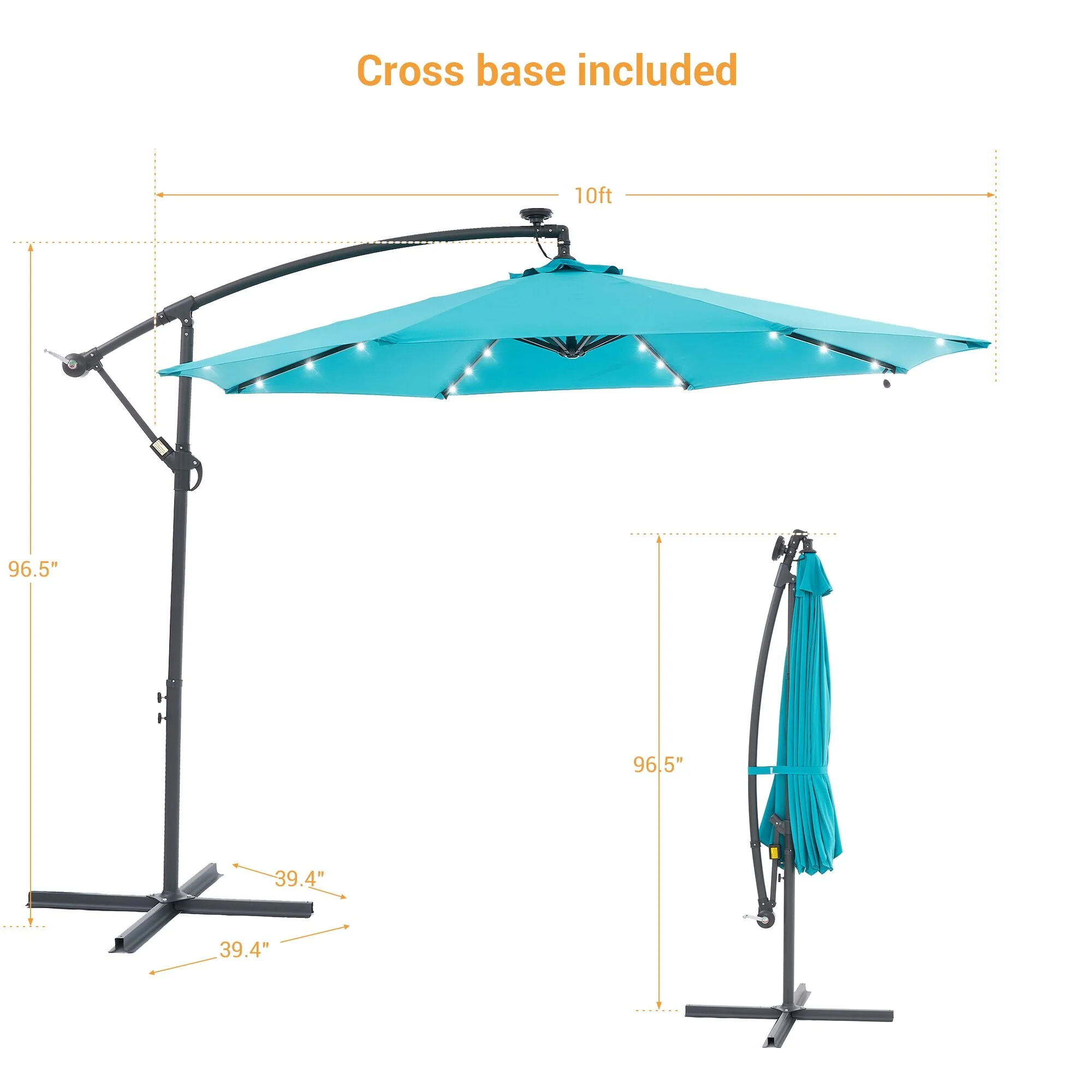 10Ft LED Patio Offset Umbrella Hanging Circle Umbrellas,w/Cross Base