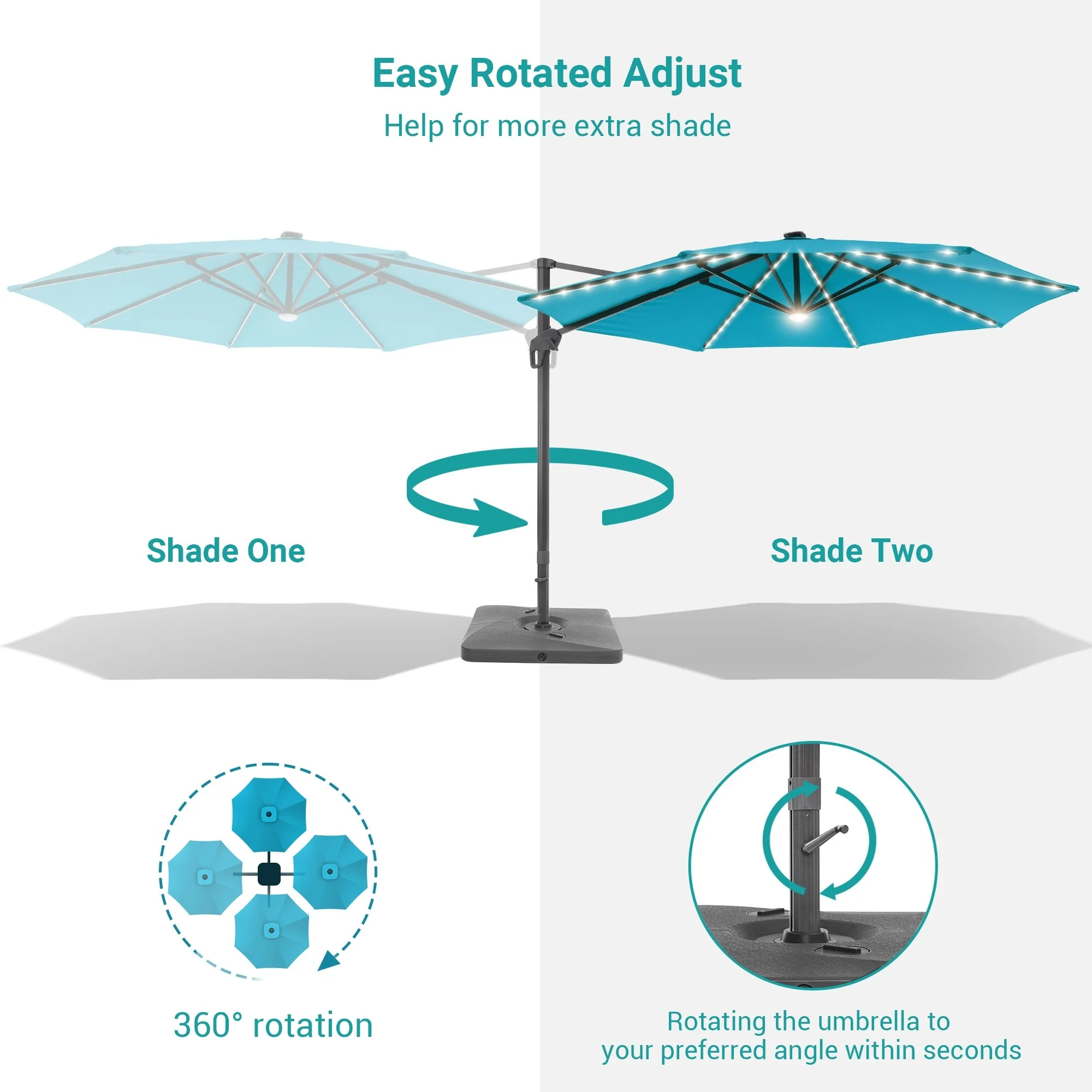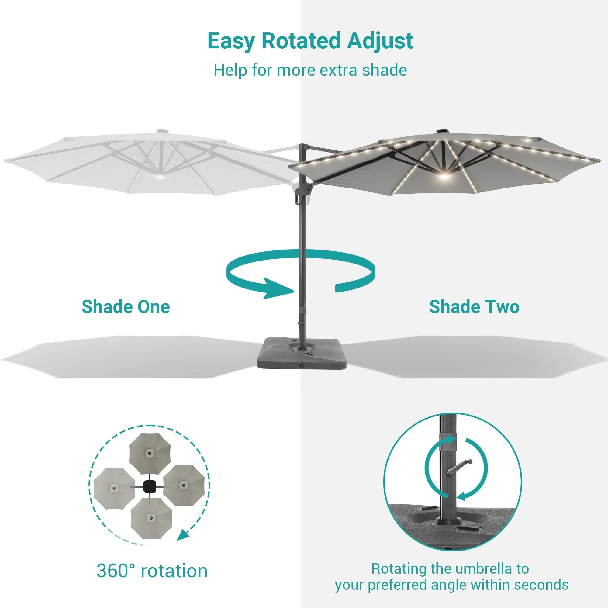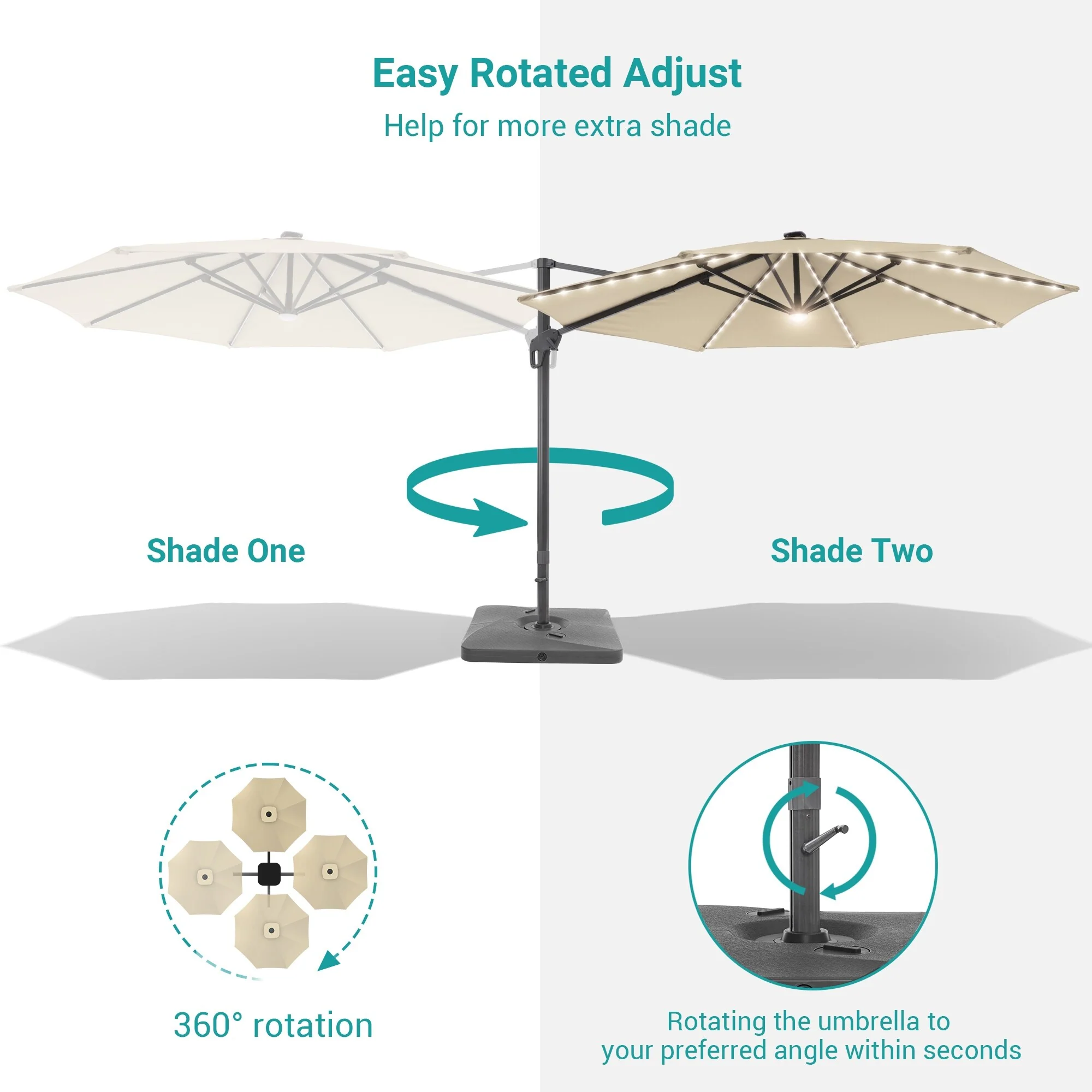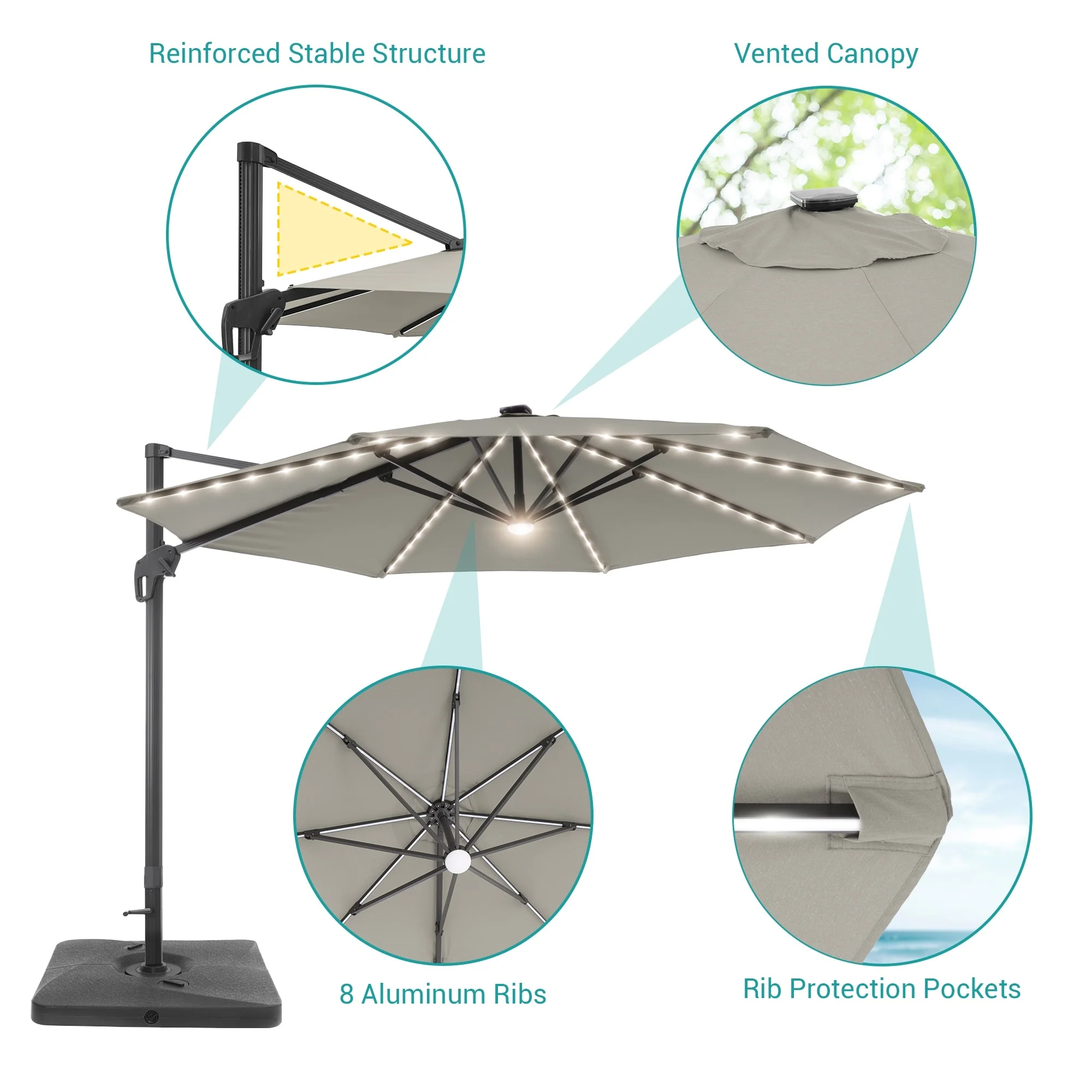 10Ft LED Patio Offset Umbrella Hanging Circle Umbrellas,w/Cross Base