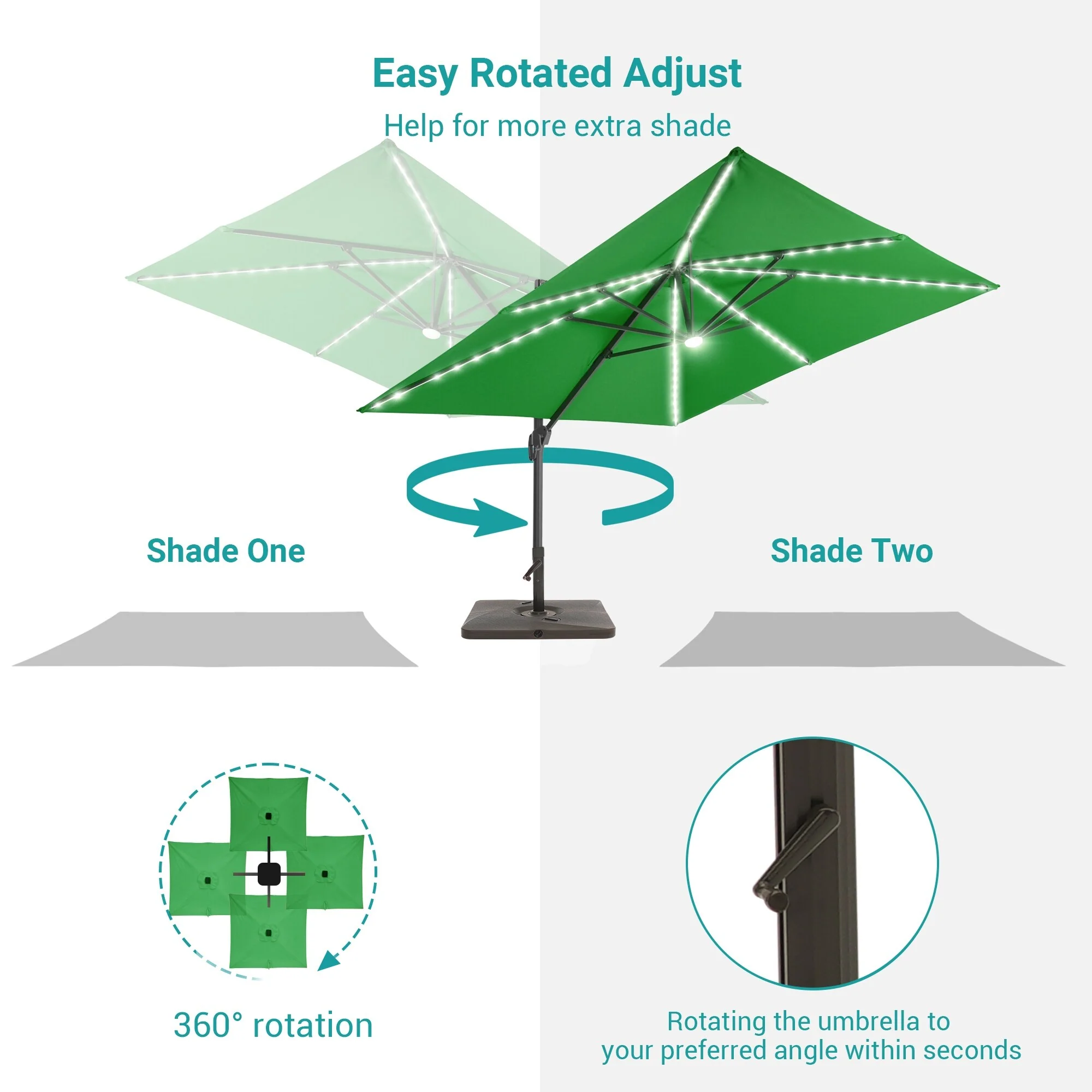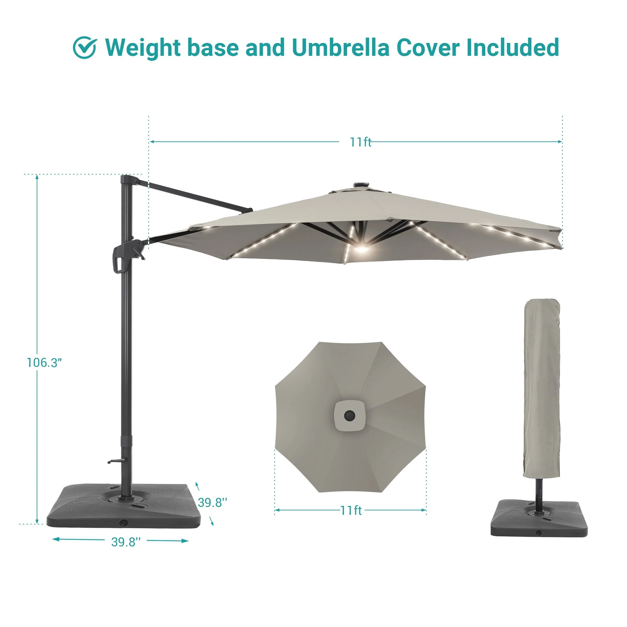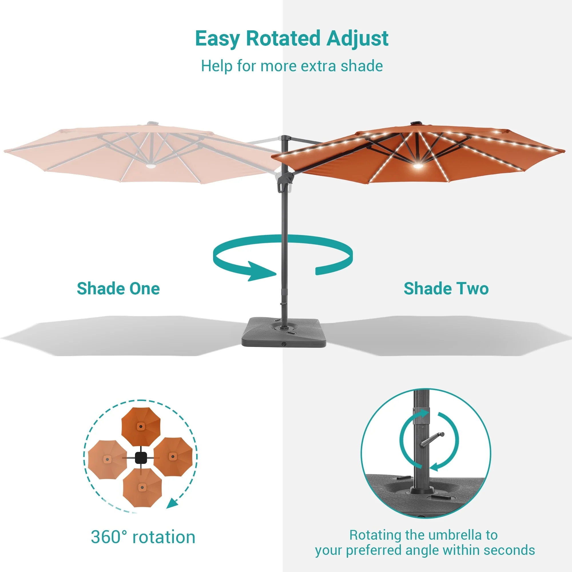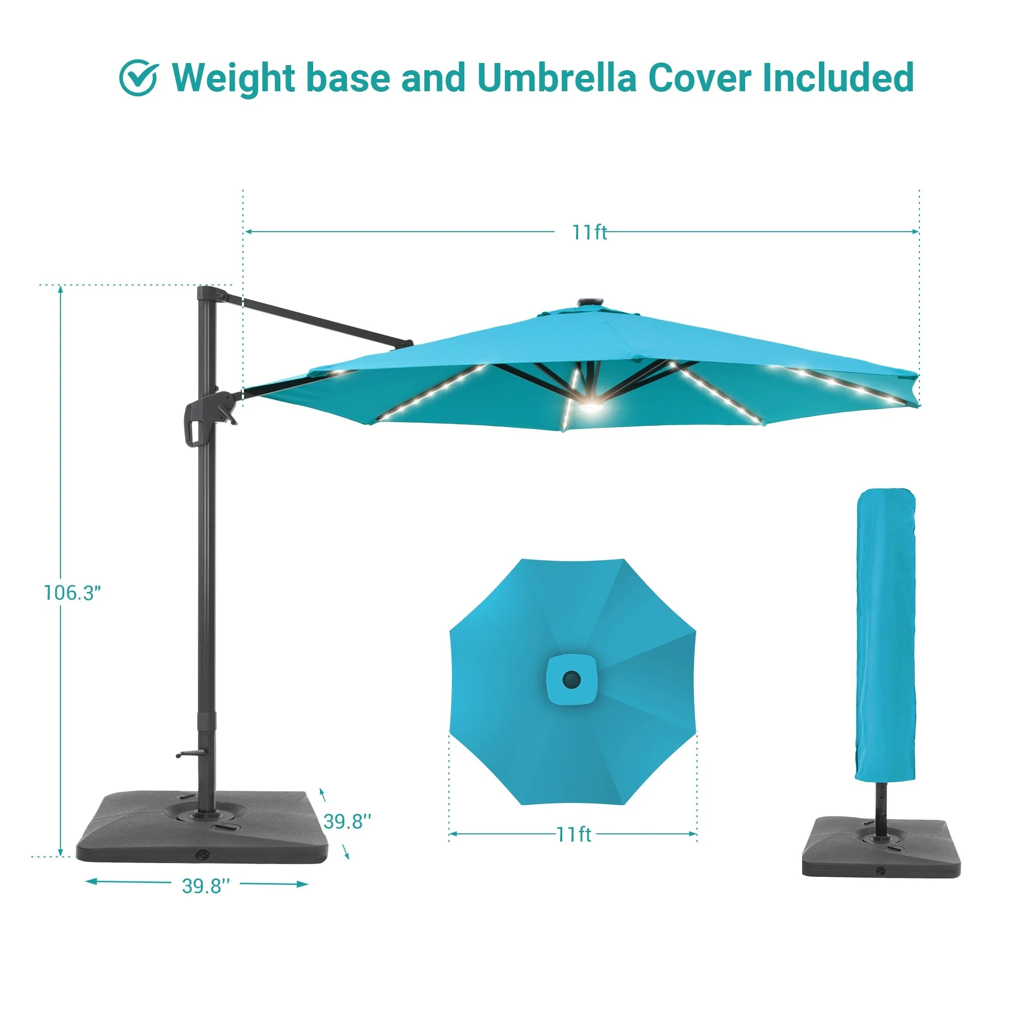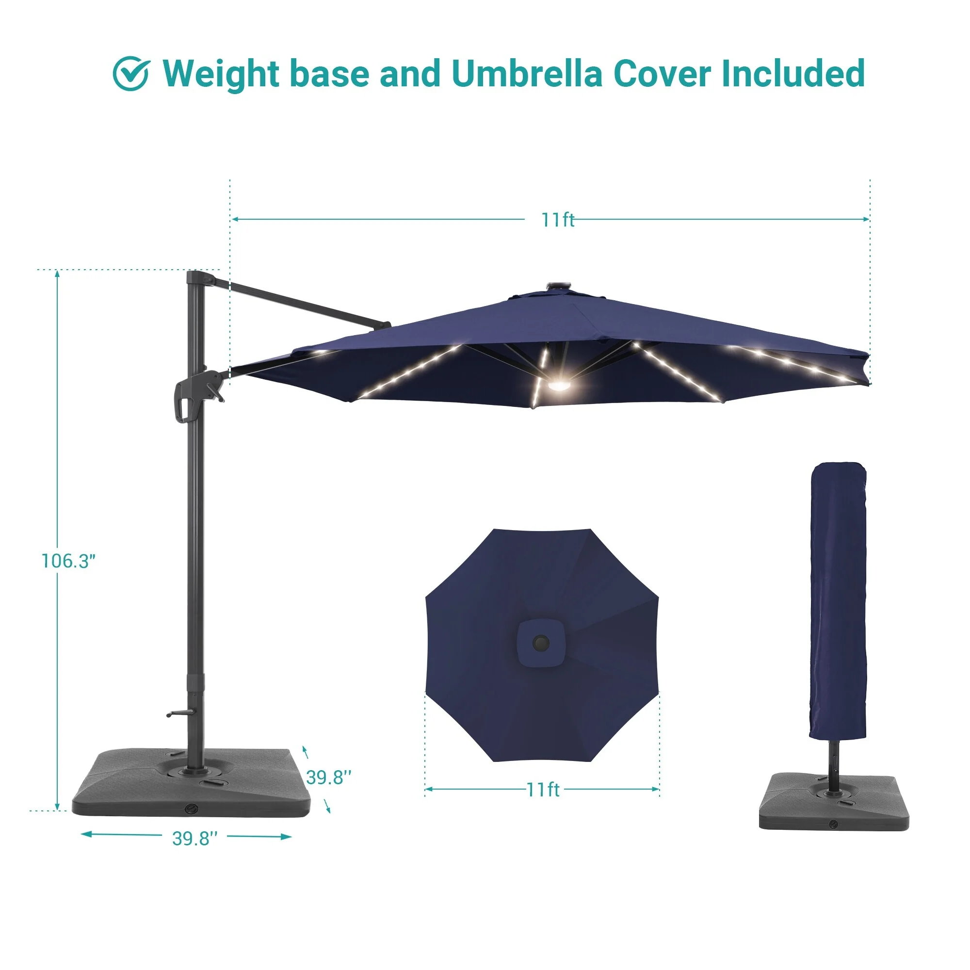 10Ft LED Patio Offset Umbrella Hanging Circle Umbrellas,w/Cross Base