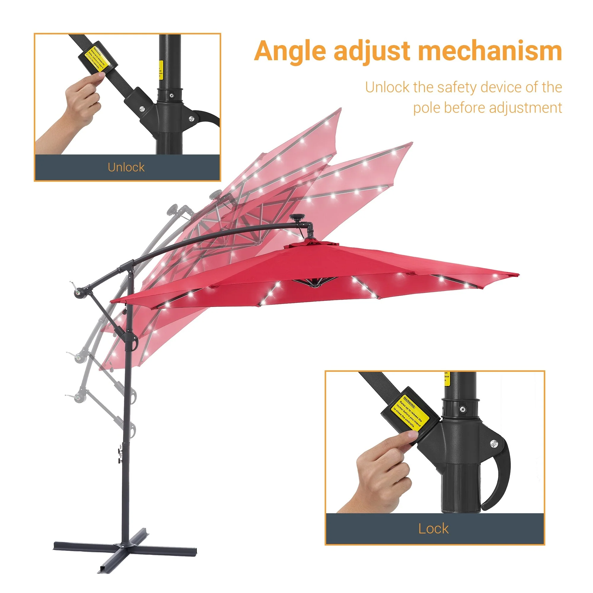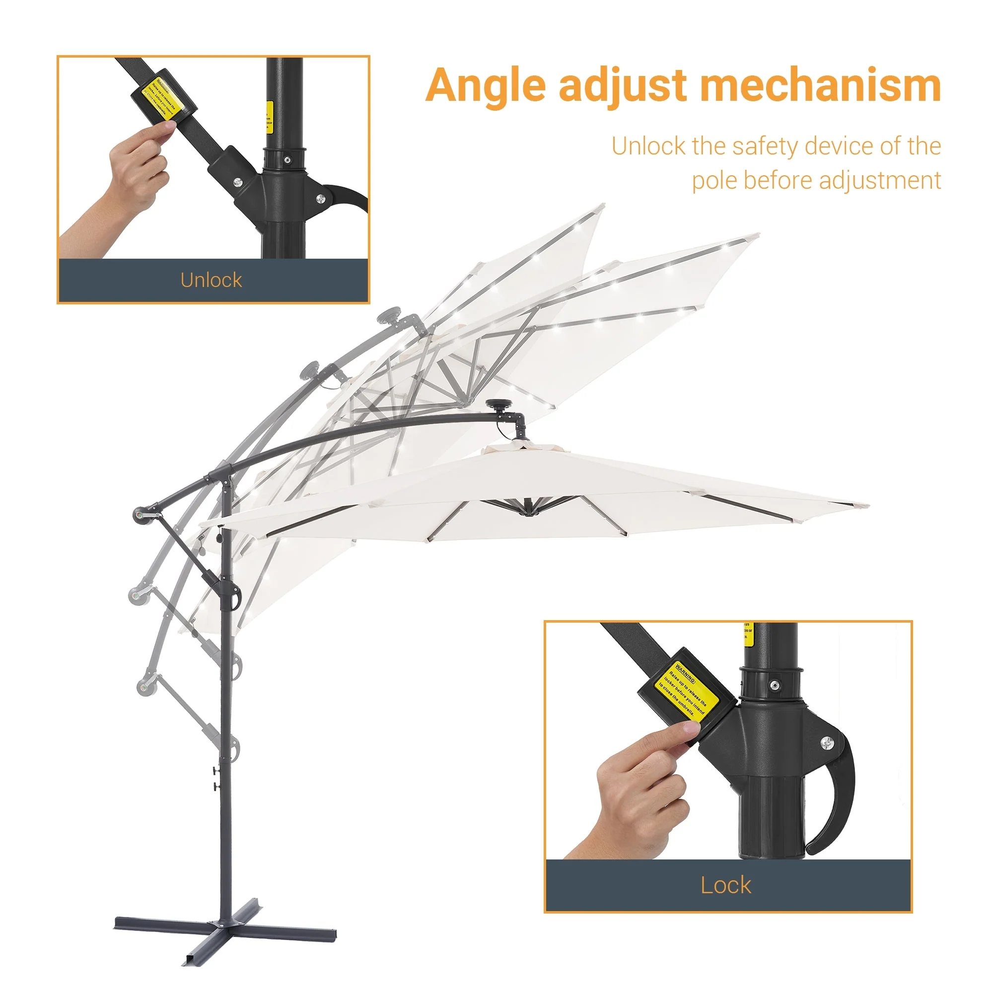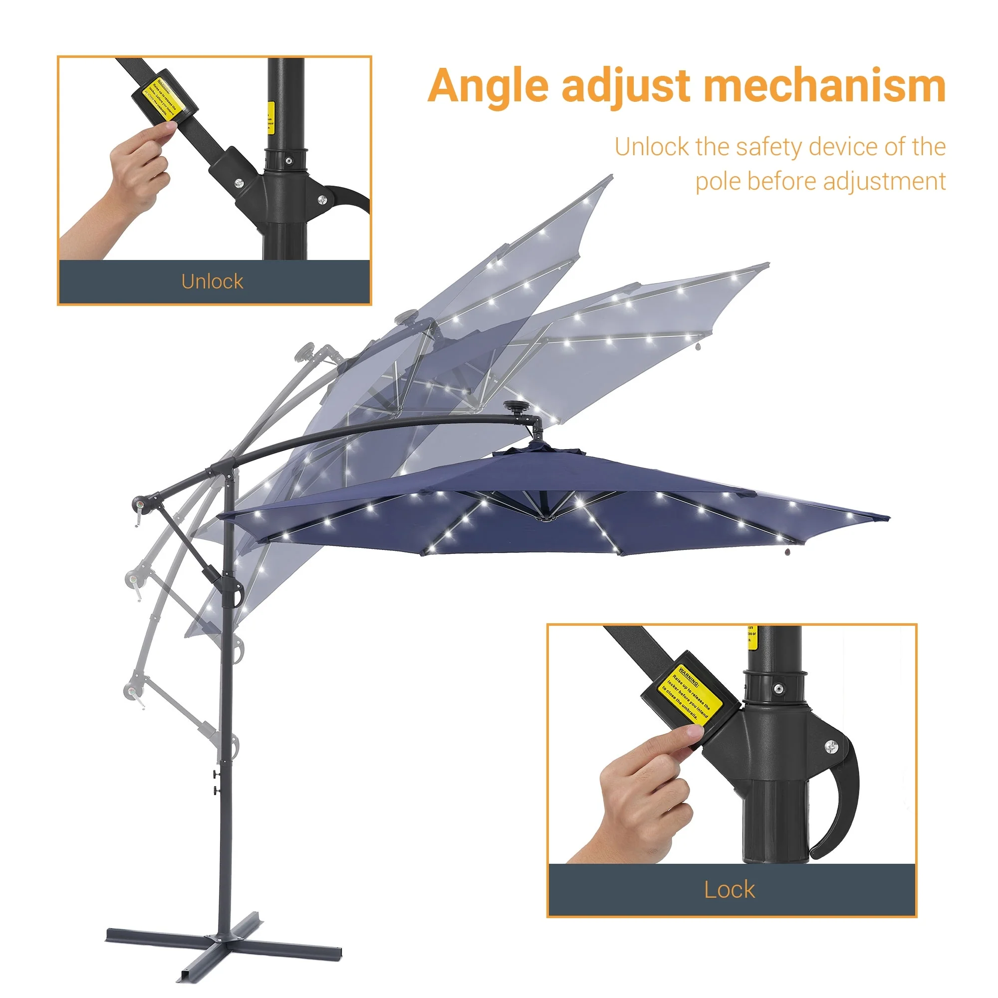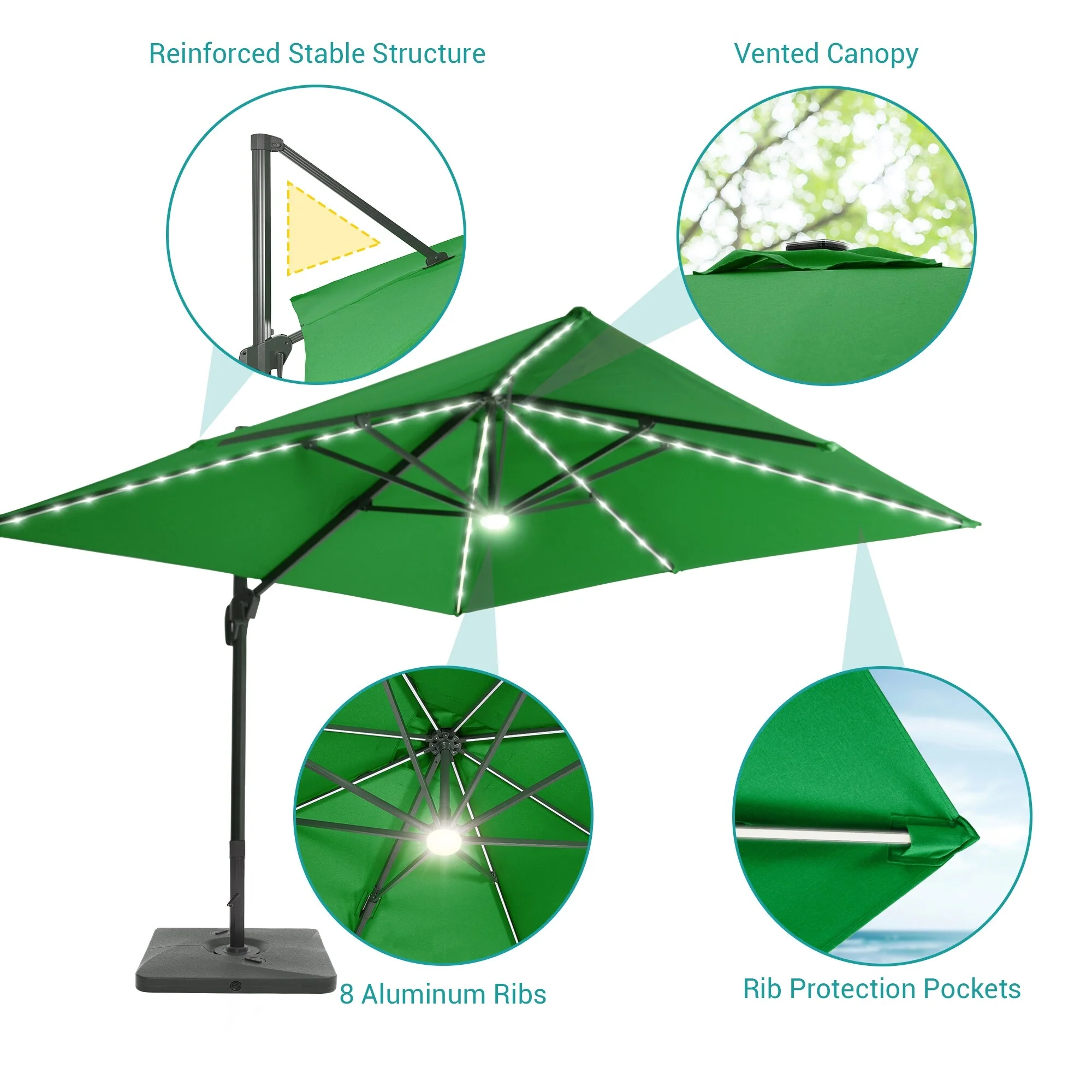 10Ft LED Patio Offset Umbrella Hanging Circle Umbrellas,w/Cross Base