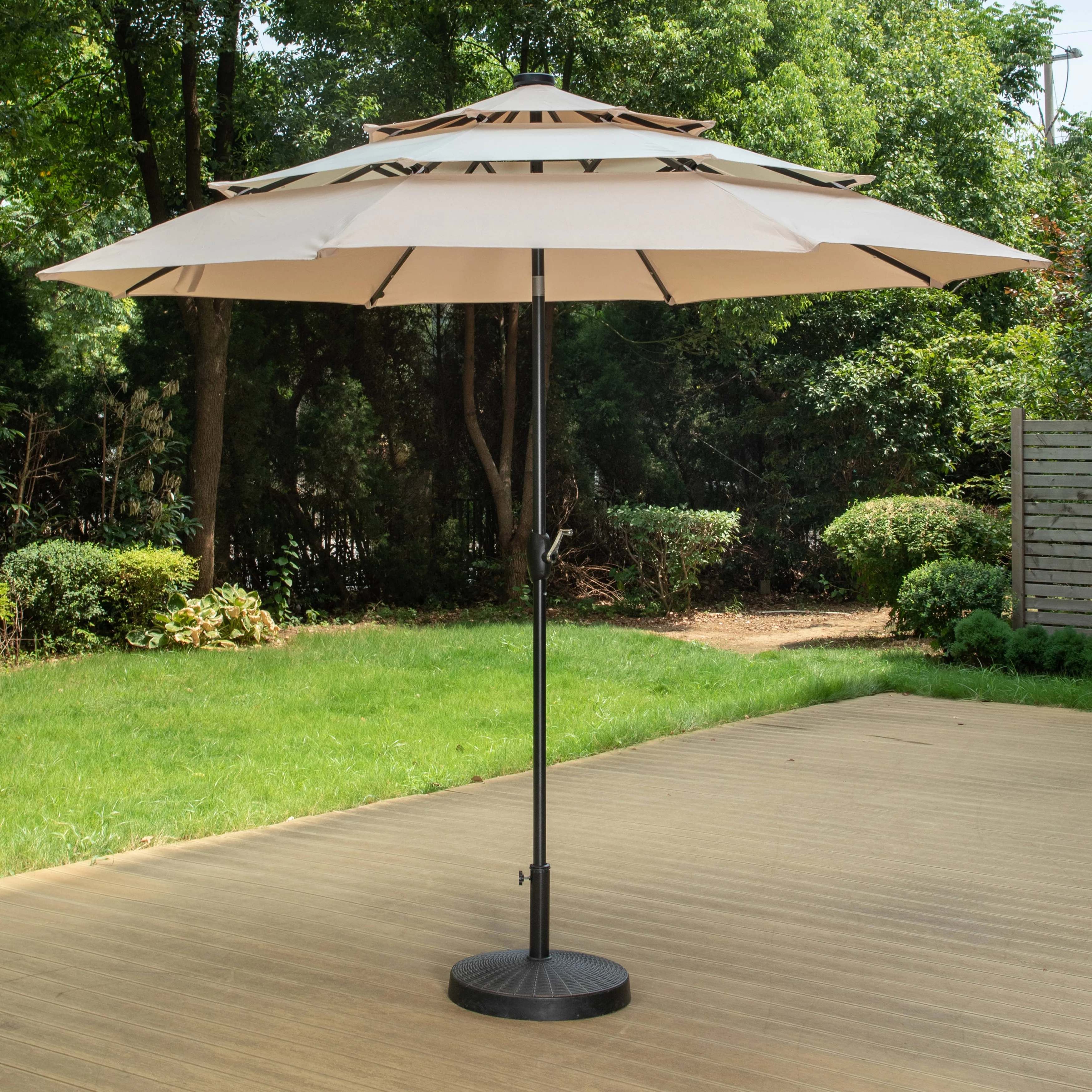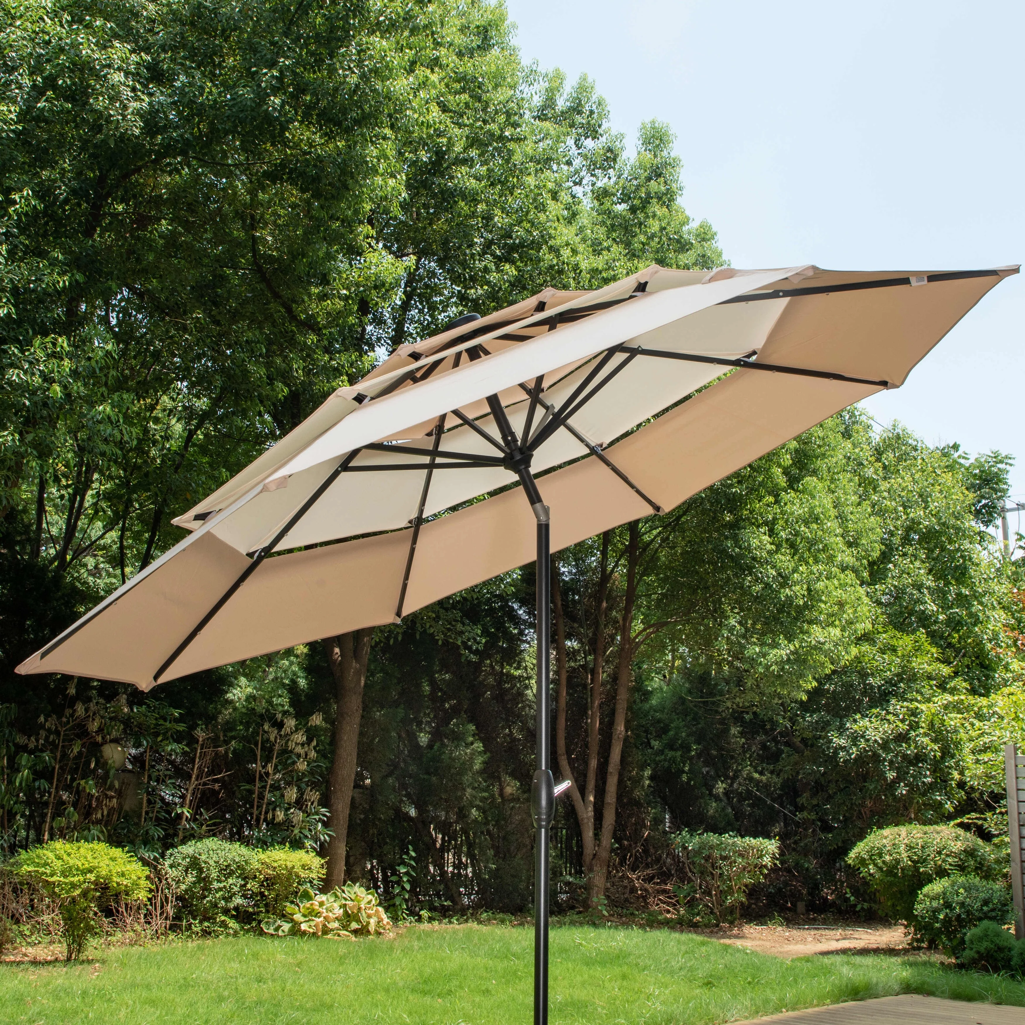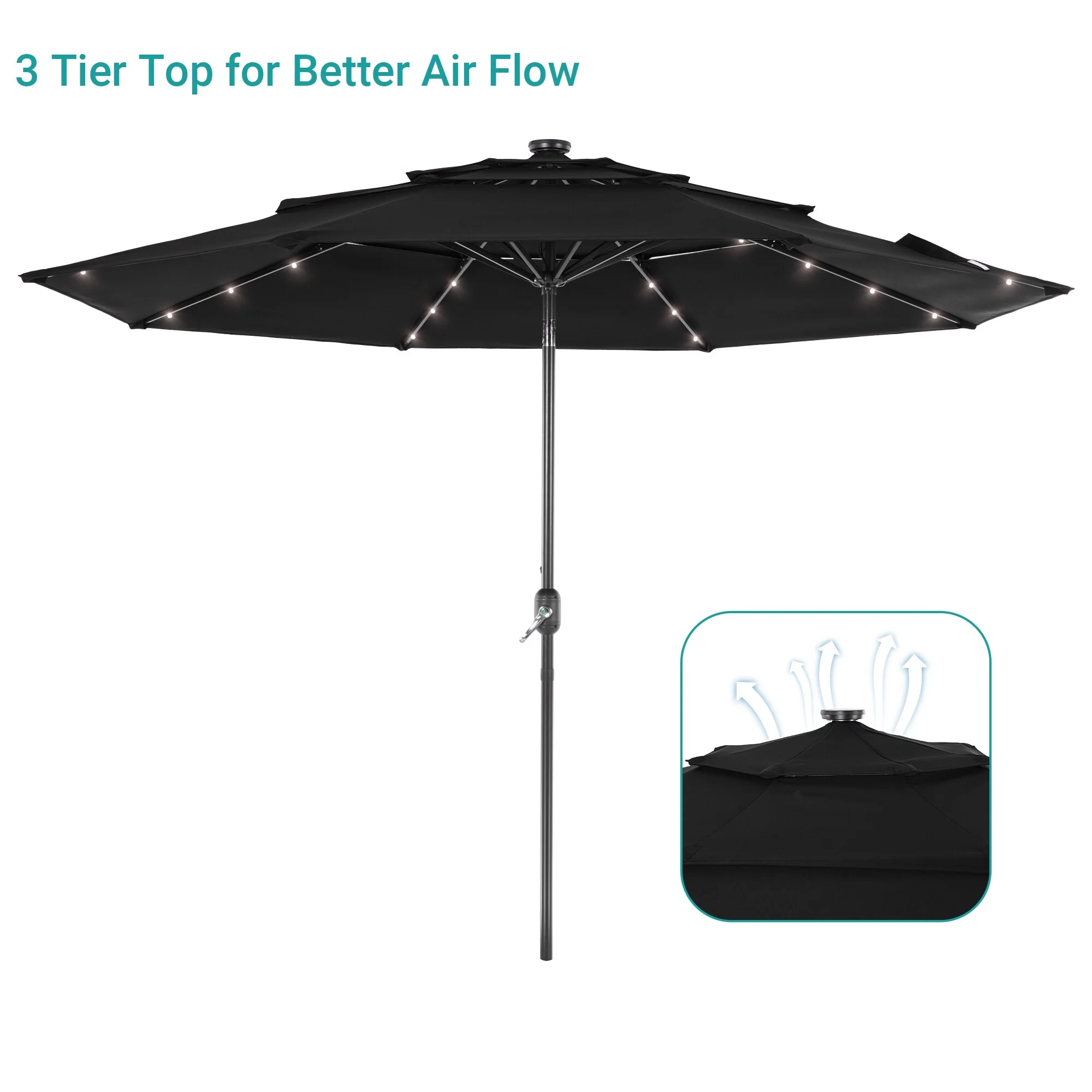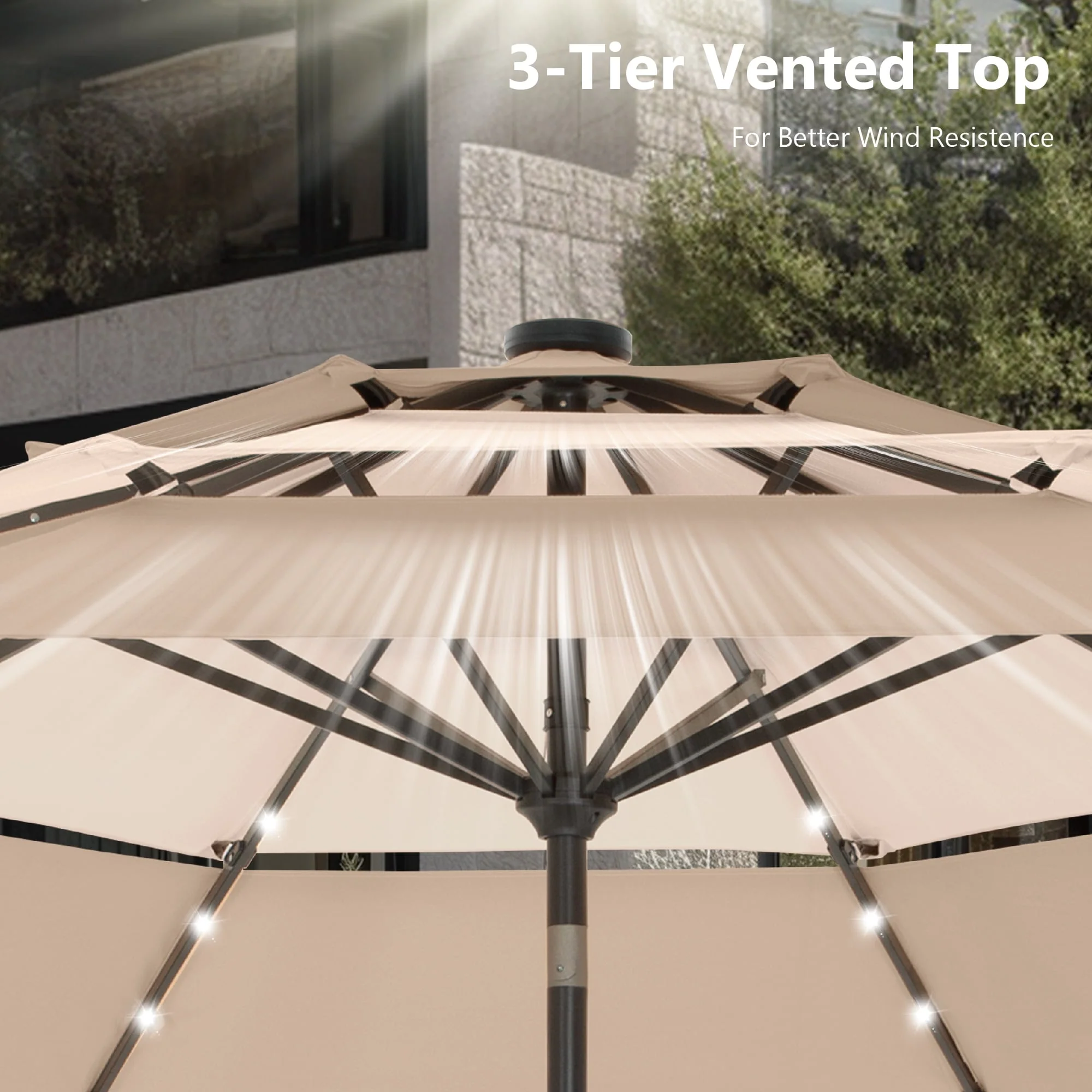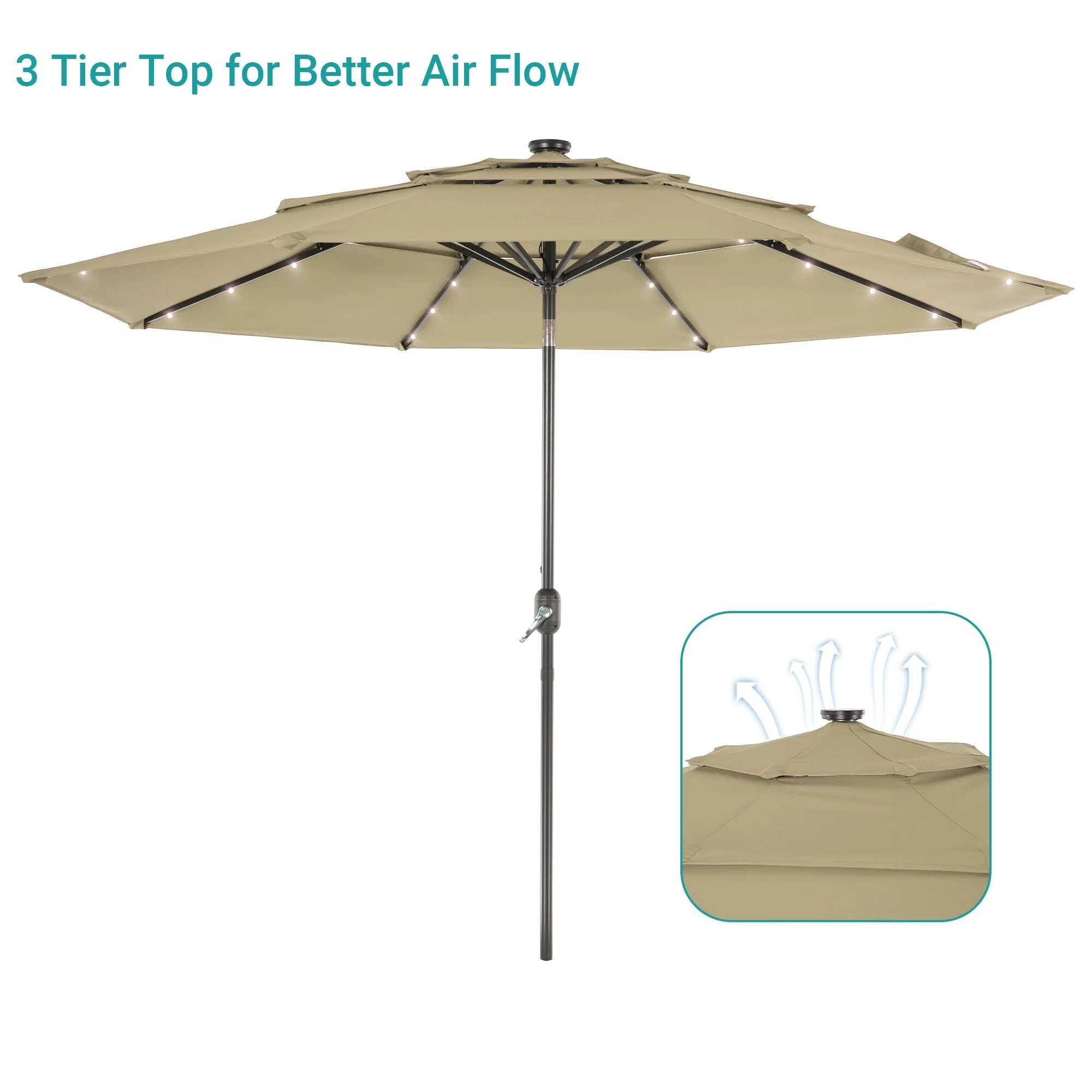 BONOSUKI 3 Tiers Patio Market Umbrella w/Solar Lights and Tilt button