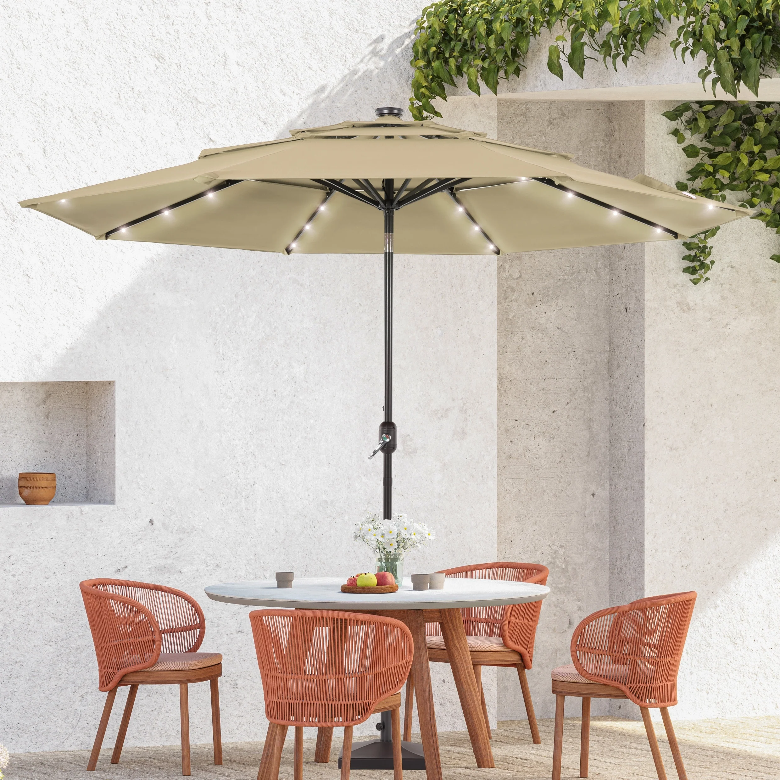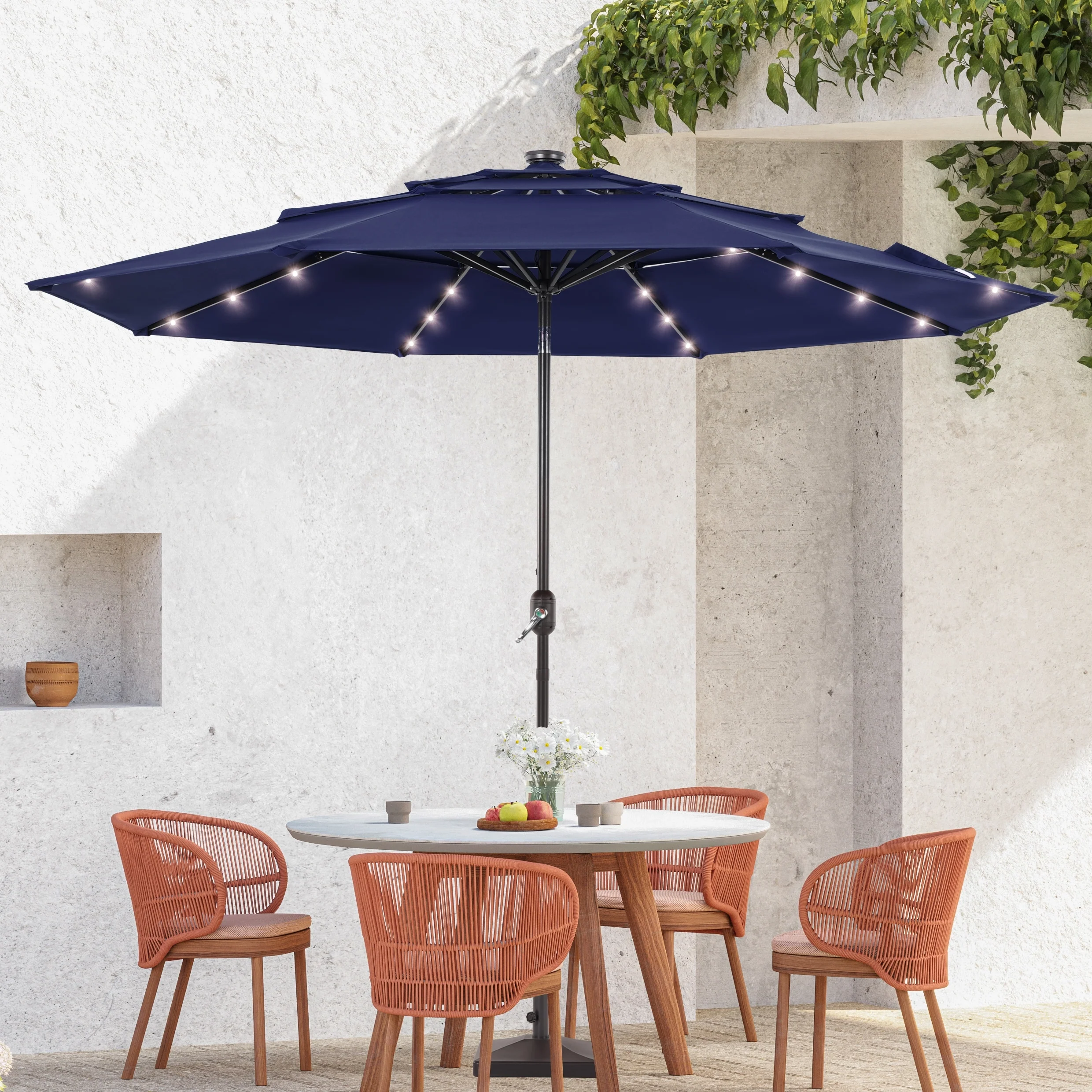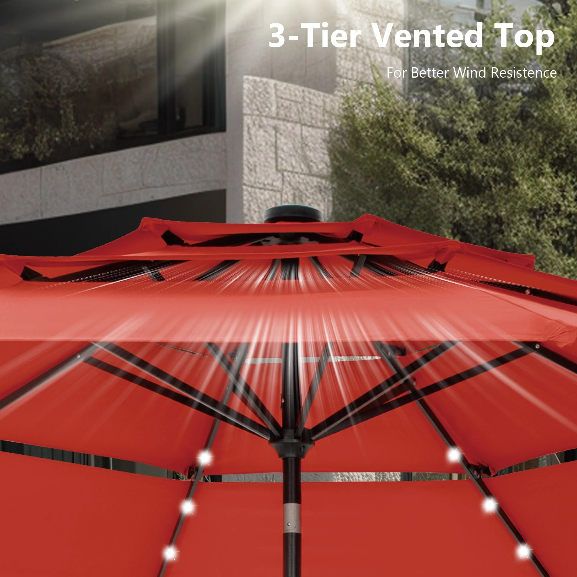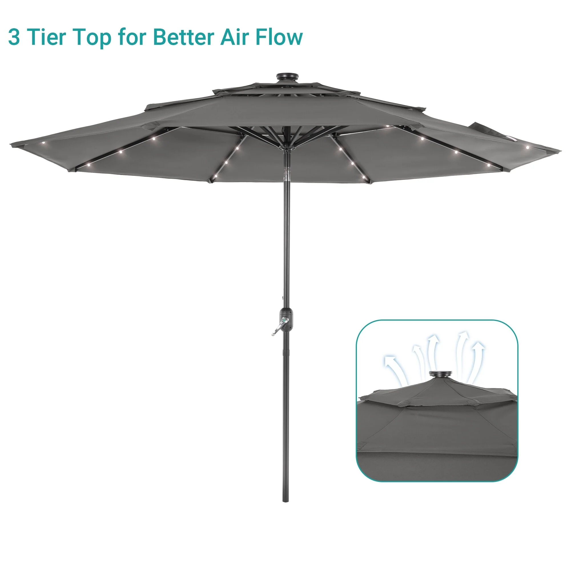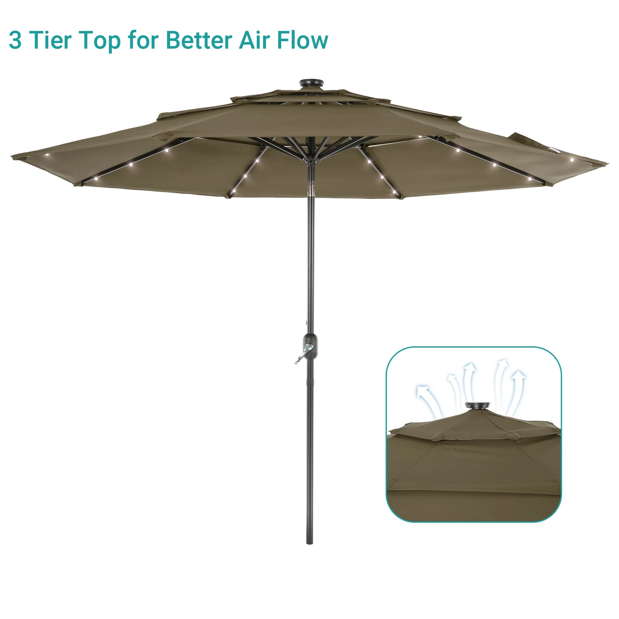 BONOSUKI 3 Tiers Patio Market Umbrella w/Solar Lights and Tilt button