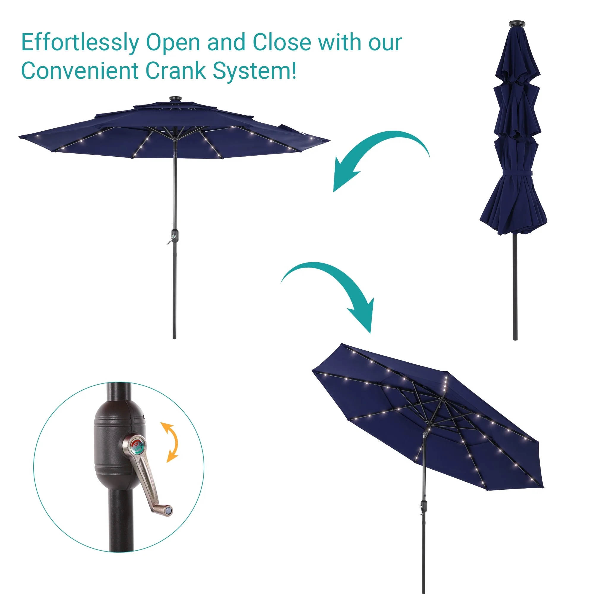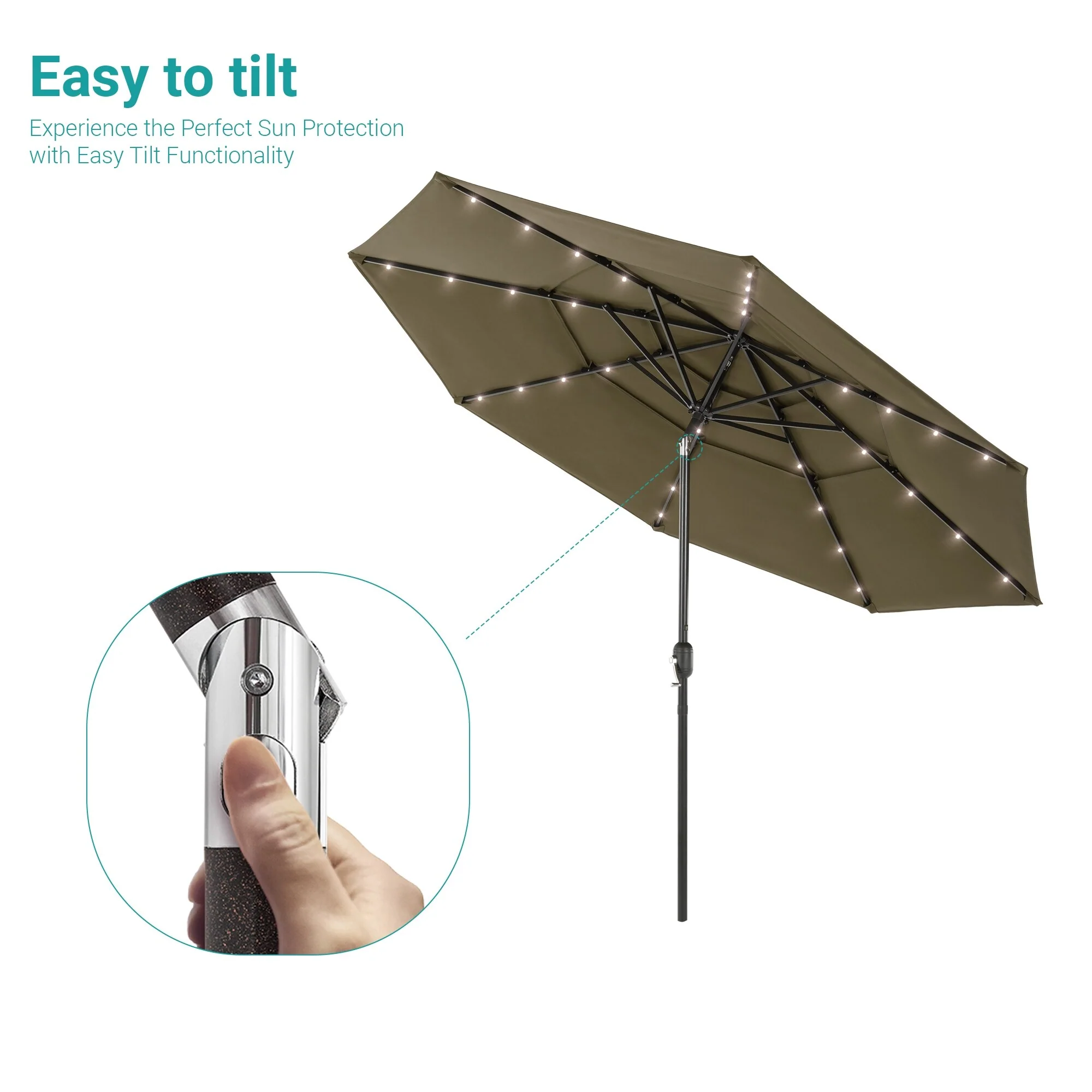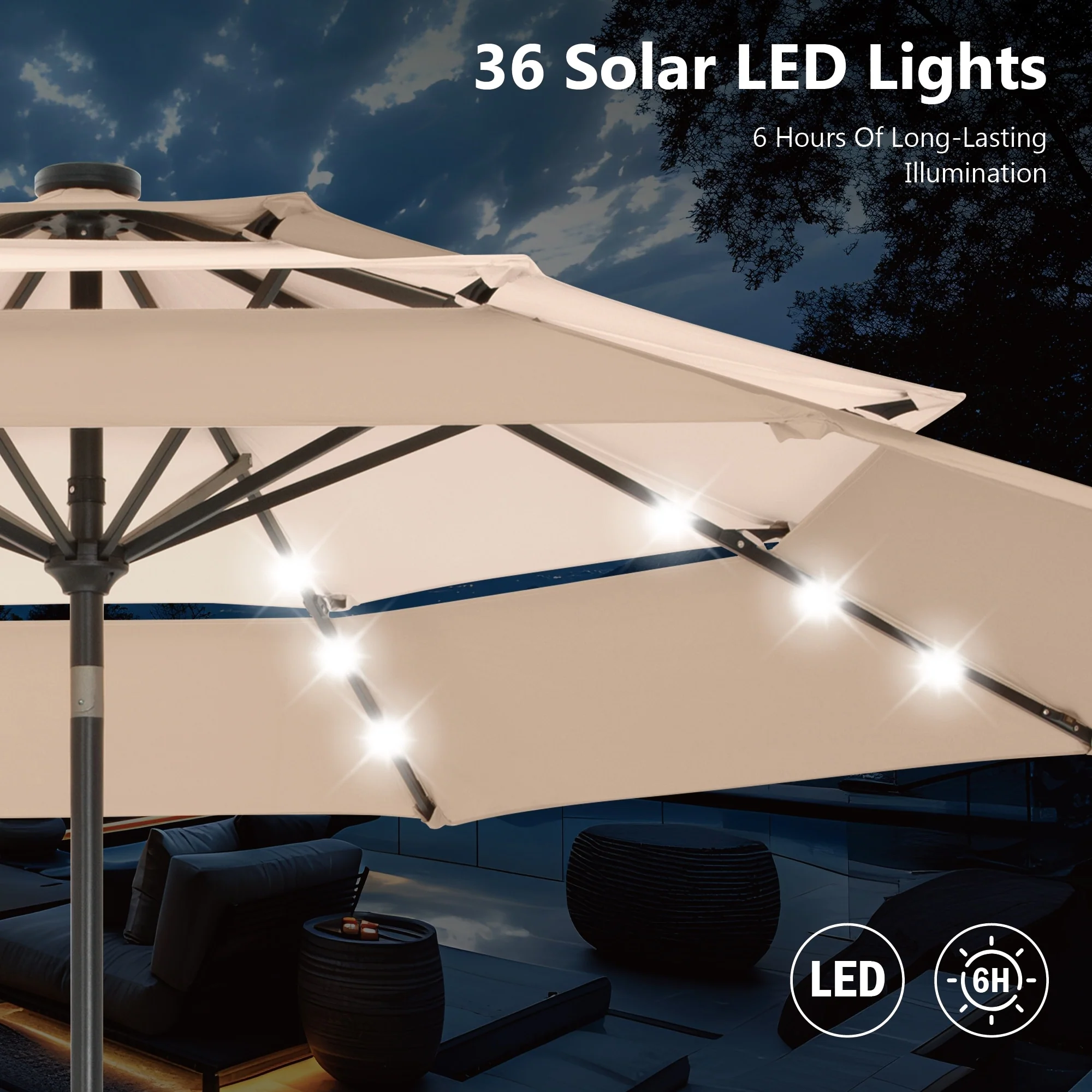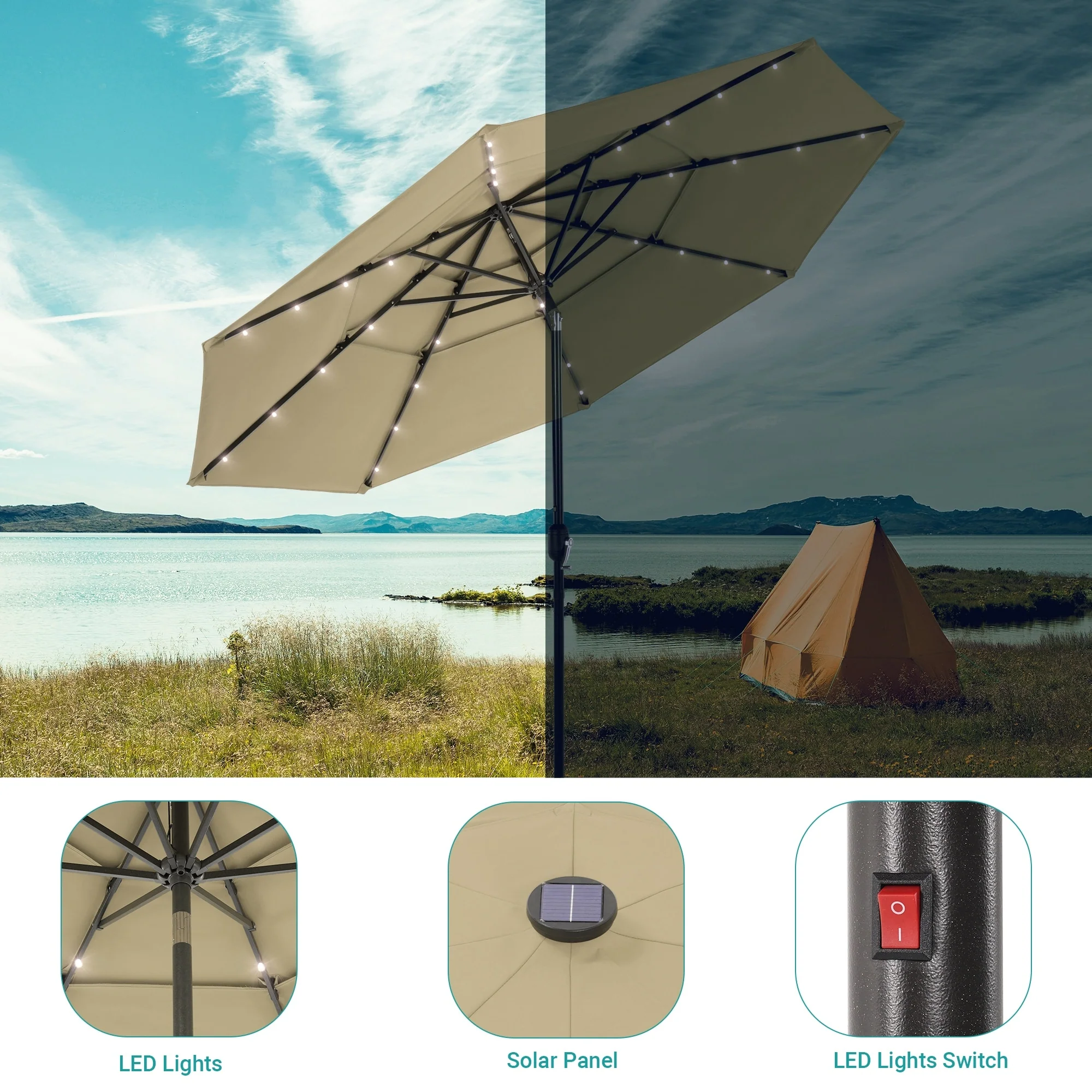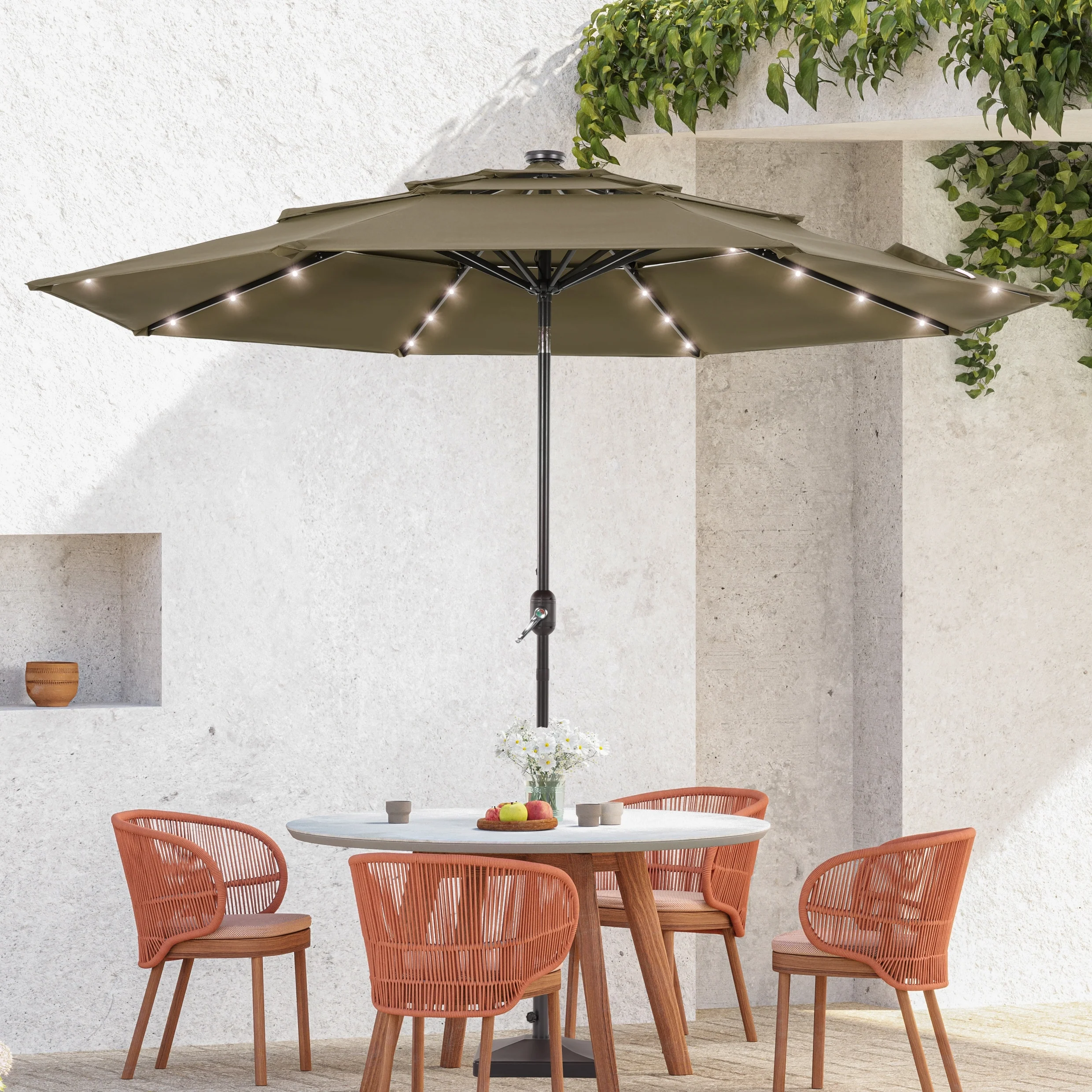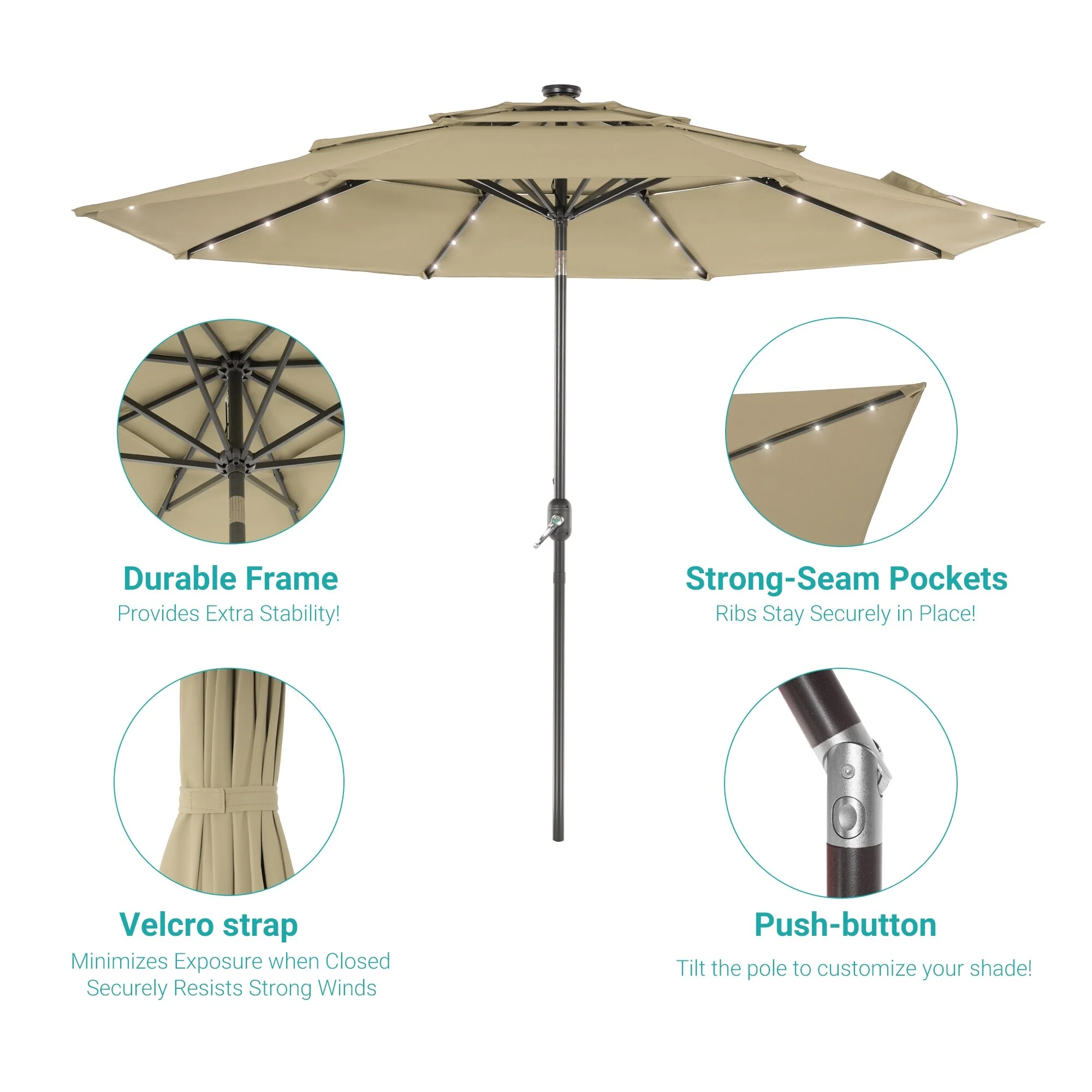 BONOSUKI 3 Tiers Patio Market Umbrella w/Solar Lights and Tilt button