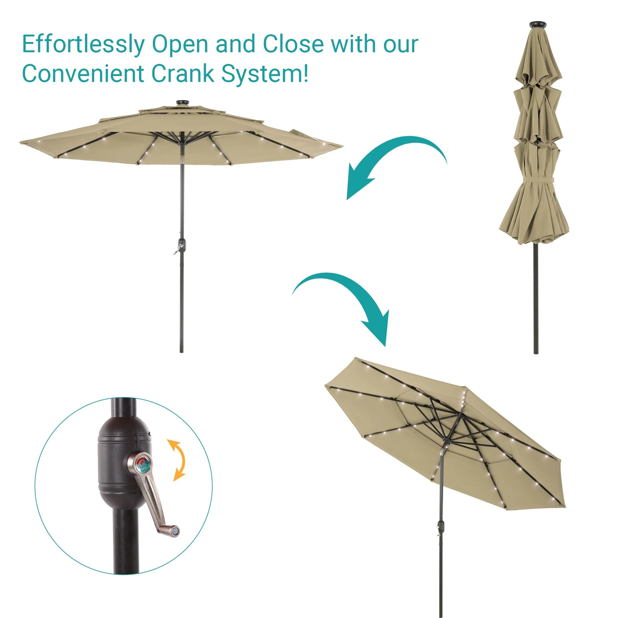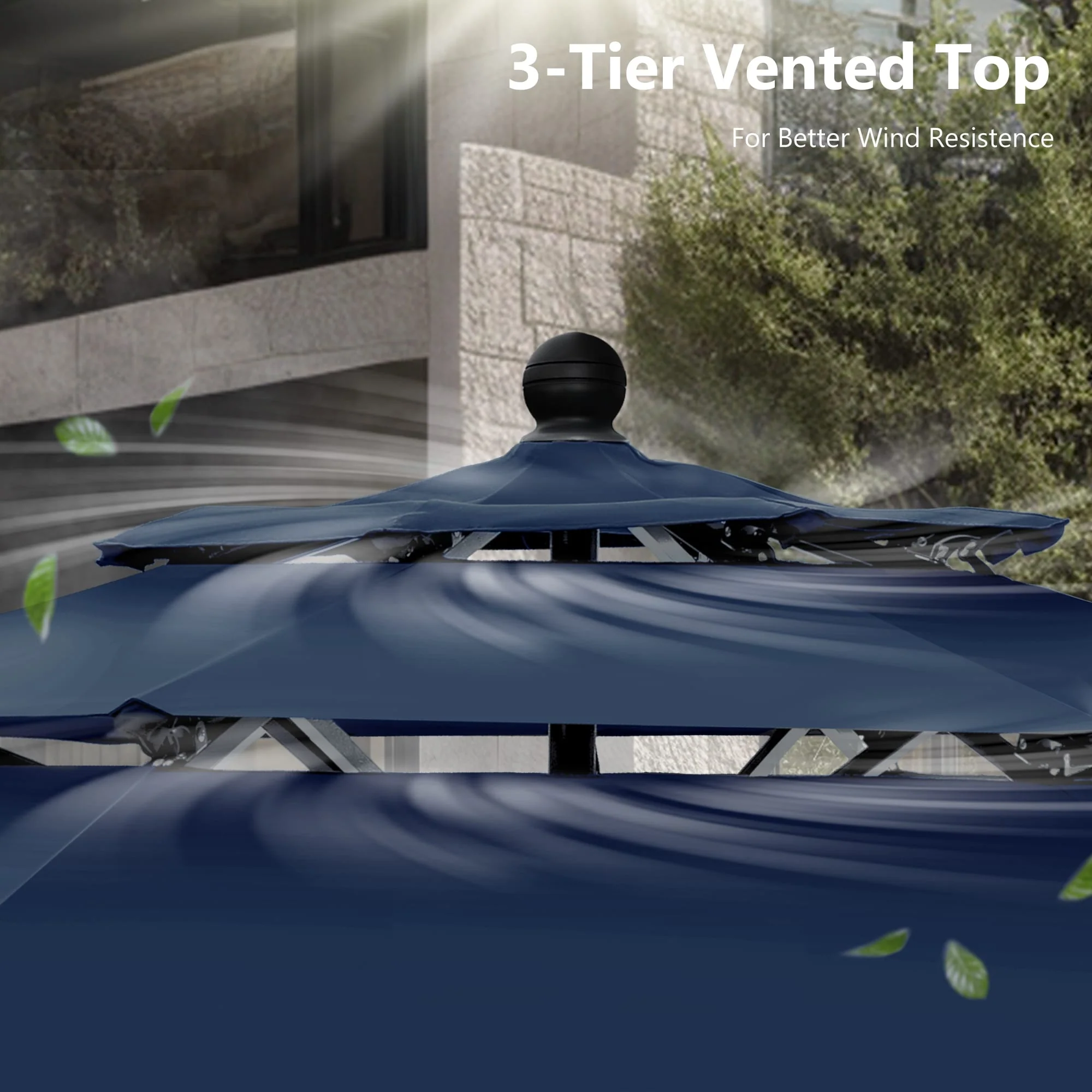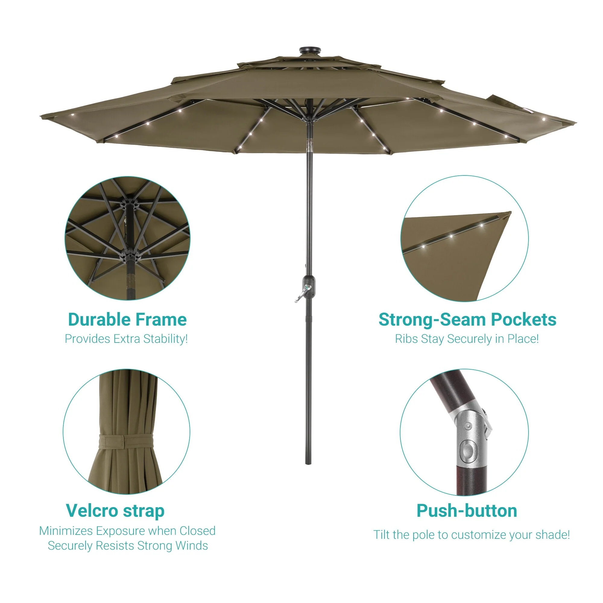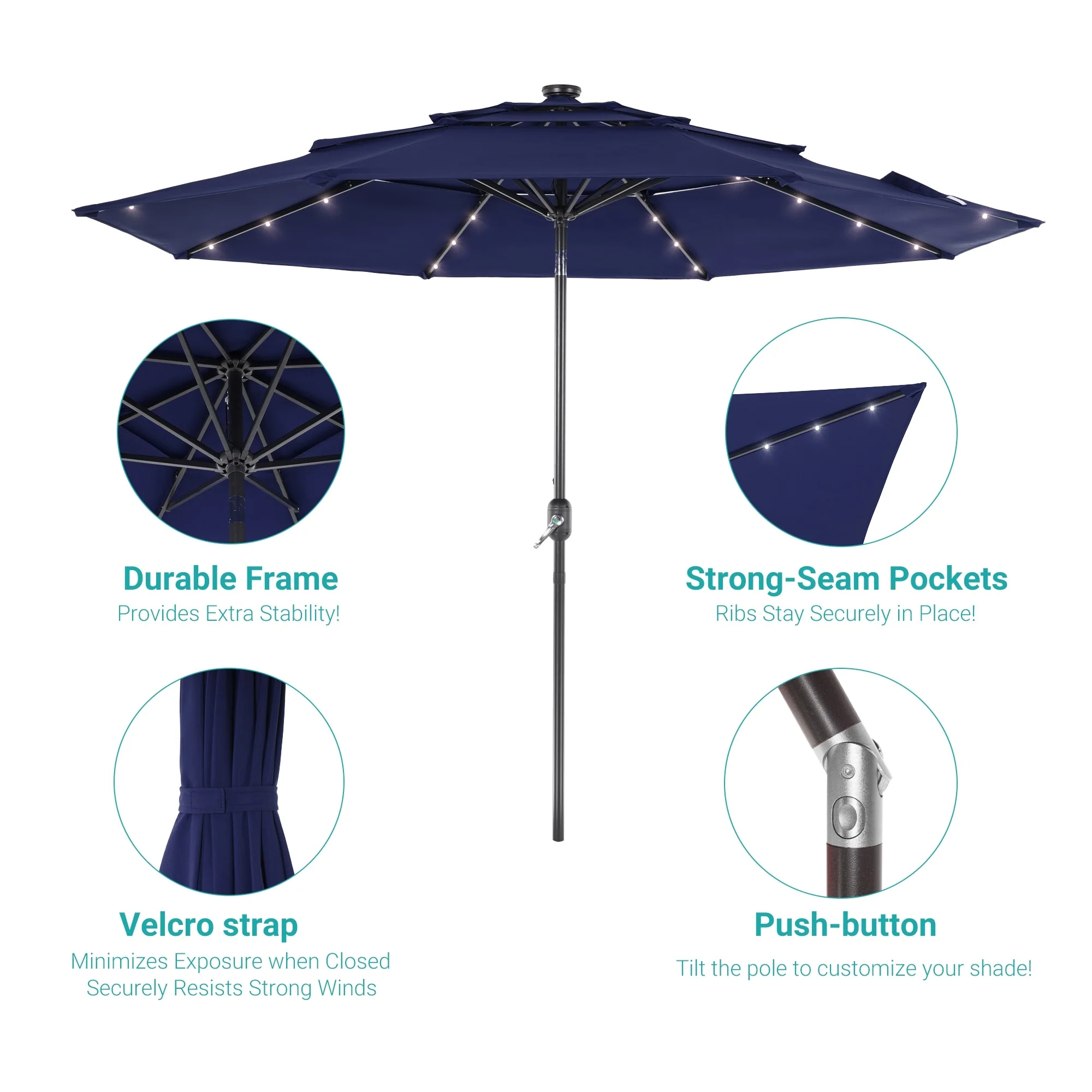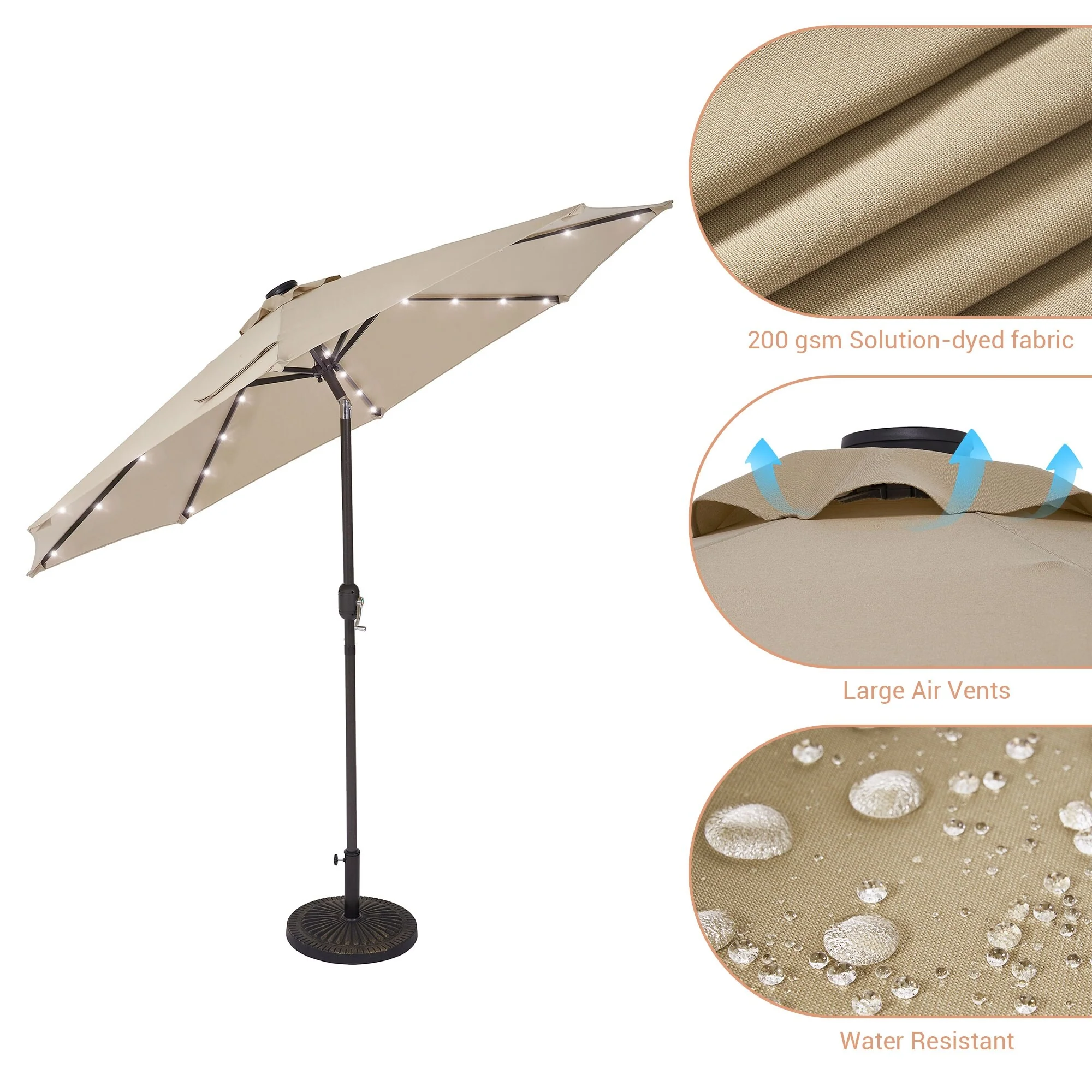 BONOSUKI 3 Tiers Patio Market Umbrella w/Solar Lights and Tilt button