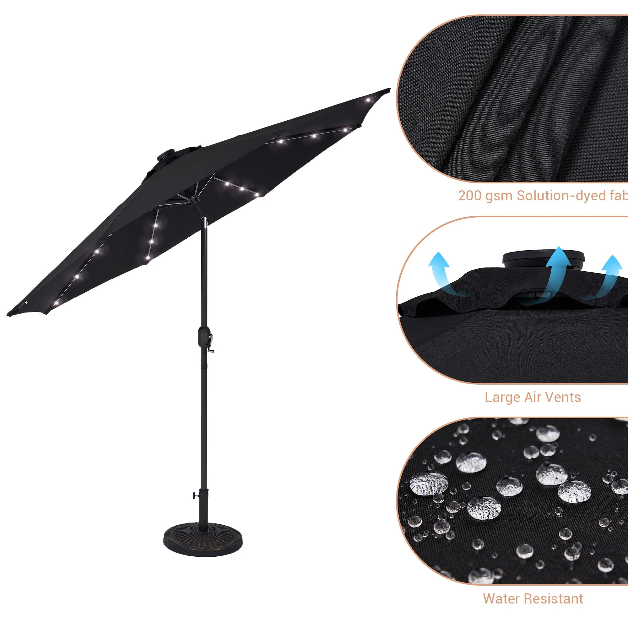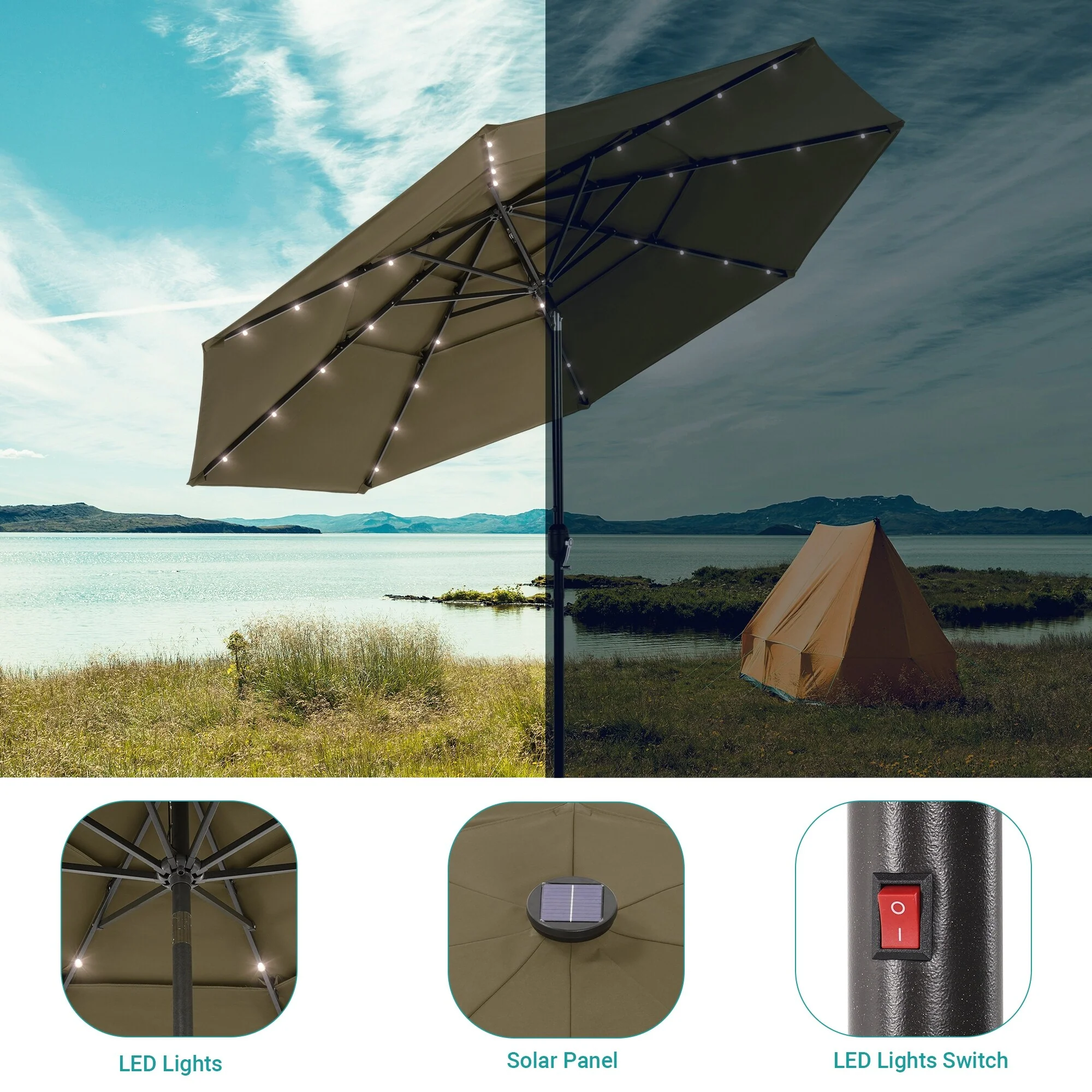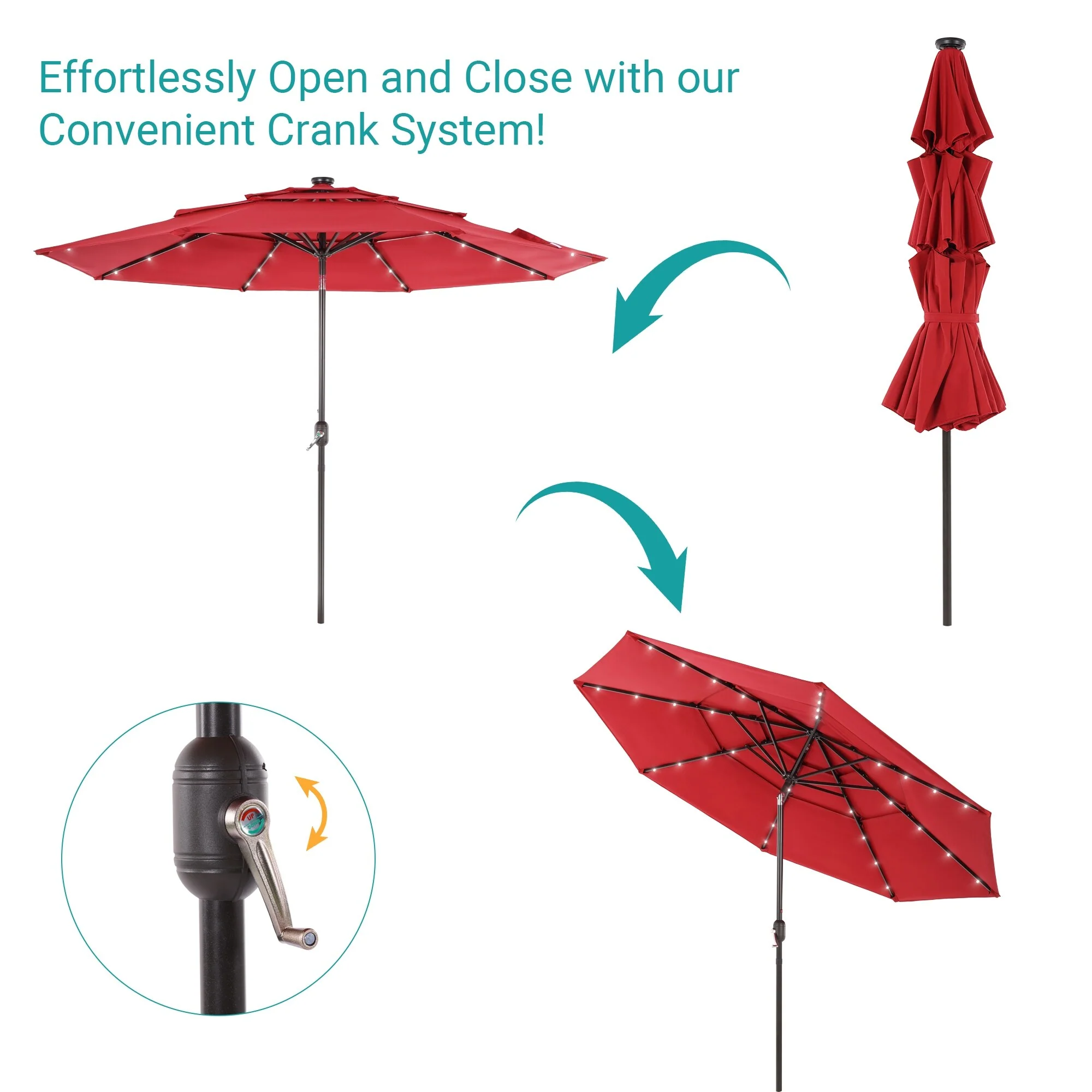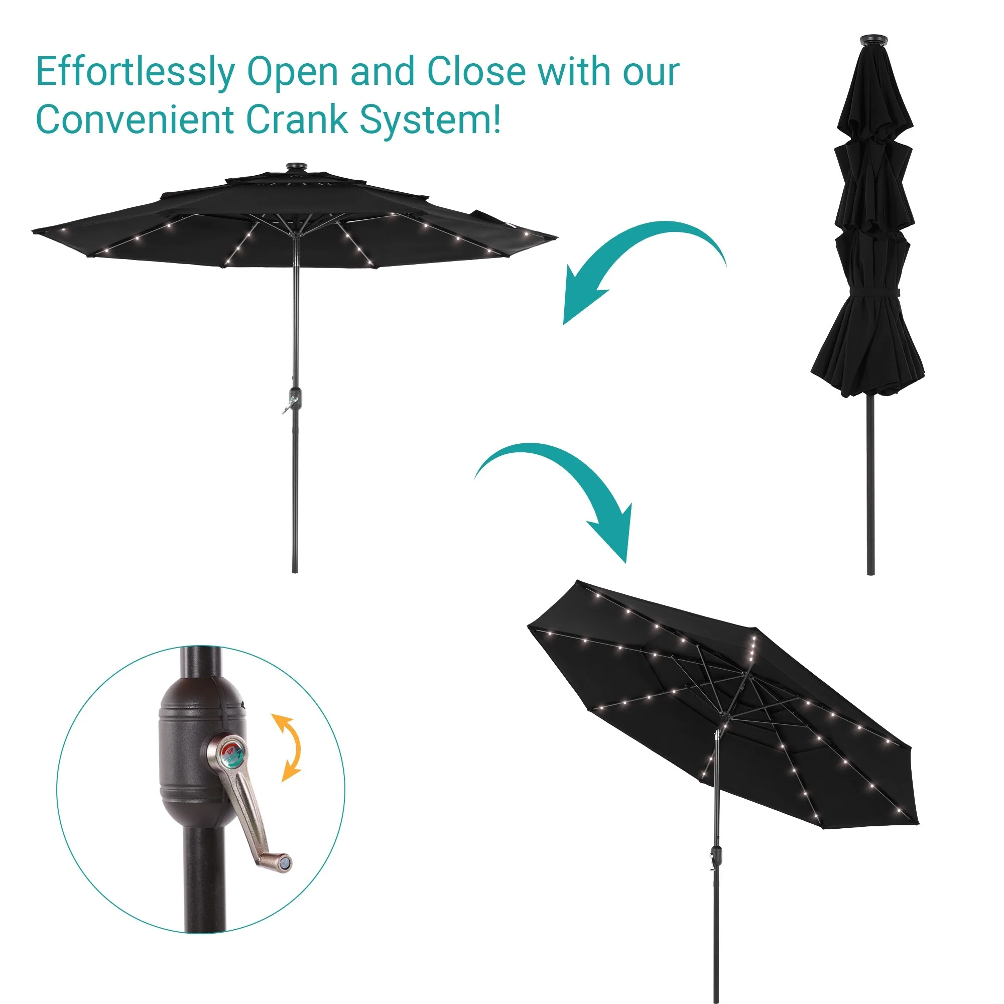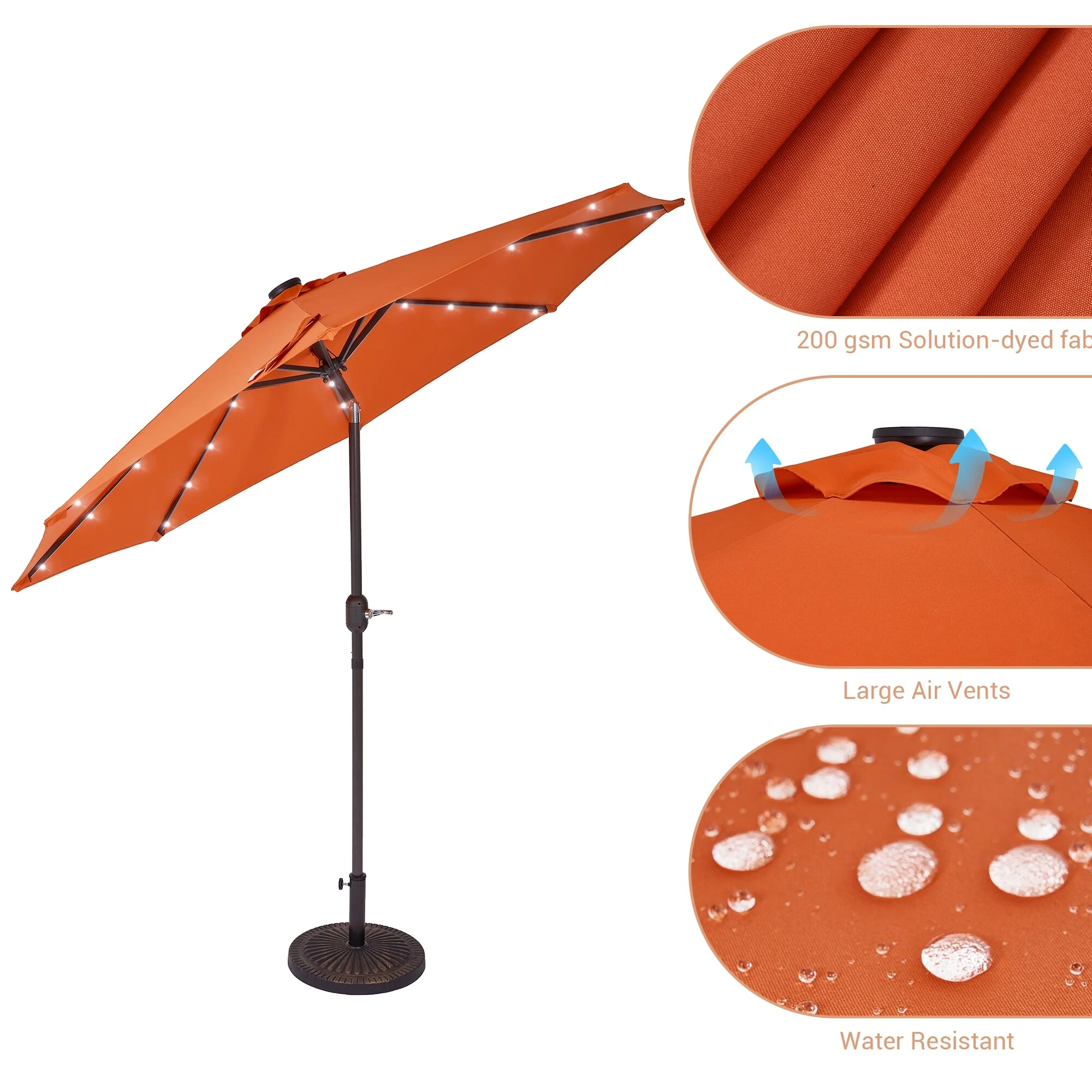 BONOSUKI 3 Tiers Patio Market Umbrella w/Solar Lights and Tilt button