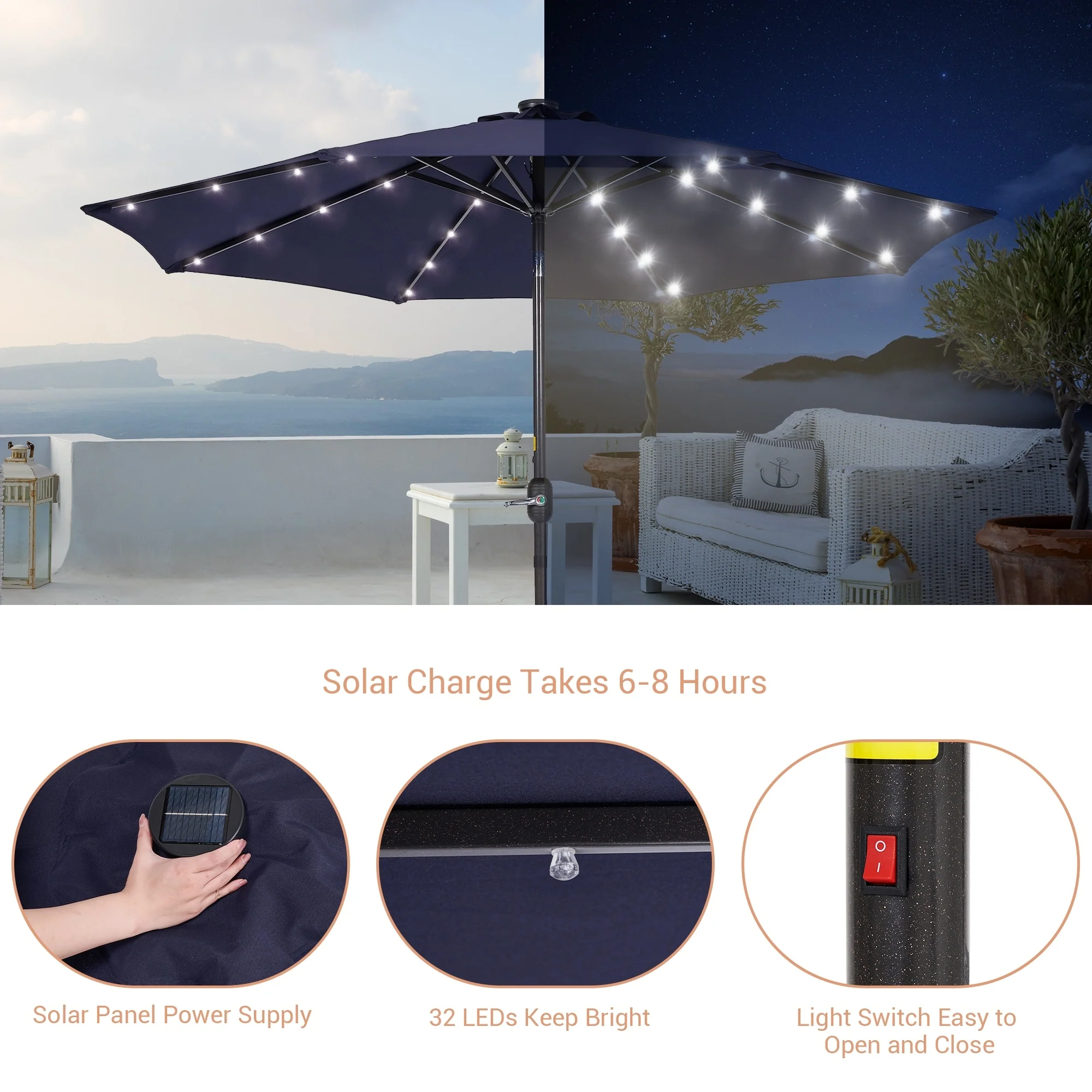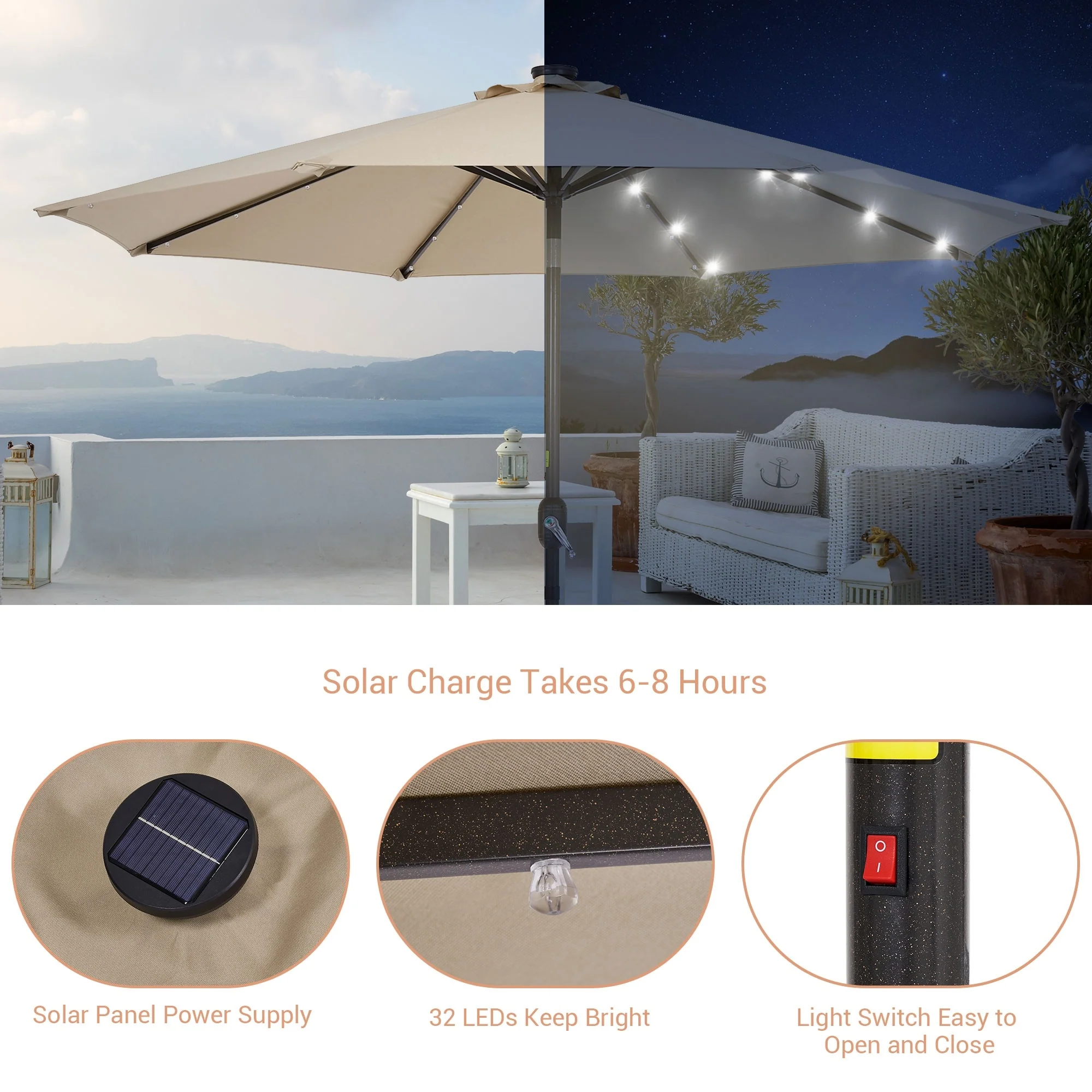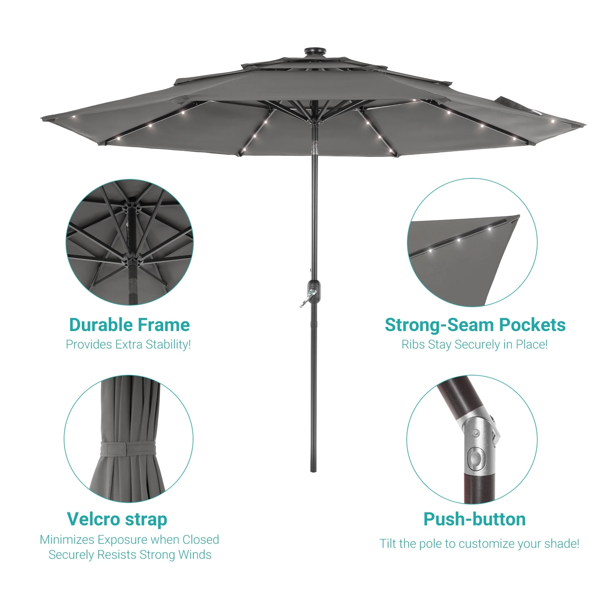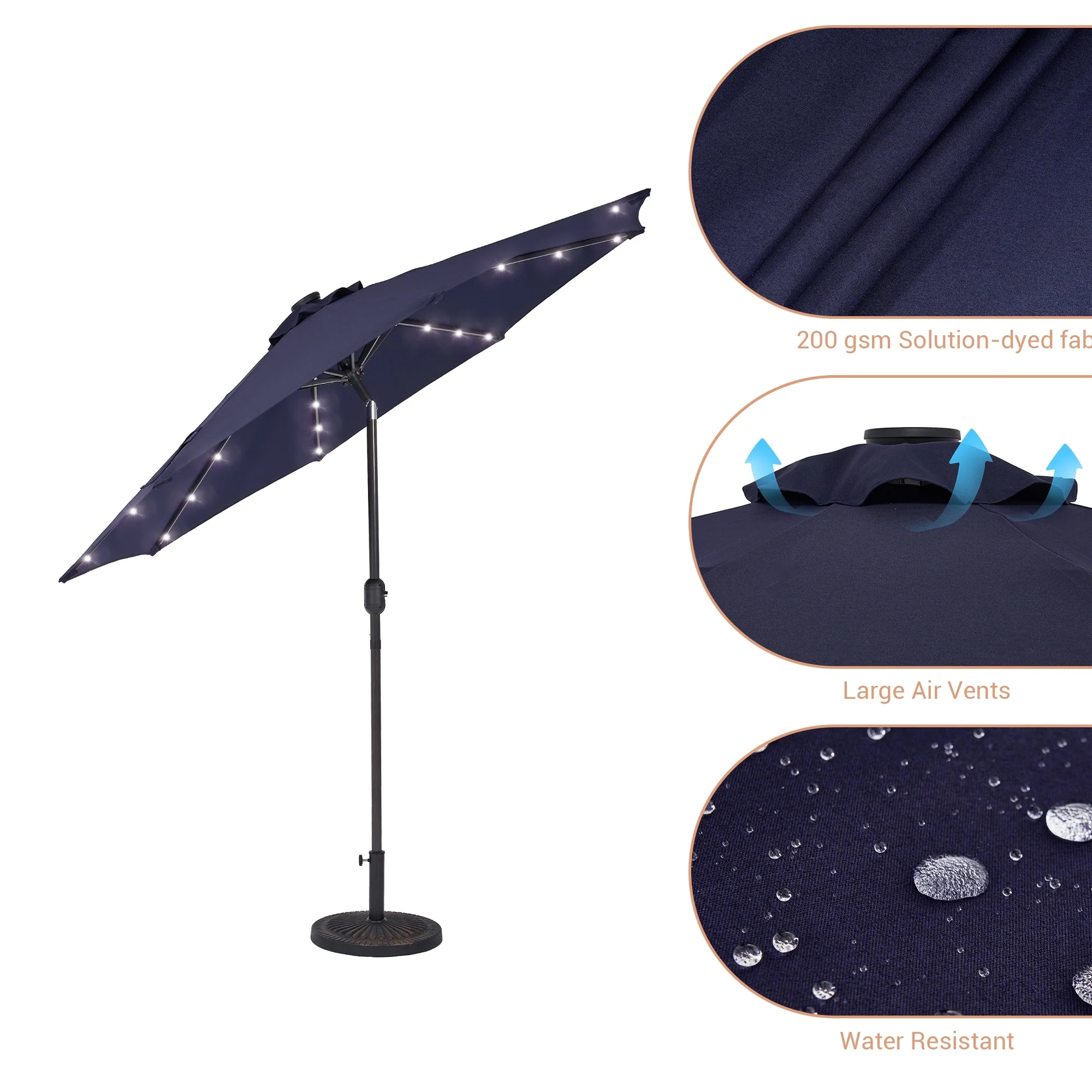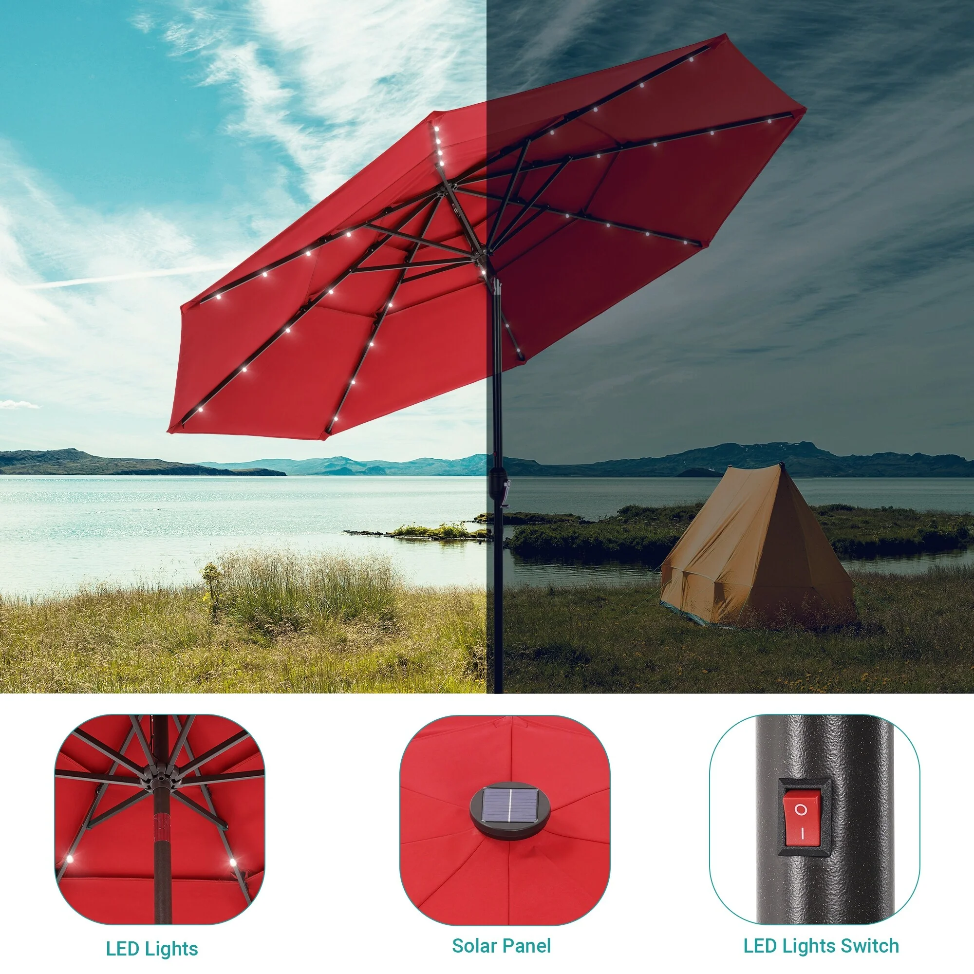BONOSUKI 3 Tiers Patio Market Umbrella w/Solar Lights and Tilt button