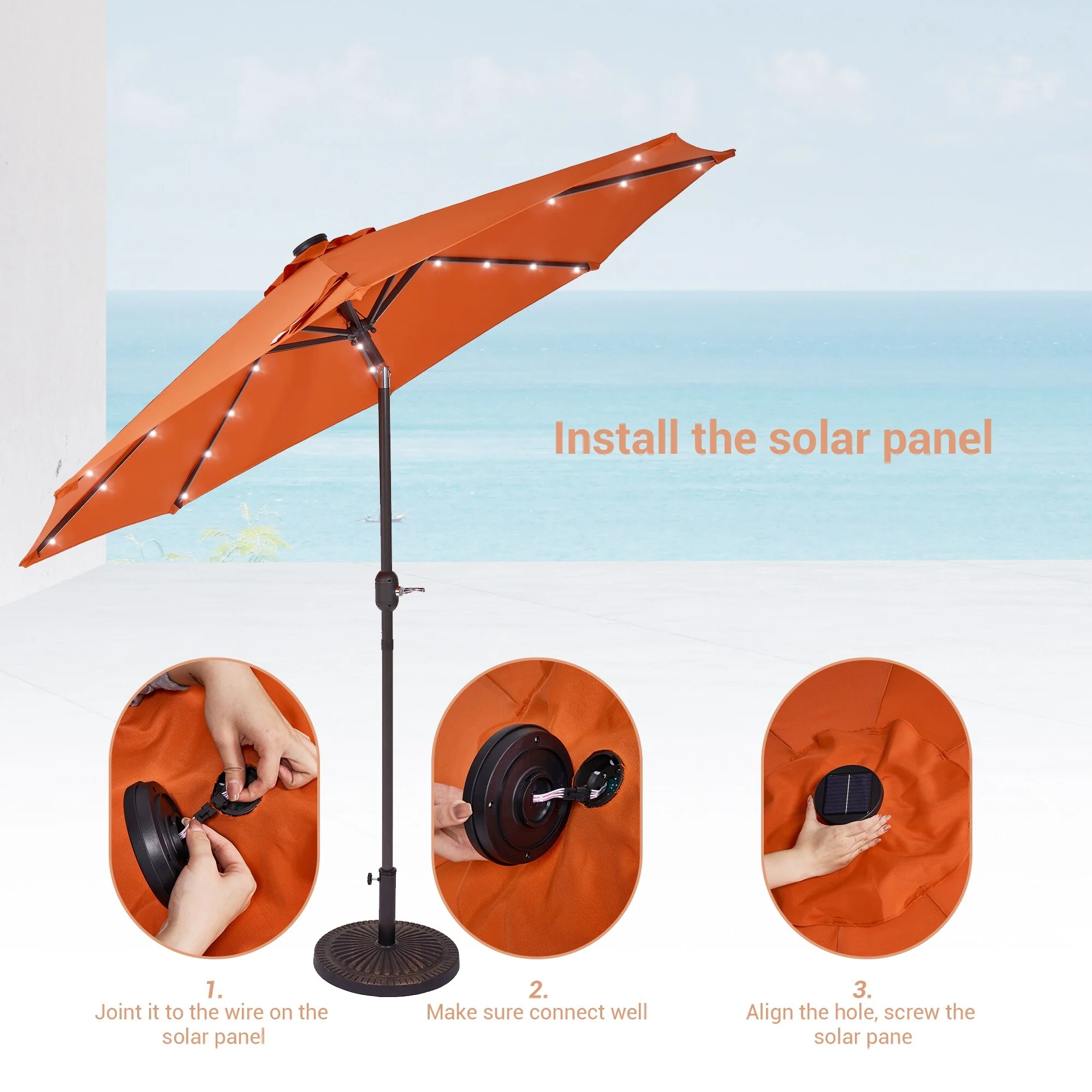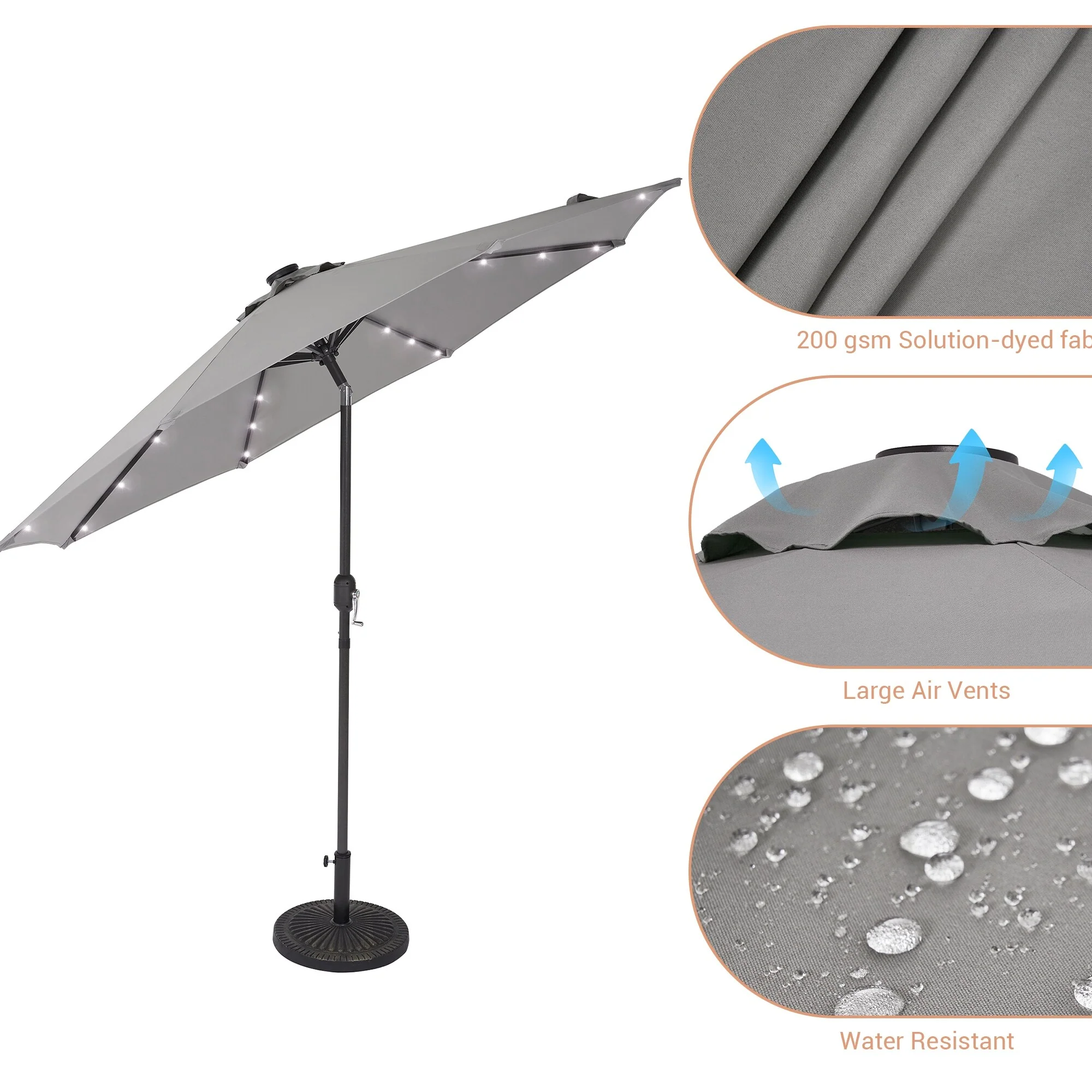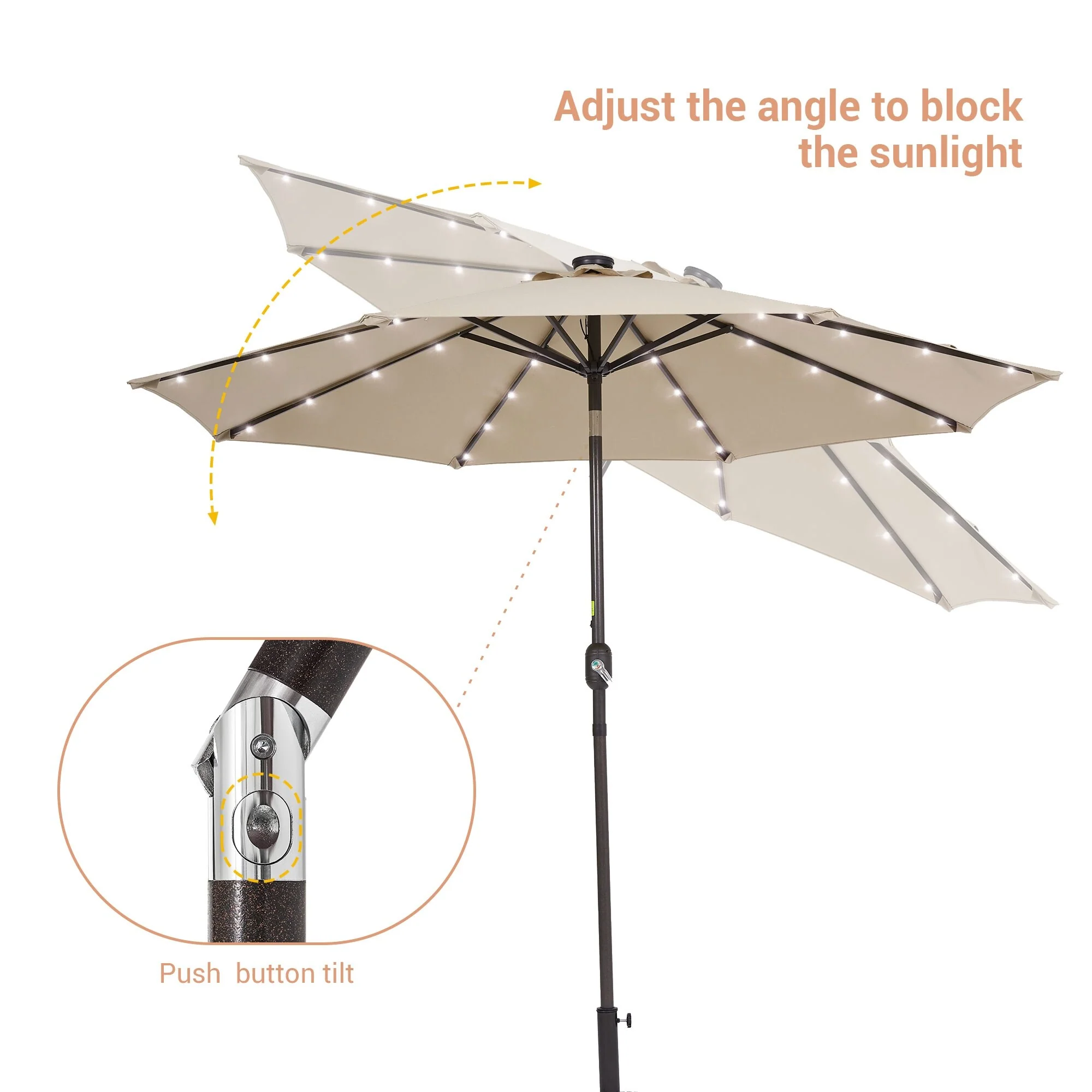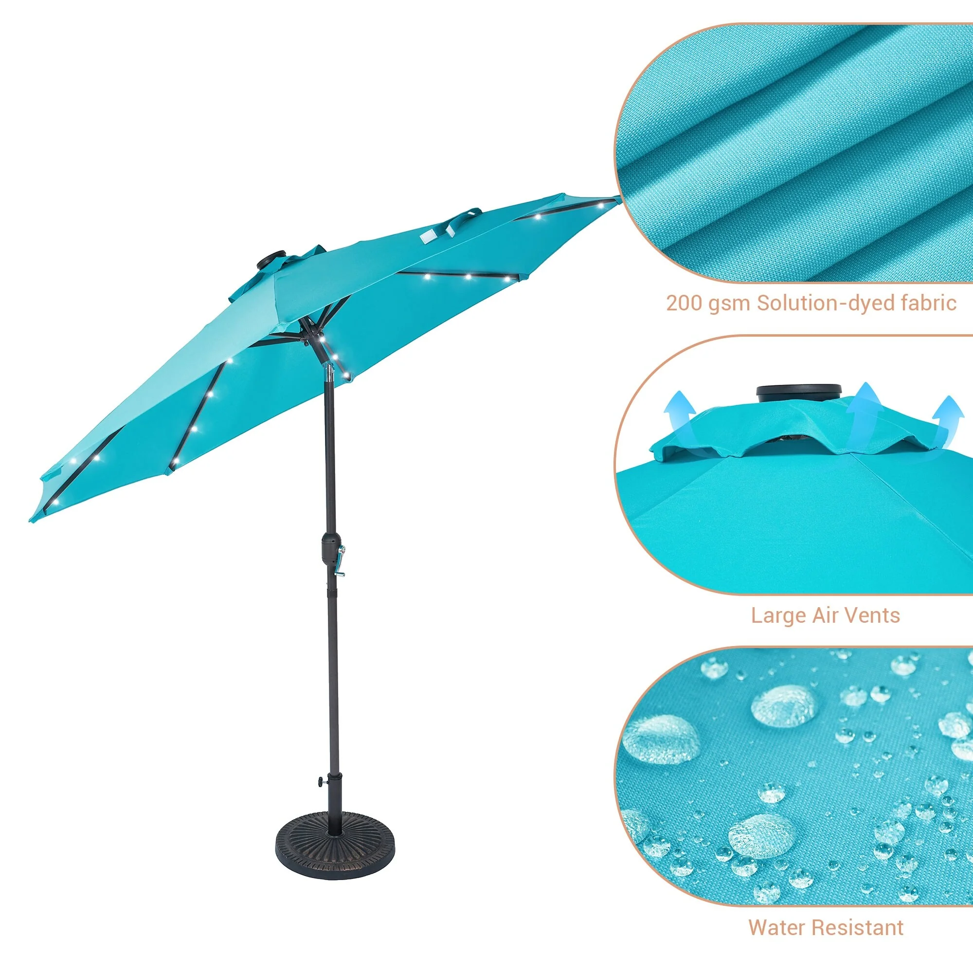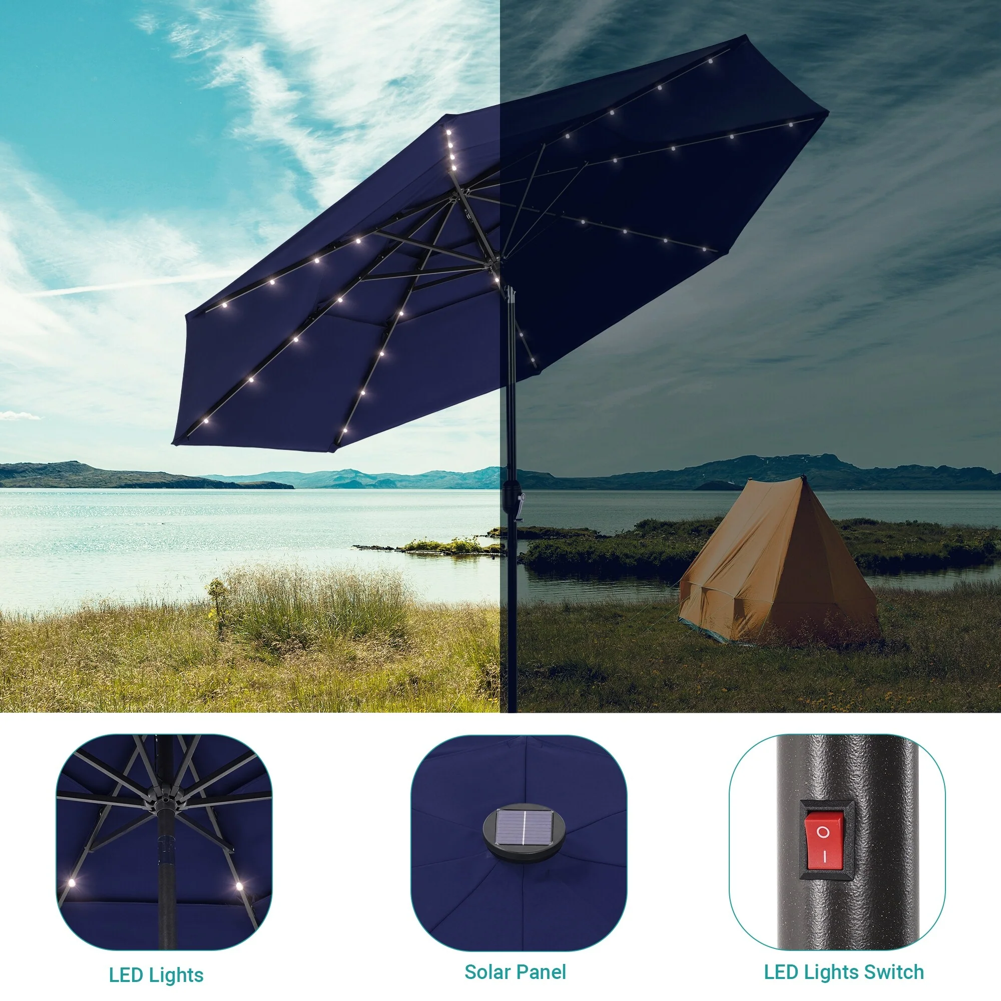 BONOSUKI 3 Tiers Patio Market Umbrella w/Solar Lights and Tilt button