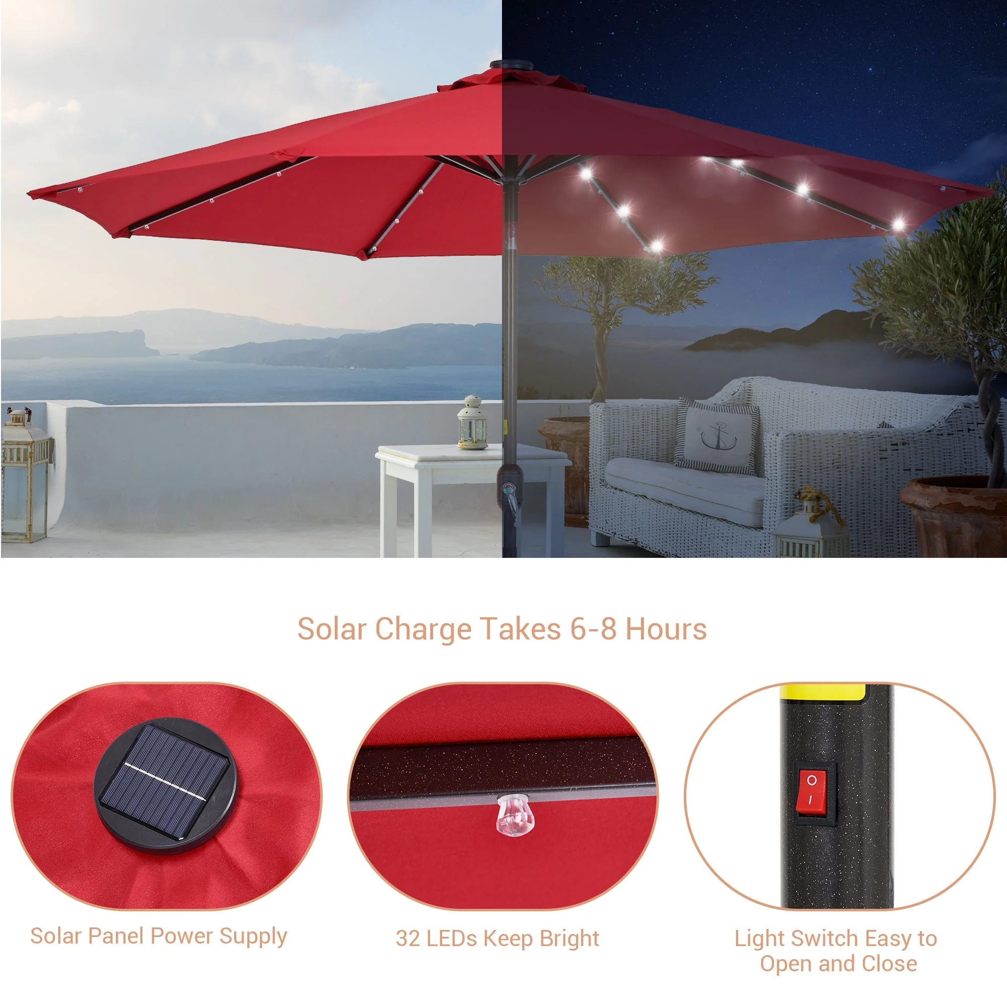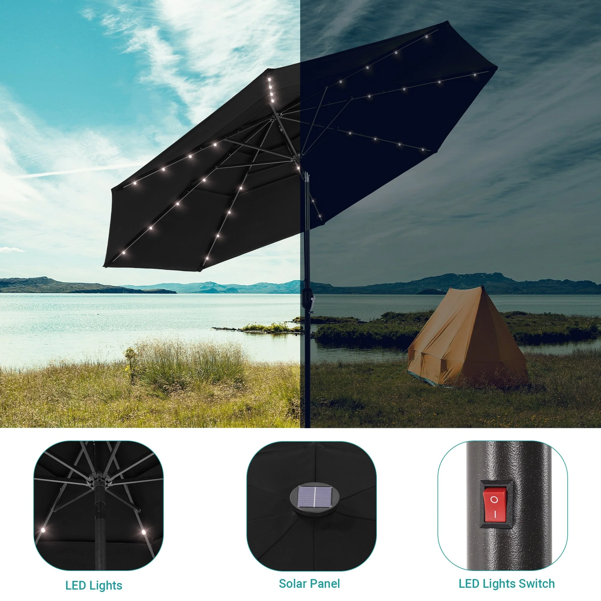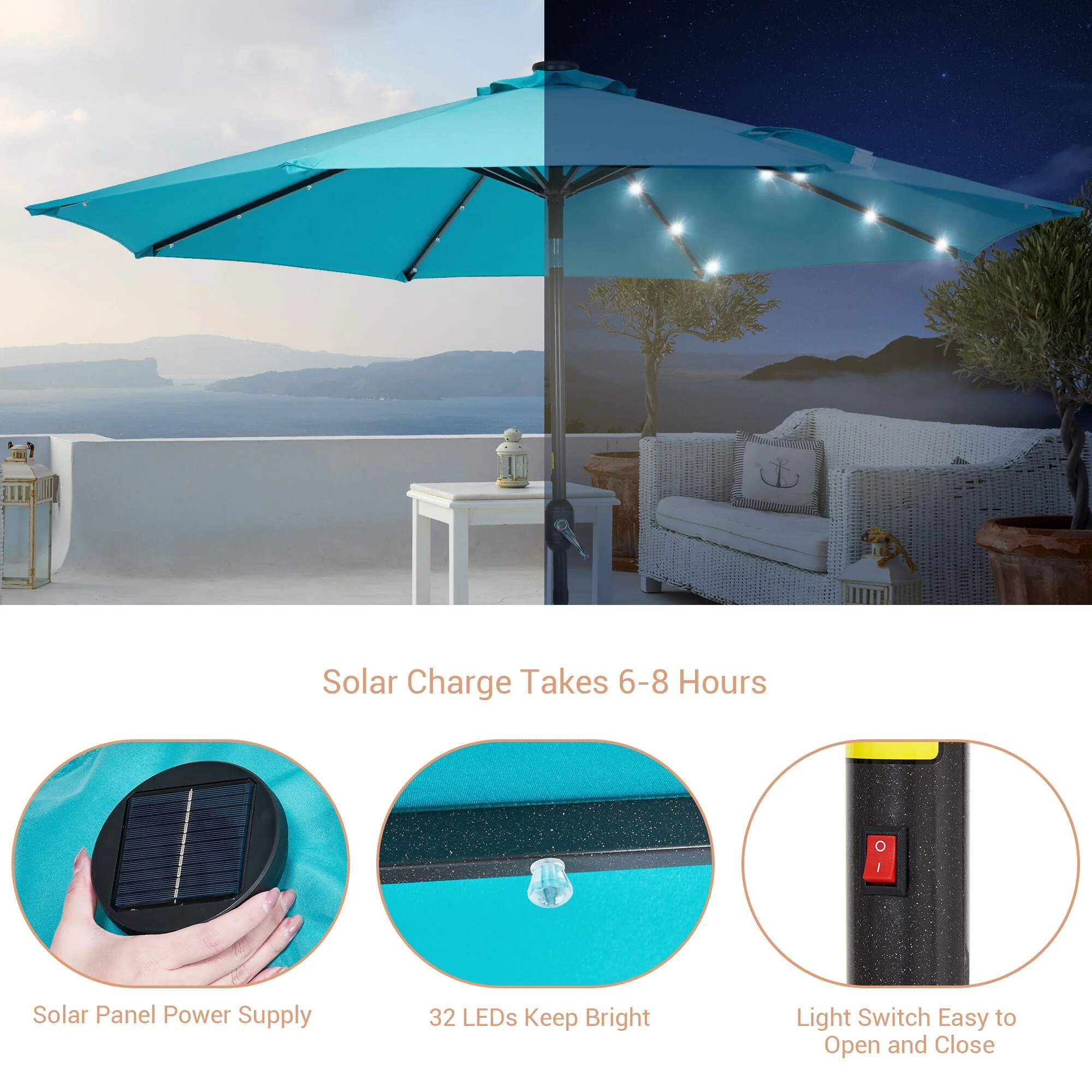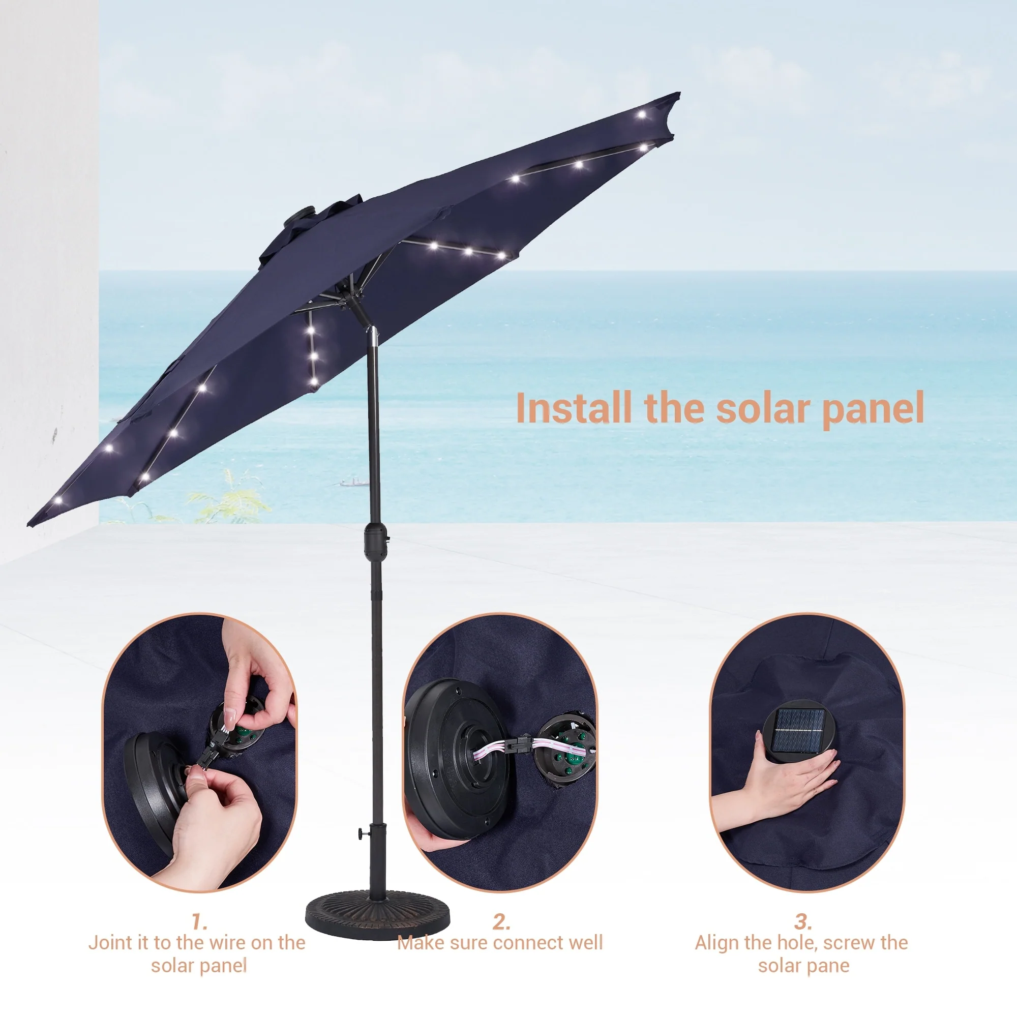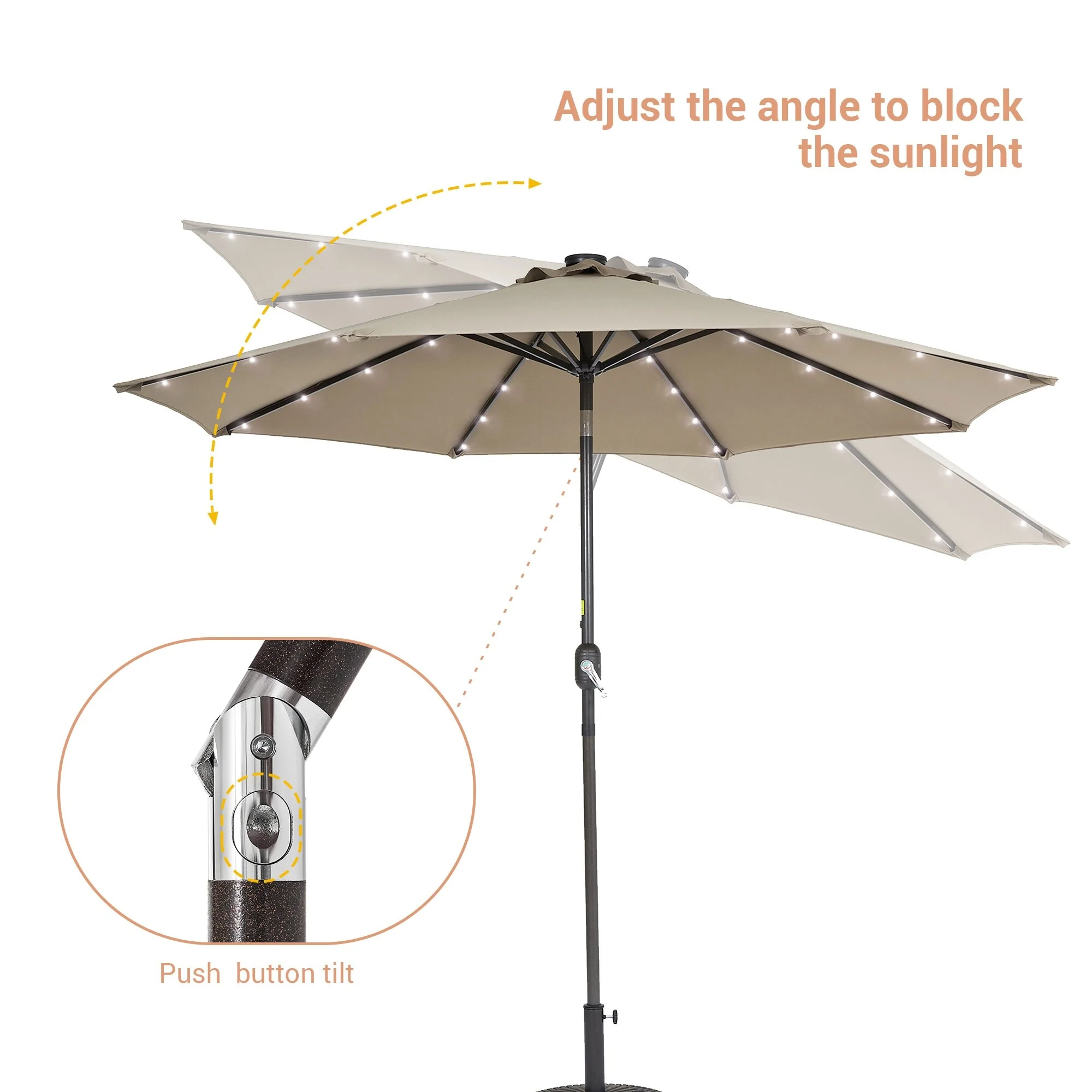 BONOSUKI 3 Tiers Patio Market Umbrella w/Solar Lights and Tilt button